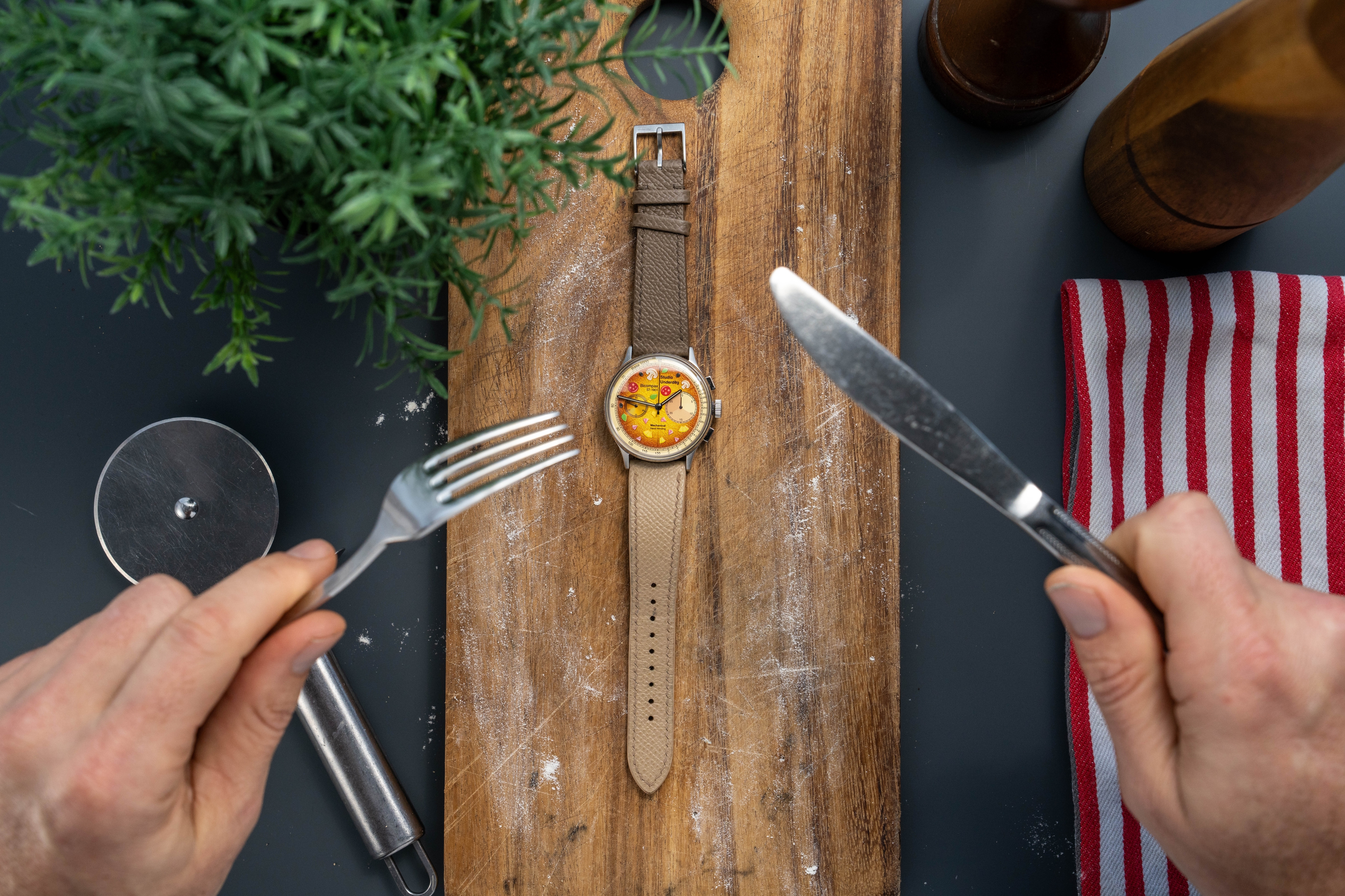What started out as an April Fools joke in 2023, matured into a collaboration that saw Richard Benc (of Studio Underd0g) and Andrew McUtchen (of Time+Tide) travel the world hand-delivering Pizza Watches and hosting Pizza Parties. Melbourne, Sydney, London, Geneva, San Francisco, Chicago, New York, Austin and Toronto were just some of the stops along the way!