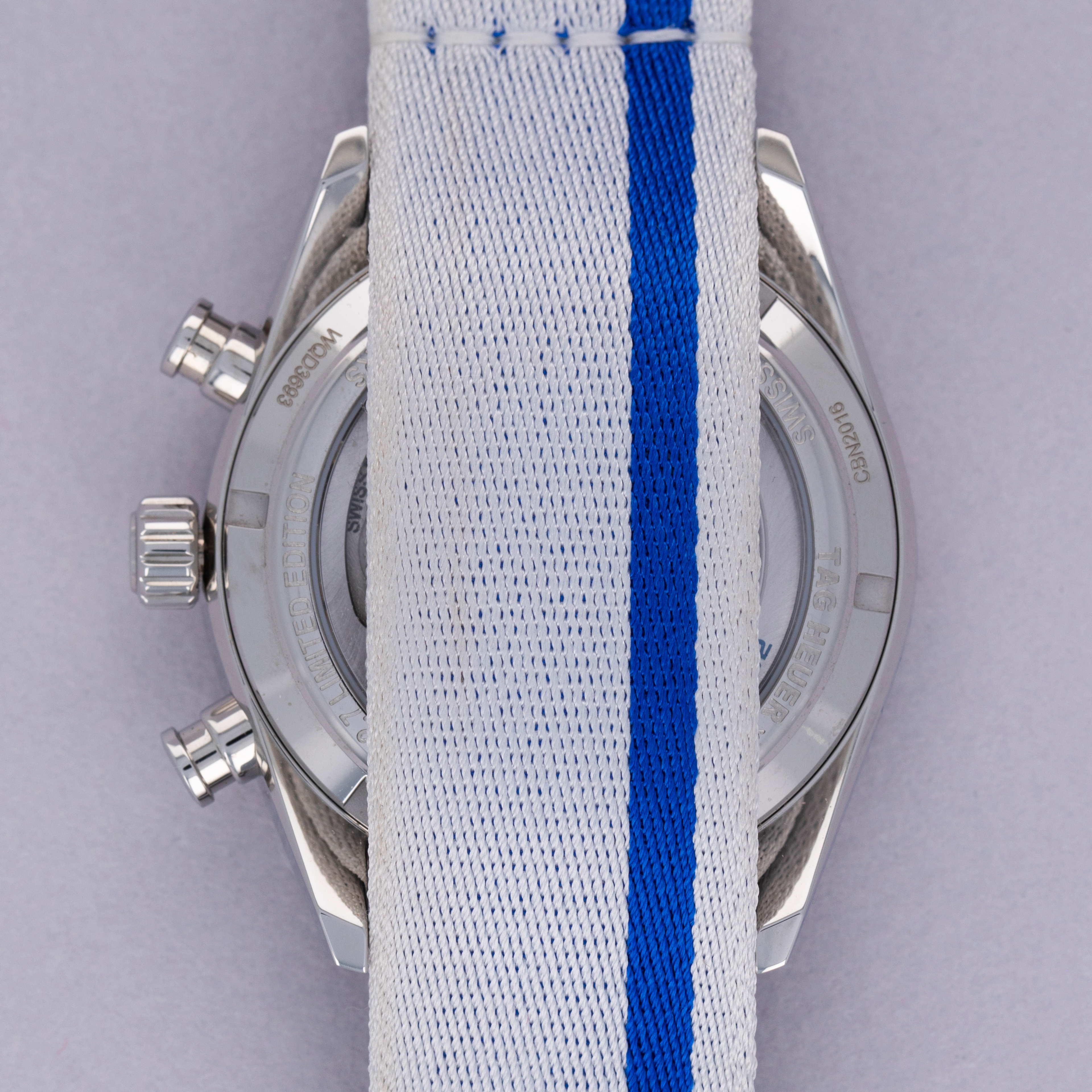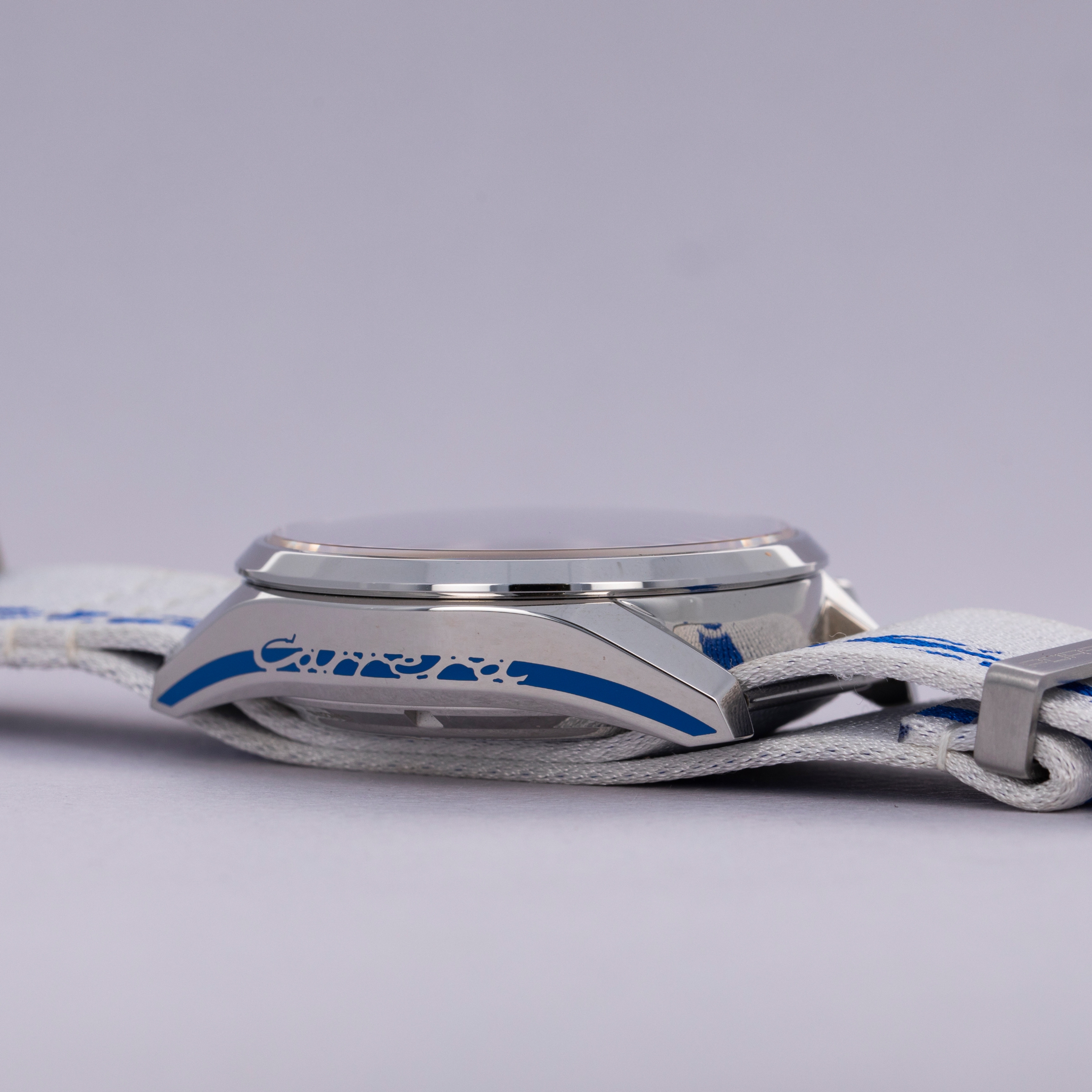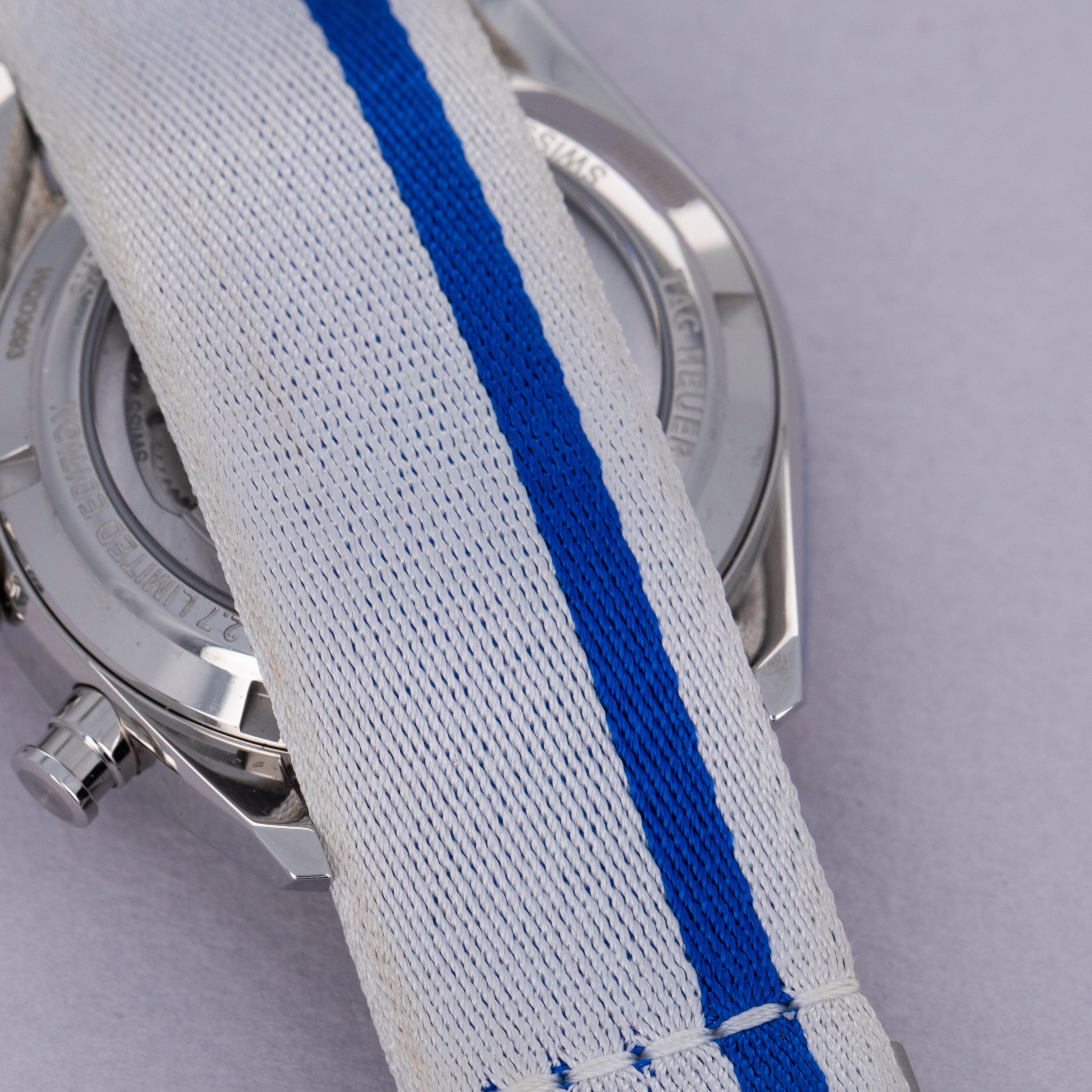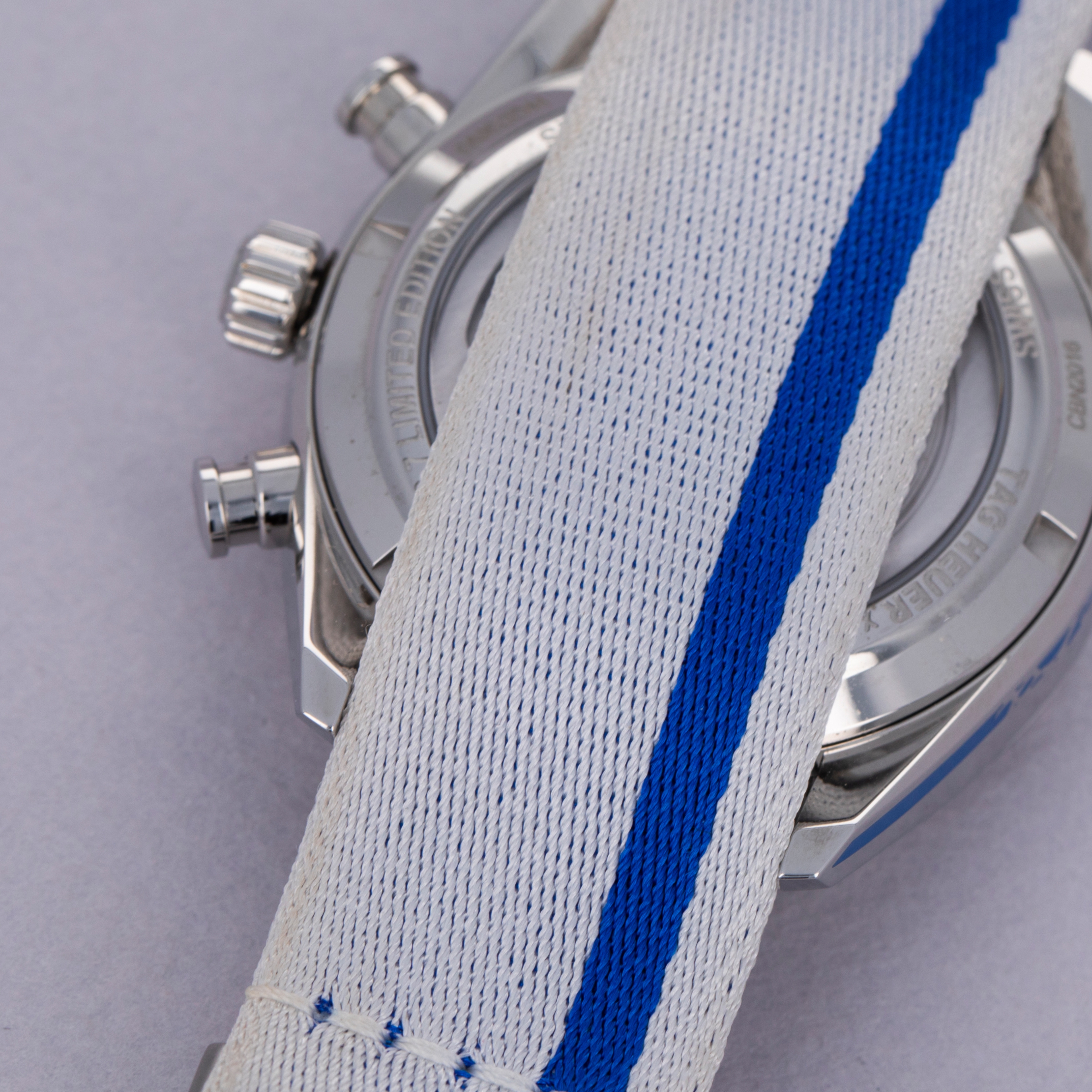 Launched in collaboration with iconic automaker Porsche to celebrate the 50th anniversary of the mythical Porsche 911 Carrera RS 2.7, the TAG Heuer x Porsche Carrera Chronograph RS 2.7 celebrates the two brands’ history working together since the 1980s. Debuting in 2022, the limited edition watch of just 500 pieces boasts a 42mm stainless steel case and is powered by the automatic Heuer 02 column wheel movement with 80-hour power reserve – all of which is on display behind a sapphire crystal caseback and a Porsche steering wheel-designed winding rotor. Sporting a bright silver dial with blue accents through its inscriptions and hands, the Carrera RS 2.7 even uses Porsche’s famous script for the Carrera inscription, instead of TAG Heuer’s typical font. With a blue lacquer-filled midcase and a bright white and blue strap to match its dial, the Carrera RS 2.7 is a stunning combination of TAG Heuer’s credentials as a watchmaker and Porsche’s credentials as the creator behind one of the car industry’s most beautiful cars.