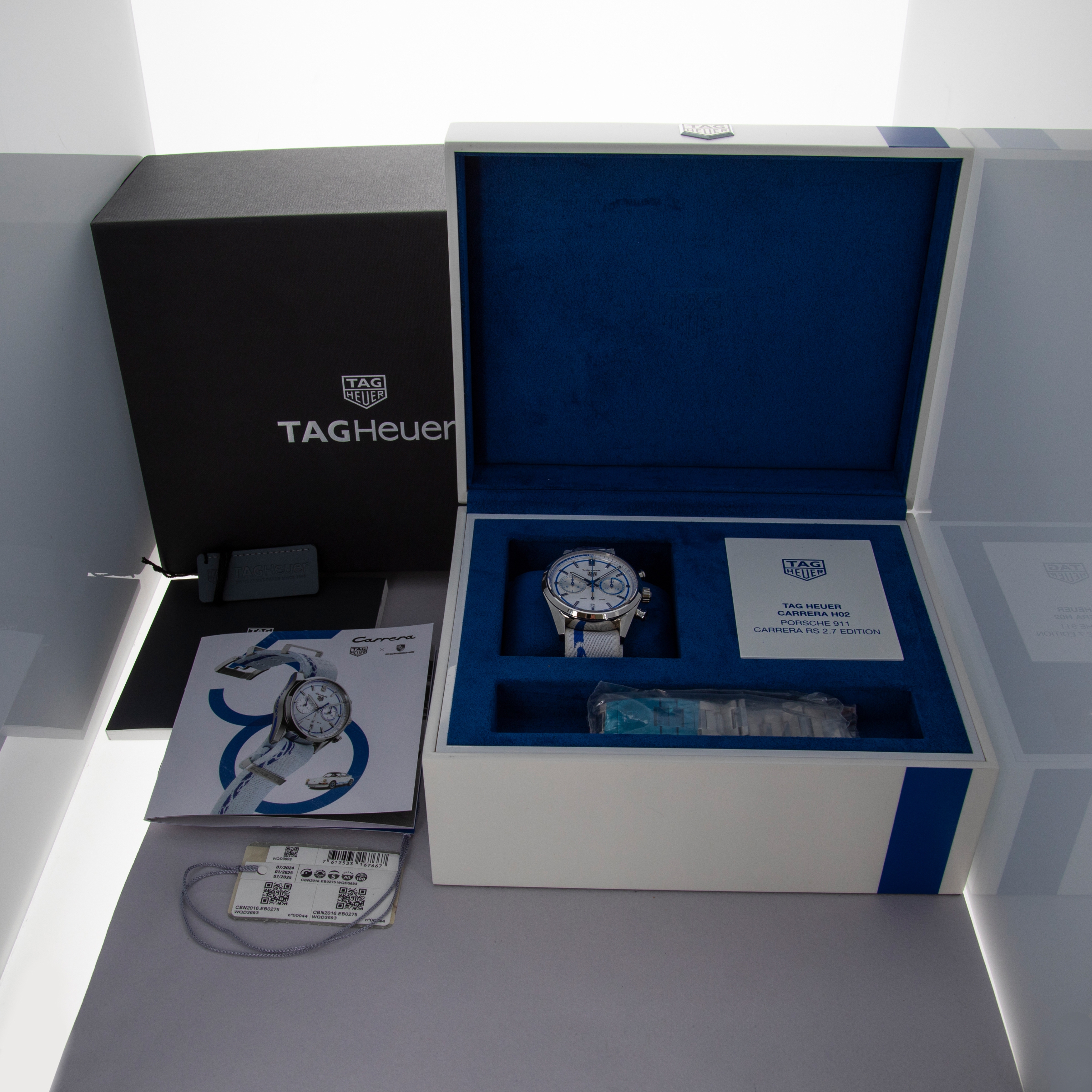 Celebrating one of automotive history's most revered cars, the Carrera RS 2.7 combines TAG Heuer's horological heft with Porsche's esteemed heritage to create a watch that appeases the demands of automotive and horological purists alike.