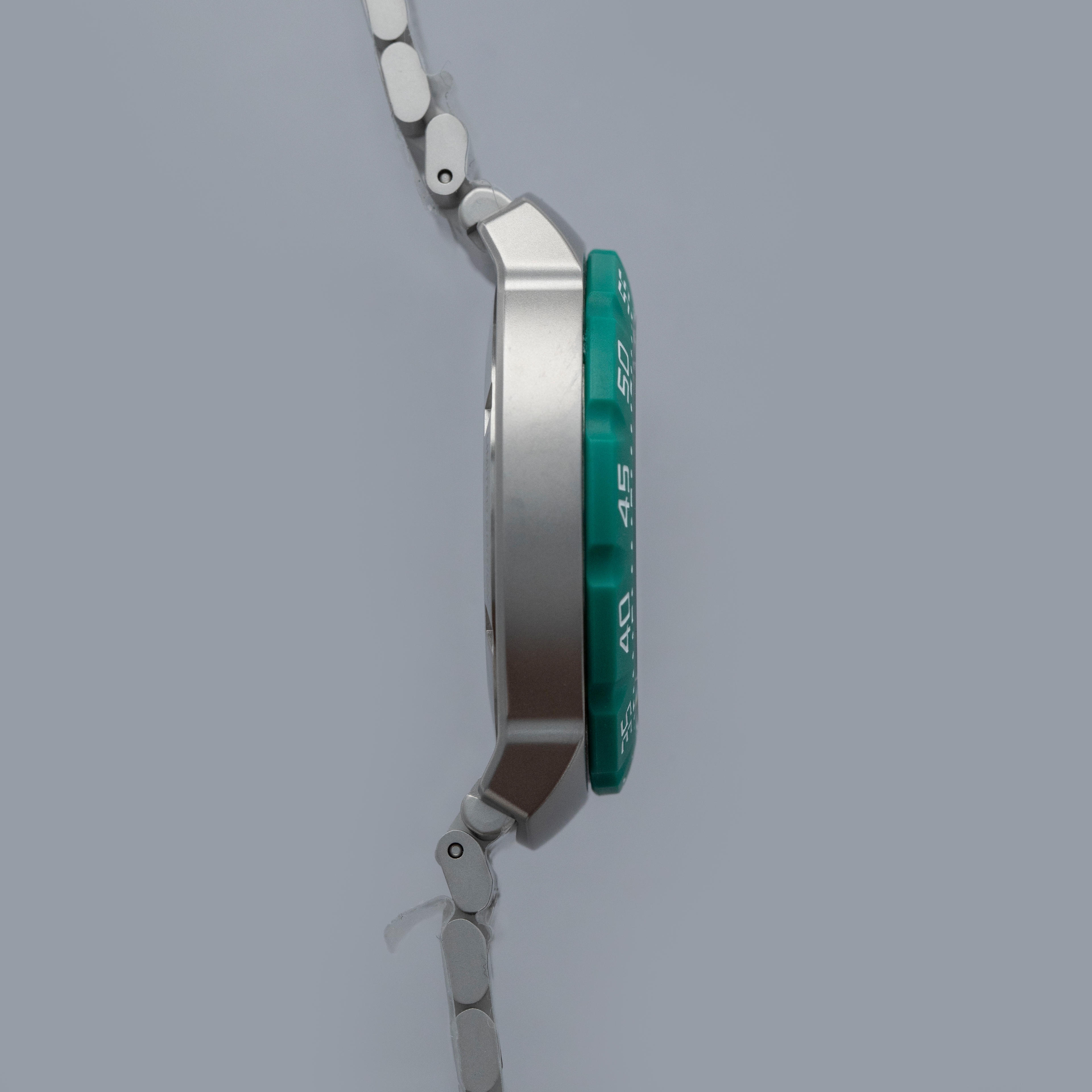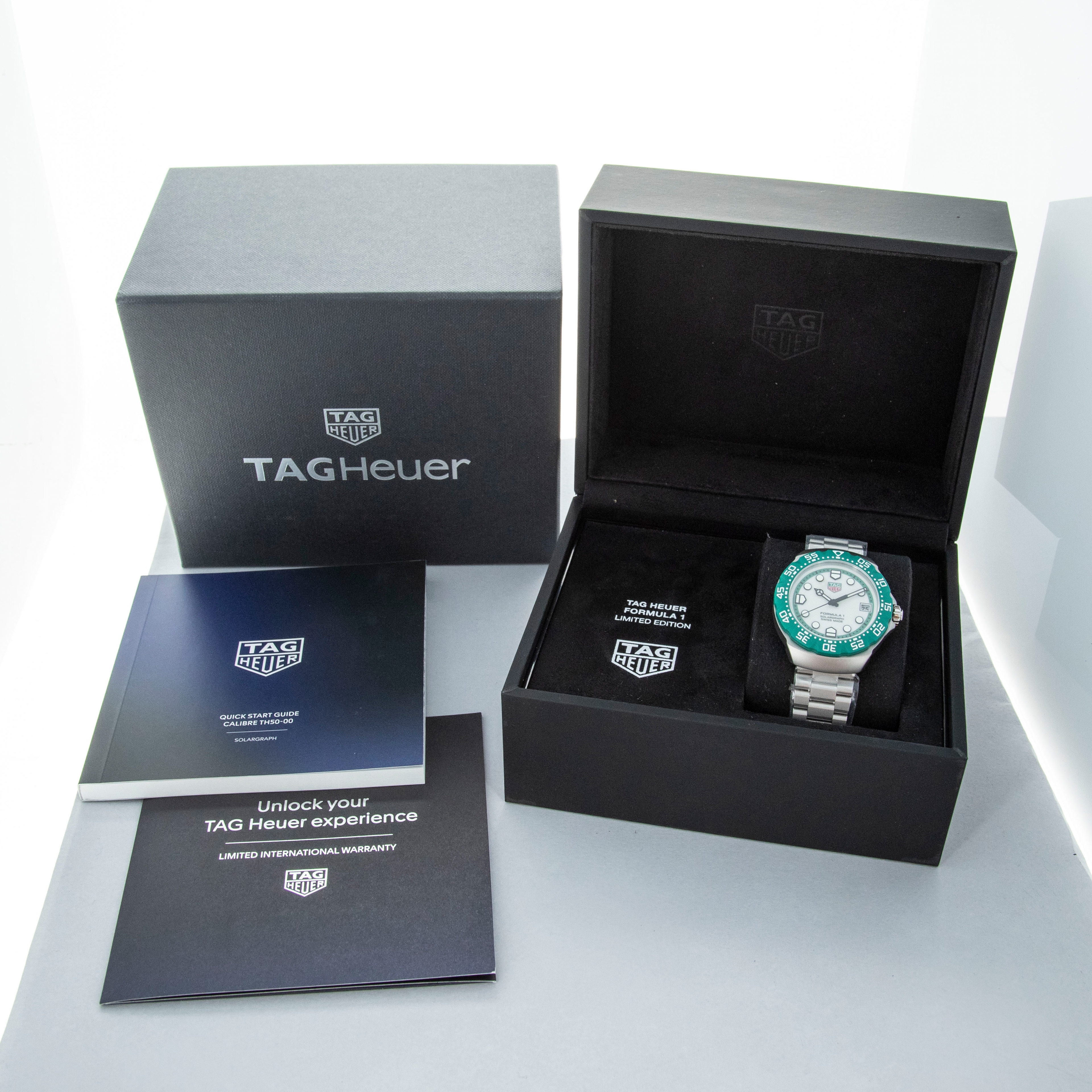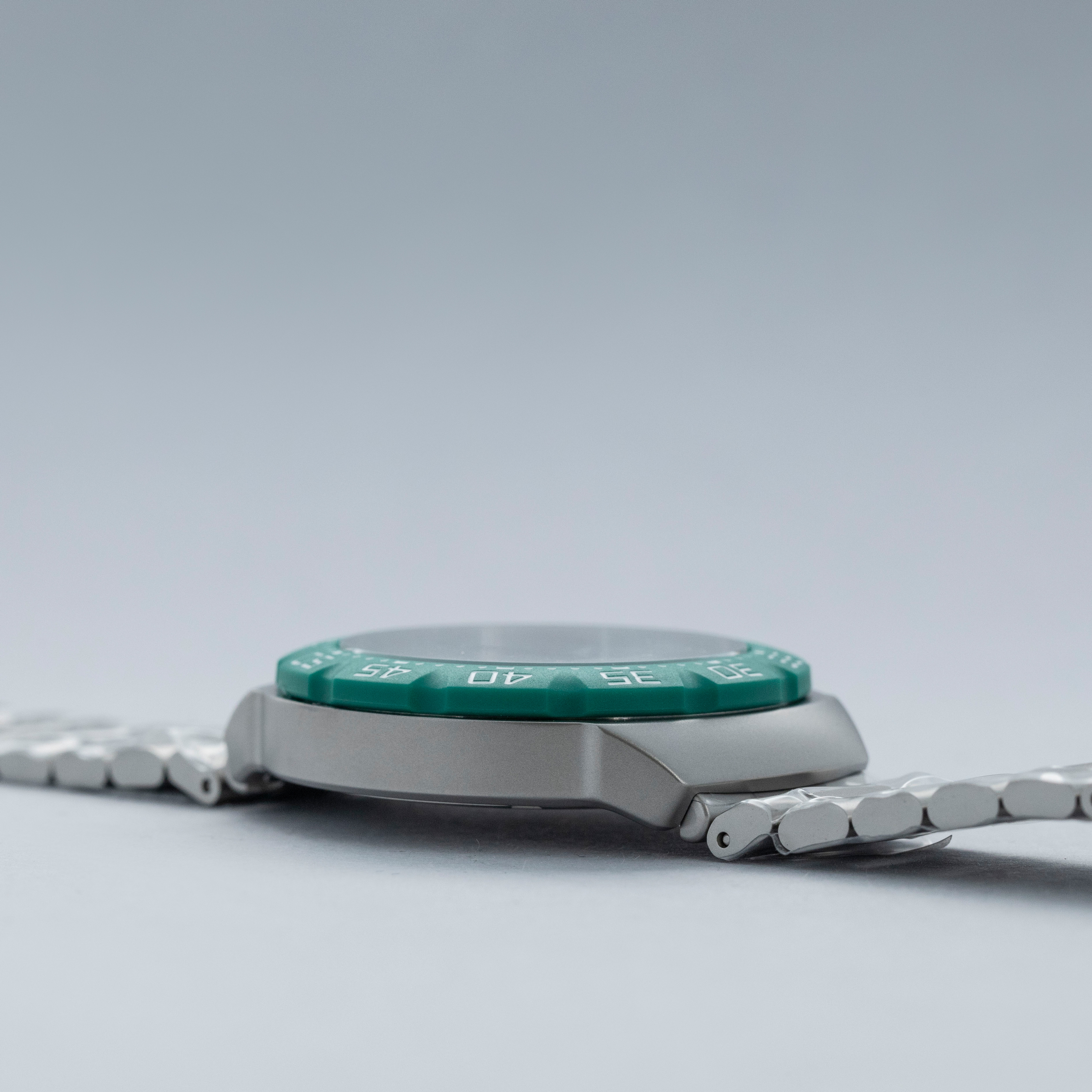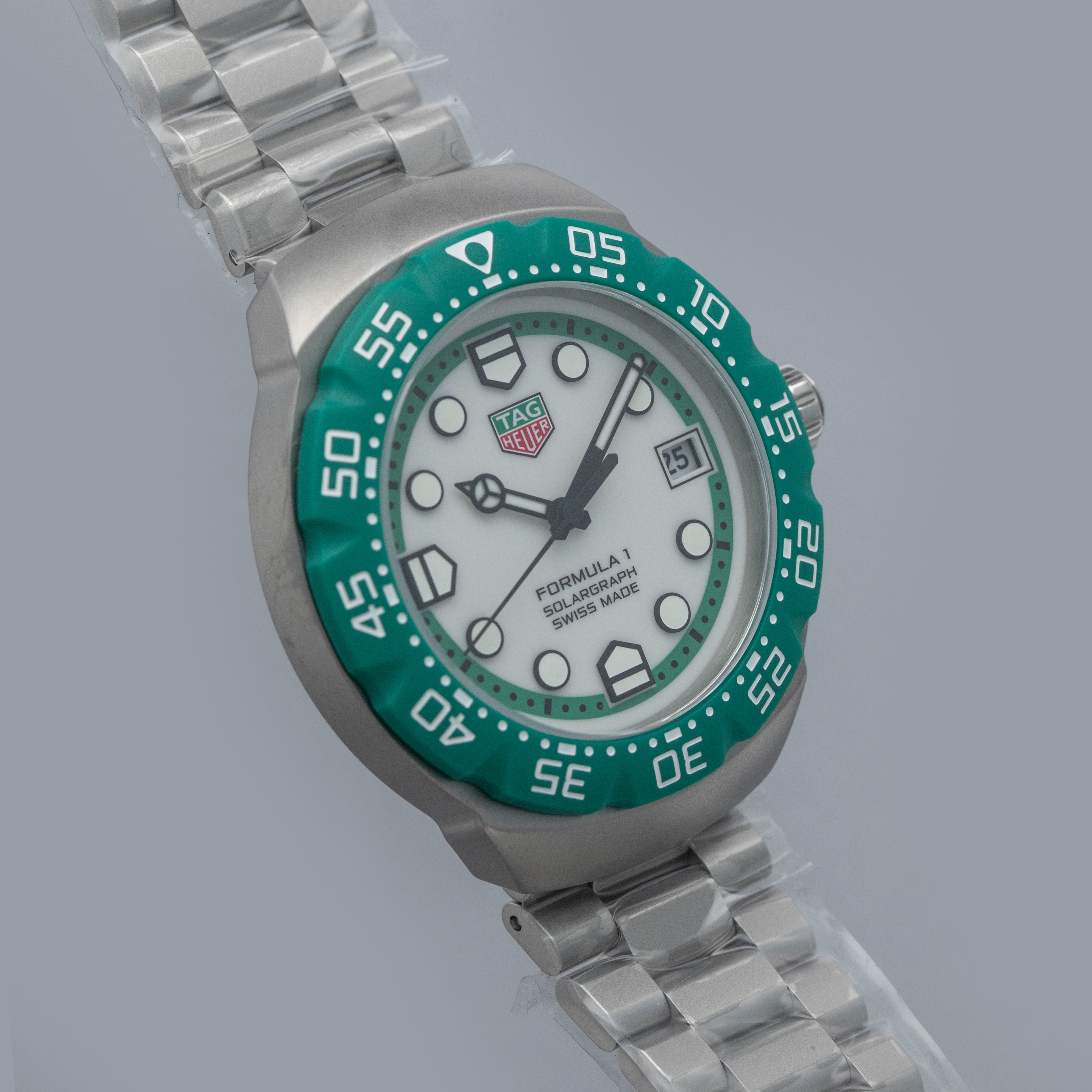 Emerging in 1986 as TAG Heuer’s bold, entry-level expression of performance, colour and youthful energy during a pivotal moment in its post-Heuer relaunch, the Formula 1 collection is built around quartz reliability and vivid racing-inspired palettes. Originally offered on colorful rubber straps and paired with equally colorful bezels, it quickly became an accessible gateway into TAG Heuer’s world of motorsport. Over the decades, the design matured into more substantial silhouettes with steel cases while retaining its core identity. However, TAG Heuer decided to bring the collection back to its roots in 2024 by relaunching it as a collaboration with KITH, and so this year TAG Heuer have taken it one step further by relaunching the collection as a full family of colorful solar-powered quartz references. While a handful remain in normal production, another selection of references were only offered during the coinciding races from the F1 season, as a way to celebrate TAG Heuer becoming F1’s official timekeeper. Offered here as the Silverstone GP limited edition variant, we have the ref. WBY1113.BA0042, which features a 38mm sandblasted stainless steel case, a matching sandblasted stainless steel bracelet and a bright british racing green bezel made from a proprietary material called TH-Polylight. Matching both the bezel with green accents and the case through its opaline silver center, the ref. WBY1113.BA0042 reflects the Formula 1’s iconic design language, with its angular case and high-legibility display give it a utilitarian, timing-first personality that still carries the spirit of the 1980s originals but translated into a contemporary, everyday tool watch.