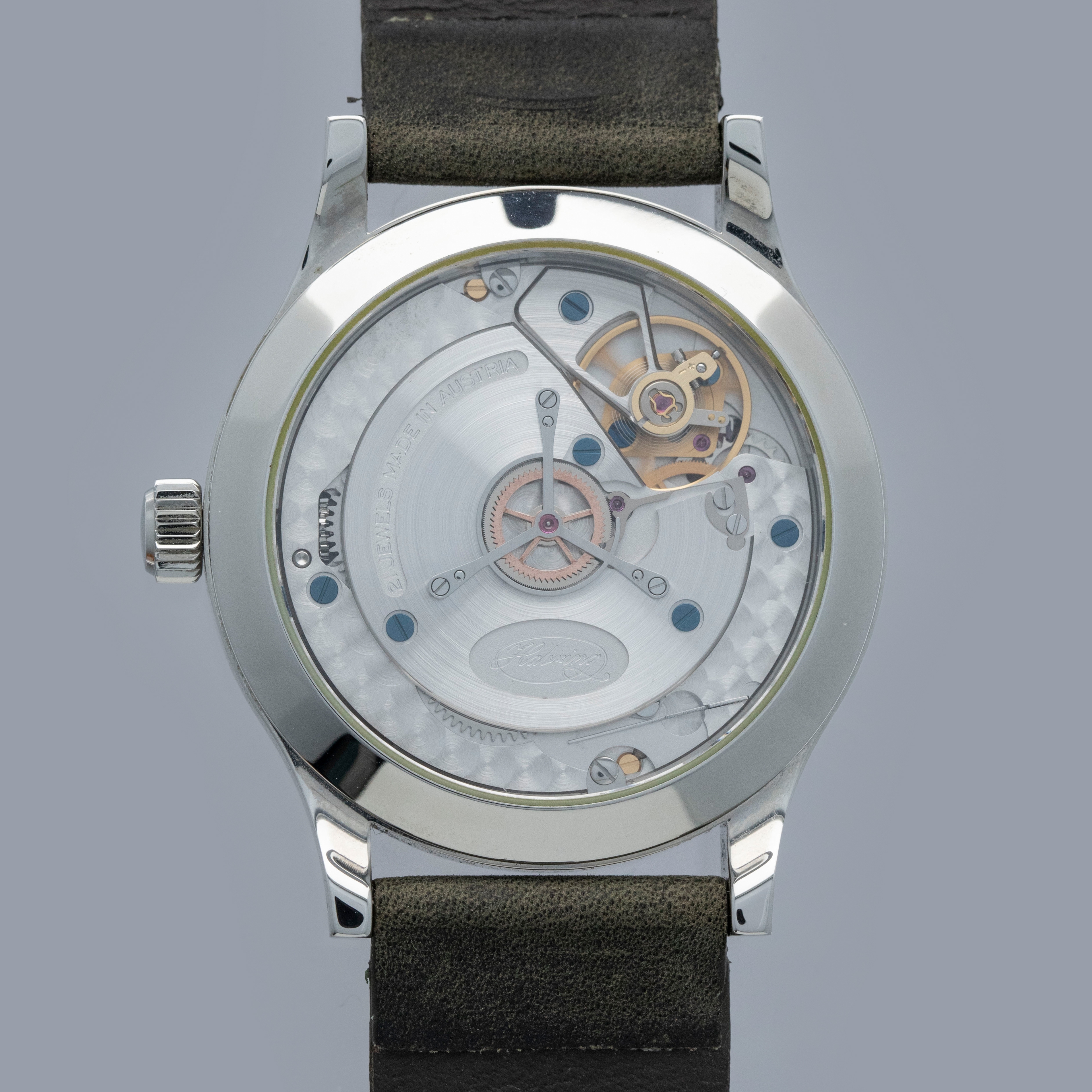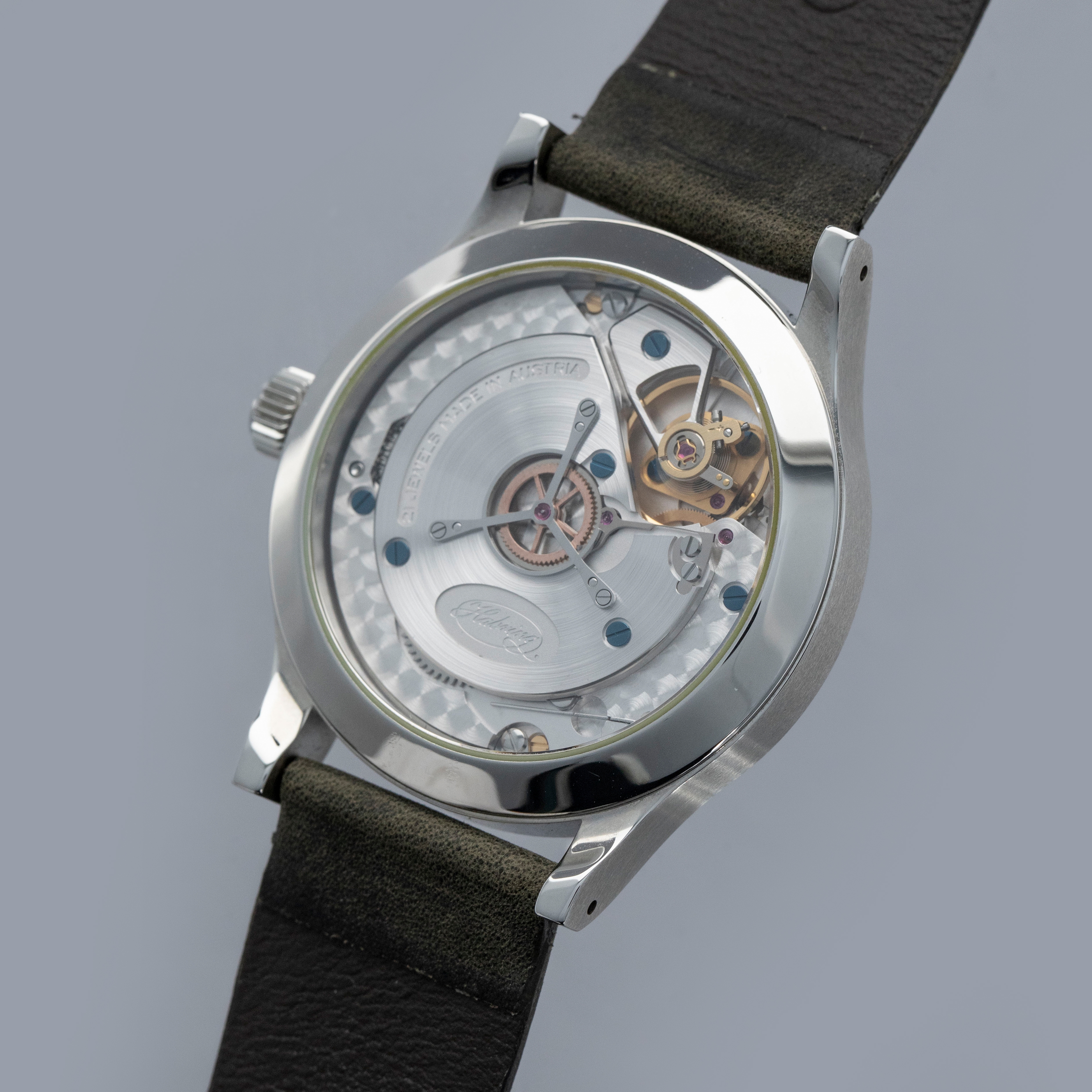 Developed, manufactured, and assembled in Austria, the Foudroyante-Felix is powered by Habring's in-house cal. A11F movement, which features a module that powers its deadbeat seconds hand that announces itself via its quartz movement-like jumping motion, in addition to its additional 'flashing second' hand that showcases the beat of its escape wheel at 9 o'clock.
