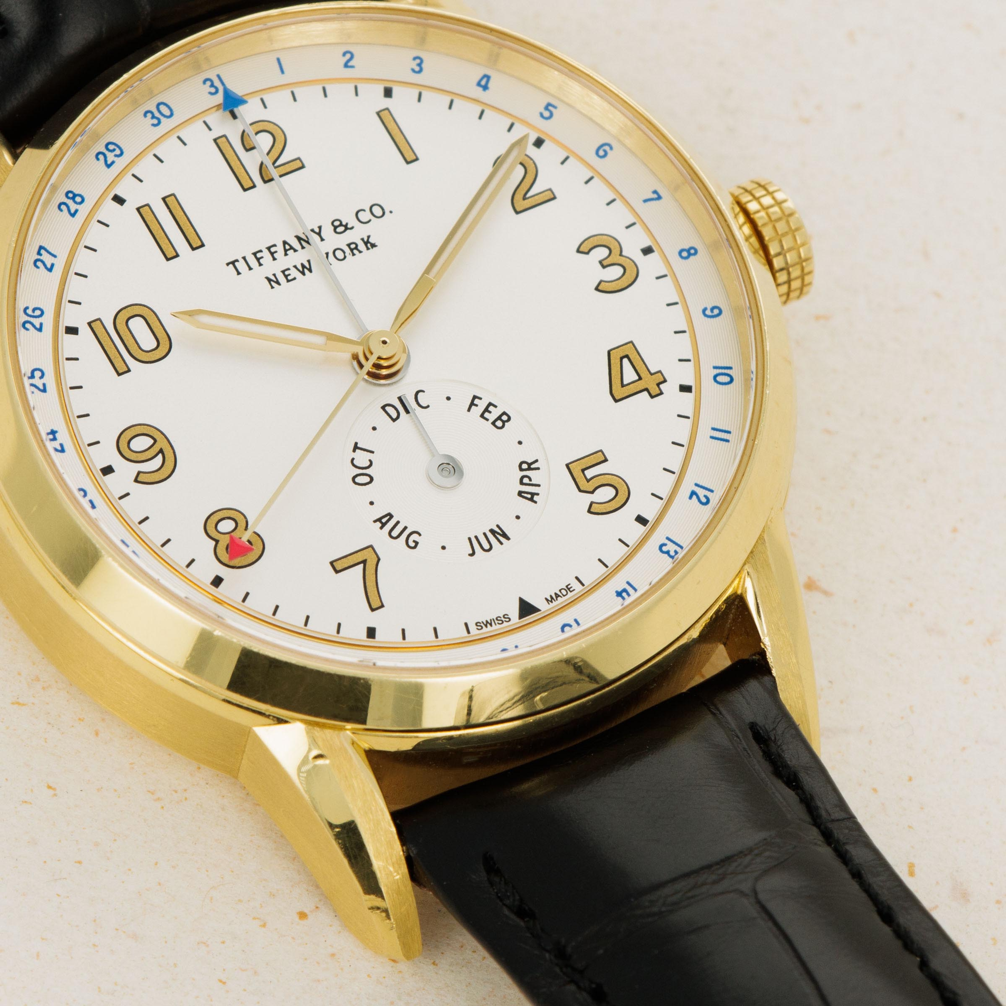 While Tiffany & Co. might be best known for their stunning jewellery, co-signed dials and historic prowess as a powerhouse of design, Tiffany & Co. also have a rich history in watchmaking too with several important patents to their name that go back over 100 years such as the patent for the first luminous-painted numerals on a watch dial in 1903 amongst other things, like Charles Tiffany opening one of the largest watchmaking facilities in Geneva in 1874. With an esteemed heritage for watchmaking, the brand decided to revisit their roots by opening a factory in 2013 in southern Switzerland. Two years later in 2015, they launched the CT60 collection with a heritage-inspired aesthetic. As part of that collection, the model we have here is the month and date calendar limited edition variant that features a silver dial with a pointer date function and a pointer month subdial at 6 o’clock. Inspired by FDR's personal Tiffany timepiece, the watch measure 40mm in width and cased in 18k YG. Powered by a nicely finished caliber from Dubois Depraz, their cal. 5933, the CT60 blends Tiffany’s horological heritage with their strengths as a modern icon of jewellery to create something truly unique and distinctively “Tiffany.”