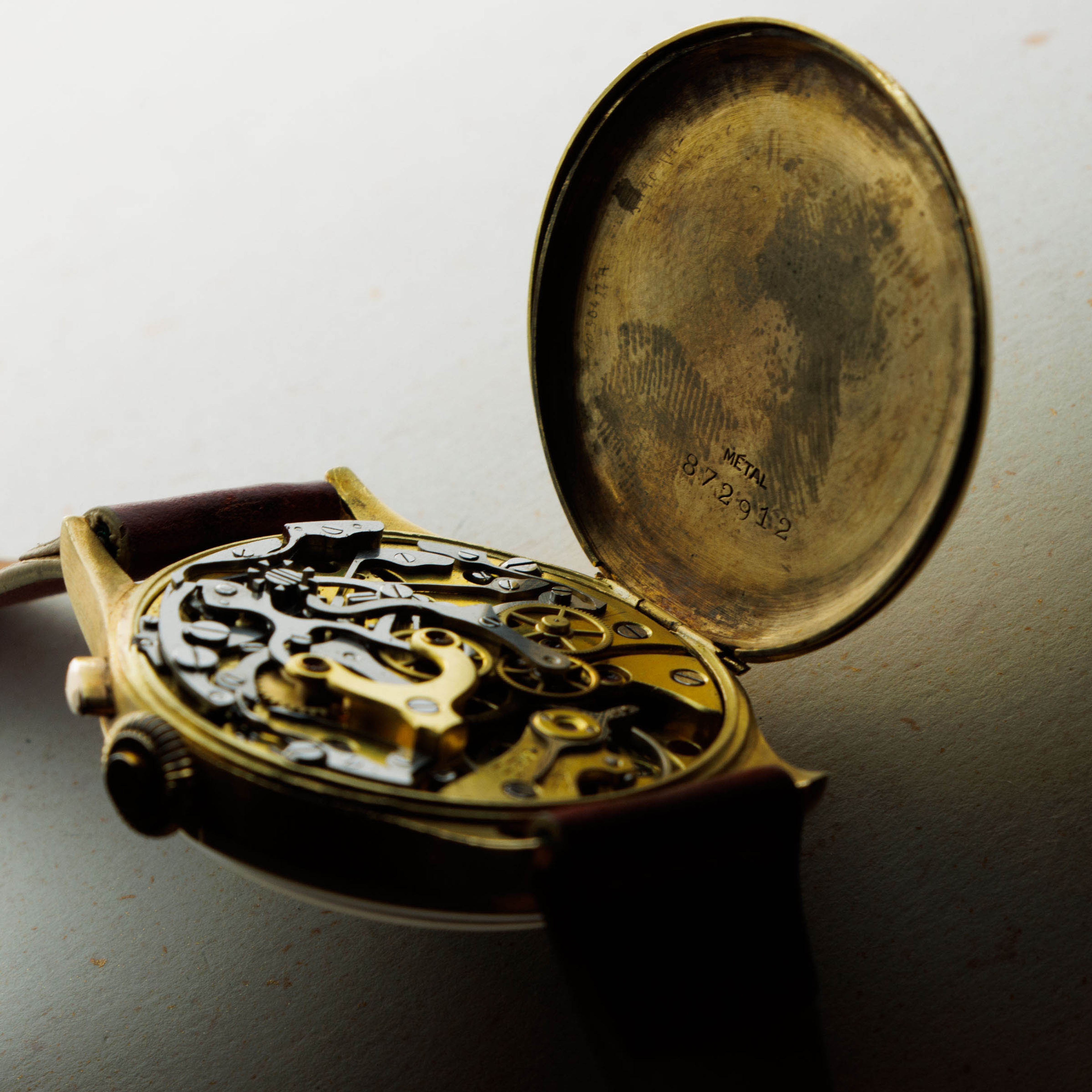 Watch is in excellent overall condition. The hinged case is in fine condition and does not have any dents. Lugs are full and well proportioned The dial is in excellent condition showing a light even patina that highlights the multiple tones and colors of the dial. The dial with minor spotting and oxidation that is consistent with the age of the watch.