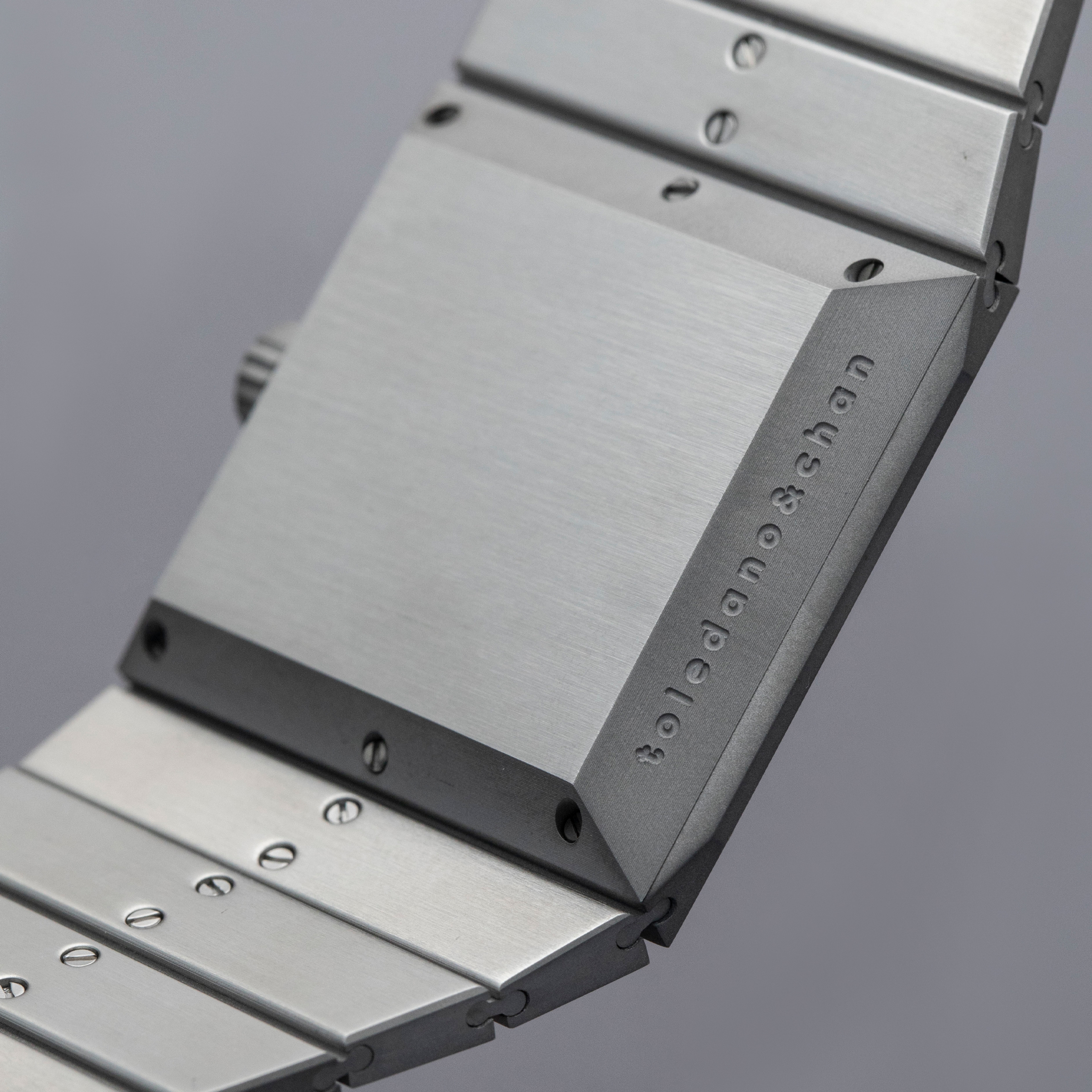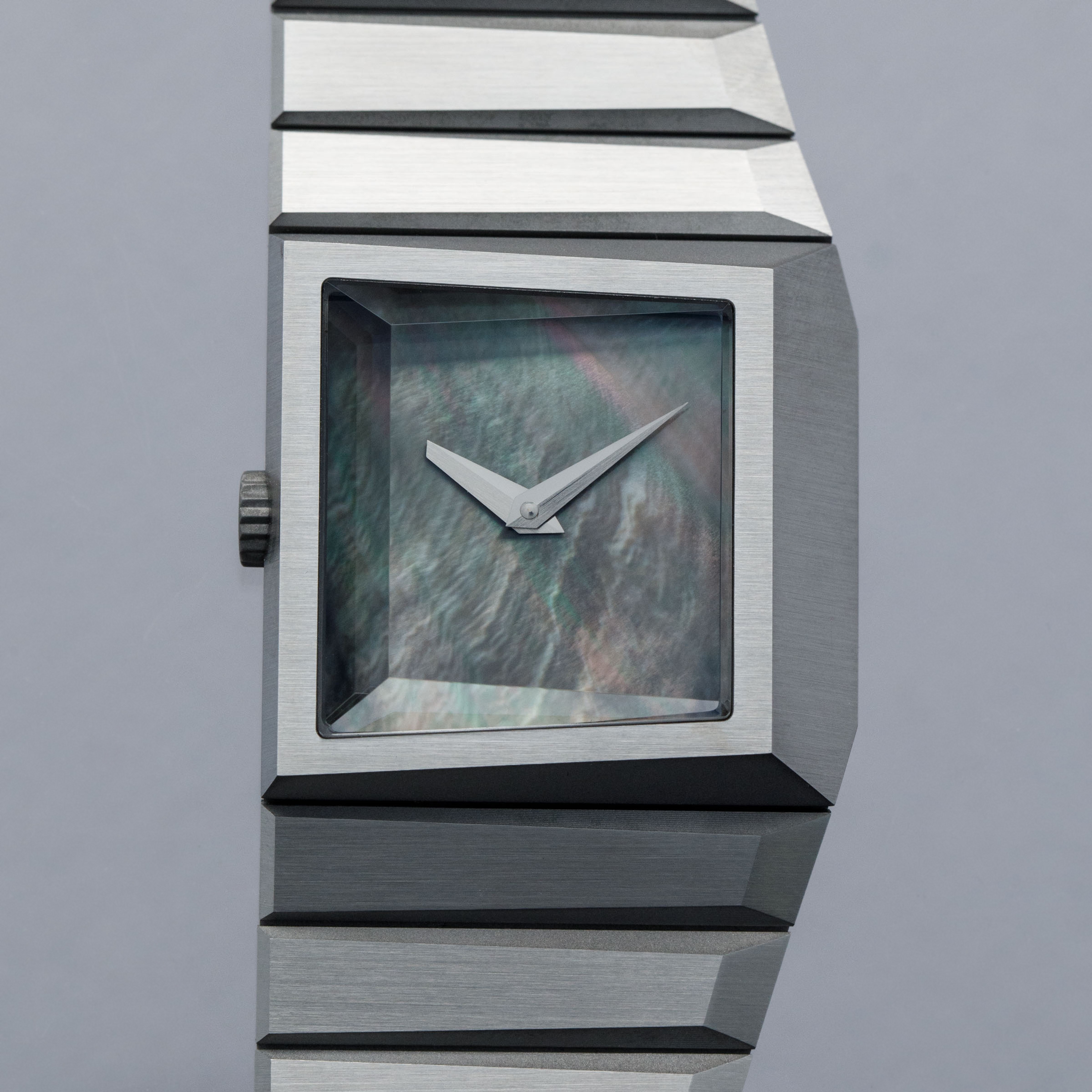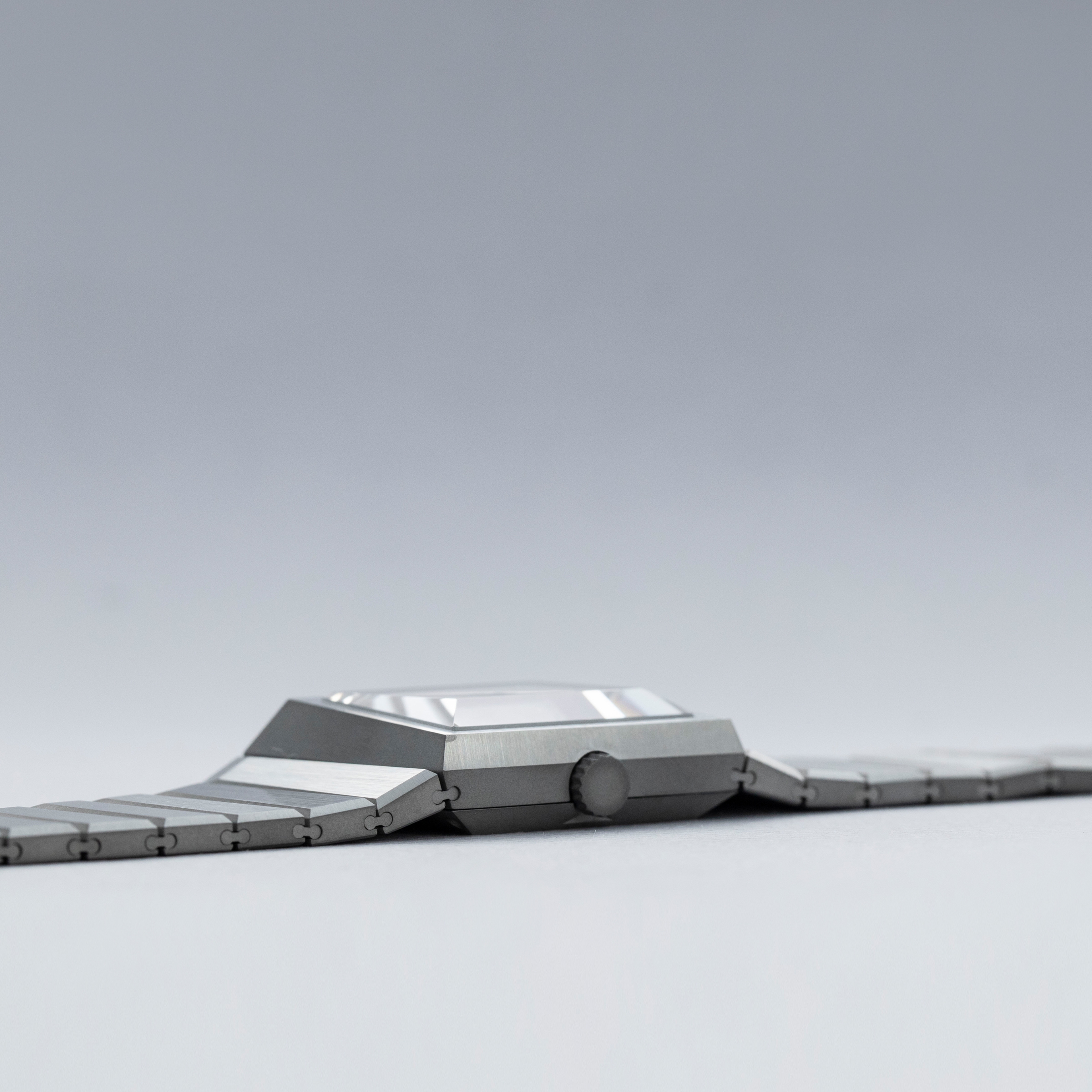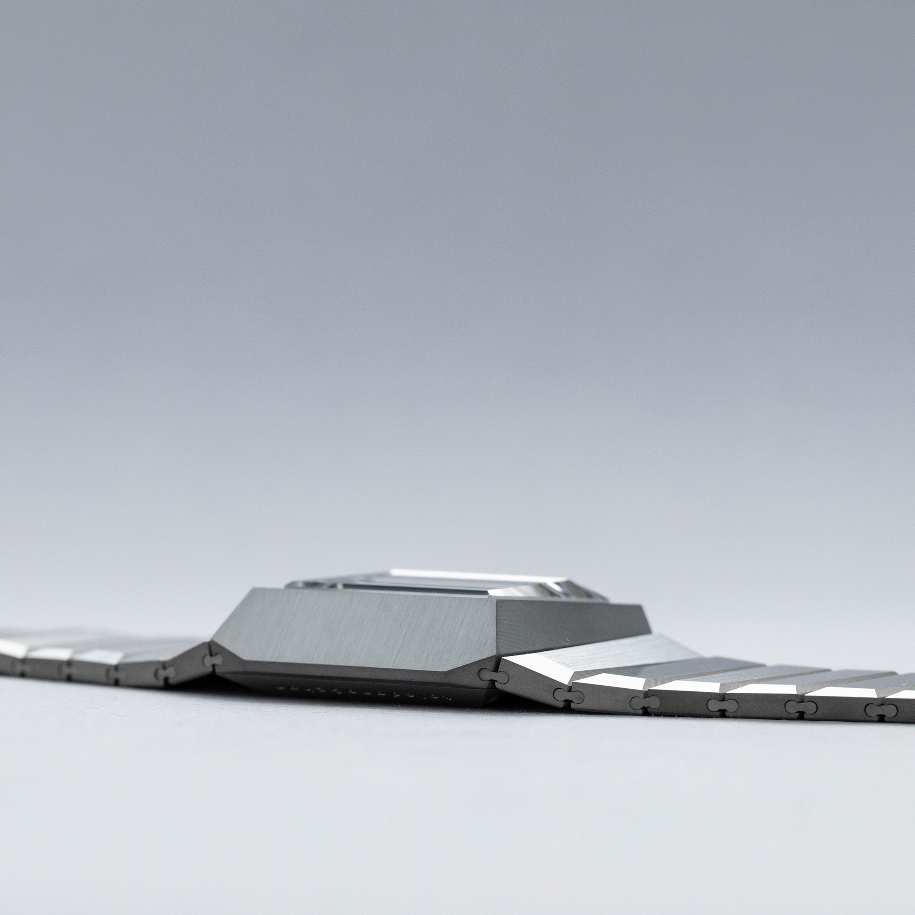 Inspired by 1970s brutalist architecture, the B/1.2's asymmetric destro case is intriguingly three-dimensional thanks to how its case, bracelet, and display are all angled towards the wearer.