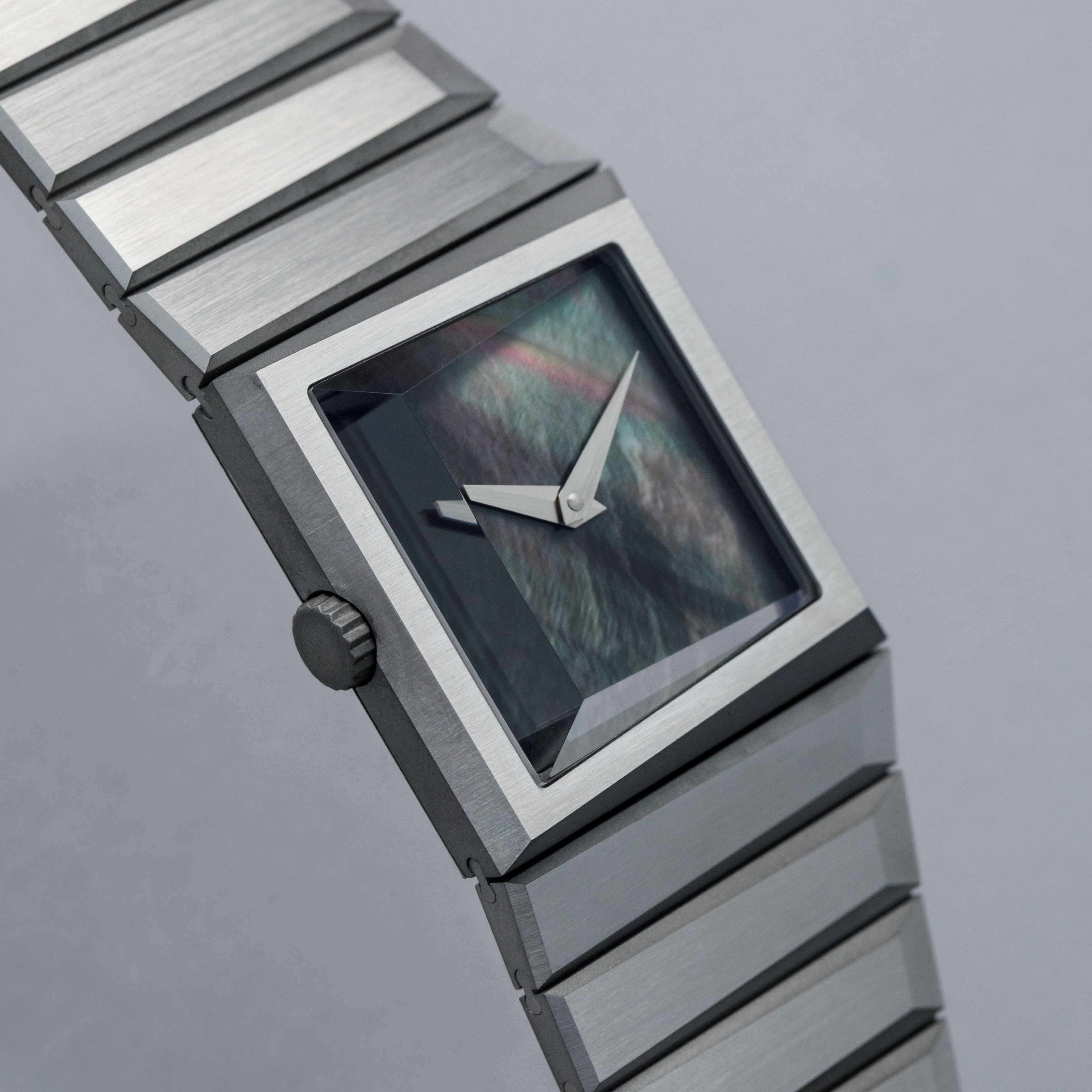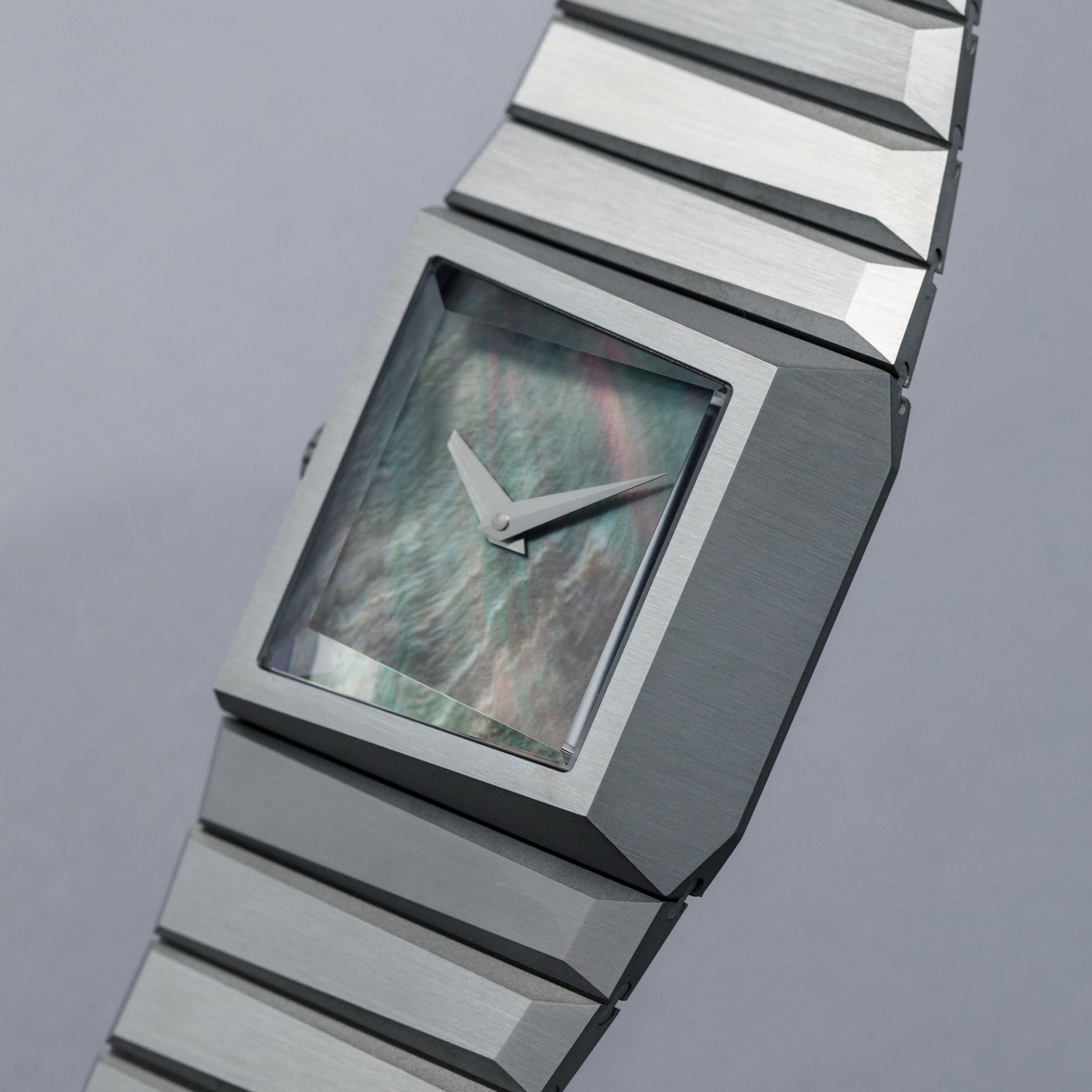 Launched in 2024 as one of horology’s most exciting independent watchmakers, Toledano & Chan was founded by geezer extraordinaire Phil Toledano and his business partner Alfred Chan as a way to merge a shared appreciation for brutalist architecture with their passion for horology. Emerging from that shared vision, Toldano & Chan launched their first watch, the B/1, inspired by the brutalist Met Breuer building in New York City. Debuting in 2025 as a second variant of the B/1, the B/1.2 was launched from the B/1’s very same platform, with the same three-dimensional case that measures 33.5mm wide but ranges from 9.1mm to 10.4mm thick. However, instead of the B/1’s lapis lazuli dial, the B/1.2 features another stone for its dial, Tahitian Mother of Pearl, which is angled with the case towards the wearer. Boasting a destro case design with its crown at 9 o’clock and offered on an integrated bracelet with an exaggerated taper that ensures every single link on the bracelet is uniquely shaped, the B/1.2 showcases an unparalleled level of forethought and design, with the bevel on the 3 o’clock side of the B/1.2’s stainless steel case tracing its way along the entirely of its bracelet. With its uninterrupted silver mother of pearl dial and unique design, the Toledano & Chan B/1.2 is a true triumph of independent watchmaking that deservedly sold out of all of its 175 pieces.