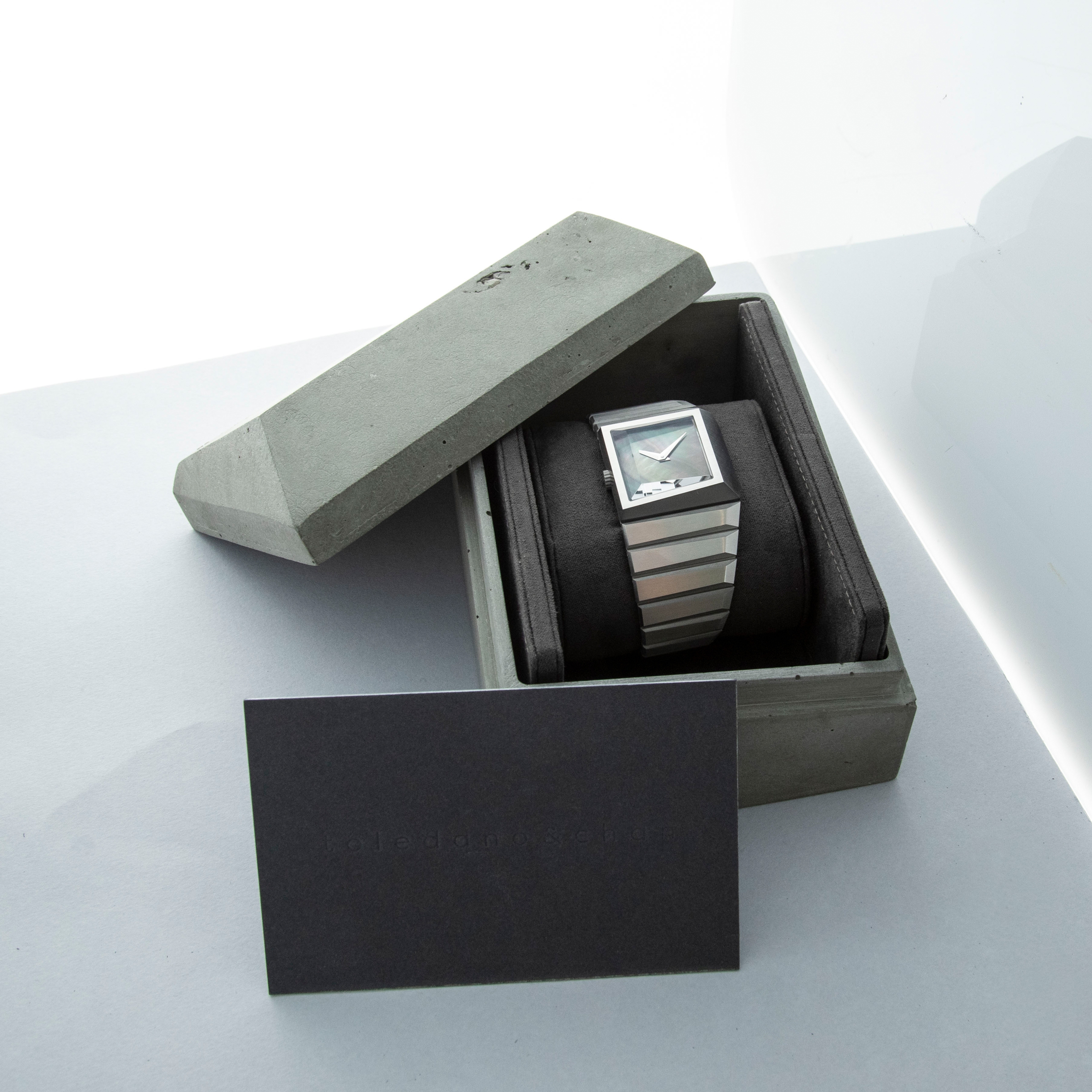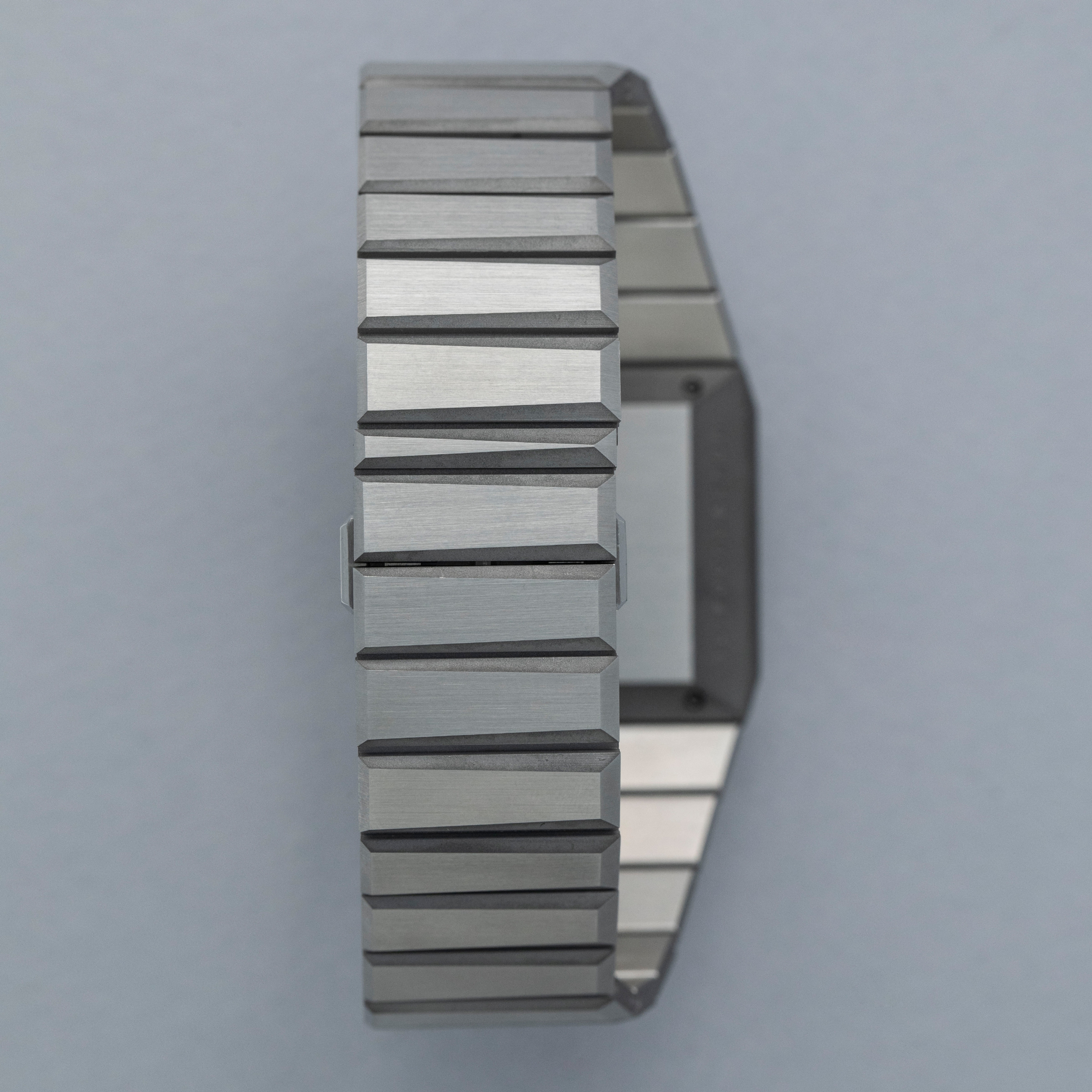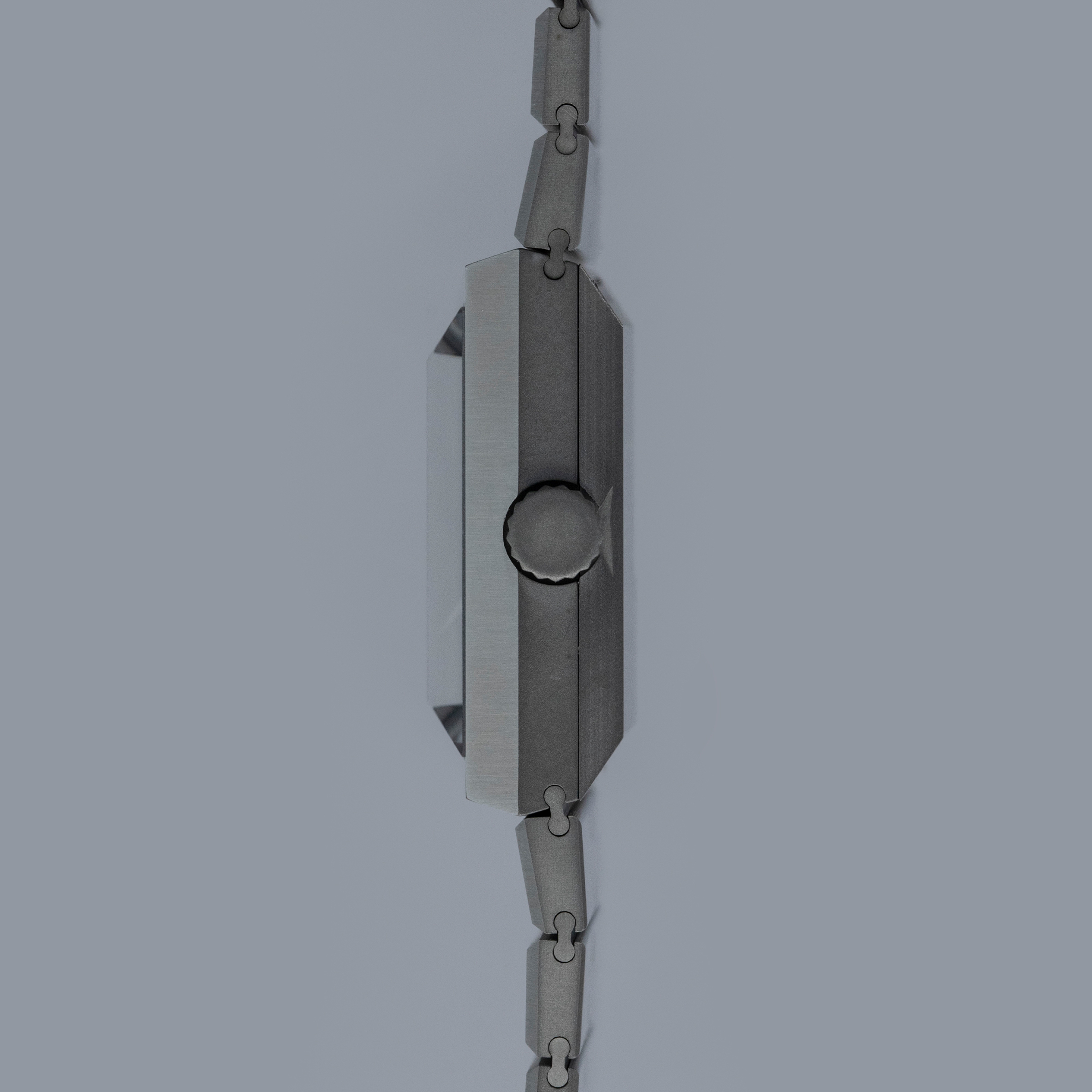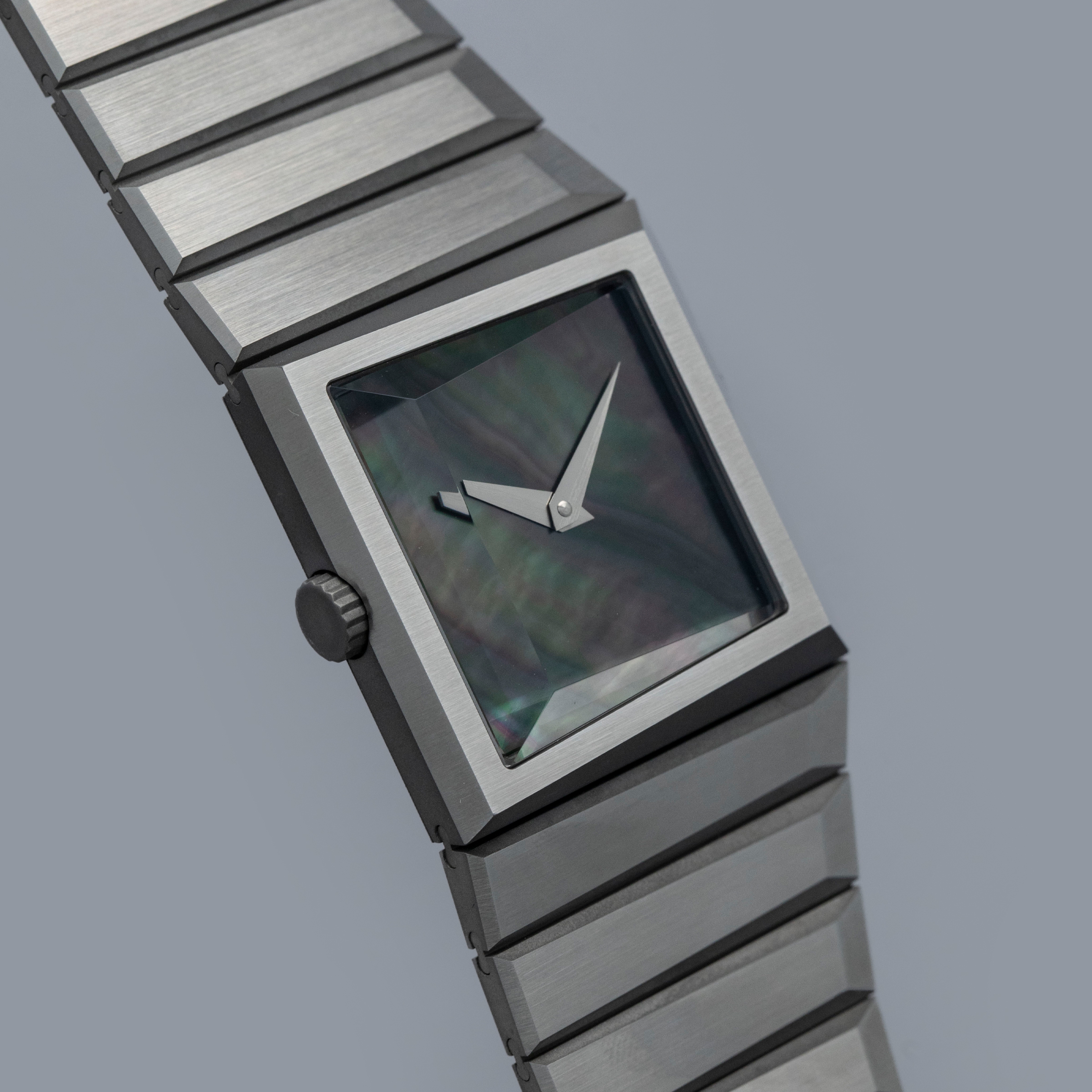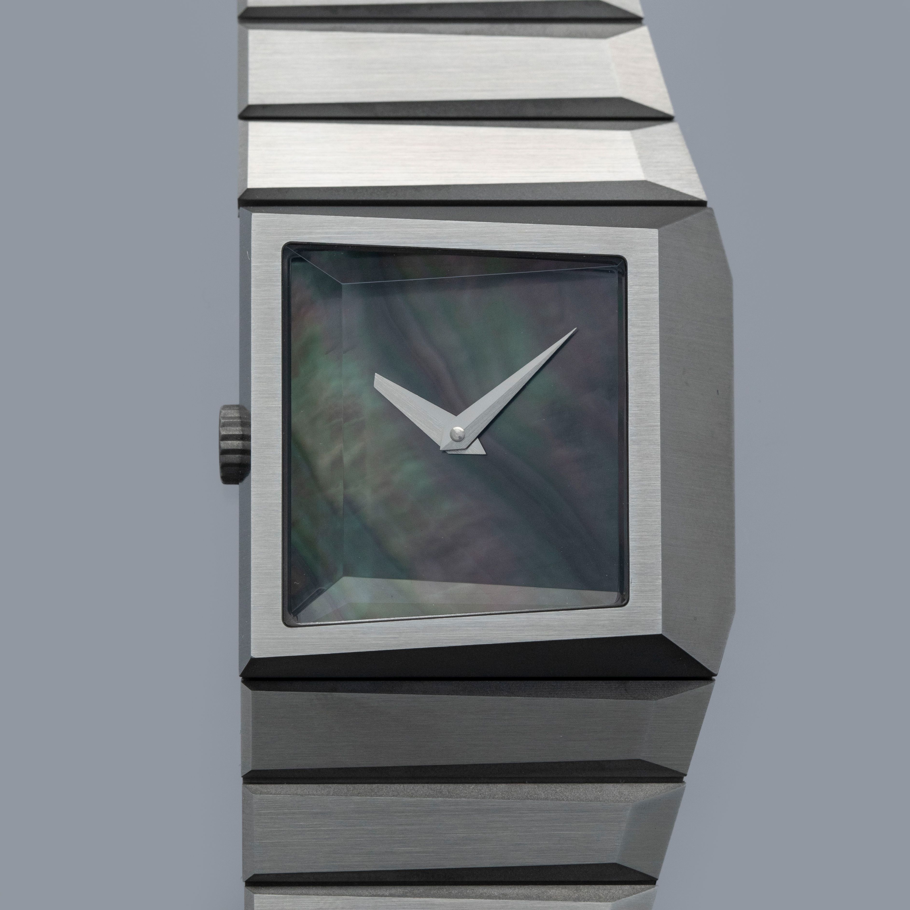Inspired by 1970s brutalist architecture, the B/1.2's asymmetric destro case is intriguingly three-dimensional thanks to how its case, bracelet, and display are all angled towards the wearer.