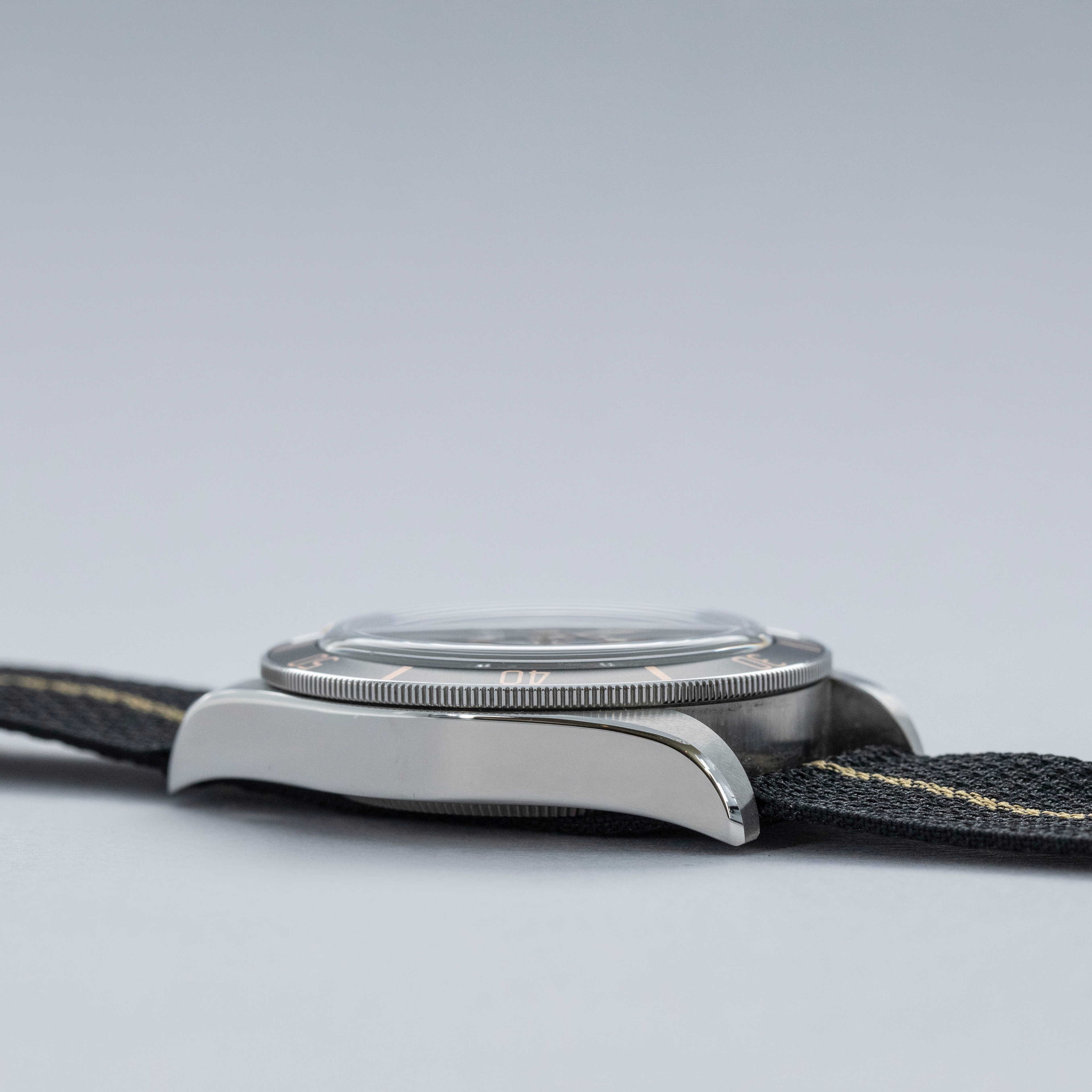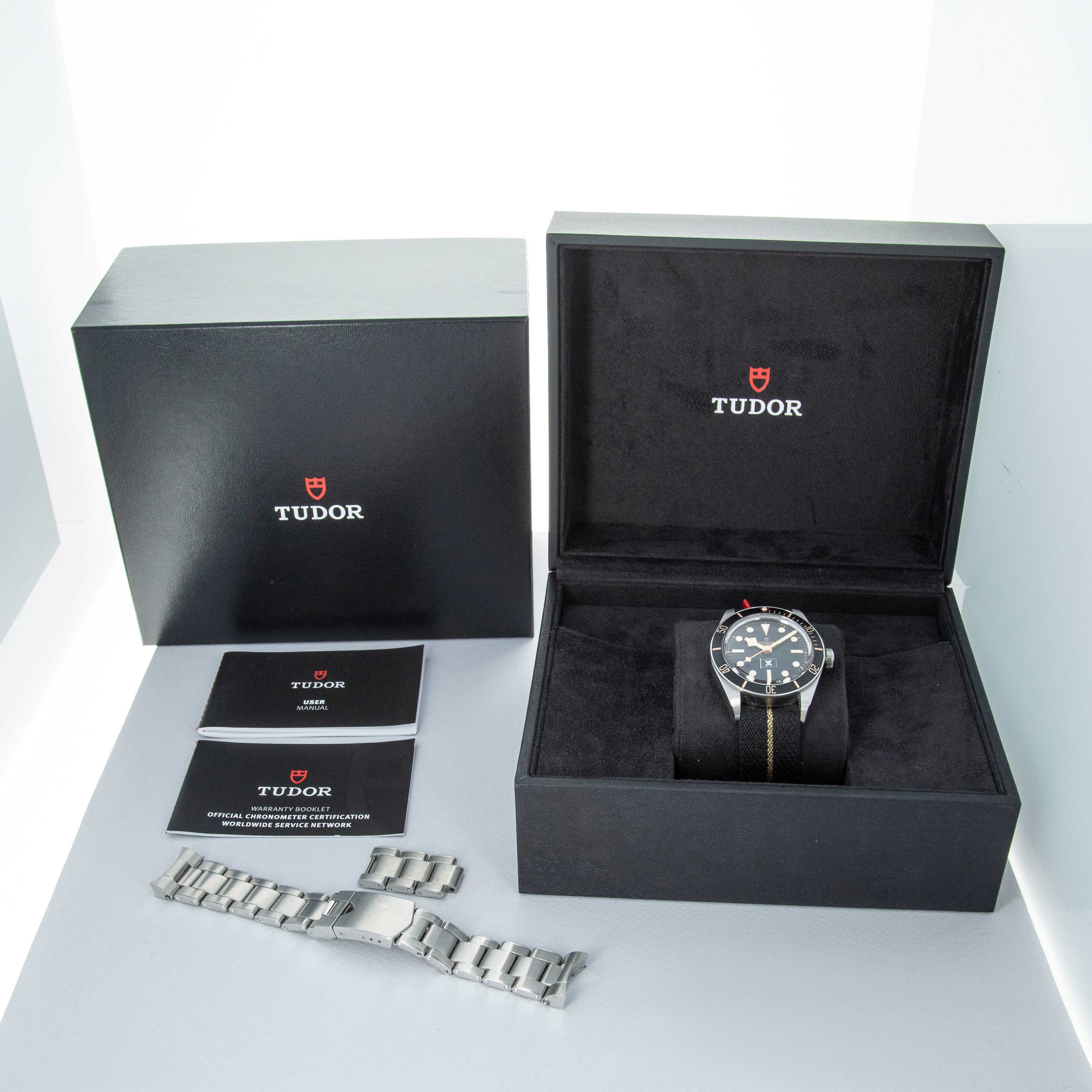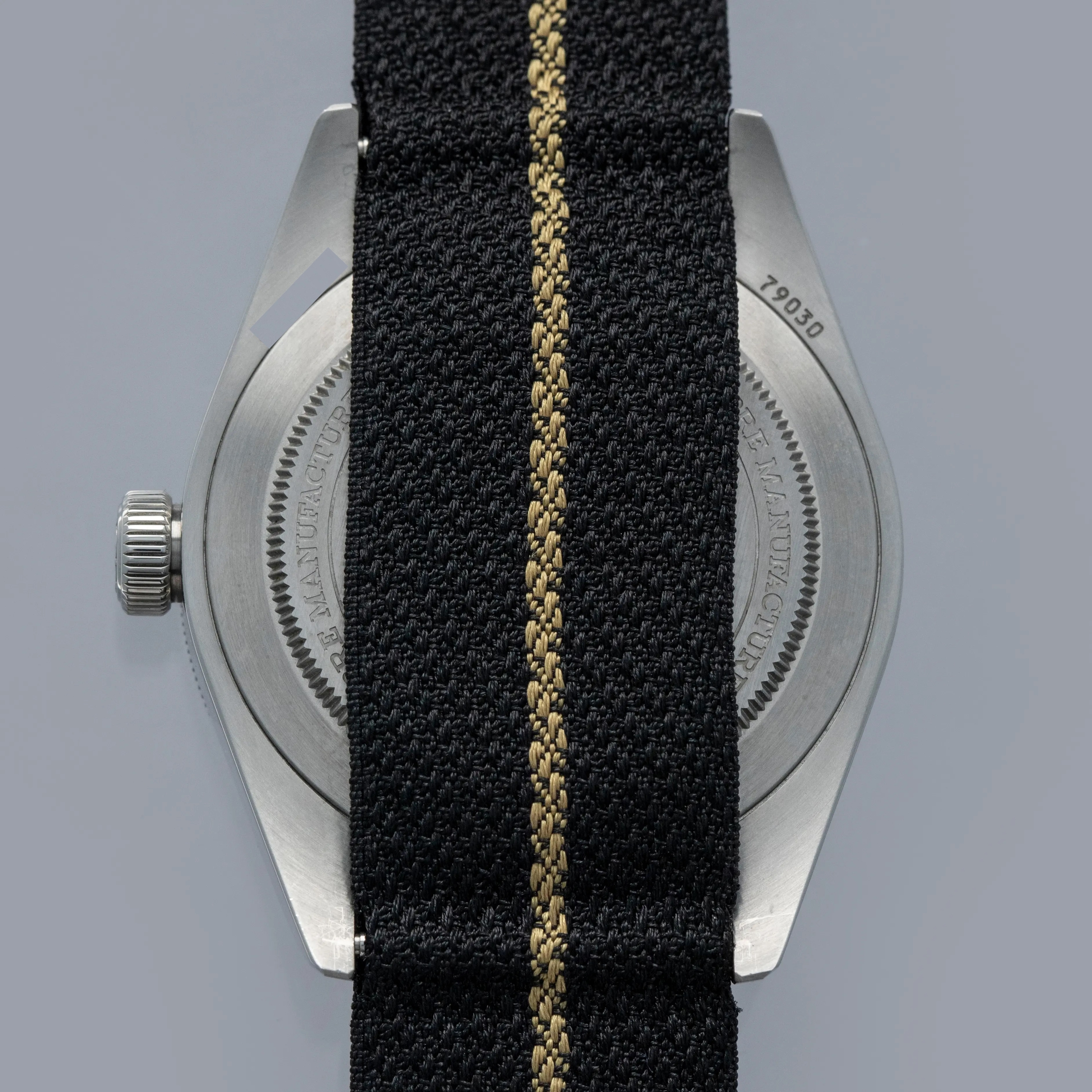 Watch is in overall near-mint condition. The steel case shows light signs of wear and minor surface scratches to the polished sections, with additional marks visible on the backs of the lugs from a strap change, while the case back remains very clean. The dial and hands remain like new. It is fitted with a Tudor fabric strap in near-mint condition and includes the original steel bracelet. Comes with inner and outer boxes and two booklets. Please note that the original guarantee card is NOT included.
