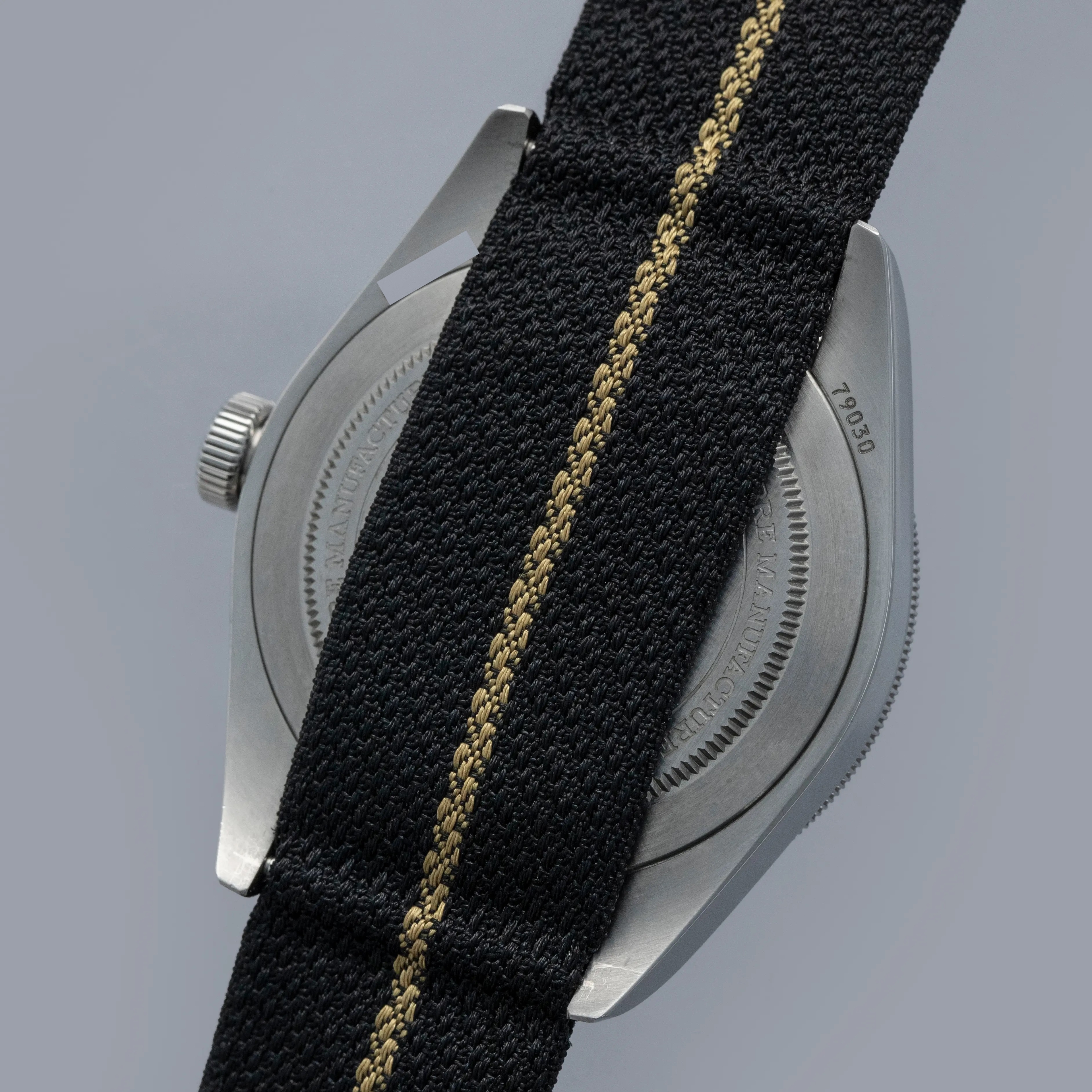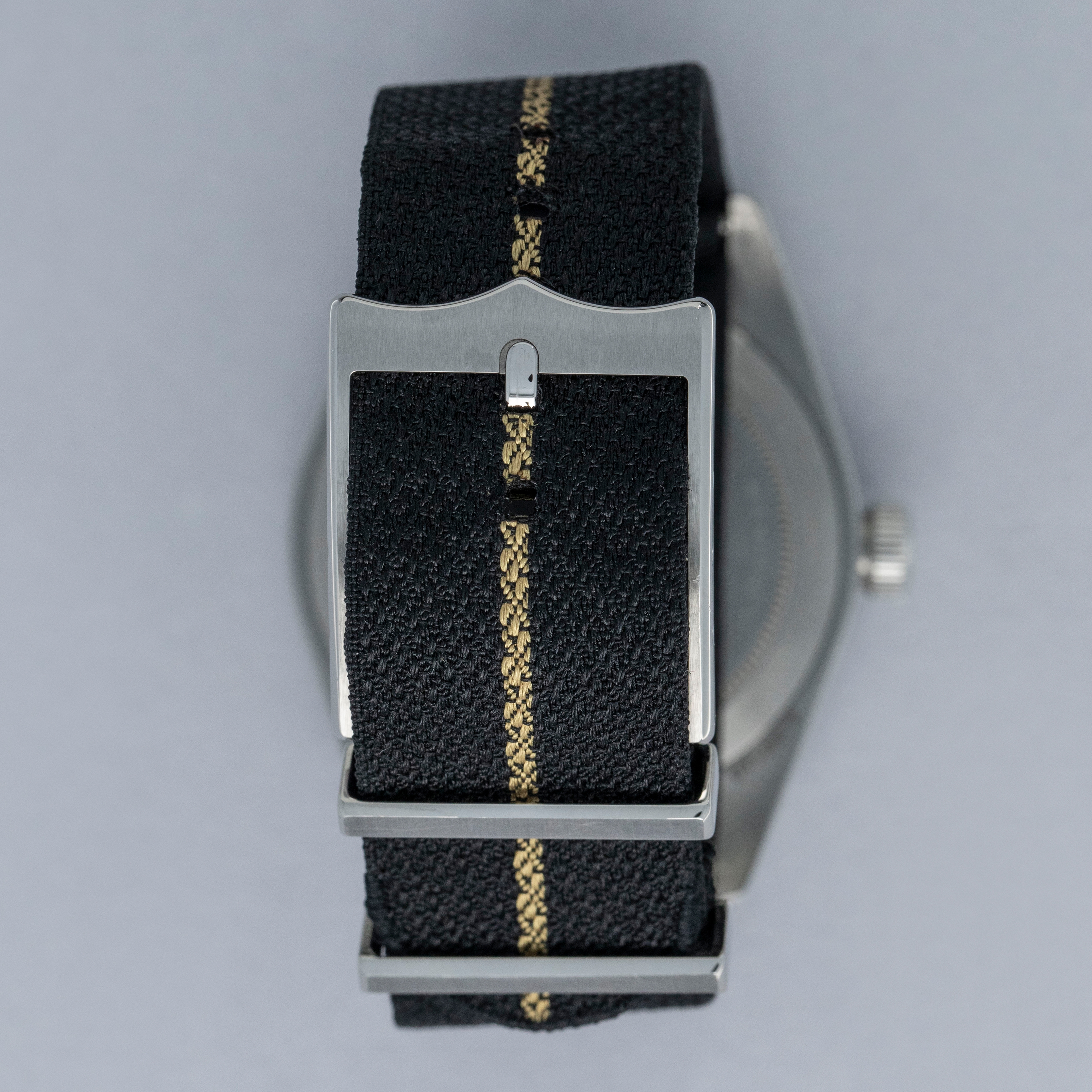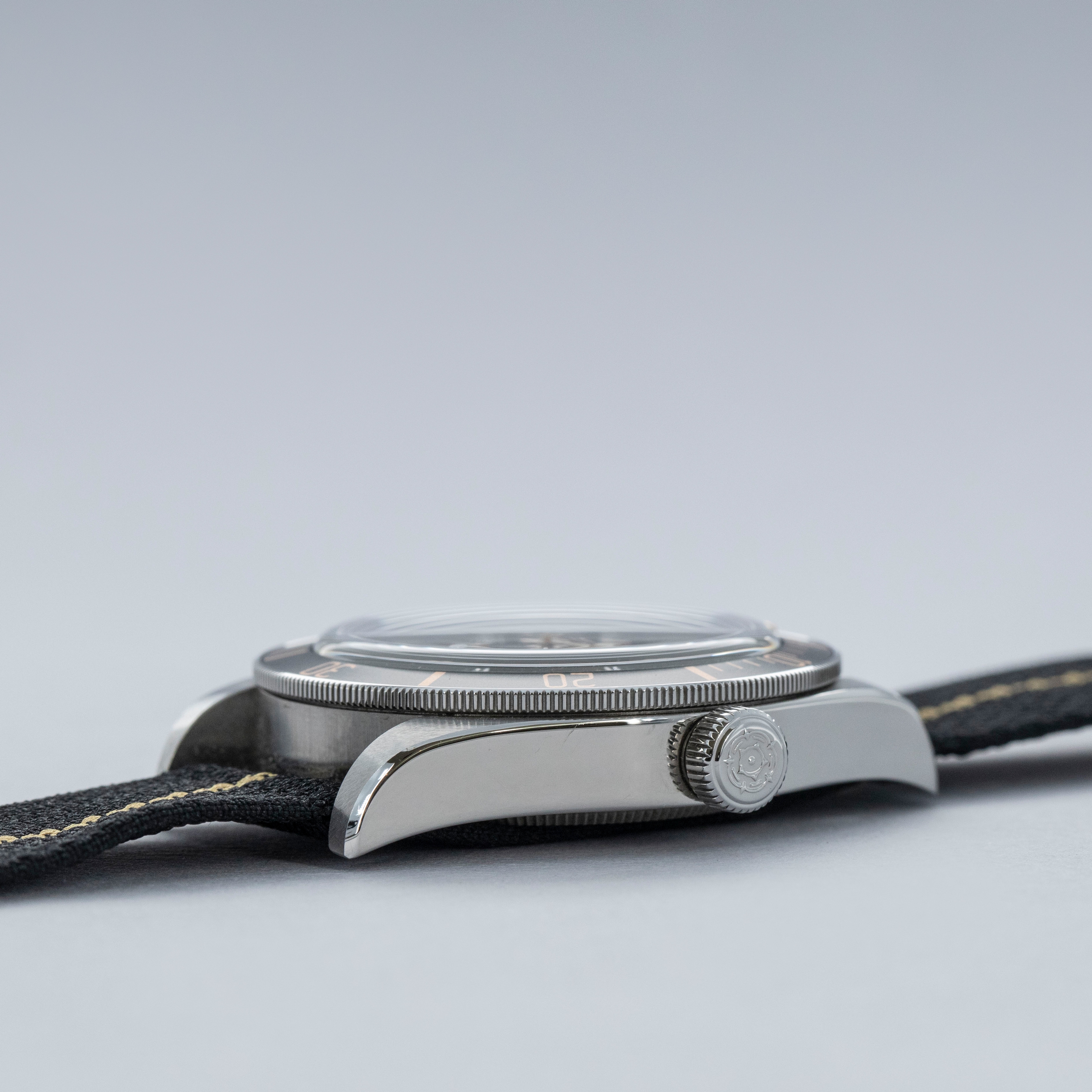 Watch is in overall near-mint condition. The steel case shows light signs of wear and minor surface scratches to the polished sections, with additional marks visible on the backs of the lugs from a strap change, while the case back remains very clean. The dial and hands remain like new. It is fitted with a Tudor fabric strap in near-mint condition and includes the original steel bracelet. Comes with inner and outer boxes and two booklets. Please note that the original guarantee card is NOT included.