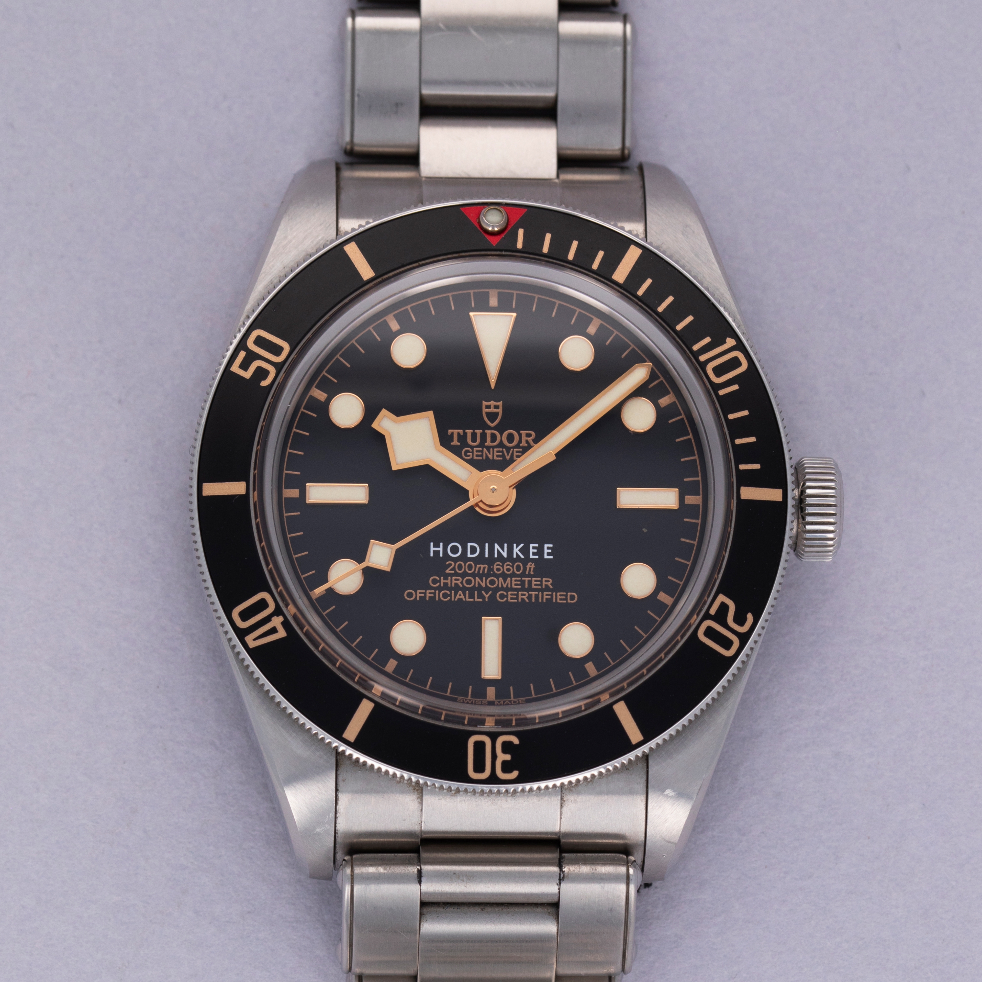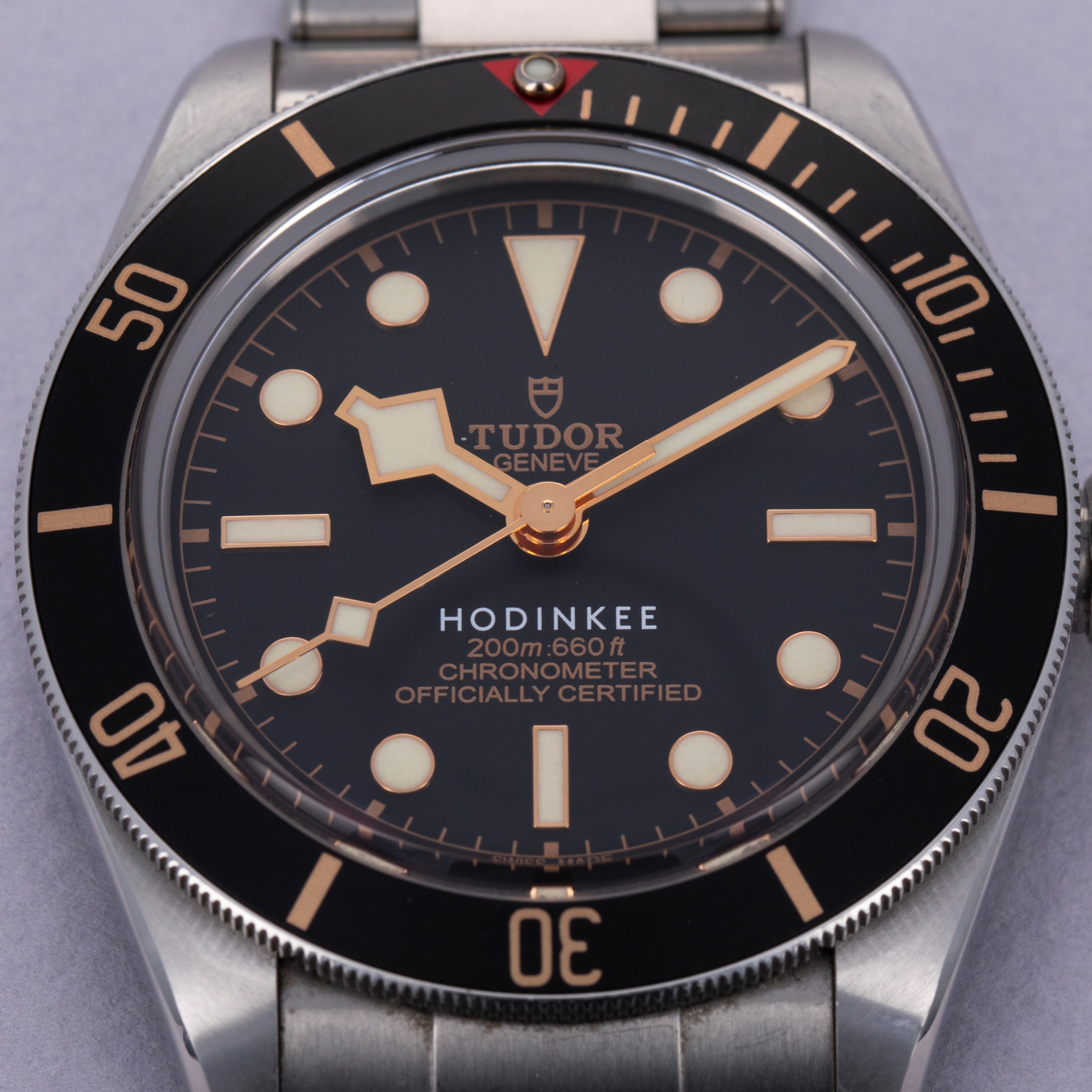 A subtle white 'HODINKEE' inscription at 6 o'clock on the BB58's black dial differentiates this watch and the other 99 examples that Hodinkee had produced as timepieces that you likely won't see every day.