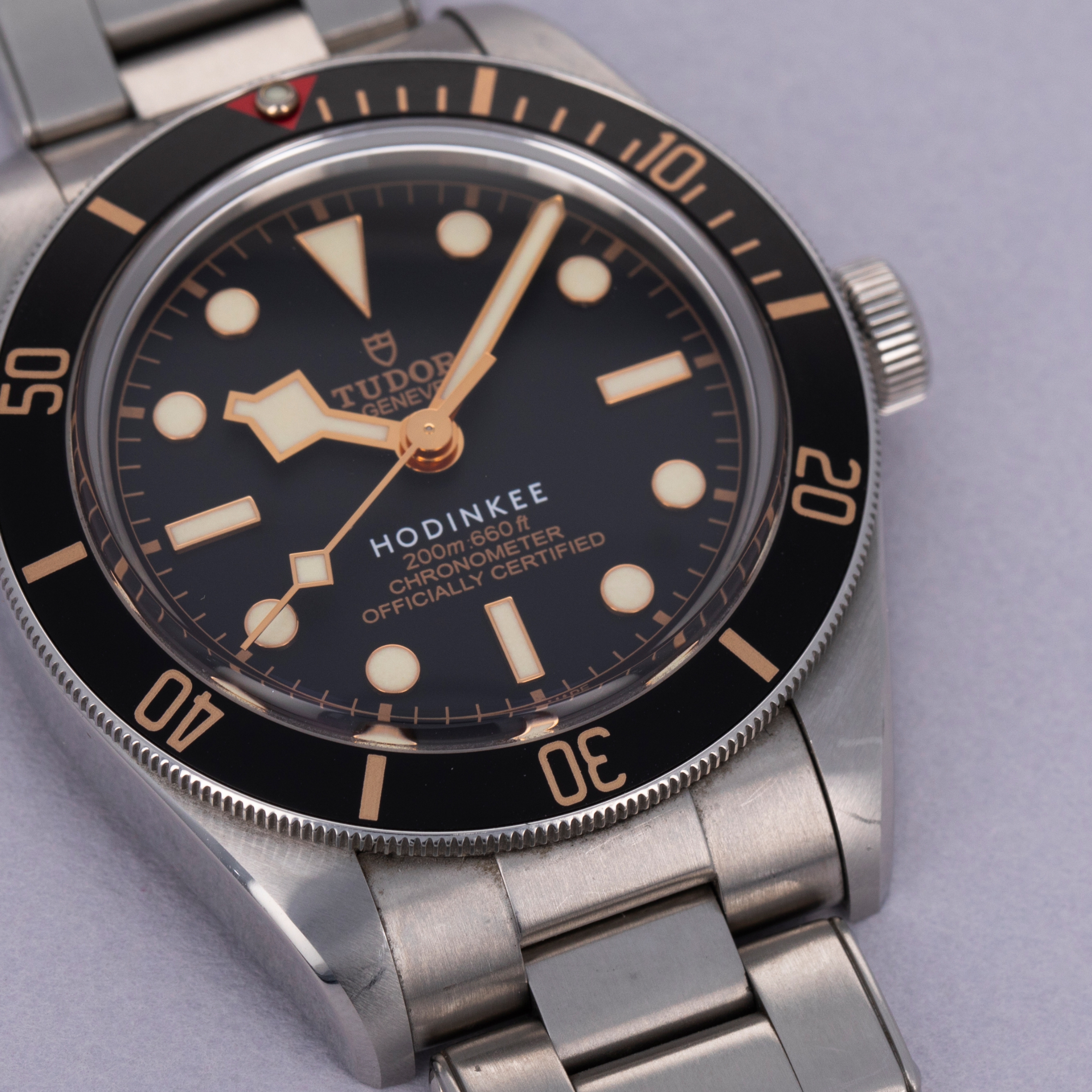 Unveiled in 2012 at Baselworld, the Tudor Black Bay has quickly become one of Tudor’s best-selling collections as it takes direct inspiration from the iconic Tudor Submariner ref. 7922. Seeking to build on the aesthetics of the early Submariner models, the Black Bay family is beloved by Tudor’s collectors for its vintage-inspired design traits like its faux-rivet bracelet, gilt inscriptions, anodized aluminum bezel insert, and large crown. Further refined in 2018, Tudor launched the Black Bay Fifty-Eight as they dove even deeper into their archives and drew inspiration from their 1958 Submariner “Big Crown” Ref. 7924. With its red arrow-featuring dive bezel, thinner profile and 2mm smaller case diameter of 39mm, the BB58, as it is called, was a more refined version of its older sibling, with the very same depth rating of 200m – a true dive watch. Receiving intensely positive reception straight away, the BB58 has quickly become Tudor’s most popular watch. Indeed, the watch was so popular that Hodinkee, the world’s largest watch publication, decided to use the BB58 as the watch that they would get co-signed with their logo on the dial at 6 o’clock and commemorative caseback engravings as a limited production run of 100 pieces for friends and family of the company.