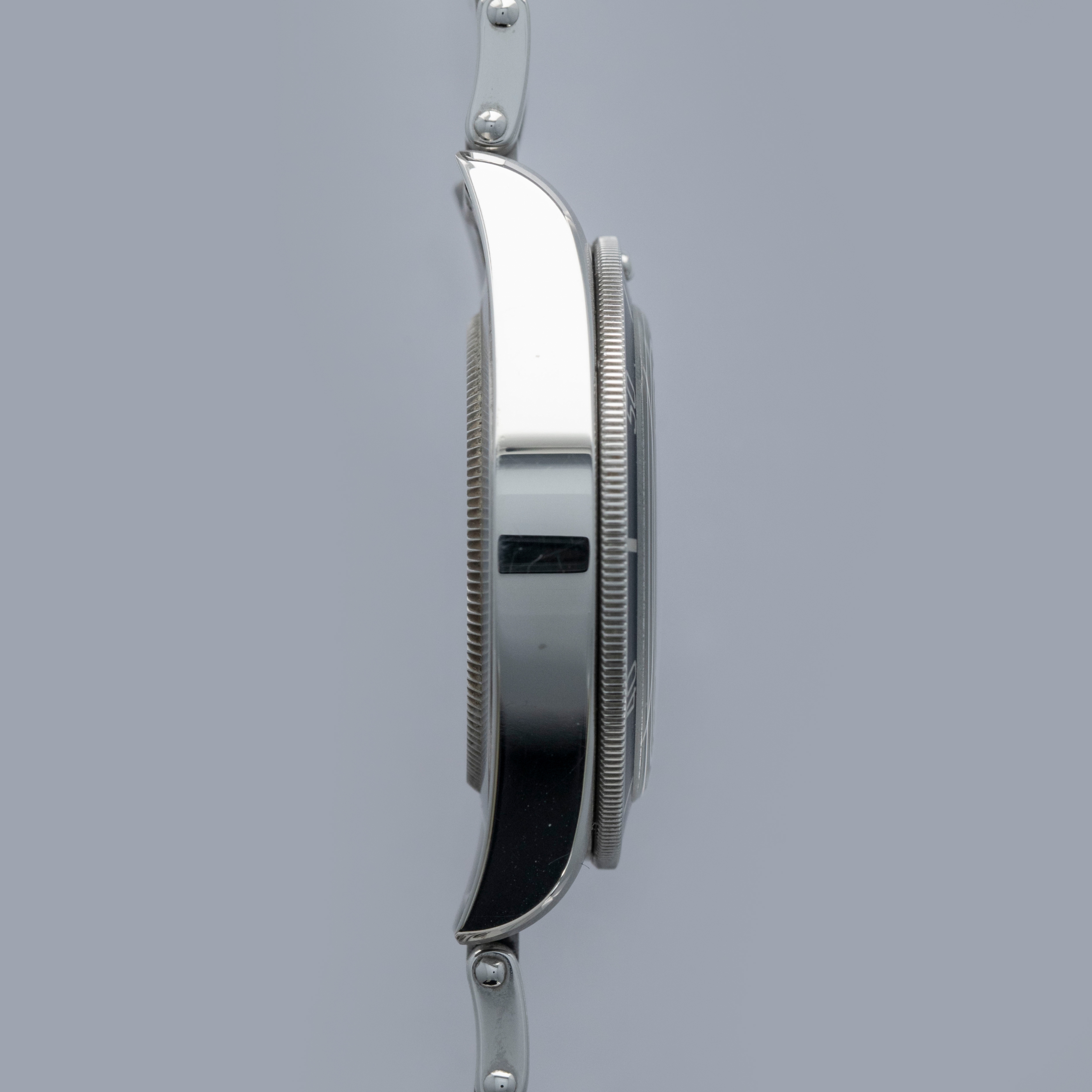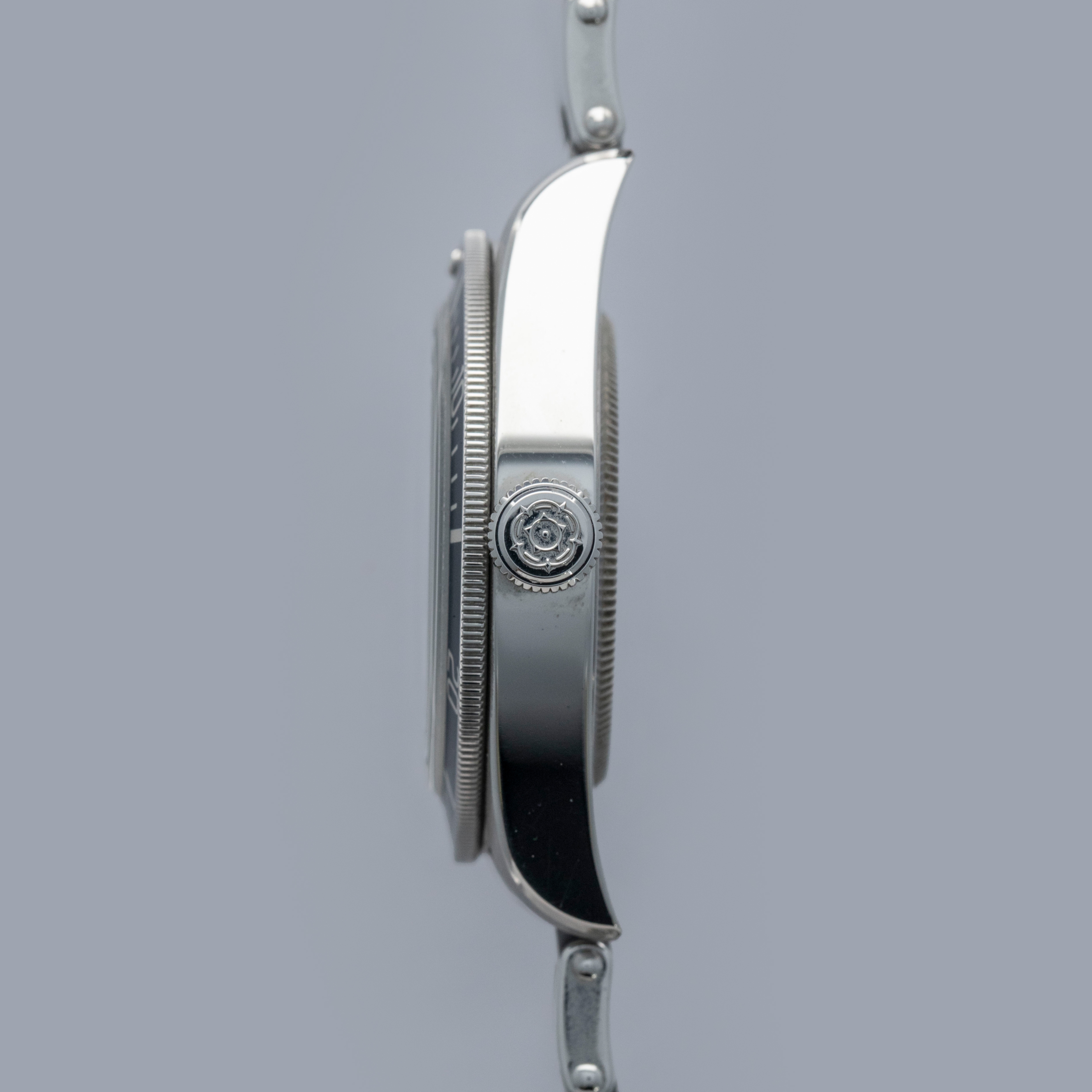 Watch is in overall excellent condition. The steel case shows light surface scratches and a couple of small nicks, while the case back and rear of the case display scuffs and signs of wear. The bezel and insert remain near mint. The dial and hands remain like new. It is fitted with a steel bracelet showing surface scuffs and no play between the links. The bracelet is fitted with 12 links and fits approximately a 7¼” wrist. Additionally, there are 2 links included. Comes complete with boxes, warranty, booklet, and two hangtags.