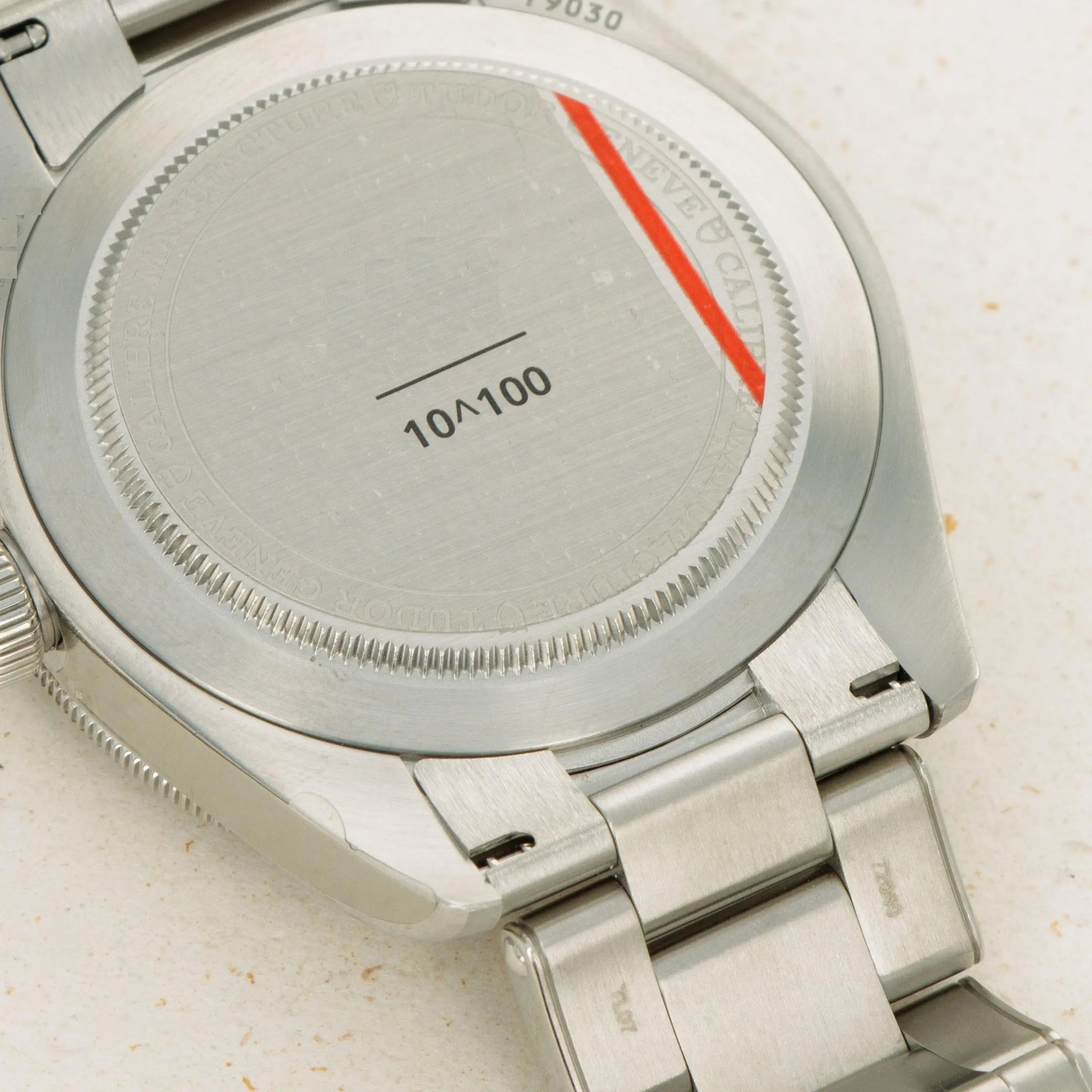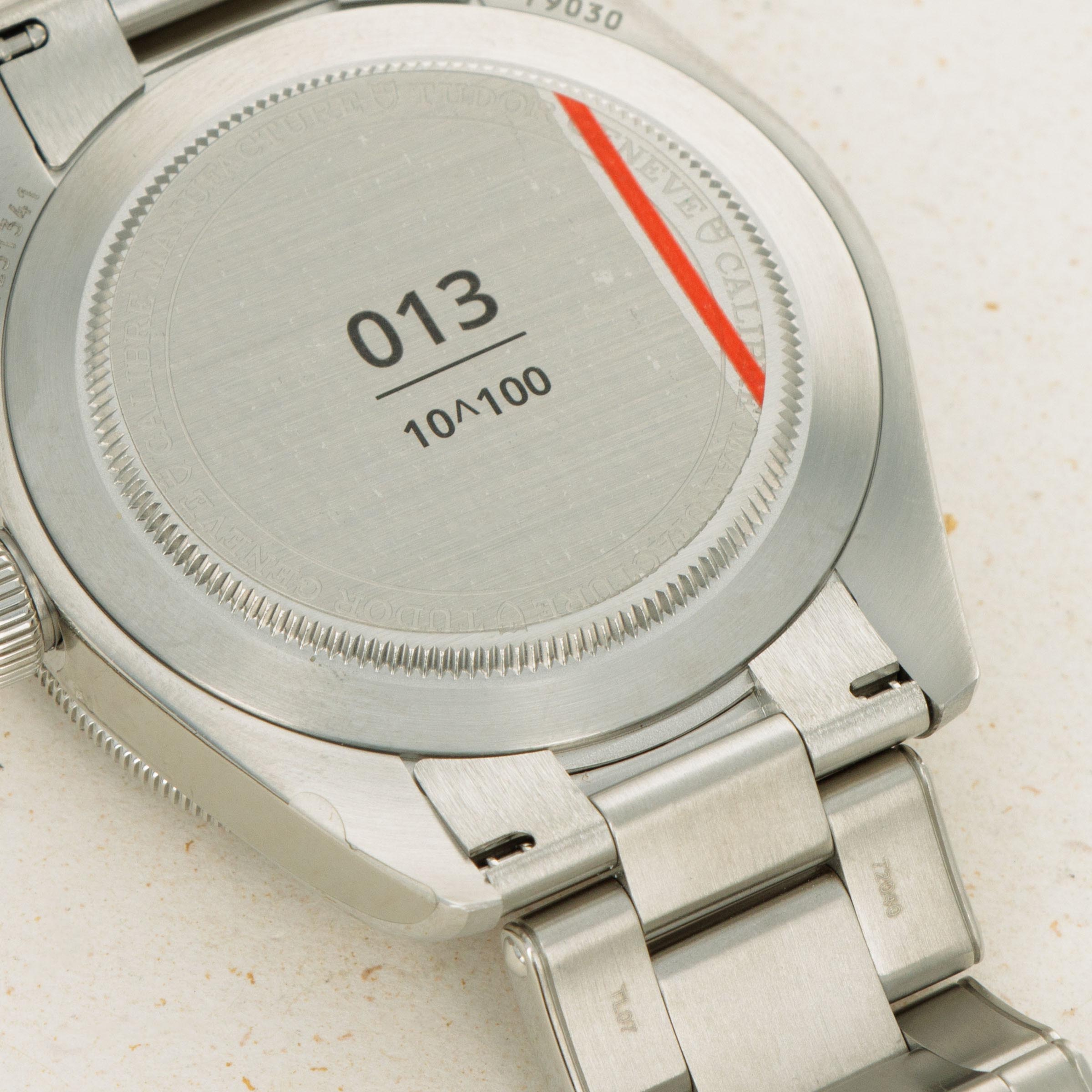Representing the vast amounts of information stored by Google, the company named themselves after the unfathomably large number a googol - one followed by 100 zeros. This decimal notation for a googol is engraved on the Watches for Good limited edition along with the individual number of each watch, with this example being number 13 of 260.