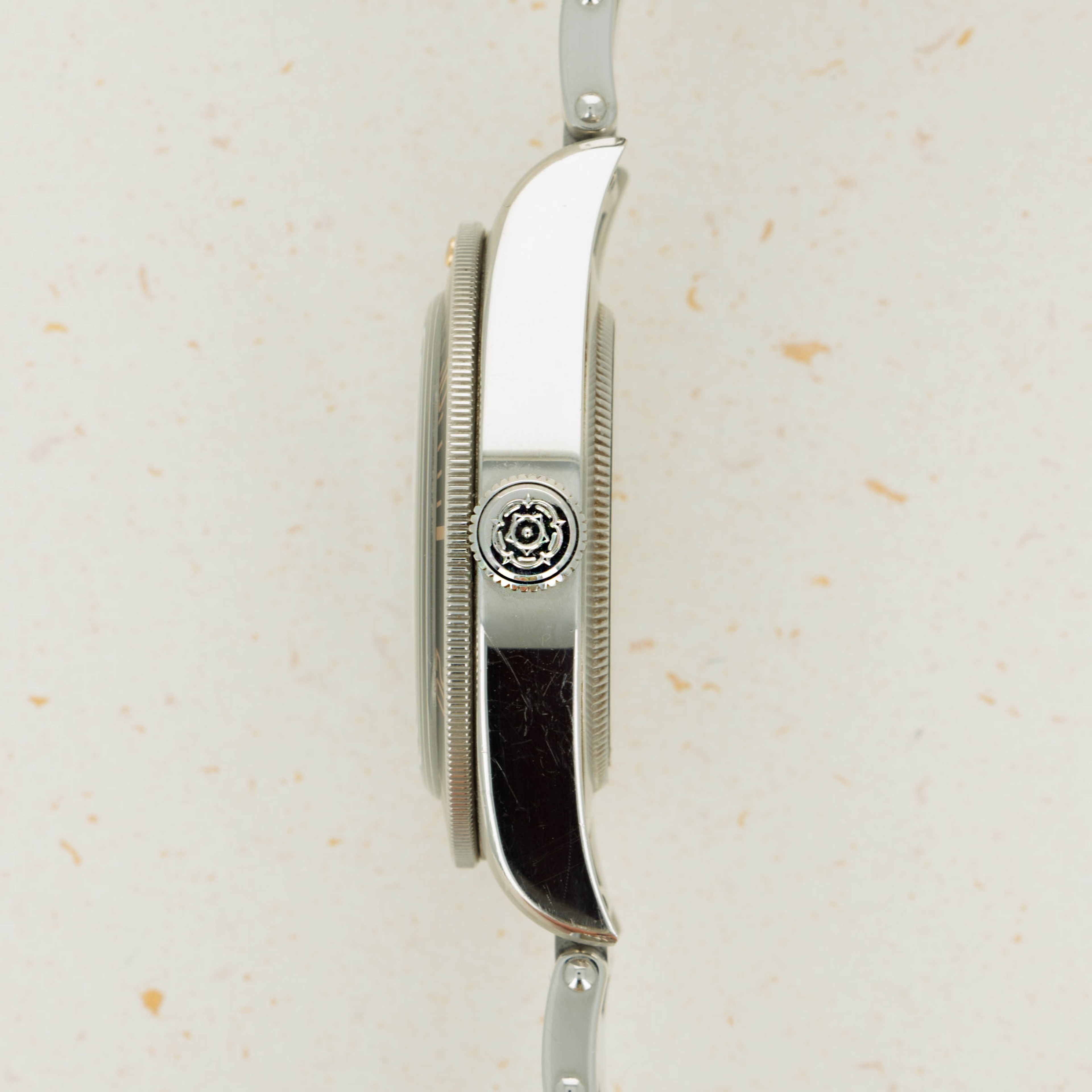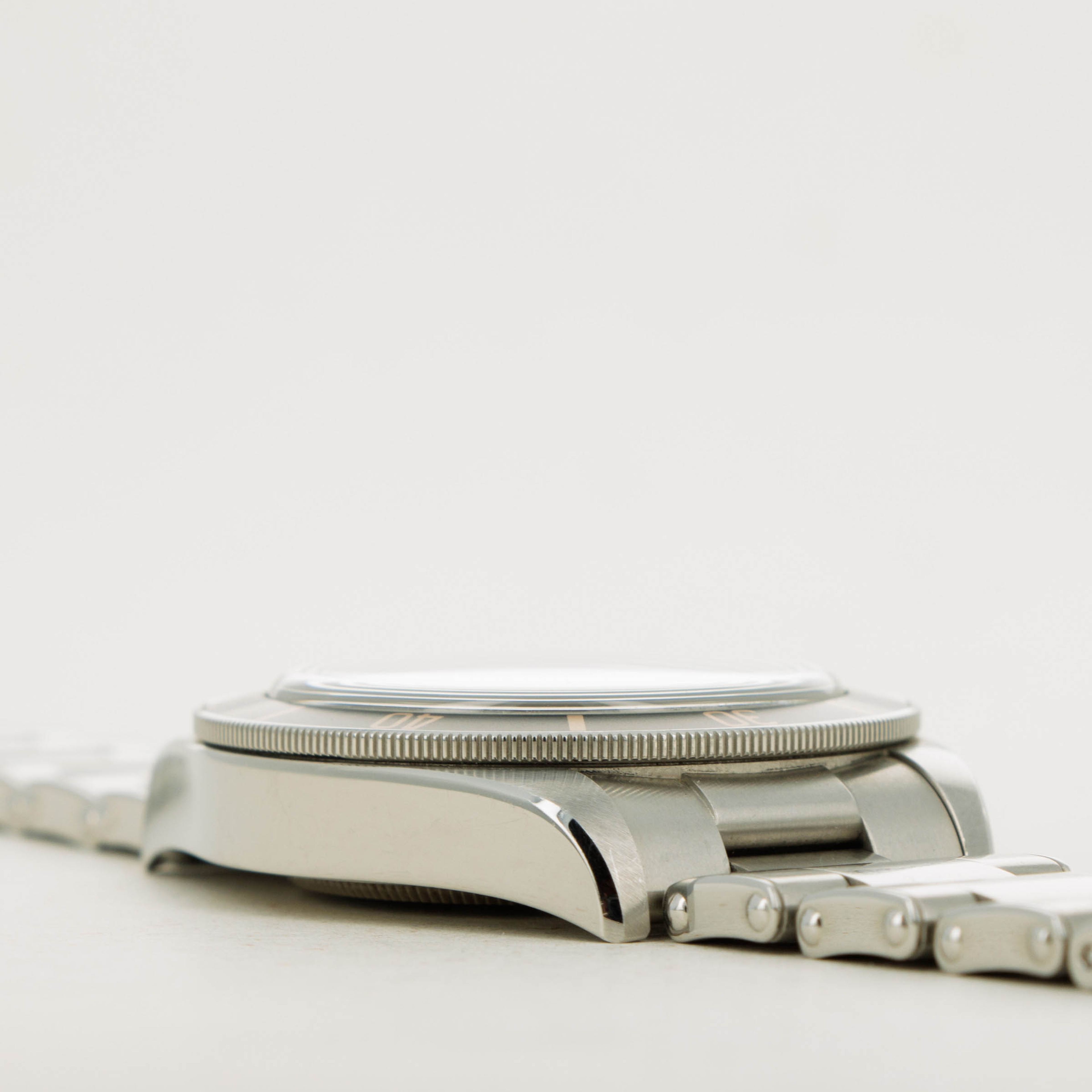 Watch is in near-mint condition, with only light signs of use. The bracelet has been previously sized, but the two links removed are included with the box and accessories.