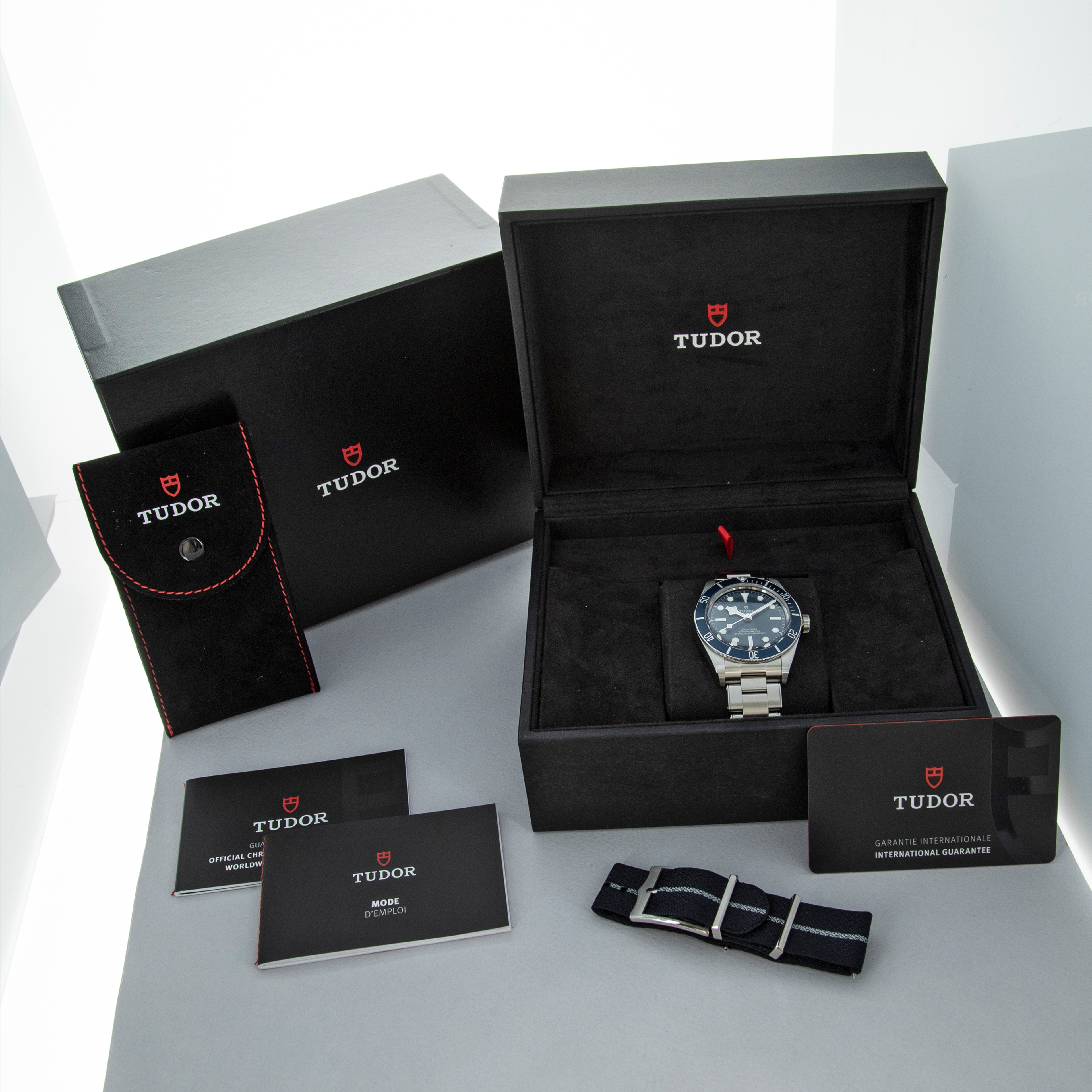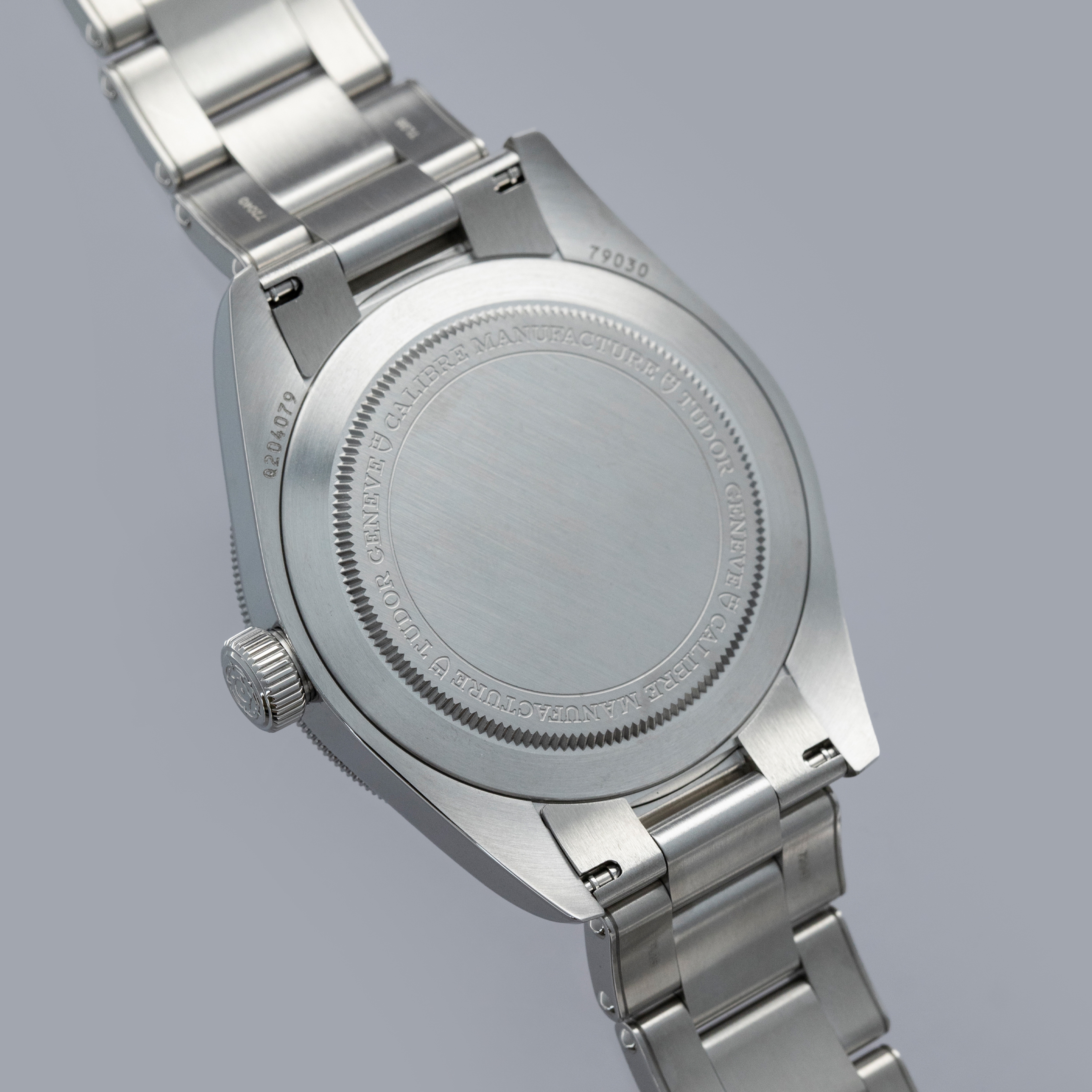 Watch is in near-mint condition, with only very light signs of wear on the bracelet and case. Comes with an additional Tudor fabric strap with a steel buckle. Complete with box, papers, and Tudor pouch. The bracelet currently fits an 8" wrist and has 14 links, with no play between the links.