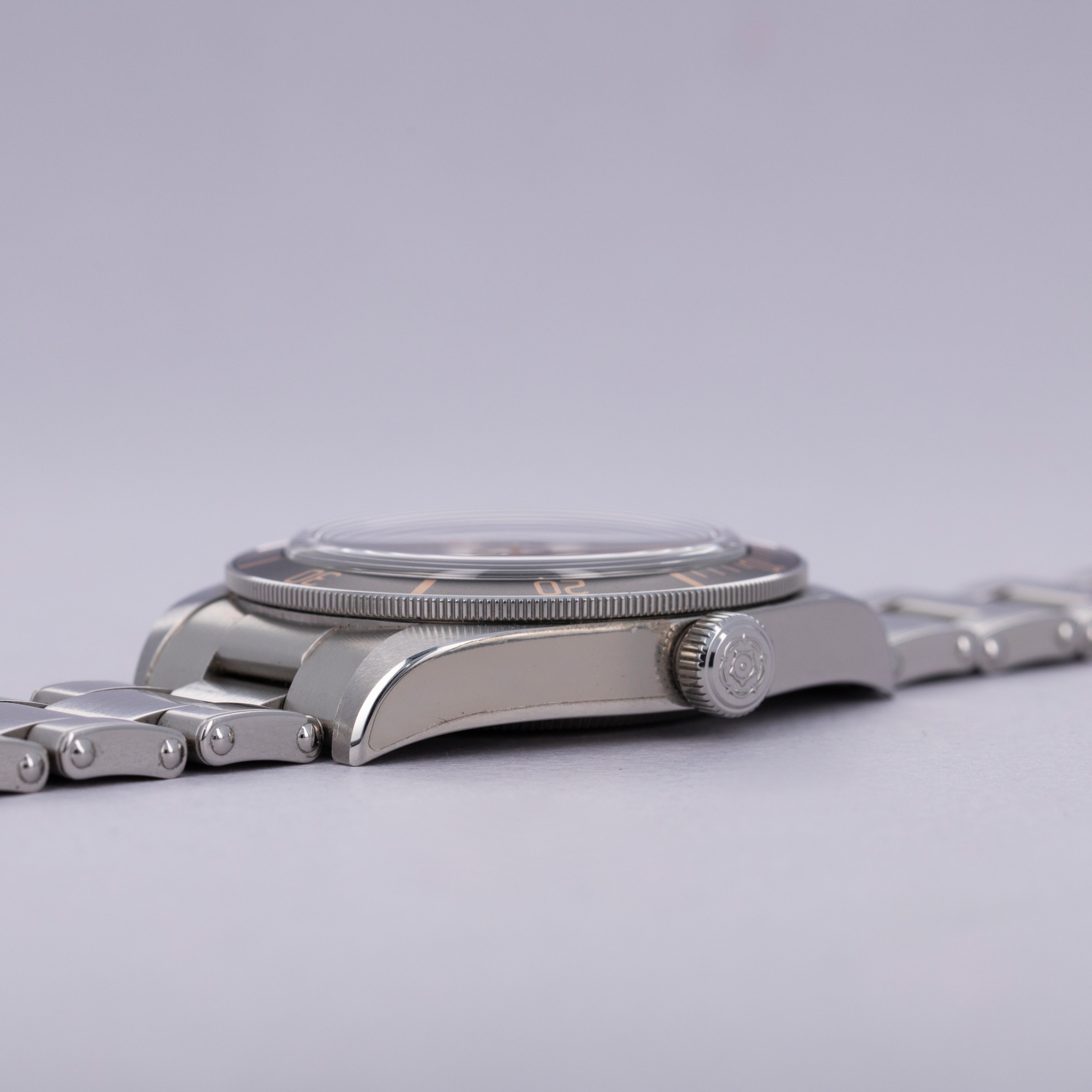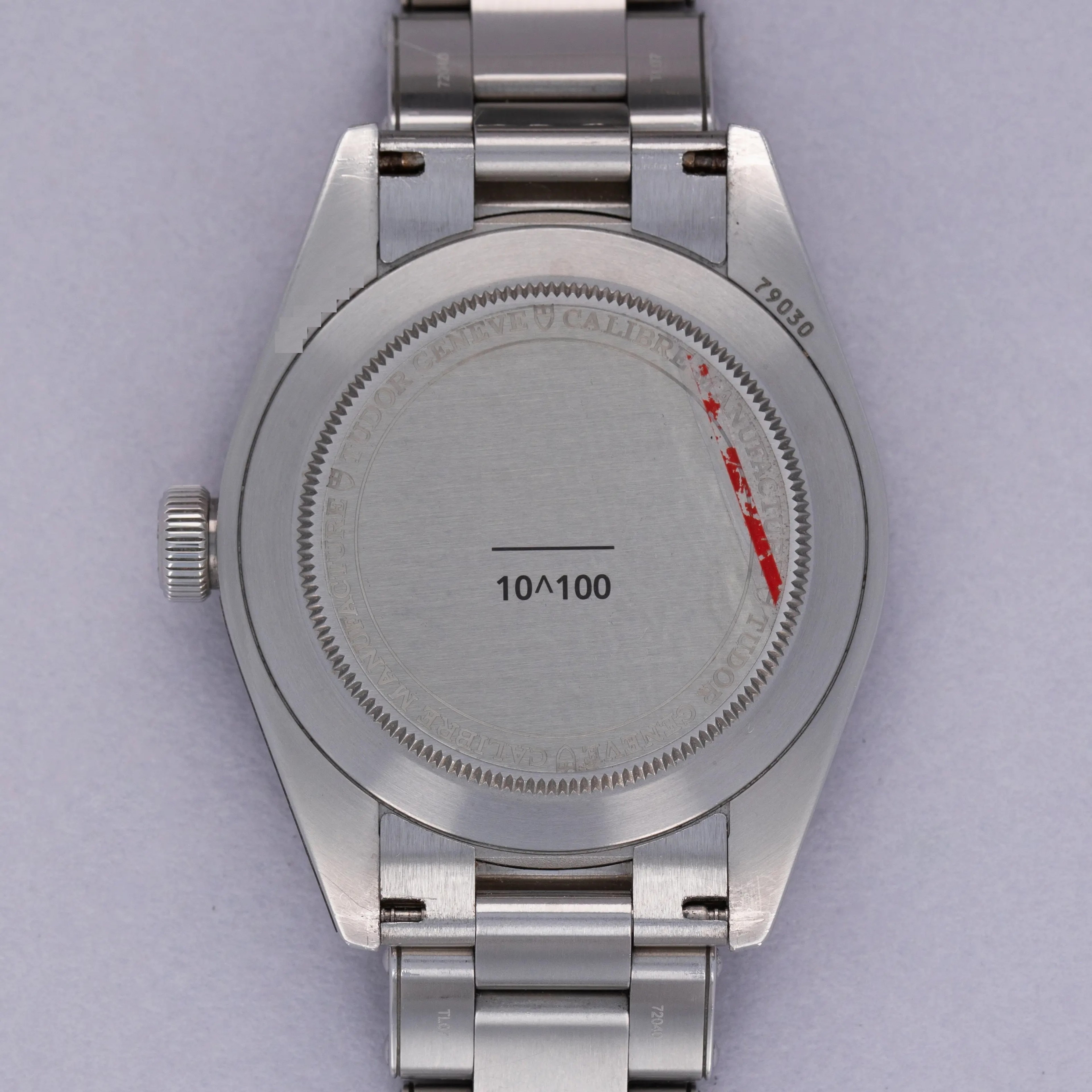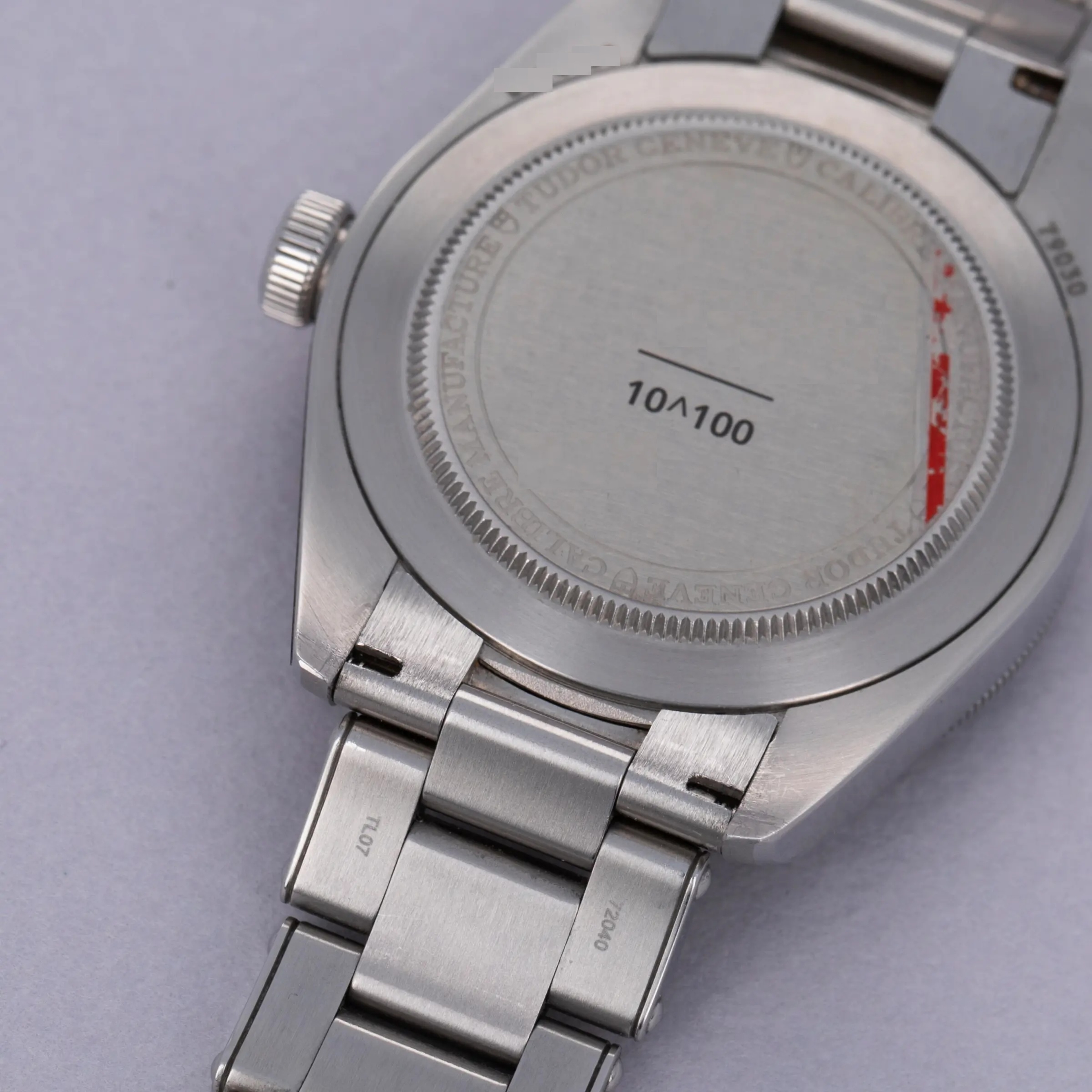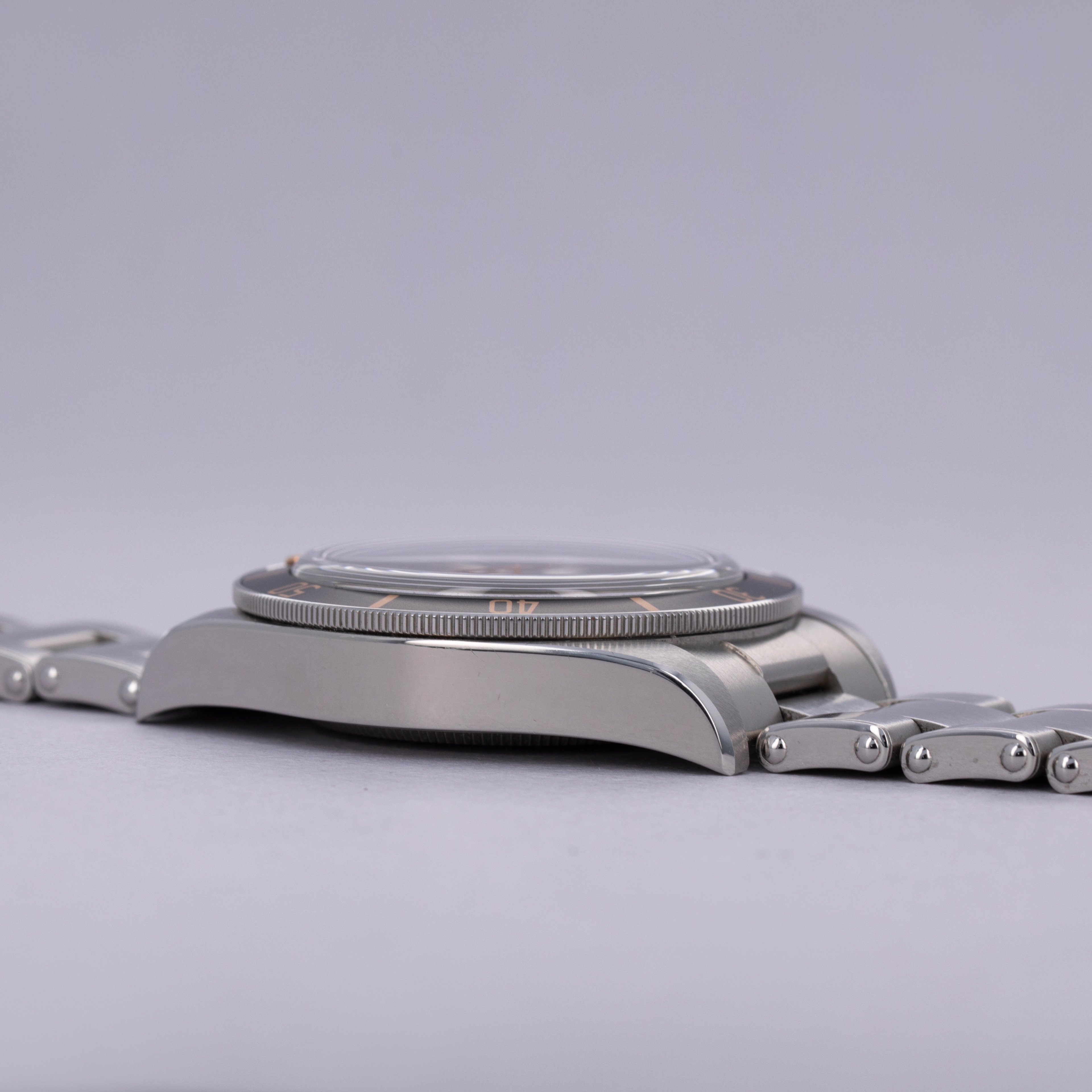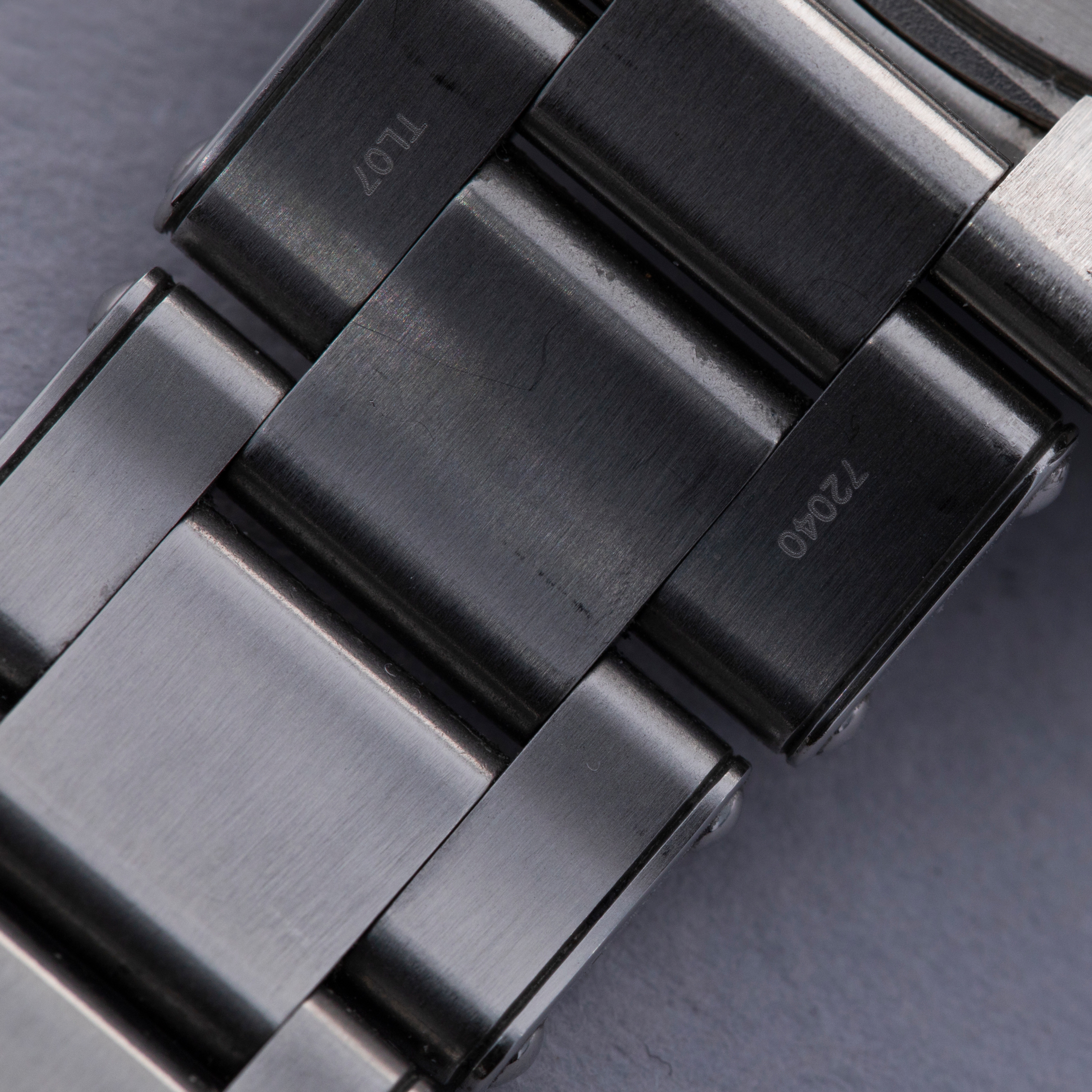 Watches in excellent overall condition. Case shows light signs of wear and retains some partial stickers on the case. The caseback shows signs of the bracelet being previously removed with marks near the lug tips and springbar cutouts of the endpieces. Bracelet has light surface wear throughout. Bracelet has 11 links total and currently sized to fit a 6 3/4" wrist. There were two links removed that are included with the watch.