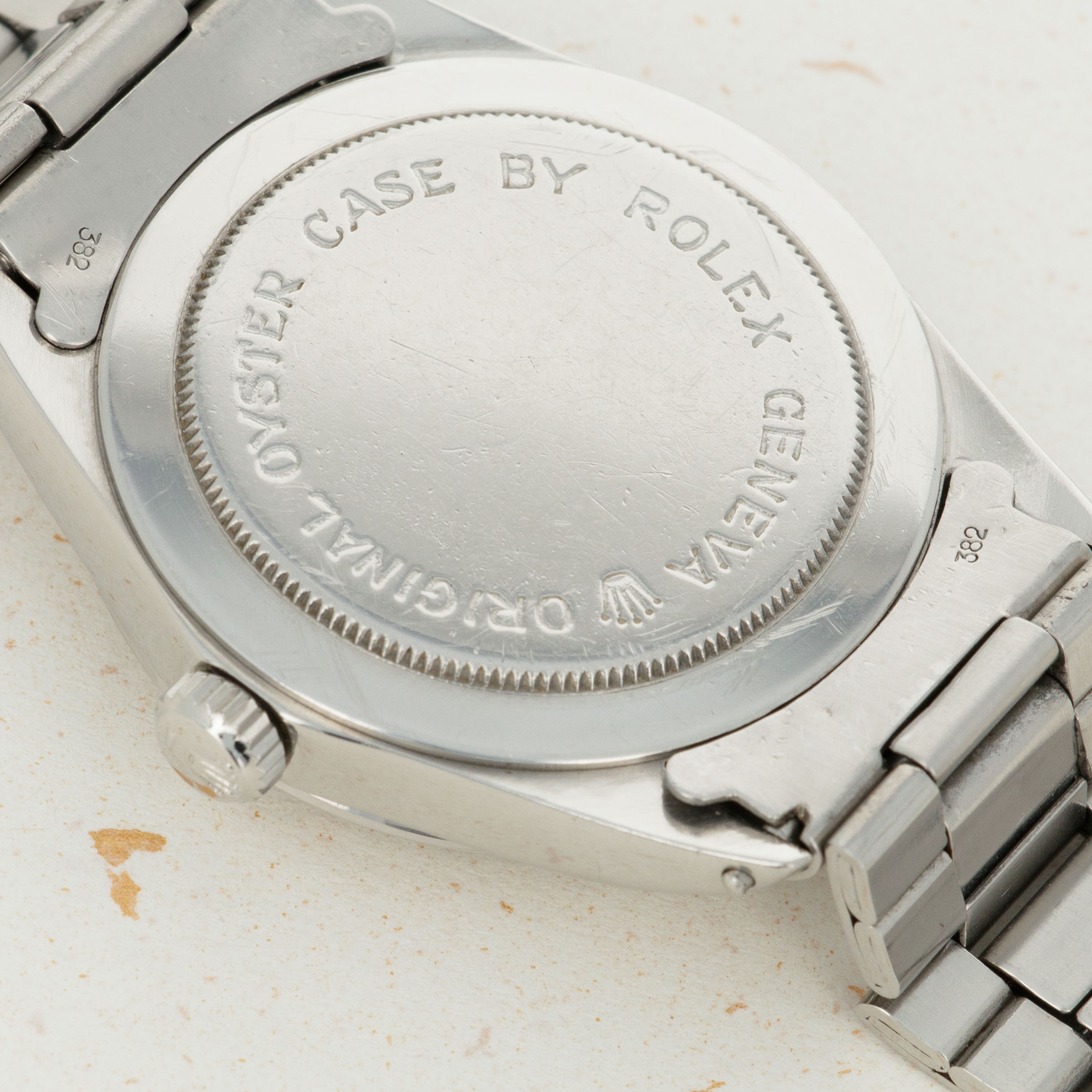 Watch is in very good overall condition. Lightly worn case with no major dings or scratches. Dial has evenly aged luminous plots and no major scratches visible on the surface. The folded link oyster bracelet has 11 links total. there is light stretch.