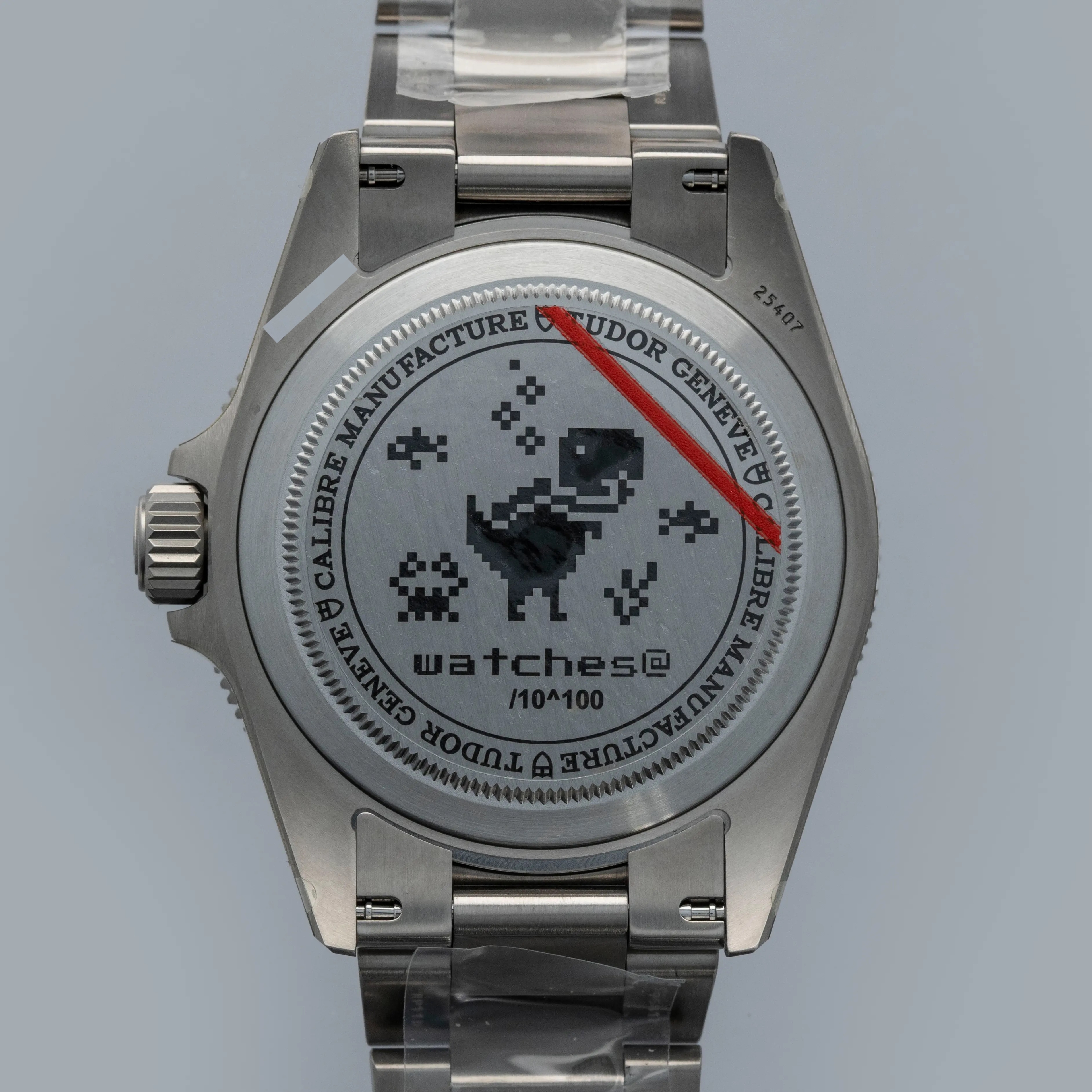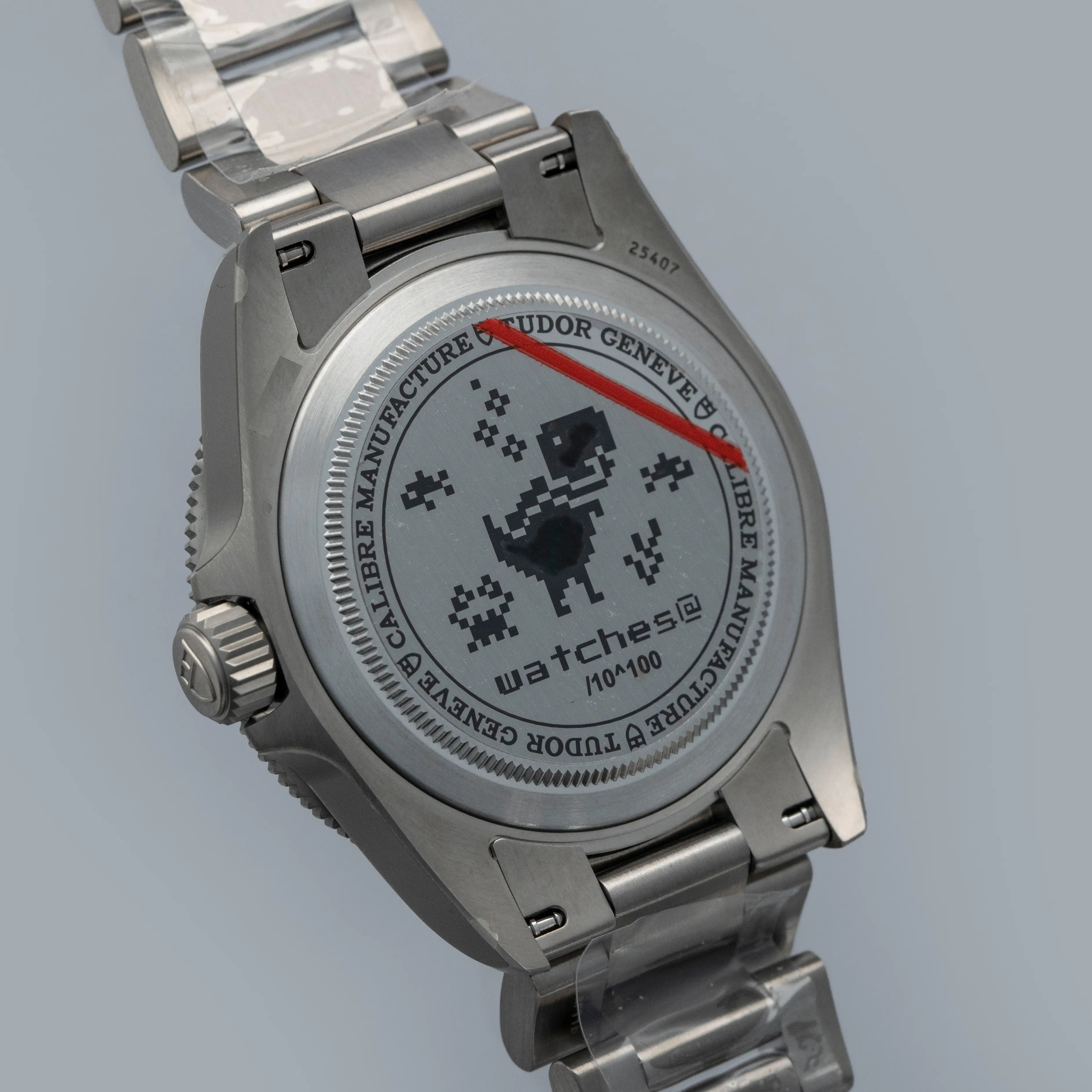 It's all about the details, so the Watches@ logo can be found on the ref. 25407N's caseback along with the Chrome Dino and an assortment of other pixelated images.