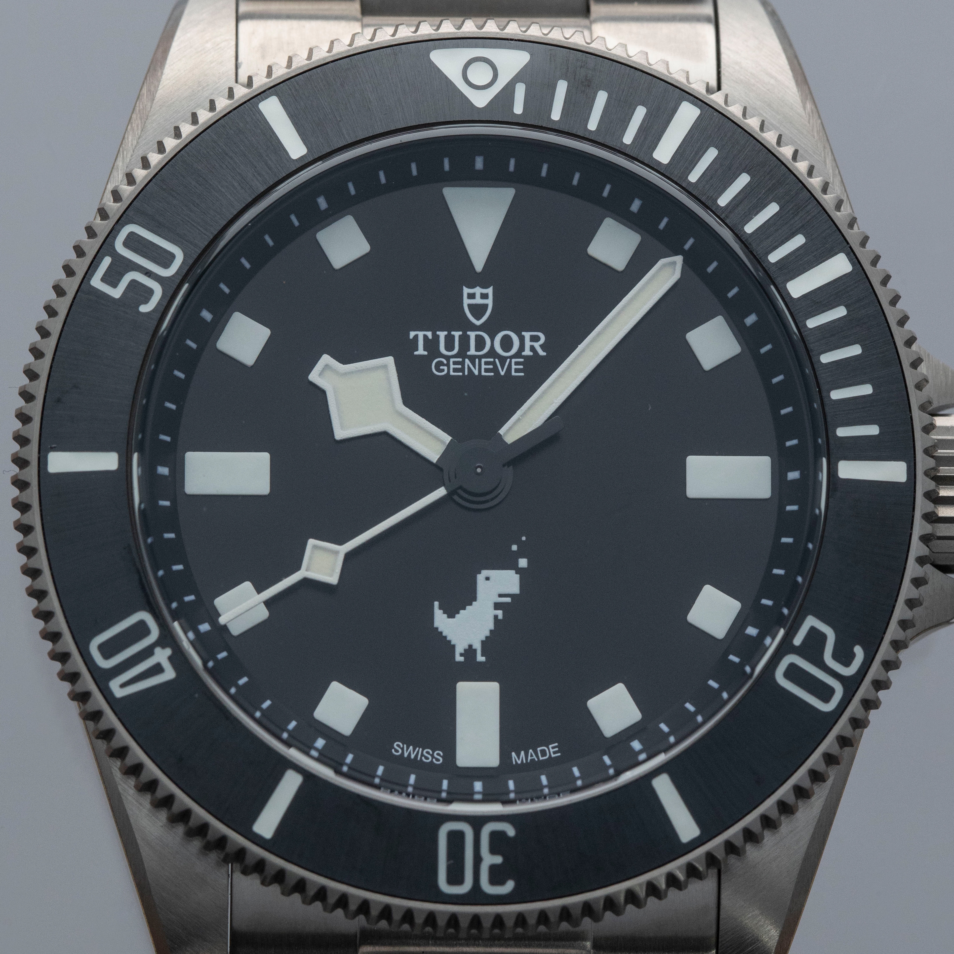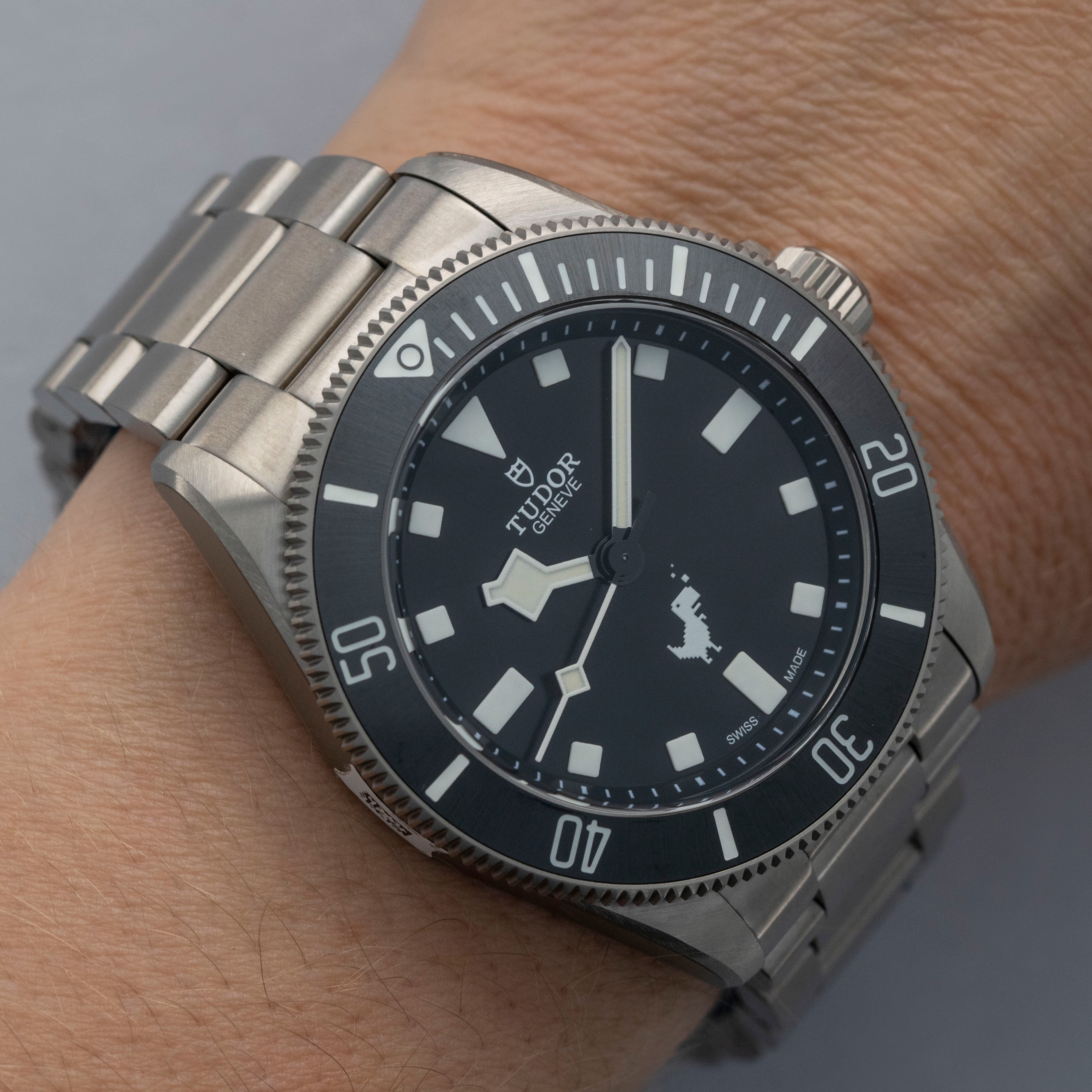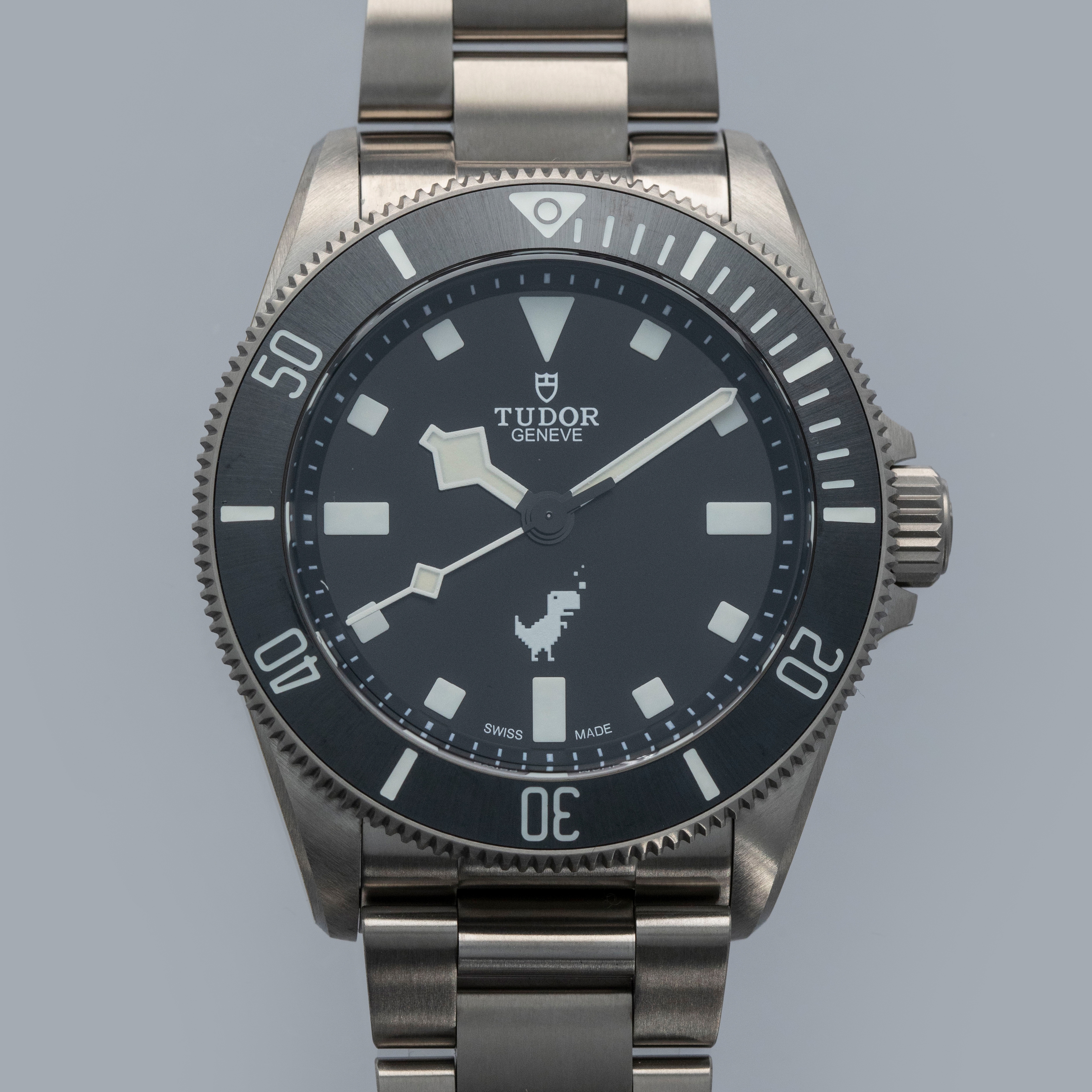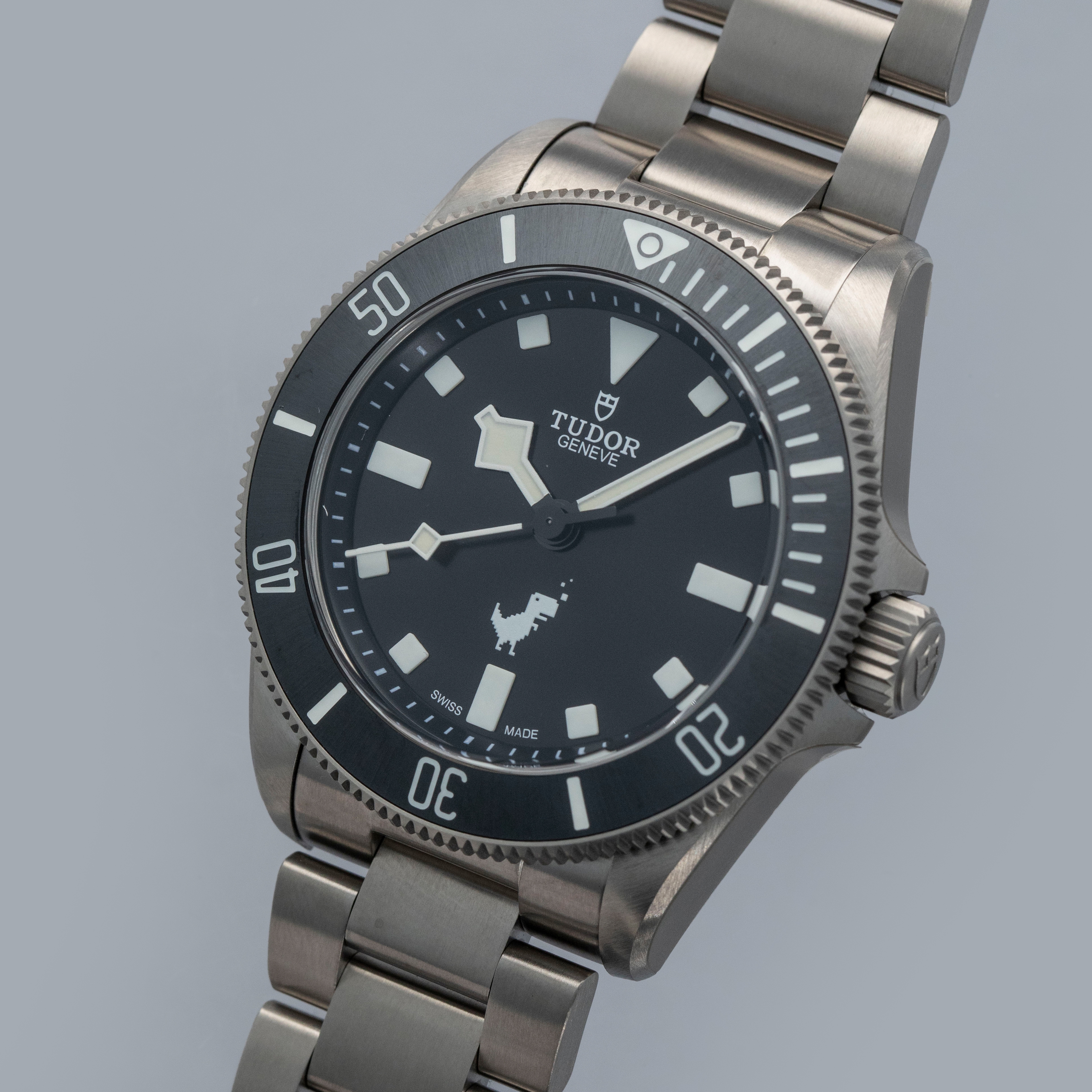 Offered as a no-date variant of the Pelagos with a black sunburst dial instead of the matte finish of its predecessor, the ref. 25407N is a beautifully executed take on the Pelagos' tremendously popular formula, but as the Watches@ edition, this example also boasts Google's Dino at 6 o'clock.
