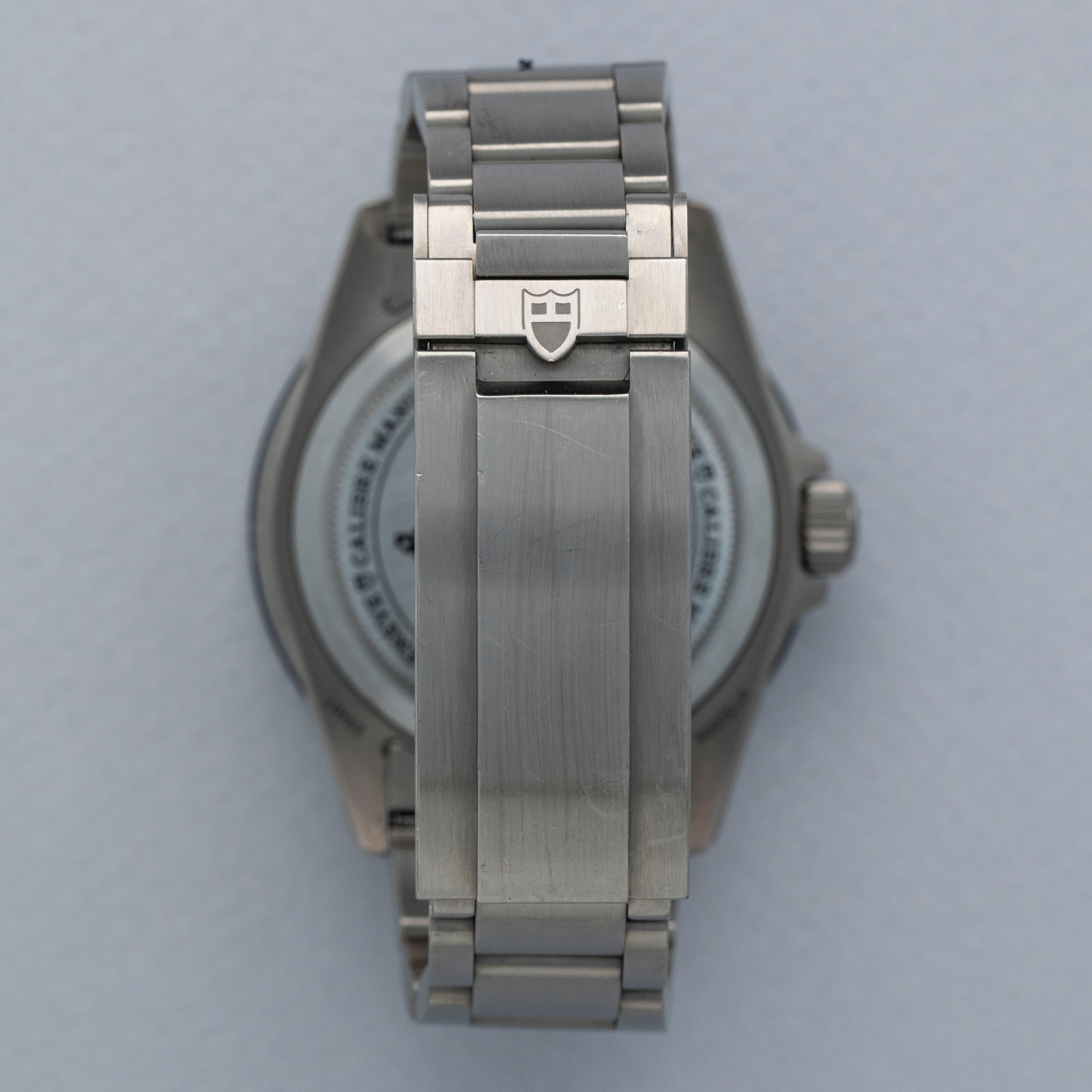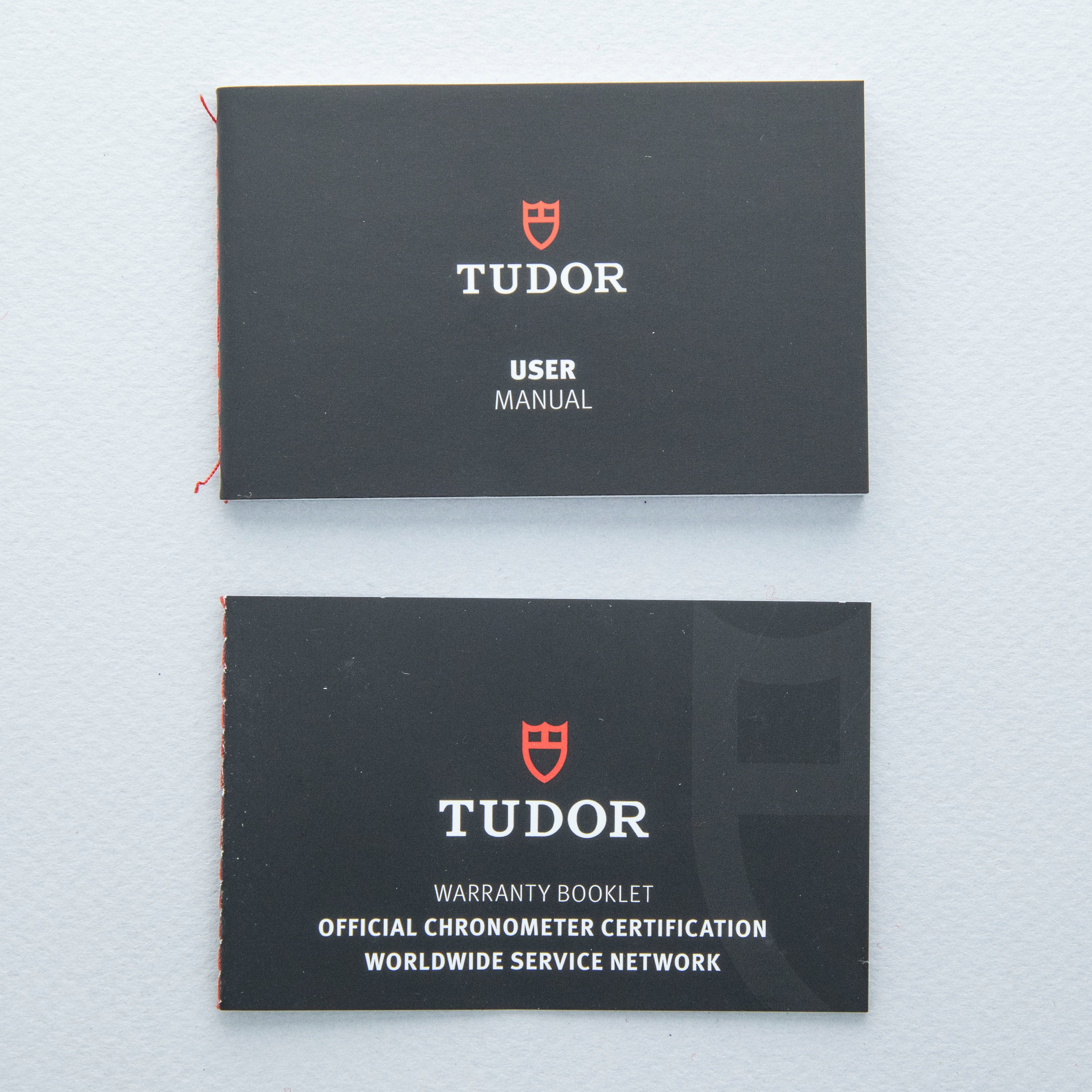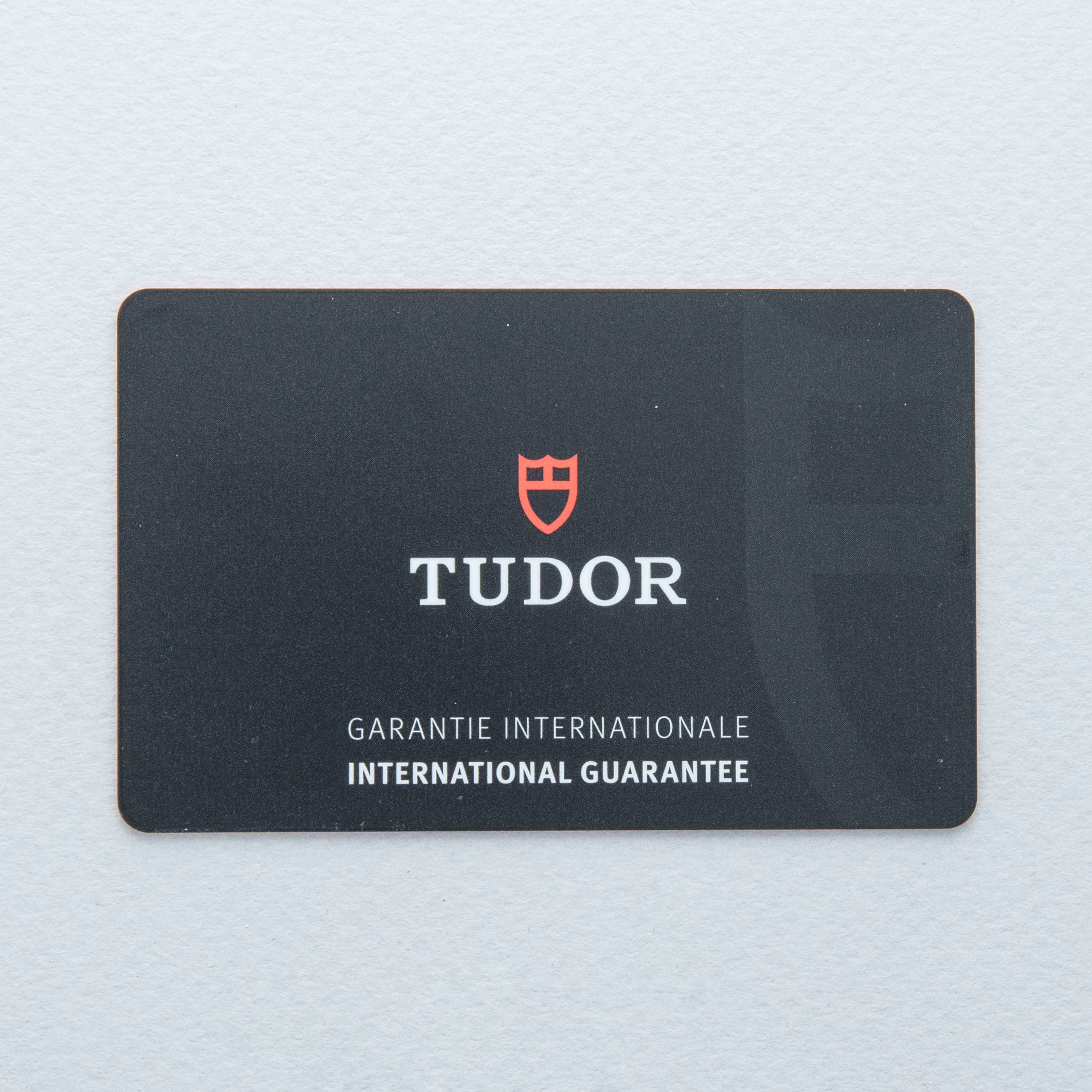 Watch is in overall excellent condition. The titanium case shows surface scratches and small nicks, most notably on the upper right lug, along with marks from the bracelet having been removed. The bezel and insert remain near mint. The dial and hands remain like new. It is fitted with a titanium bracelet showing surface scratches and small nicks on the clasp. The bracelet is fitted with 8 links and fits approximately a 6½” wrist. Additionally, there are 4 links included. Comes complete with inner and outer boxes, warranty card, booklets, hangtag, rubber strap with diver extension and a Tudor cap.