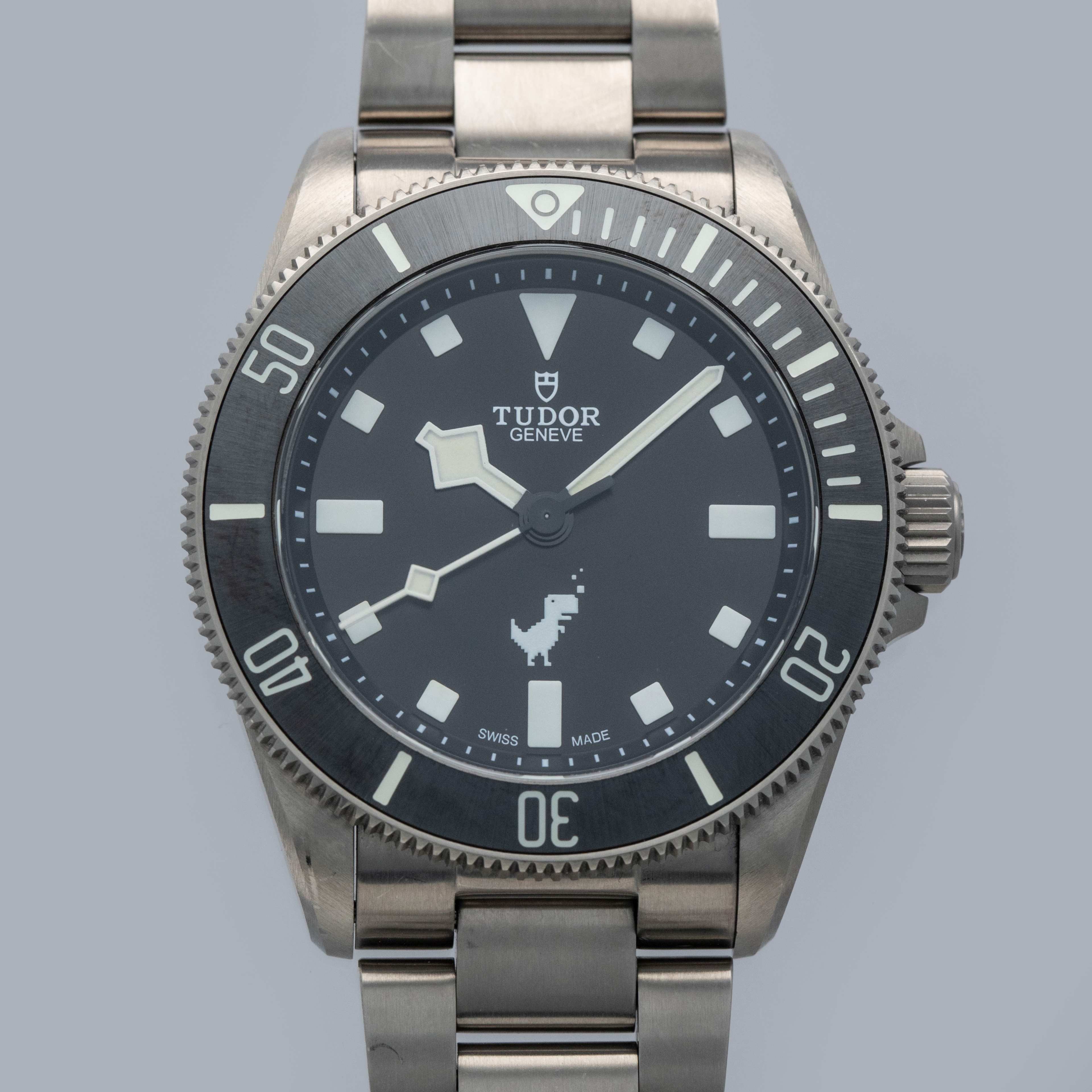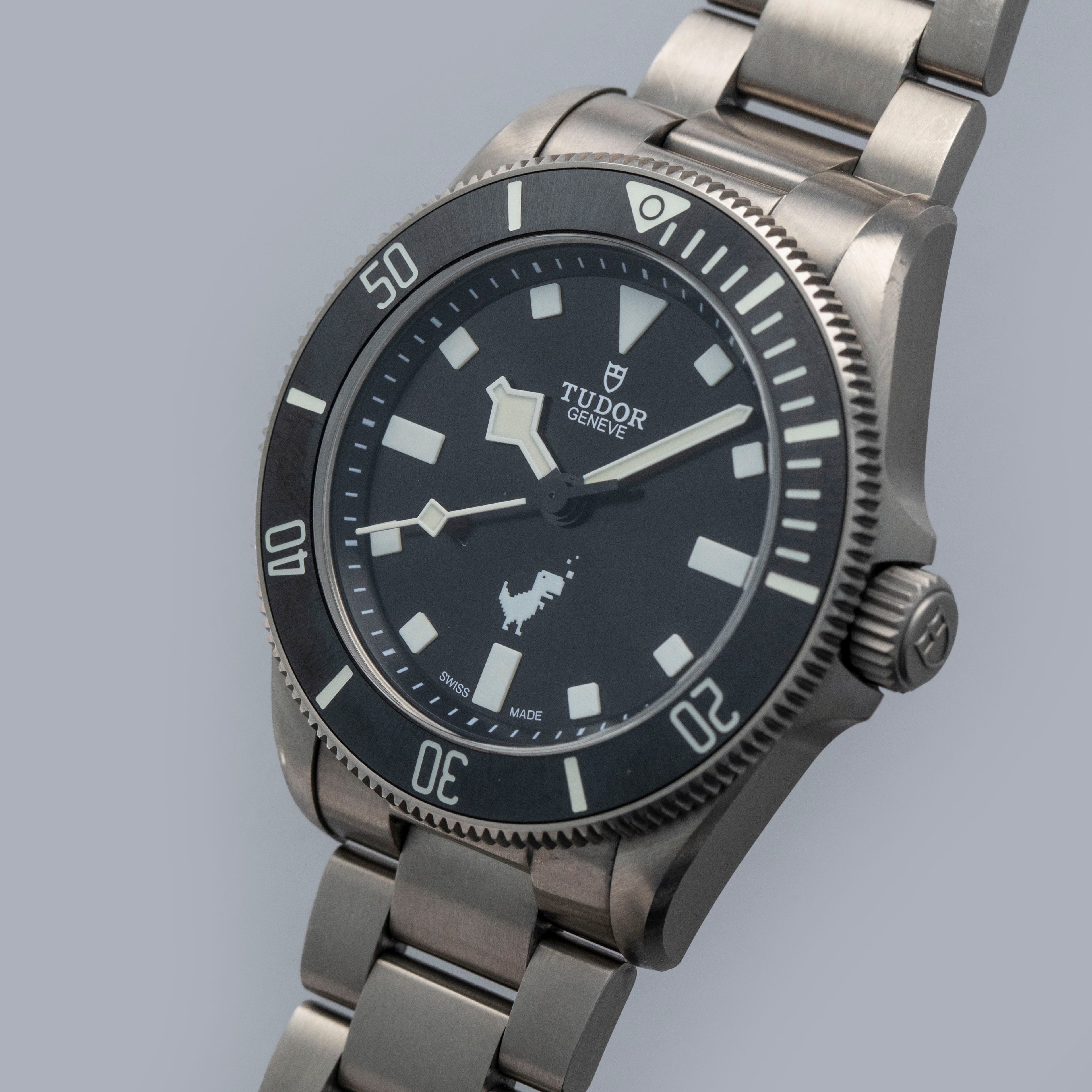 Offered as a no-date variant of the Pelagos with a black sunburst dial instead of the matte finish of its predecessor, the ref. 25407N is a beautifully executed take on the Pelagos' tremendously popular formula, but as the Watches@ edition, this example also boasts Google's Dino at 6 o'clock.