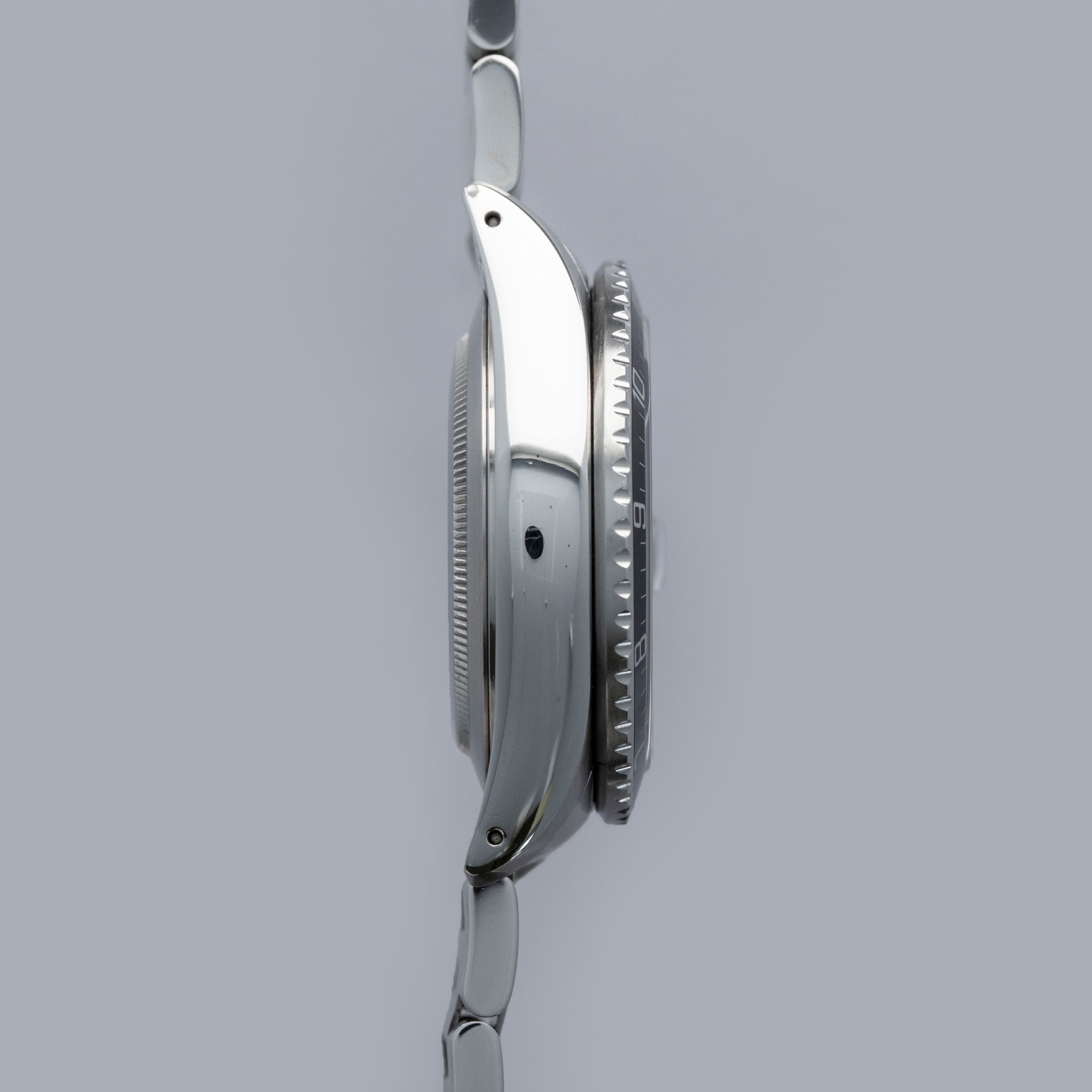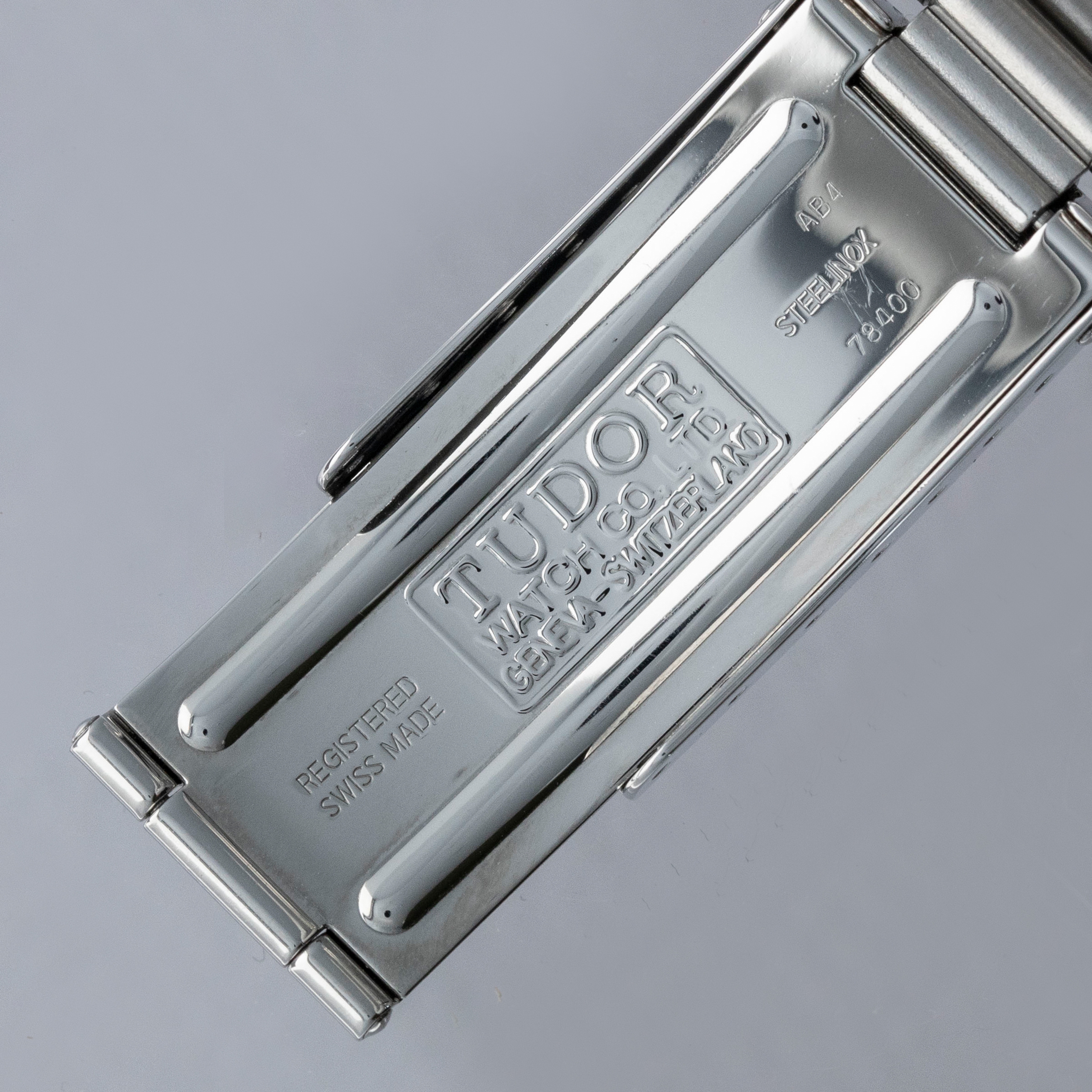 The watch is in overall excellent condition. The steel case shows light scratches on the polished sides and a couple of small nicks, with signs of a previous repolish. The Rolex-signed case back has some light marks. The rotating bezel is well defined, and the black 12-hour graduated insert is very clean. The dial and hands are near-mint. The Tudor-signed solid link Oyster bracelet is excellent, with some light marks and negligible play between the links. The bracelet has 12 links, 2 of which are removable, and fits an approximately 7 1/4” wrist.