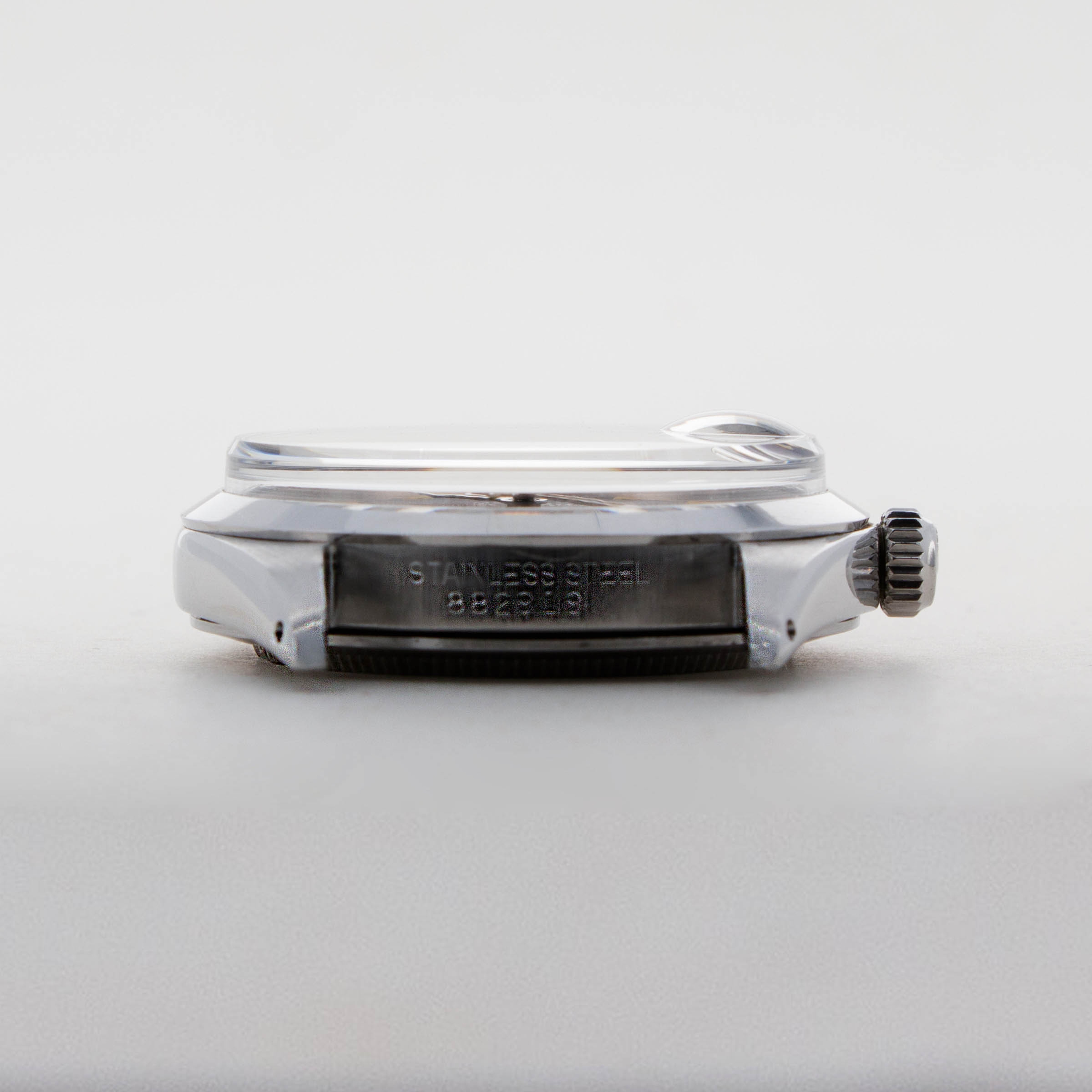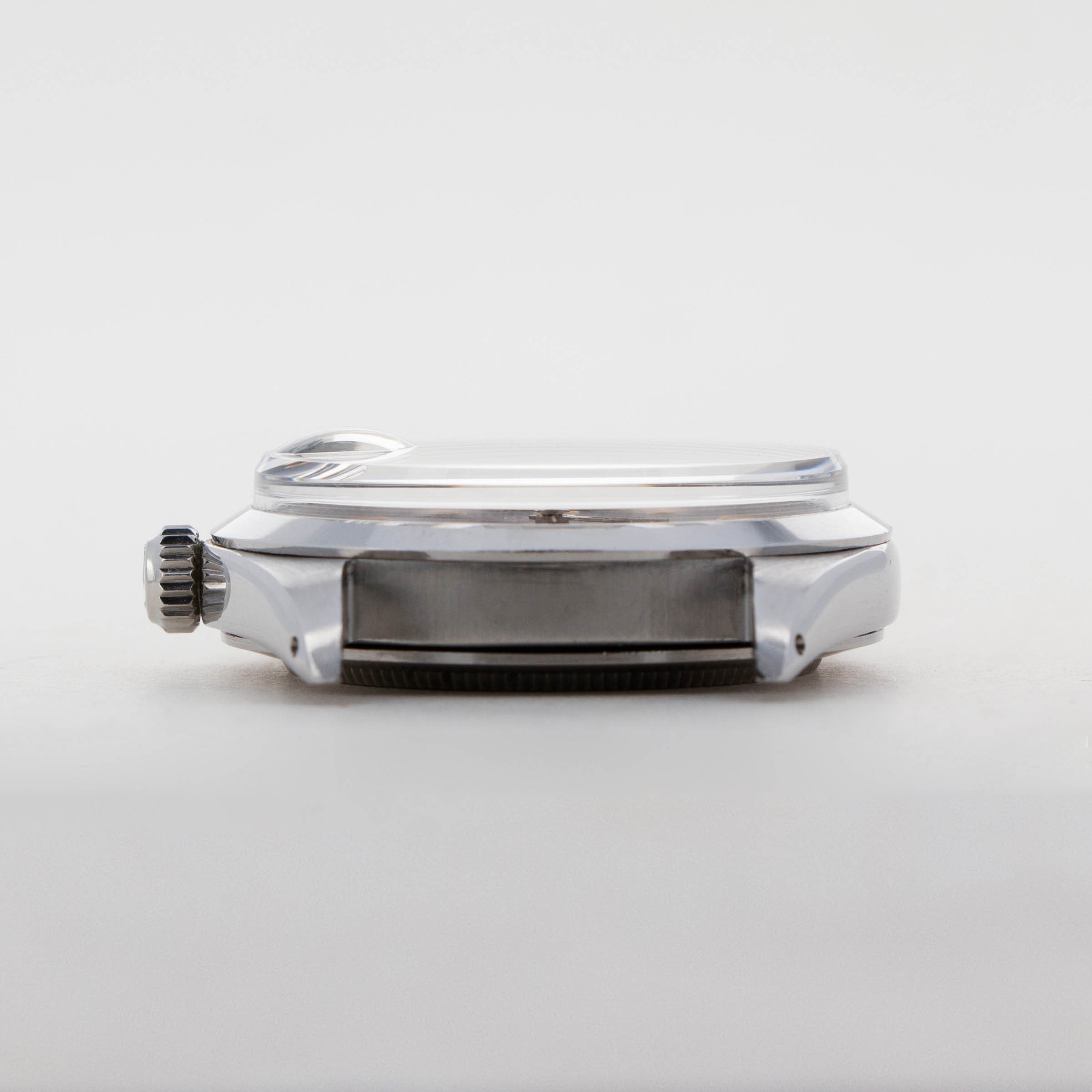 Featuring a black dial with its iconic 12-6-9 arrangement and its large cyclops window, the Ranger's dial is wonderfully utilitarian and legible. Additionally, this example's lume are all evenly colored with a creamy yellow patina.