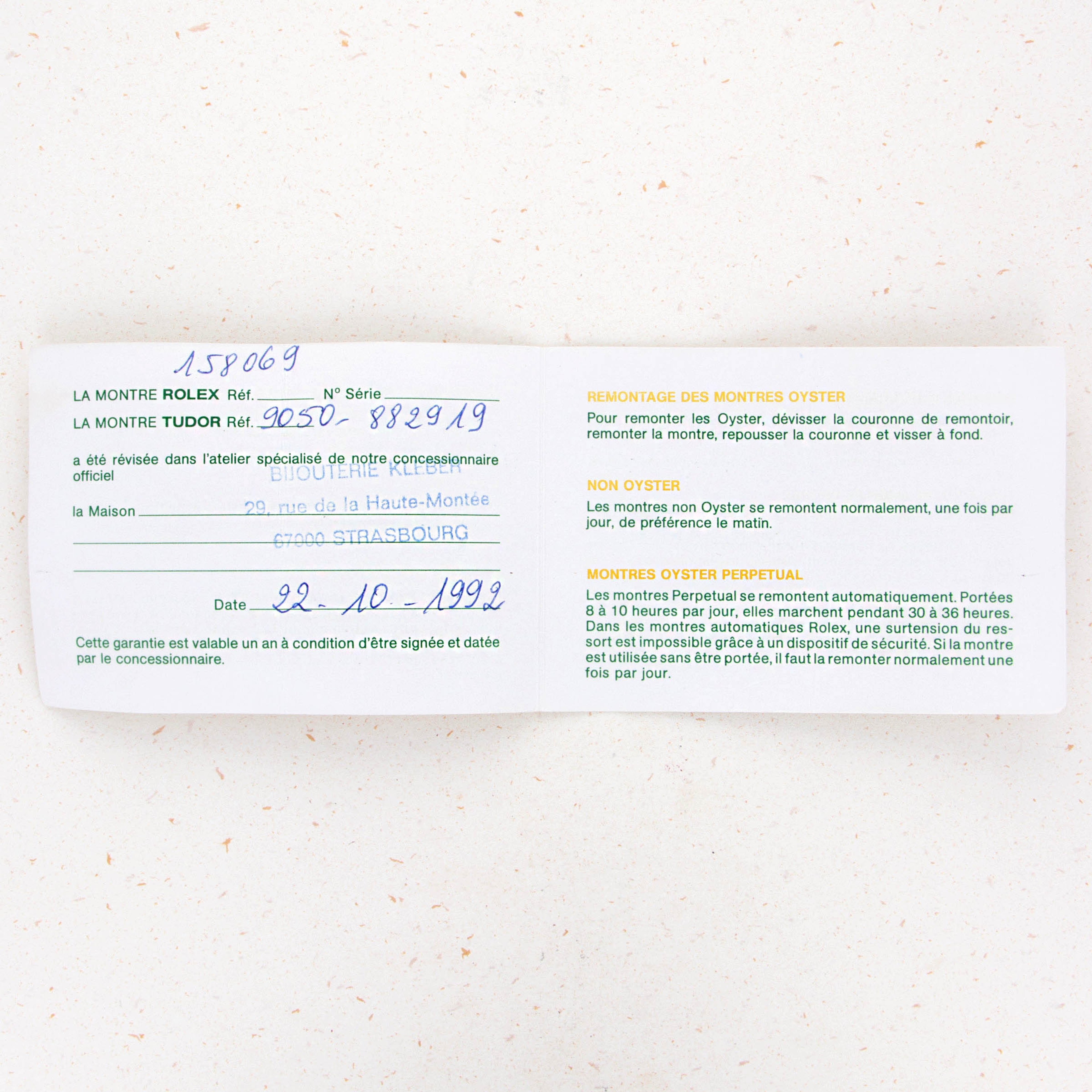 Watch and 1992 Rolex service papers