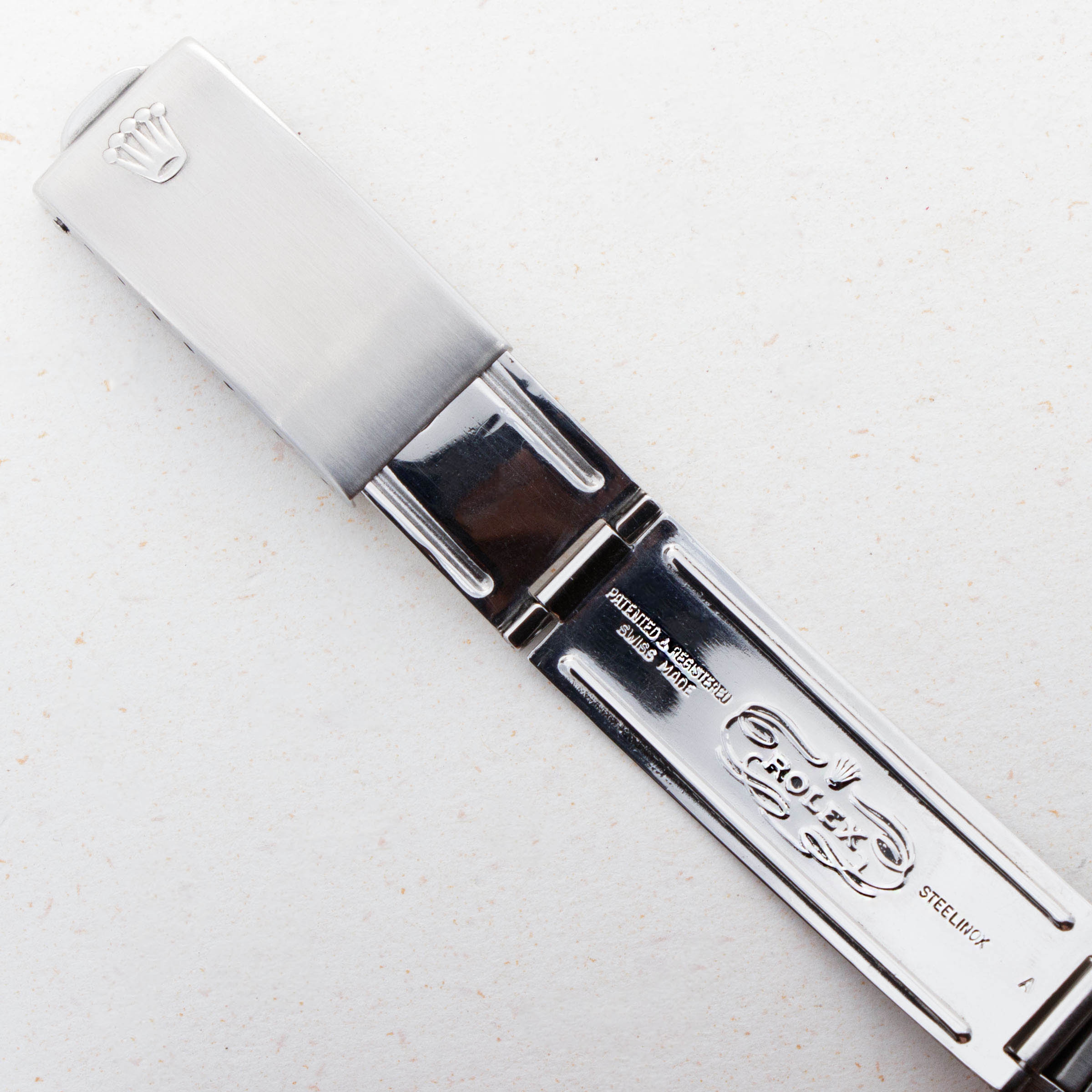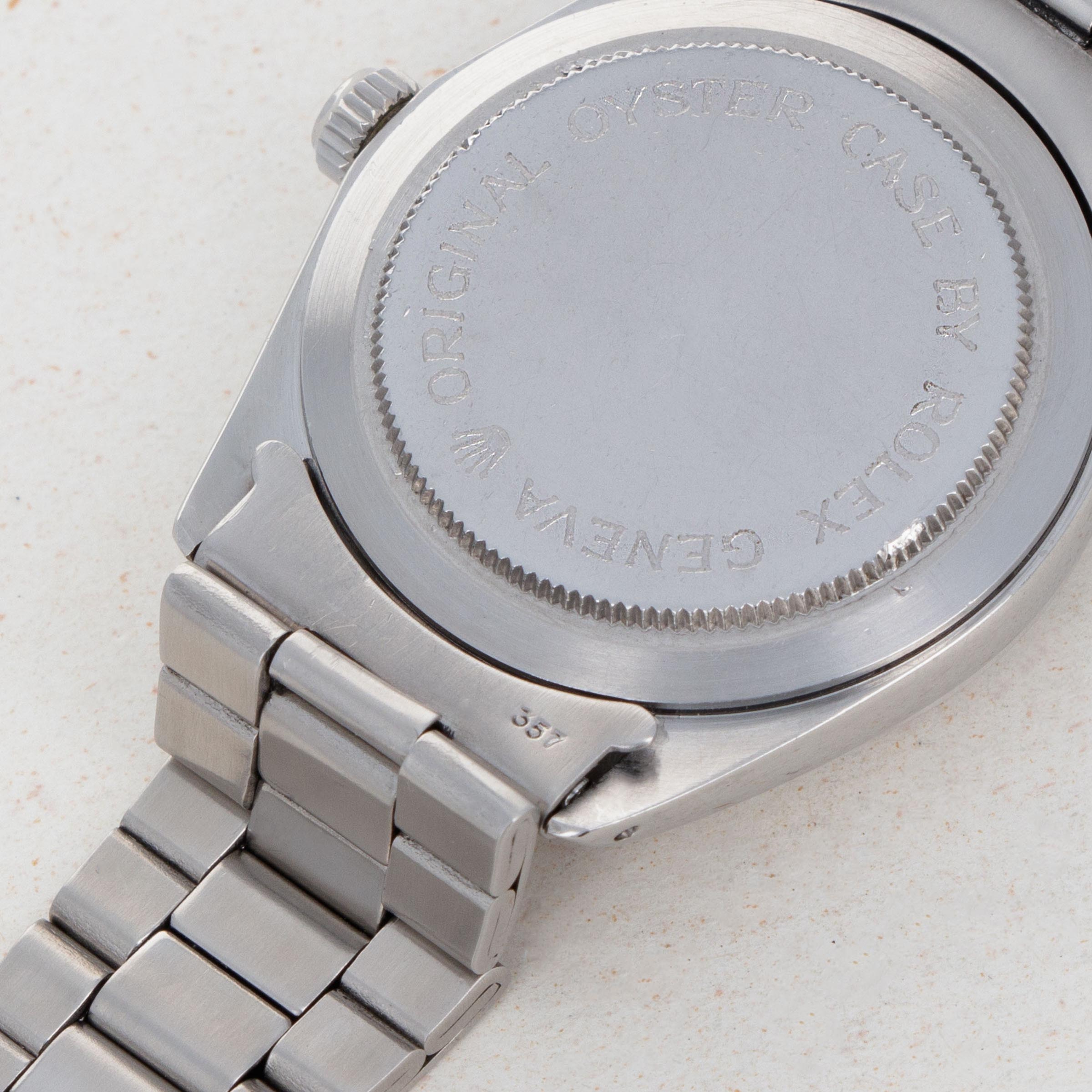 Watch is in overall excellent condition. Case has no major dings or scratches and exhibits full and thick lugs and sharp edges. The dial has beautifully aged tritium indexes and matching hands. The folded bracelet has 12 links with one extra link on the side. The band exhibits minimal stretch. There is an old service guarantee dated 1992 that accompanies the watch.
