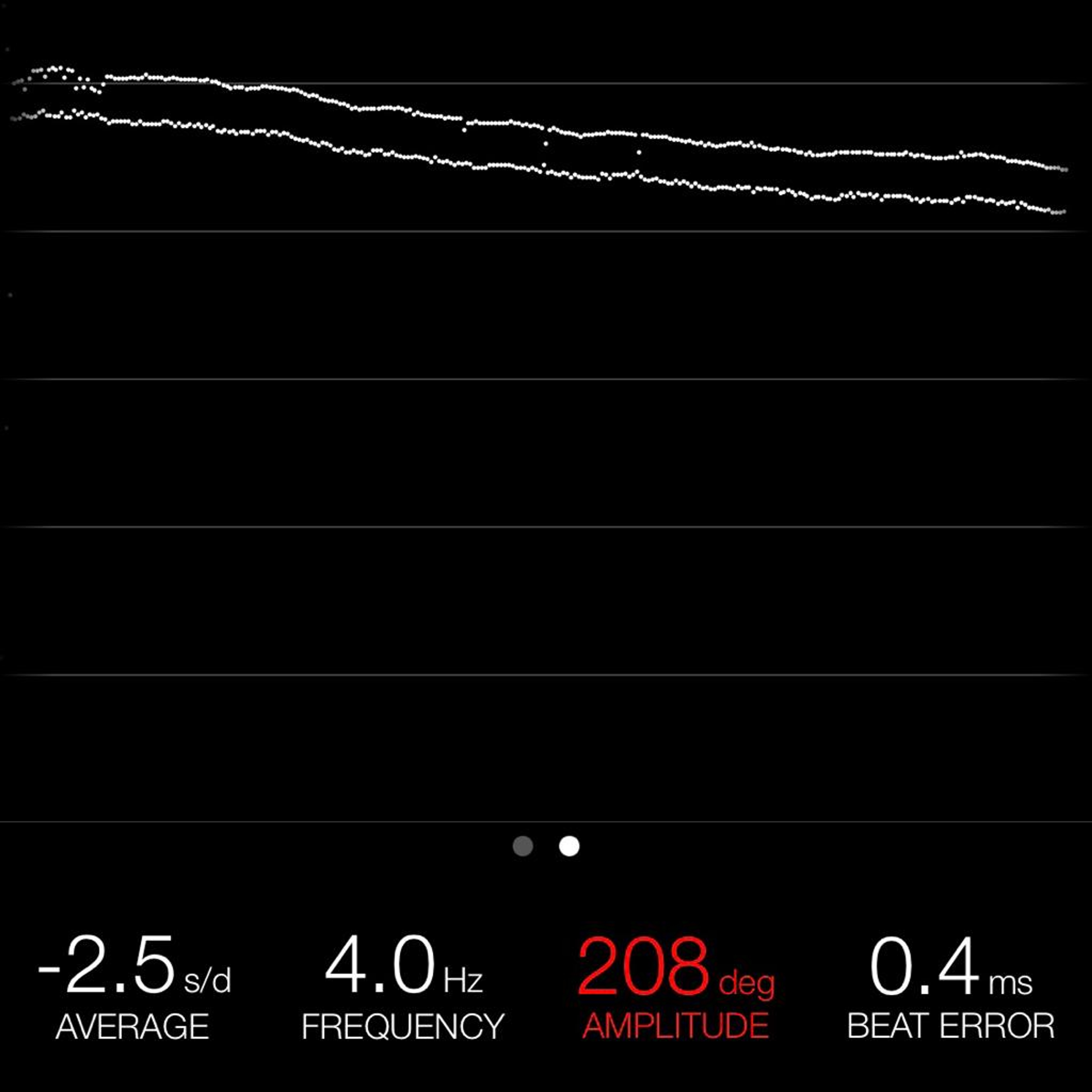 This reading was taken (crown down) with a ONEOF Accuracy Boutique Edition timing machine at time of cataloging. It is provided as a courtesy only, and shall not be construed as a warranty or guarantee of any kind. Please refer to our terms and conditions of sale for more information.