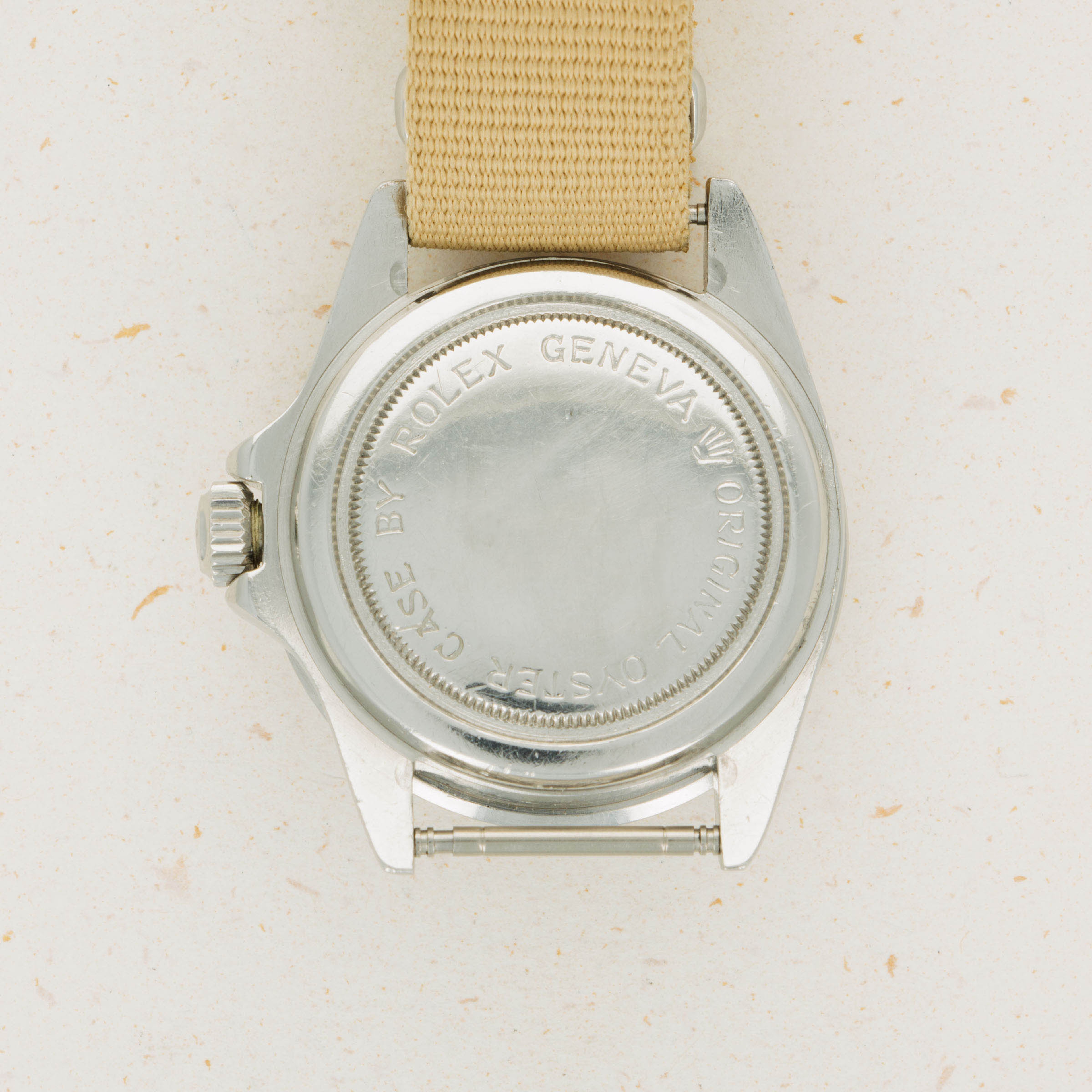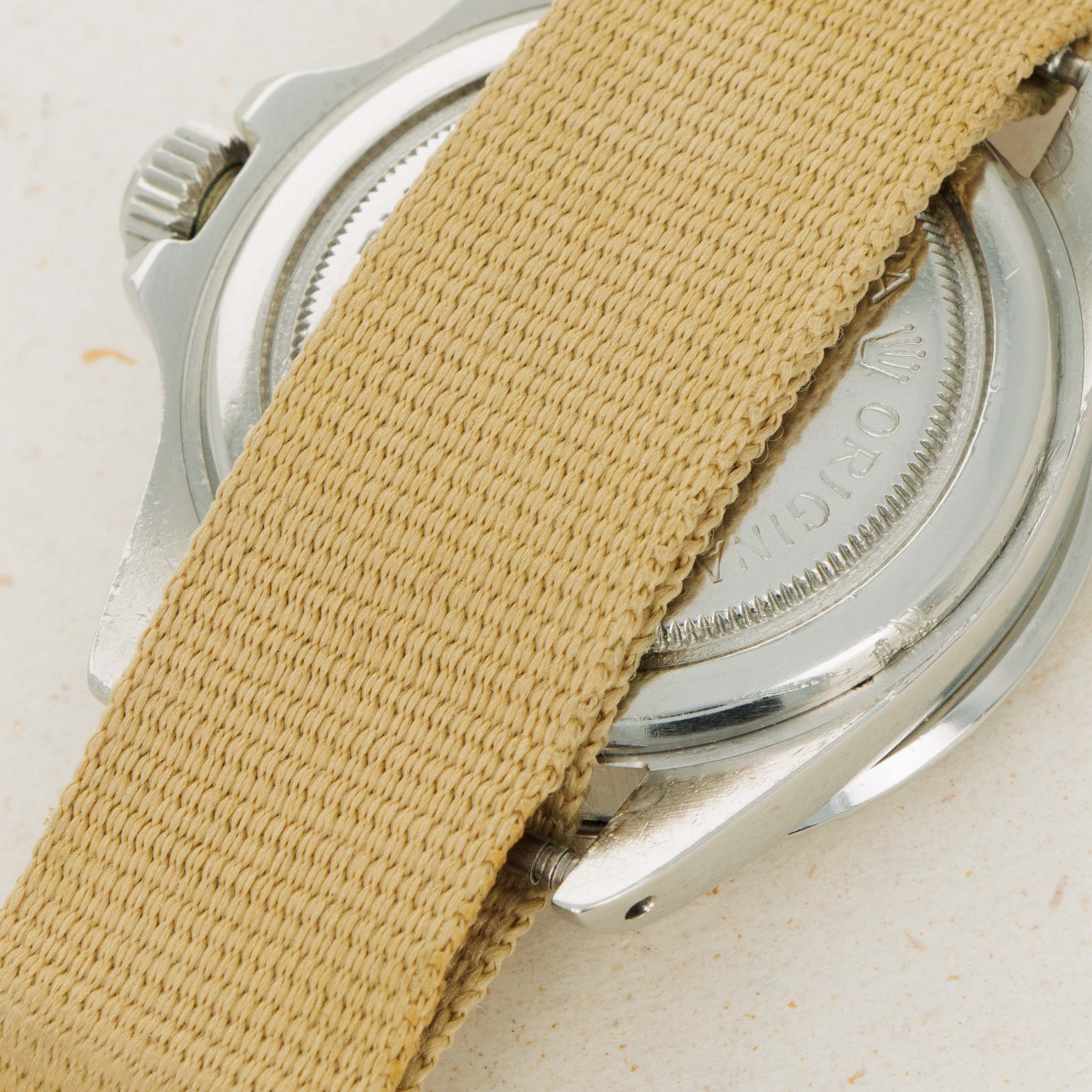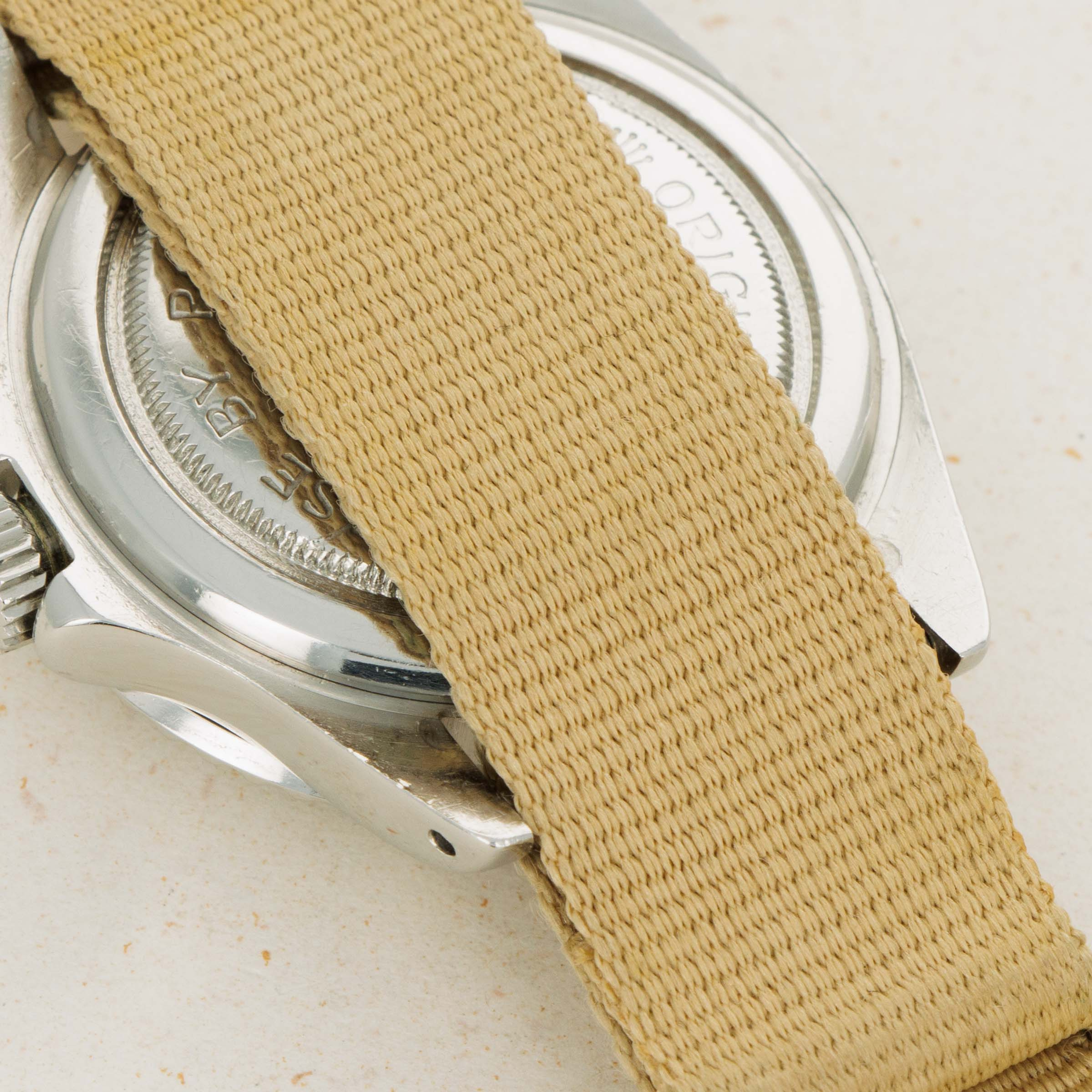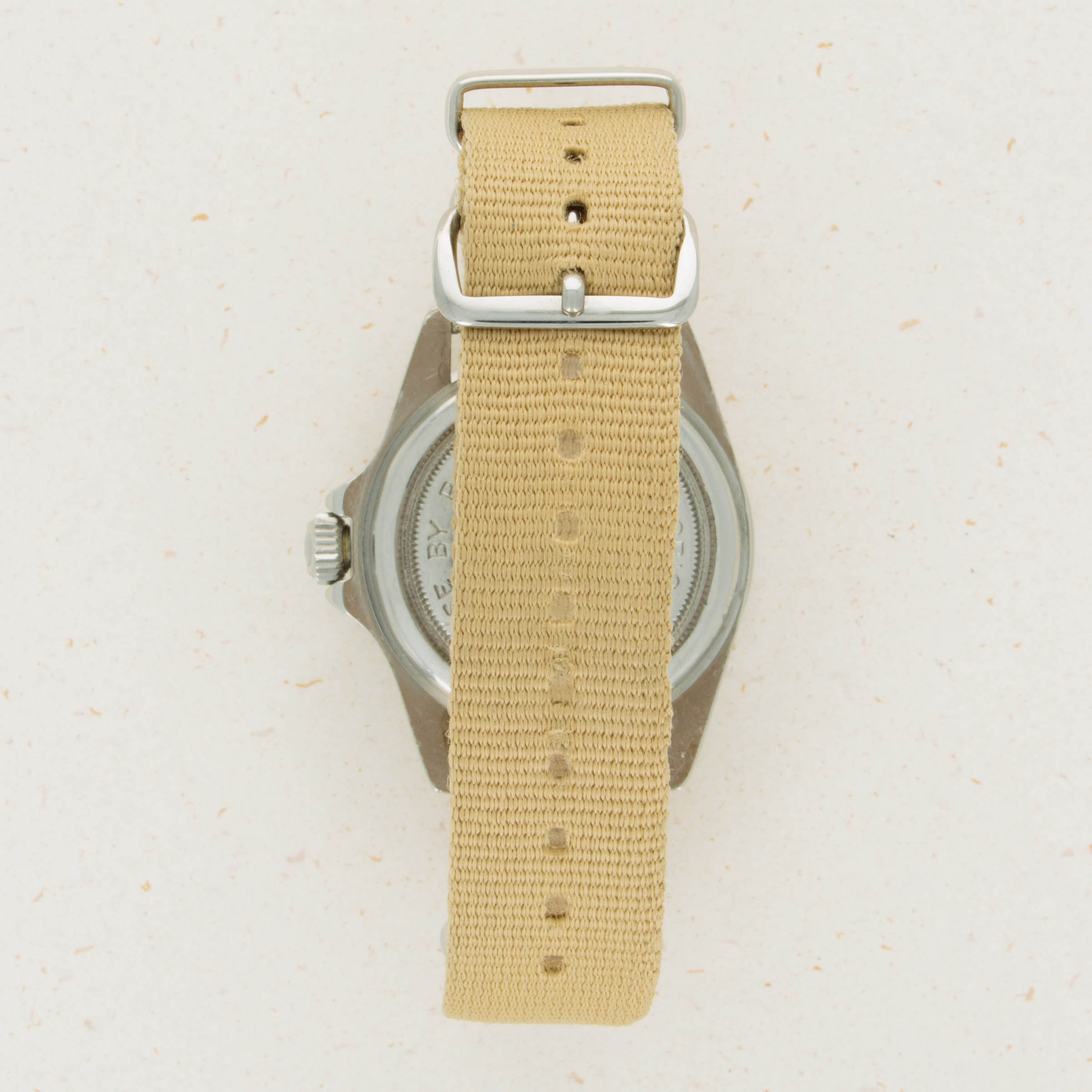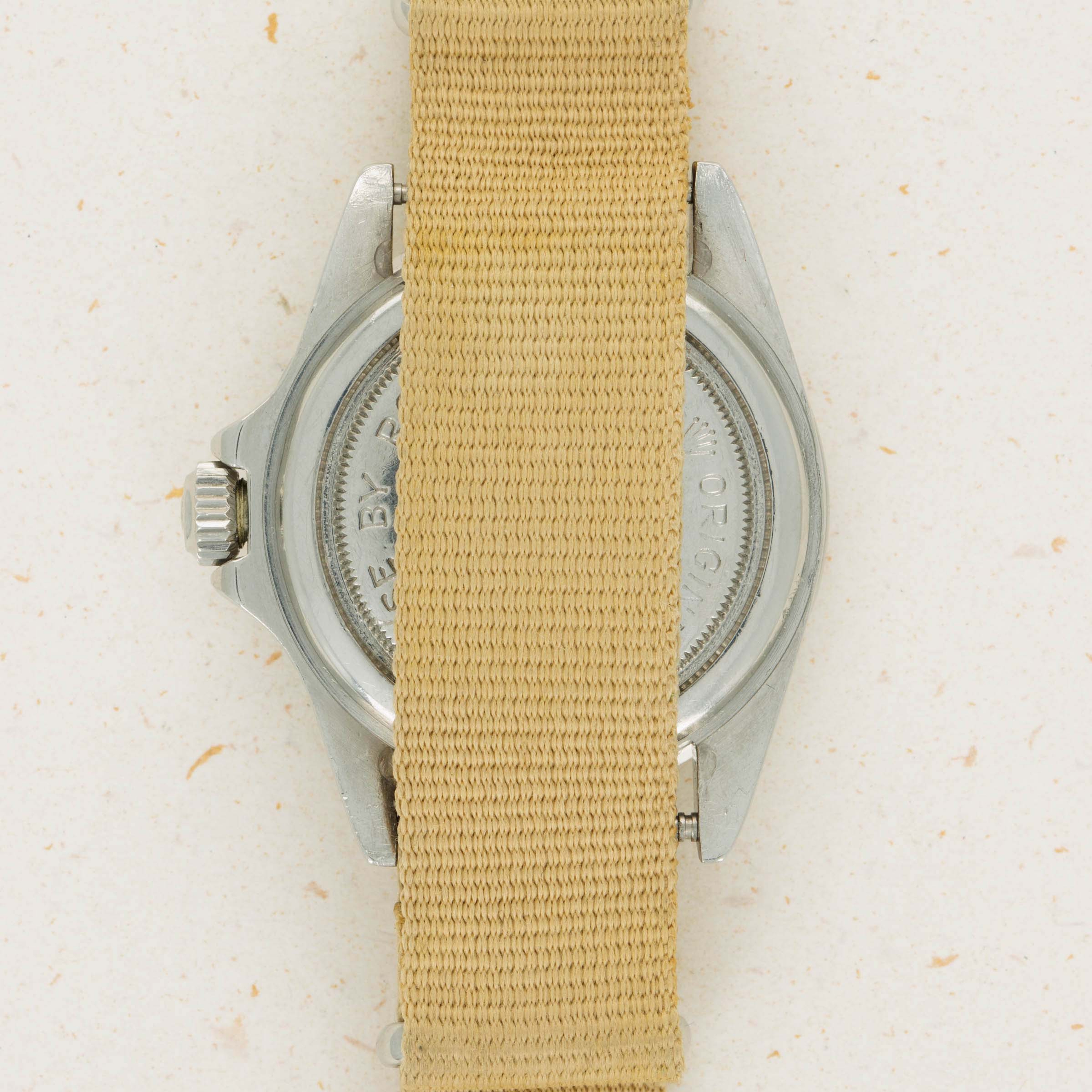 Watch is in very good overall condition. Case exhibits moderate wear, with lugs being slightly thin due to previous polishing. Dial in excellent condition with some surface wear and slightly discolored luminous. Hands are a different tone and appear to have been relumed at some point. Original insert has faded to a very light tone, with some damage along the inner edge.