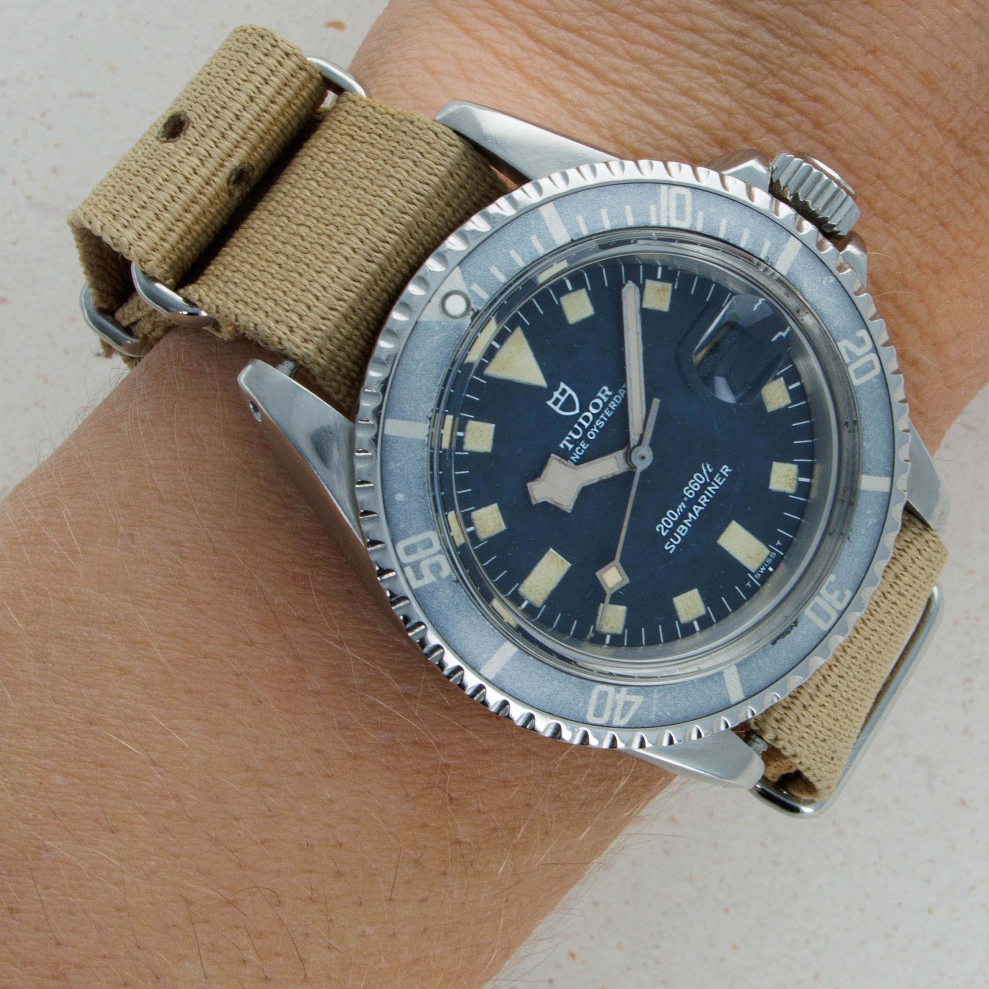 Debuting in 1954, the Tudor Submariner set out on its journey to become a more affordable version of the Rolex Submariner, which had been released the year prior, in keeping with Tudor's original ethos. A legendary watch thanks to its ties to the French Navy amongst other military forces, the Tudor Submariner's history as one of the most widely issued military dive watches speaks for itself. Keen to produce just as high-quality a product as their sibling, Tudor fitted the Submariner with OEM Rolex parts throughout its construction, except for its third-party movement. Released in 1969, the ref. 7021/0, which we have here, ushered in a new era for the Submariner and Tudor alike by introducing the new snowflake handset for which Tudor is famous for and the date complication that can be found at 3 o'clockSubmariner'sTudor's on the dial. Produced with either a black or blue dial with a matching anodized aluminum bezel insert, the Submariner ref. 7021/0 has become a collector-favorite thanks to its large distinctive square hour markers, snowflake hands, and date function – all immediate tells that this Submariner is undoubtedly a lot more unique than the ones that came before it.