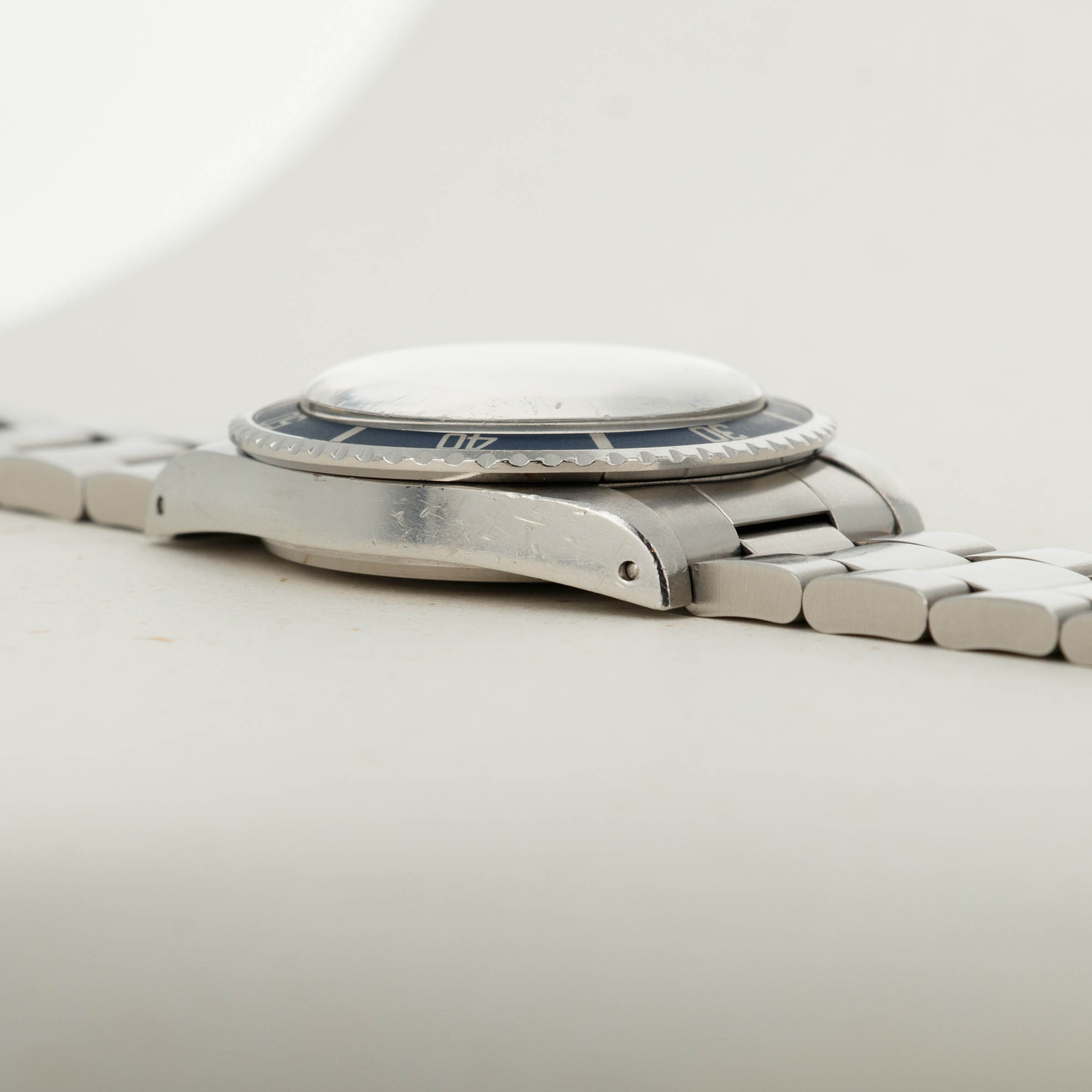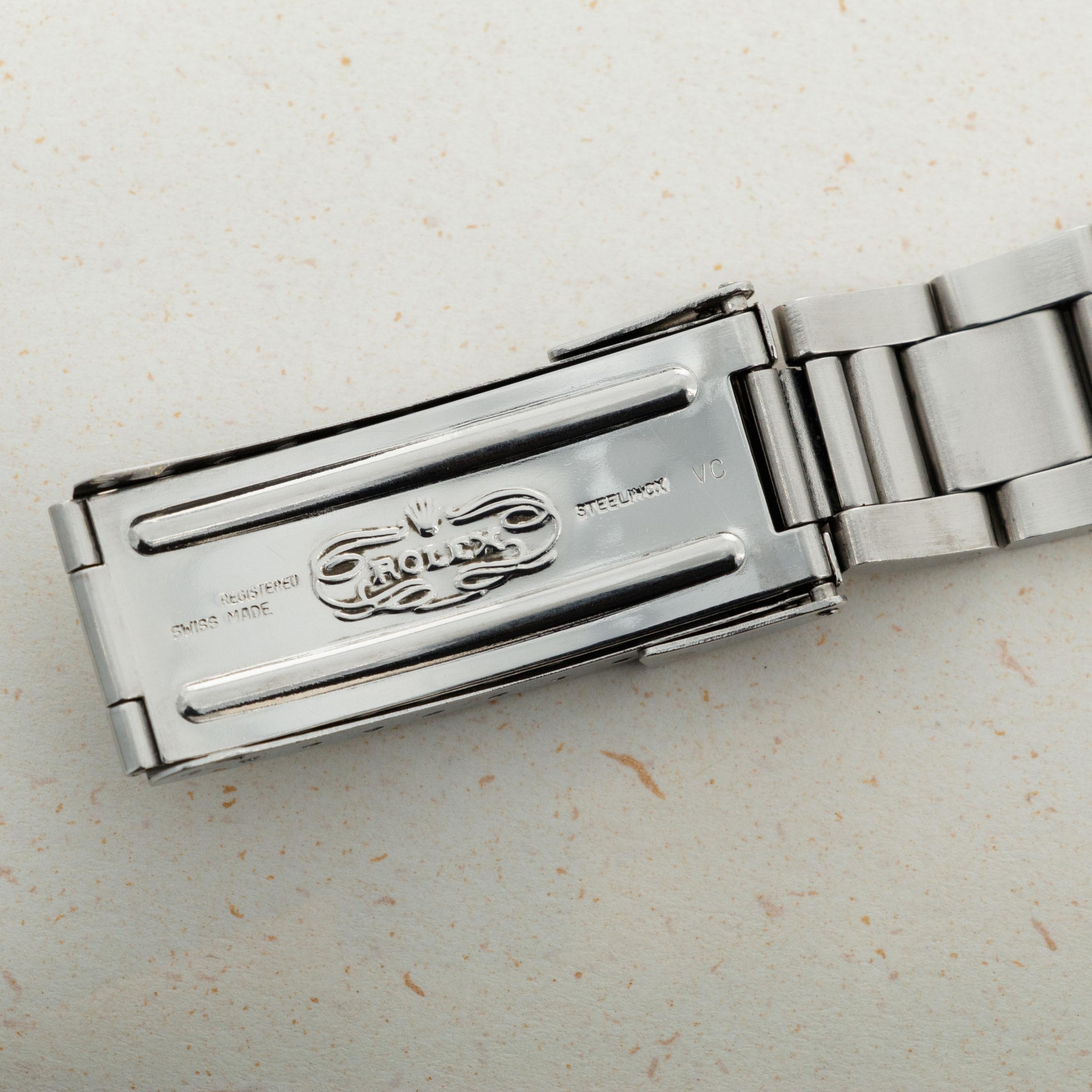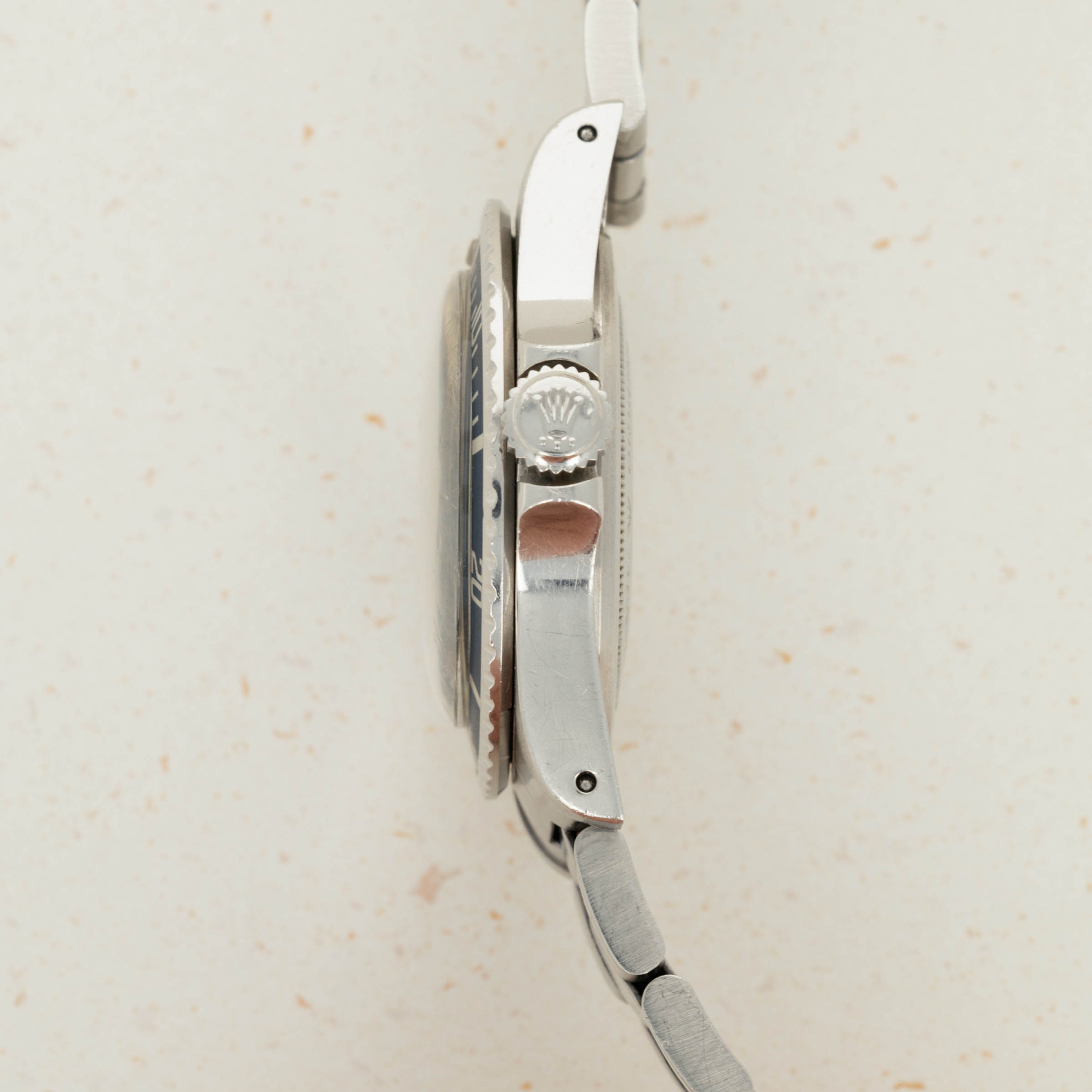 Watch is in overall excellent condition. Case has sharp chamfered edges and thick lugs. There are light marks and scraches as shown on the case. Blue dial is in near-mint condition with no visible damage and tritium that matches the hands perfectly. Original blue bezel insert has a light fade and is free from anything but minor superficial wear. The watch is fitted with a non-cyclops crystal. Watch comes on a 91350 oyster fliploc bracelet wtih 10 links, none of which are removable.