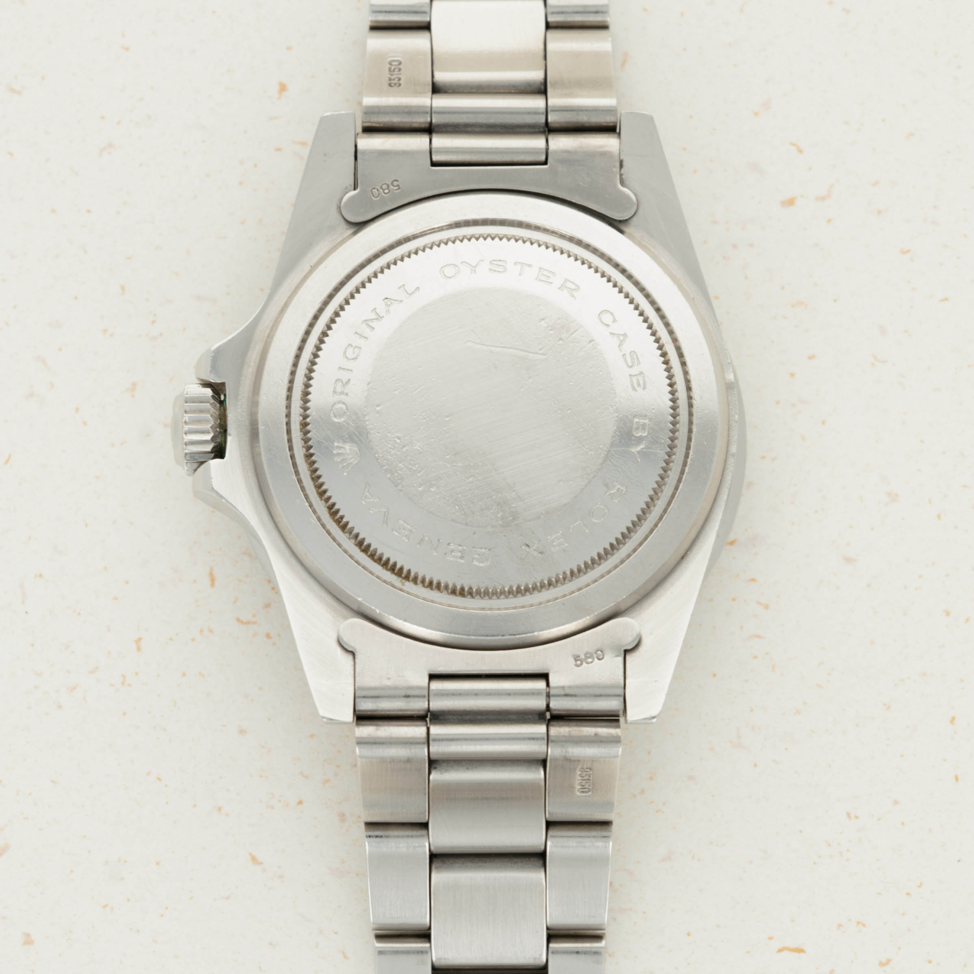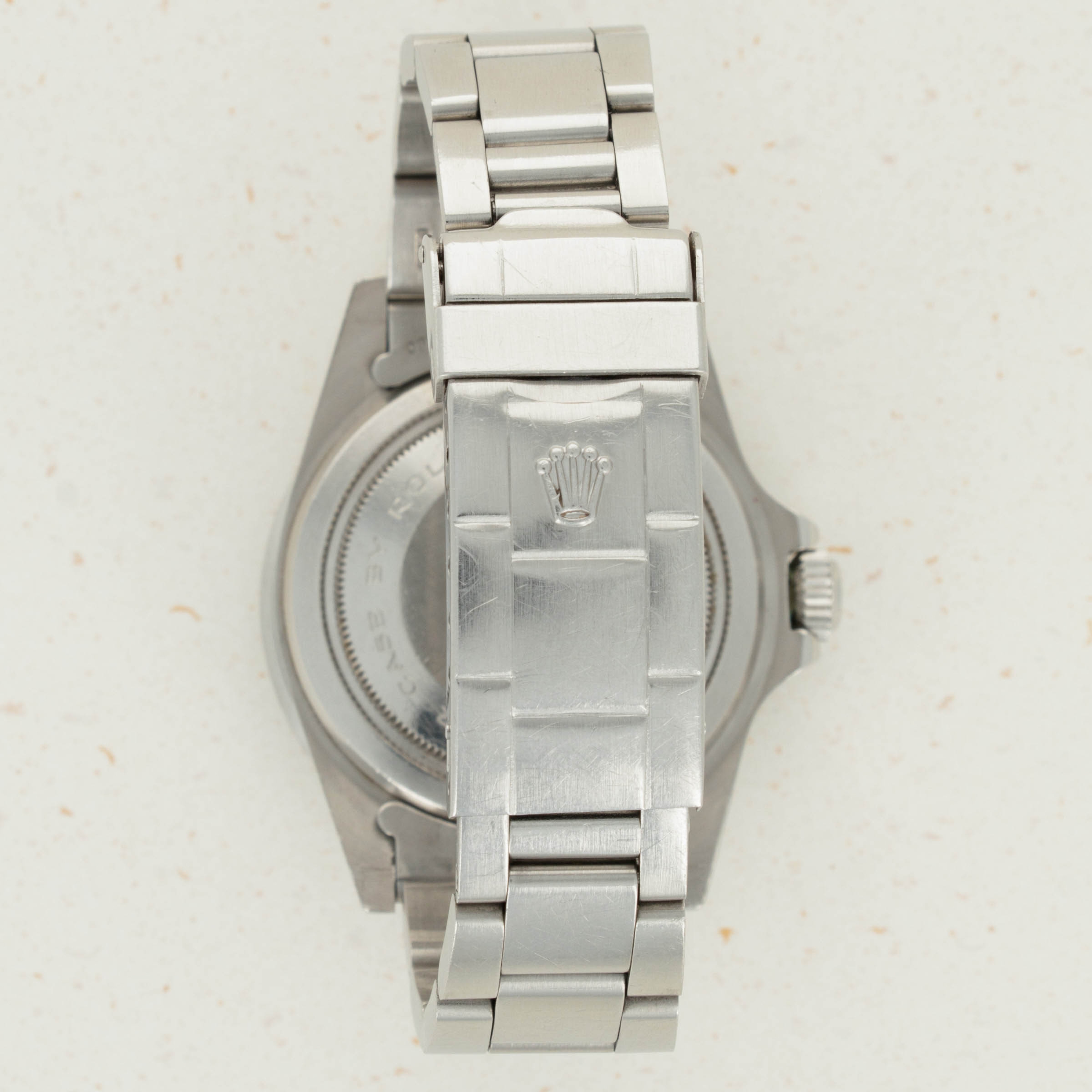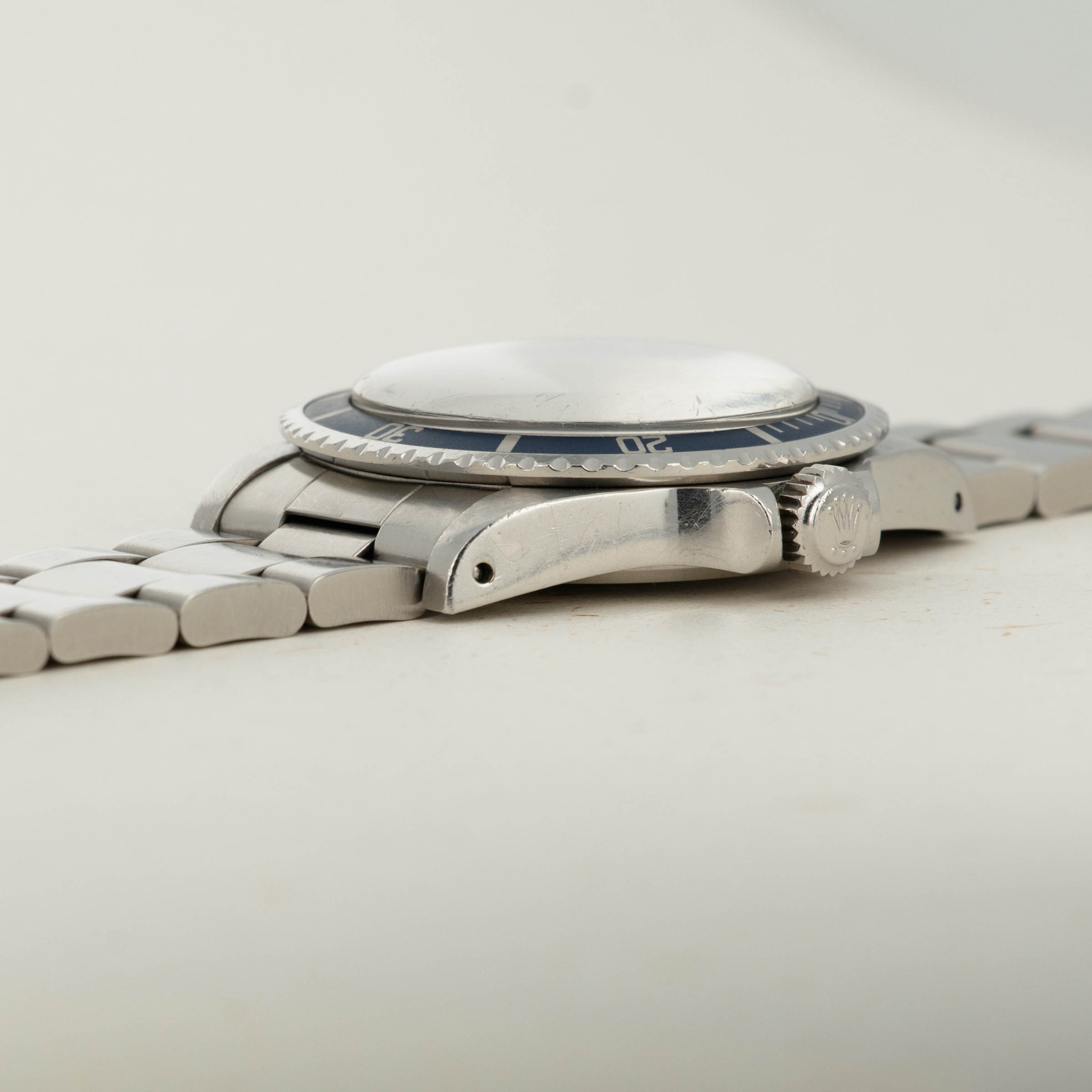 Watch is in overall excellent condition. Case has sharp chamfered edges and thick lugs. There are light marks and scraches as shown on the case. Blue dial is in near-mint condition with no visible damage and tritium that matches the hands perfectly. Original blue bezel insert has a light fade and is free from anything but minor superficial wear. The watch is fitted with a non-cyclops crystal. Watch comes on a 91350 oyster fliploc bracelet wtih 10 links, none of which are removable.