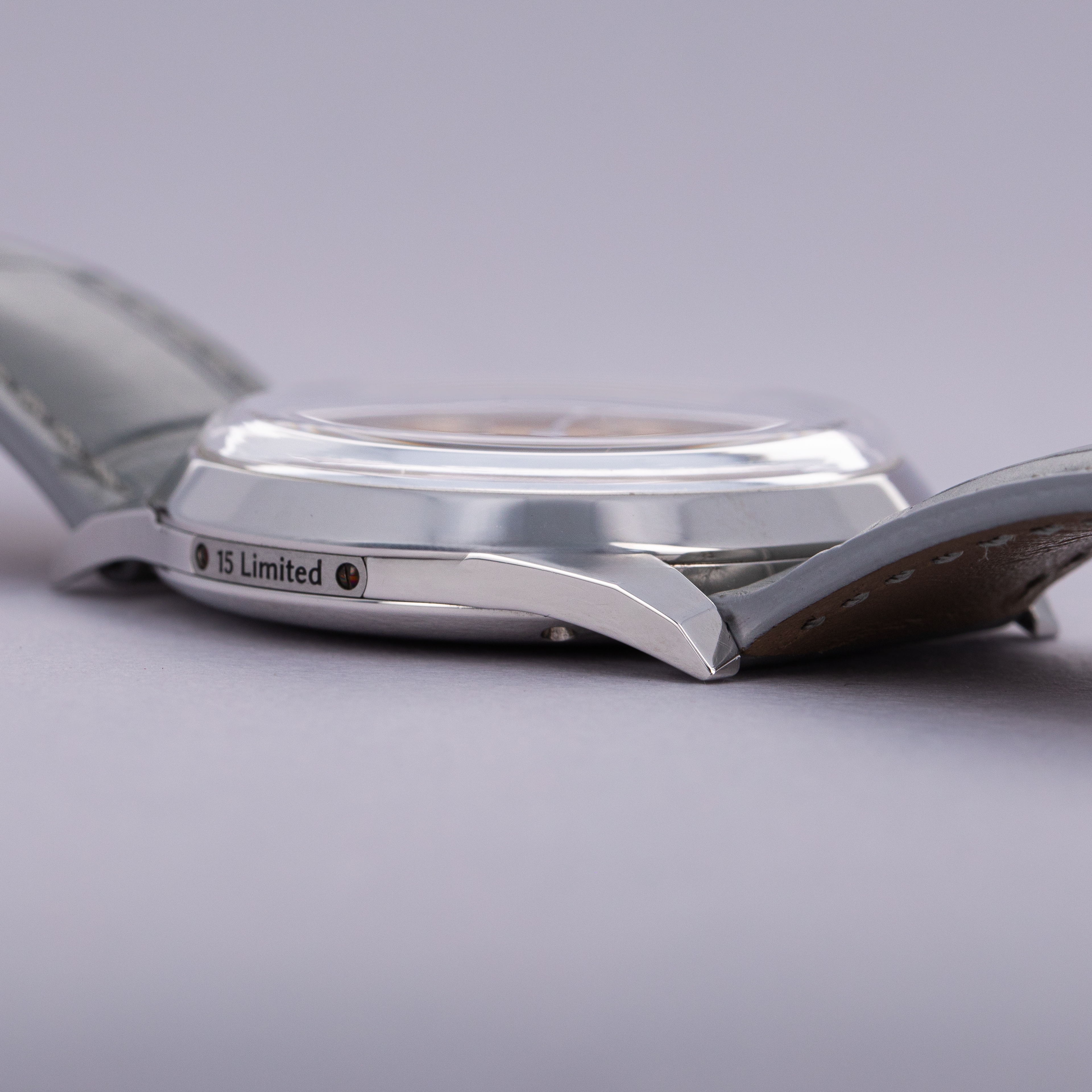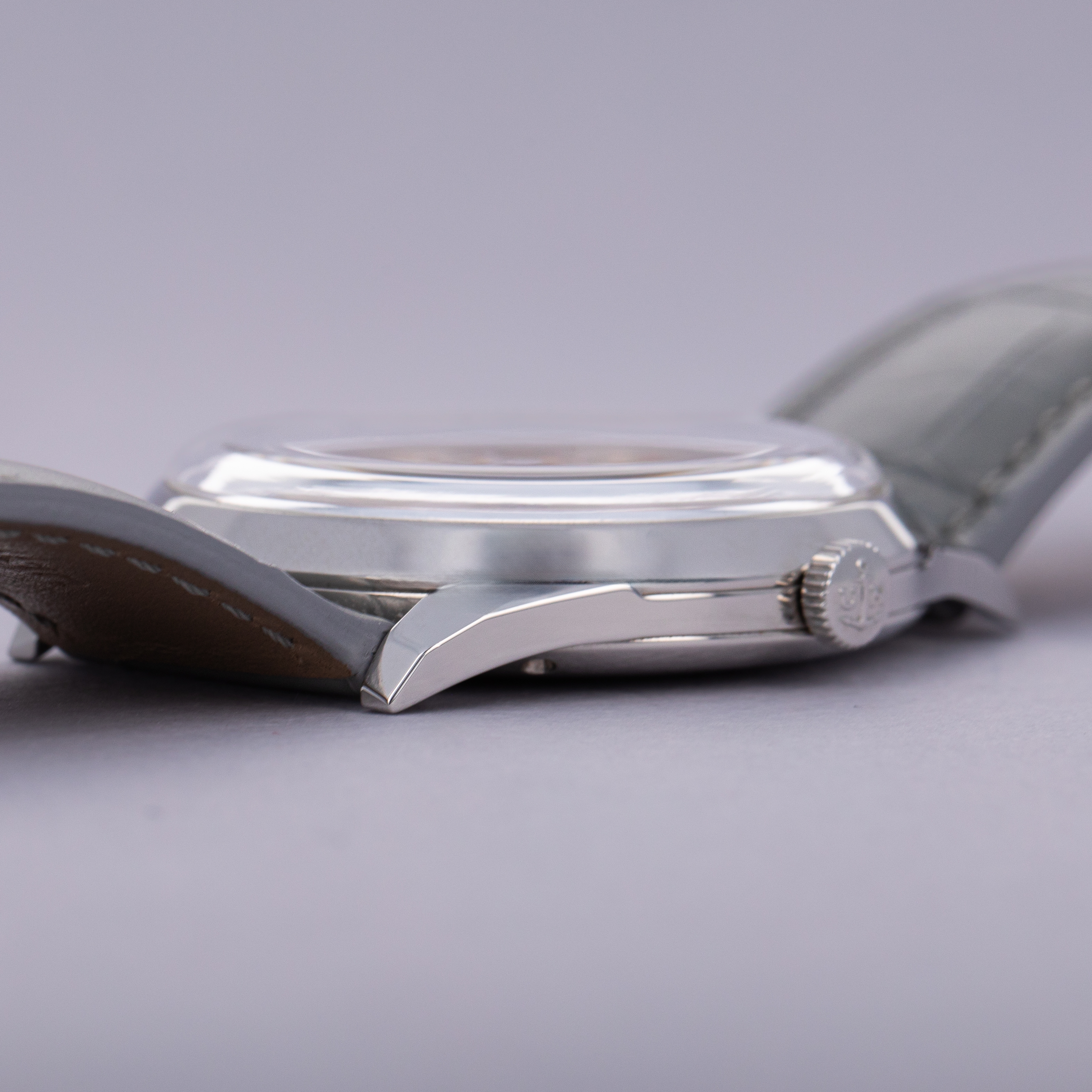 Boasting an entirely polished 39mm stainless steel case, this timepiece's construction is well-fitting and classical in its design language.