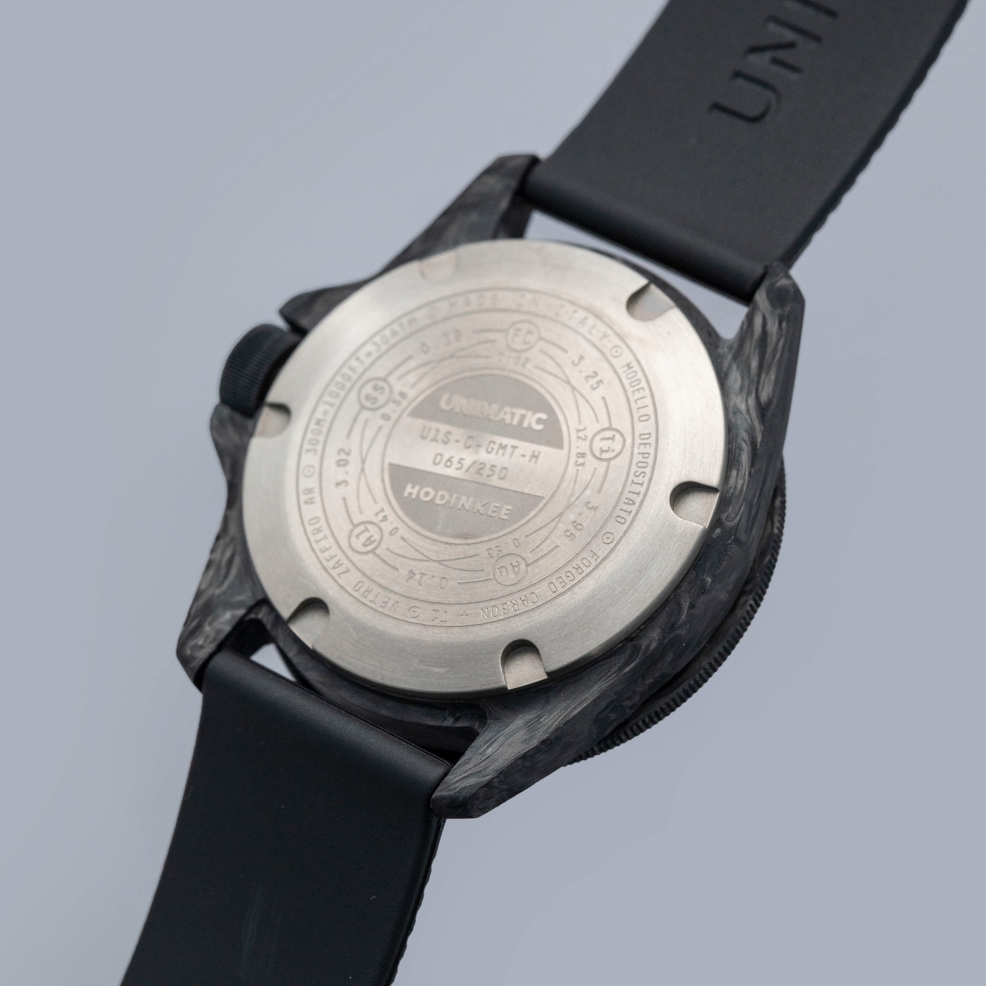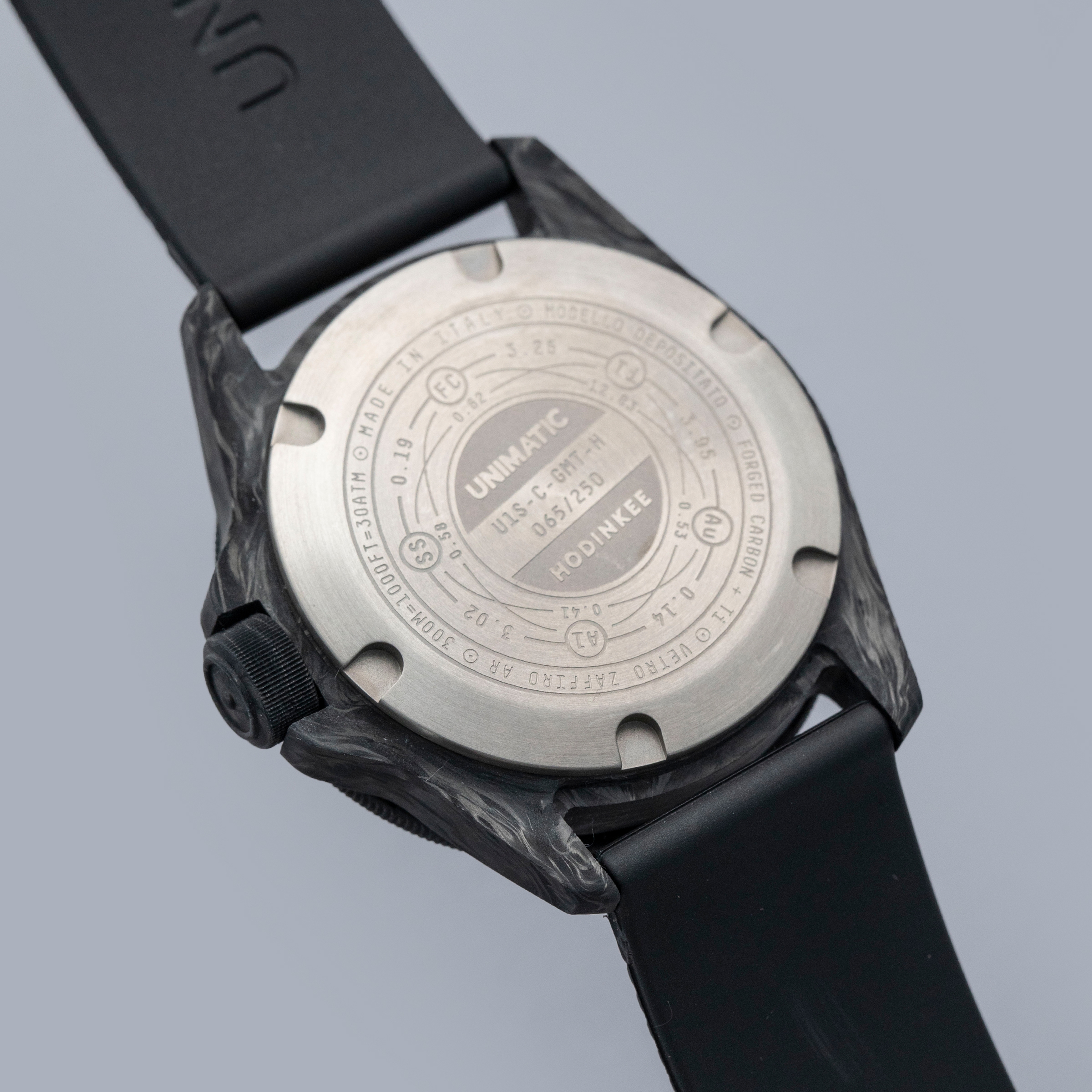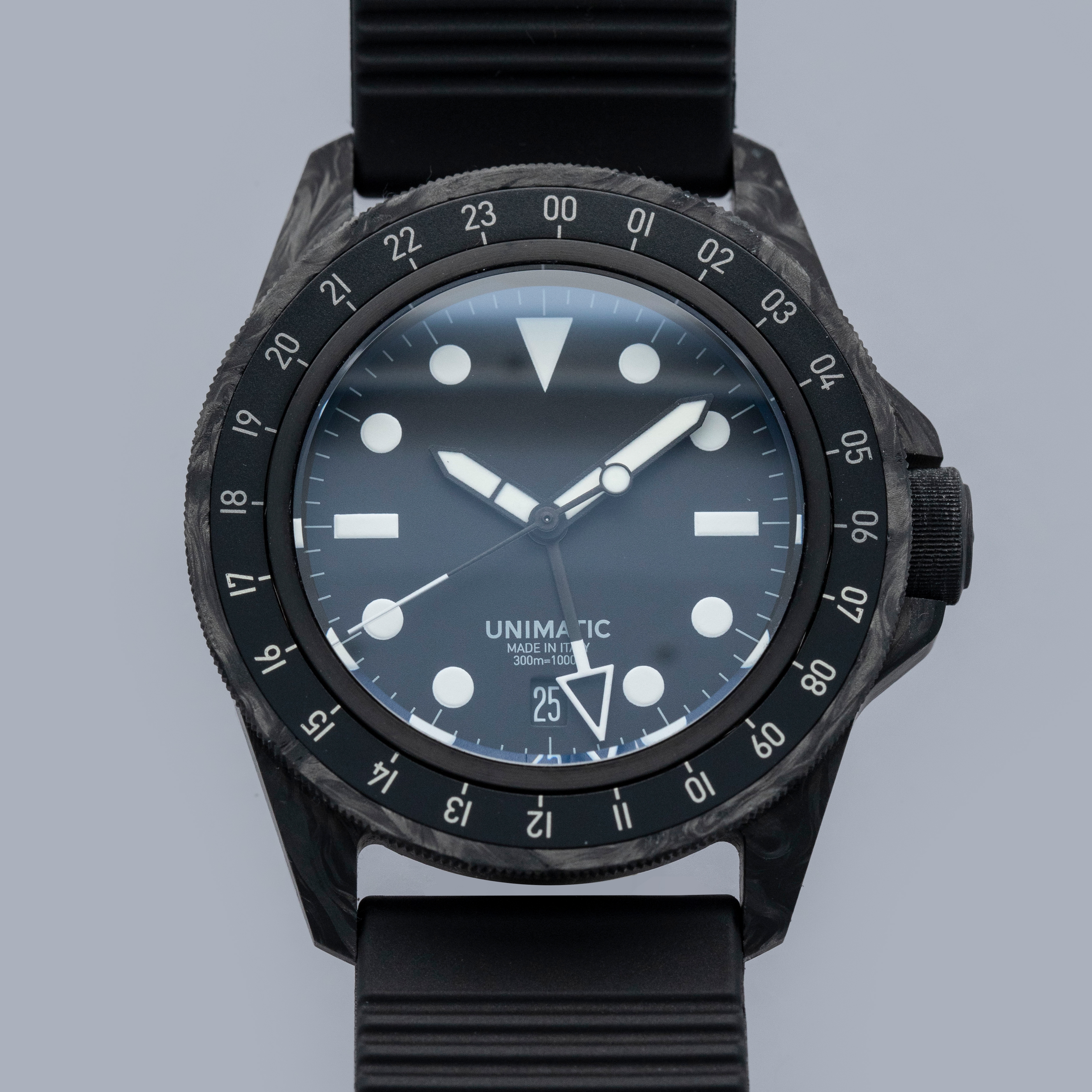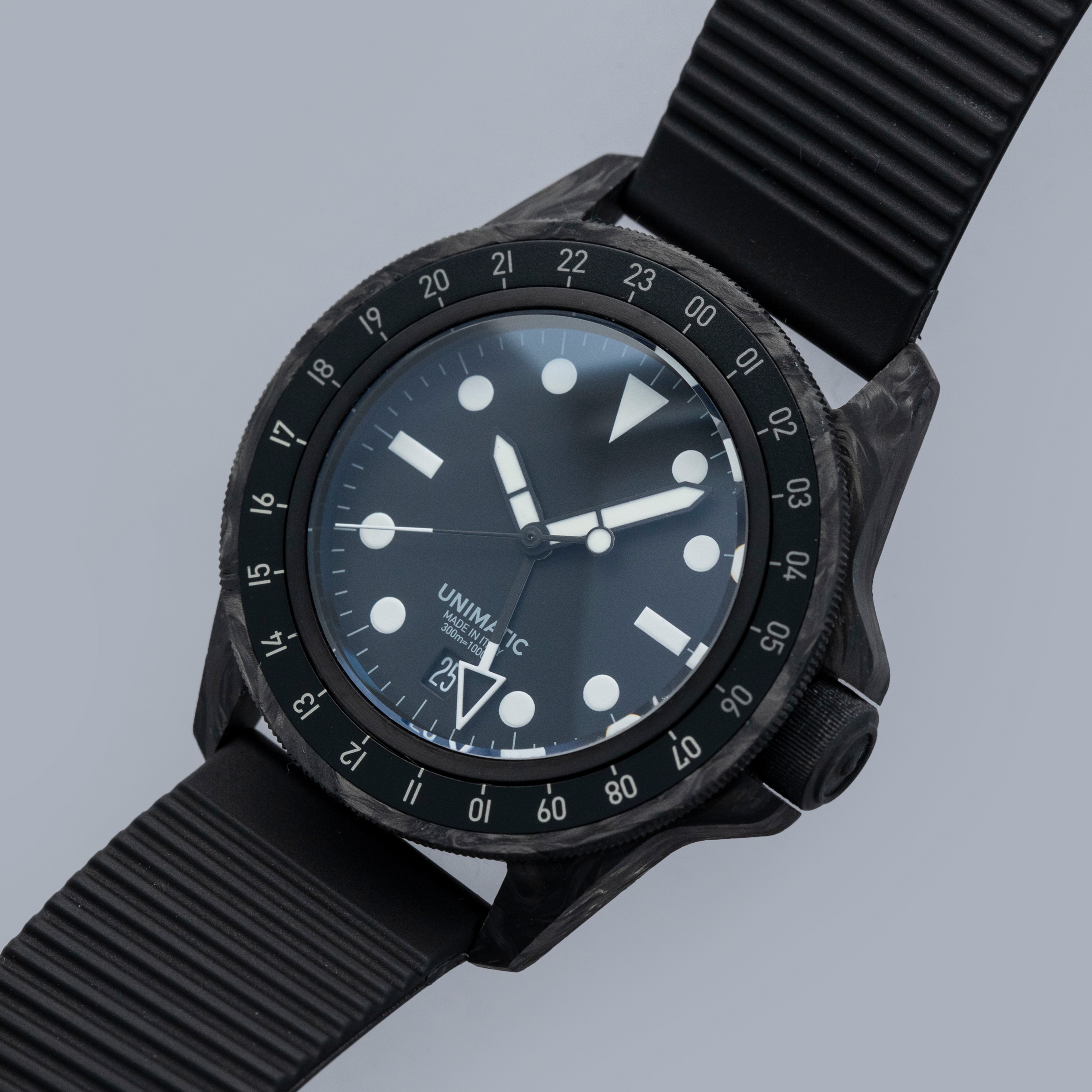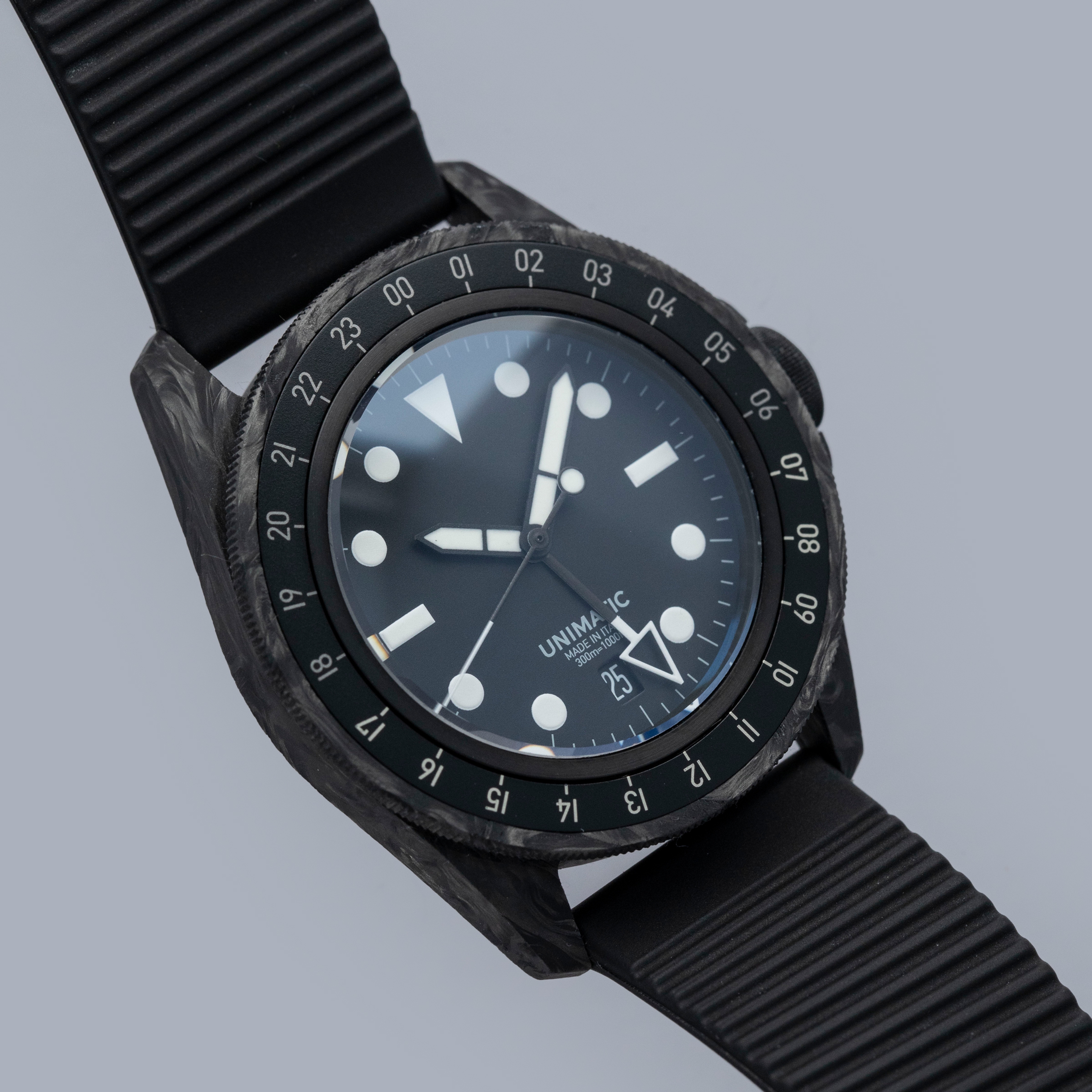 Boasting an all-black forged carbon construction, the U1S-Carbon hides on the wrist of its wearer thanks to its stealthy aesthetic and lightweight materials.