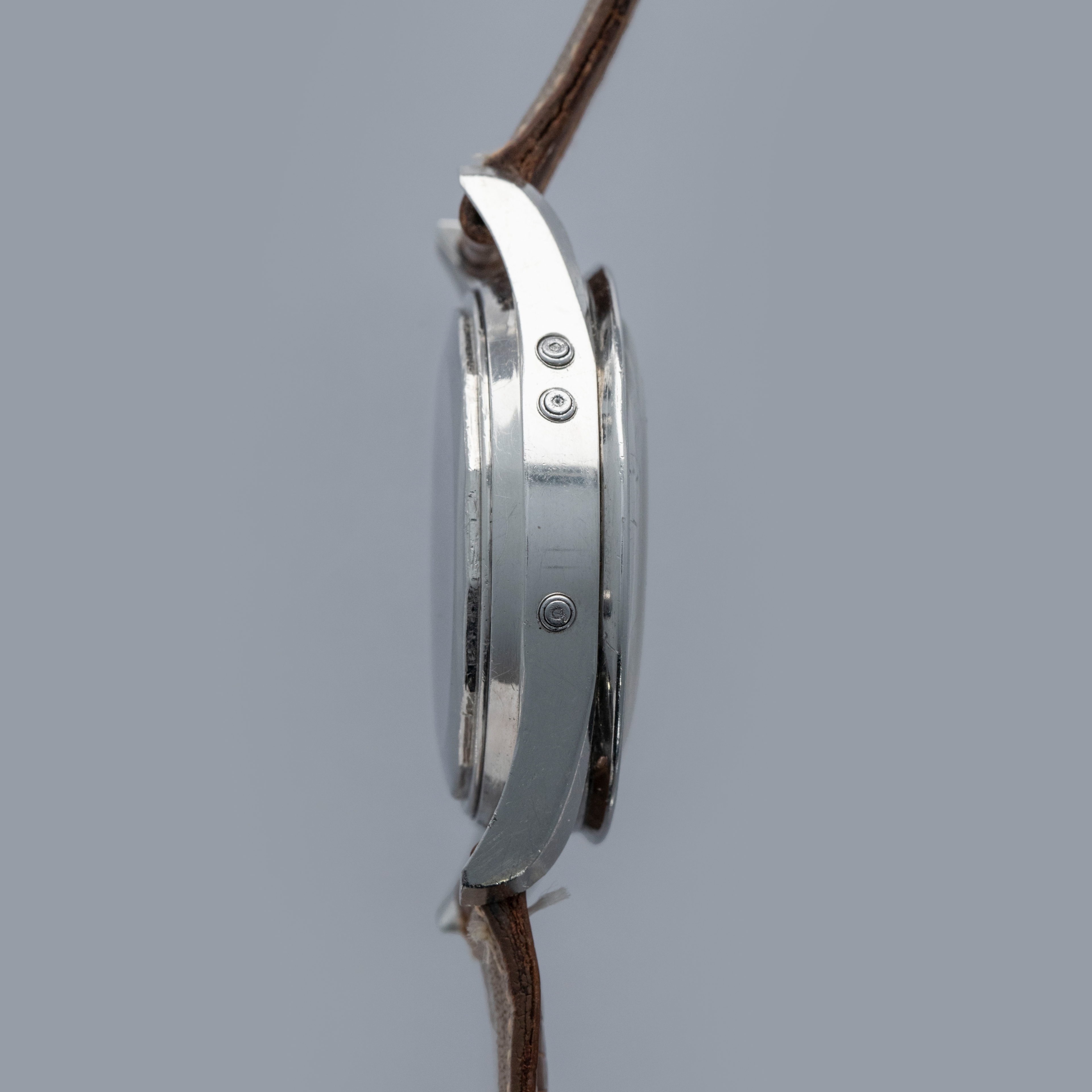 Measuring 37mm in diameter and made of stainless steel, the Tri-Compax's use of twisted lyre lugs give its construction a wonderfully mid-century aesthetic and wrist presence that is stylish and effortlessly cool.