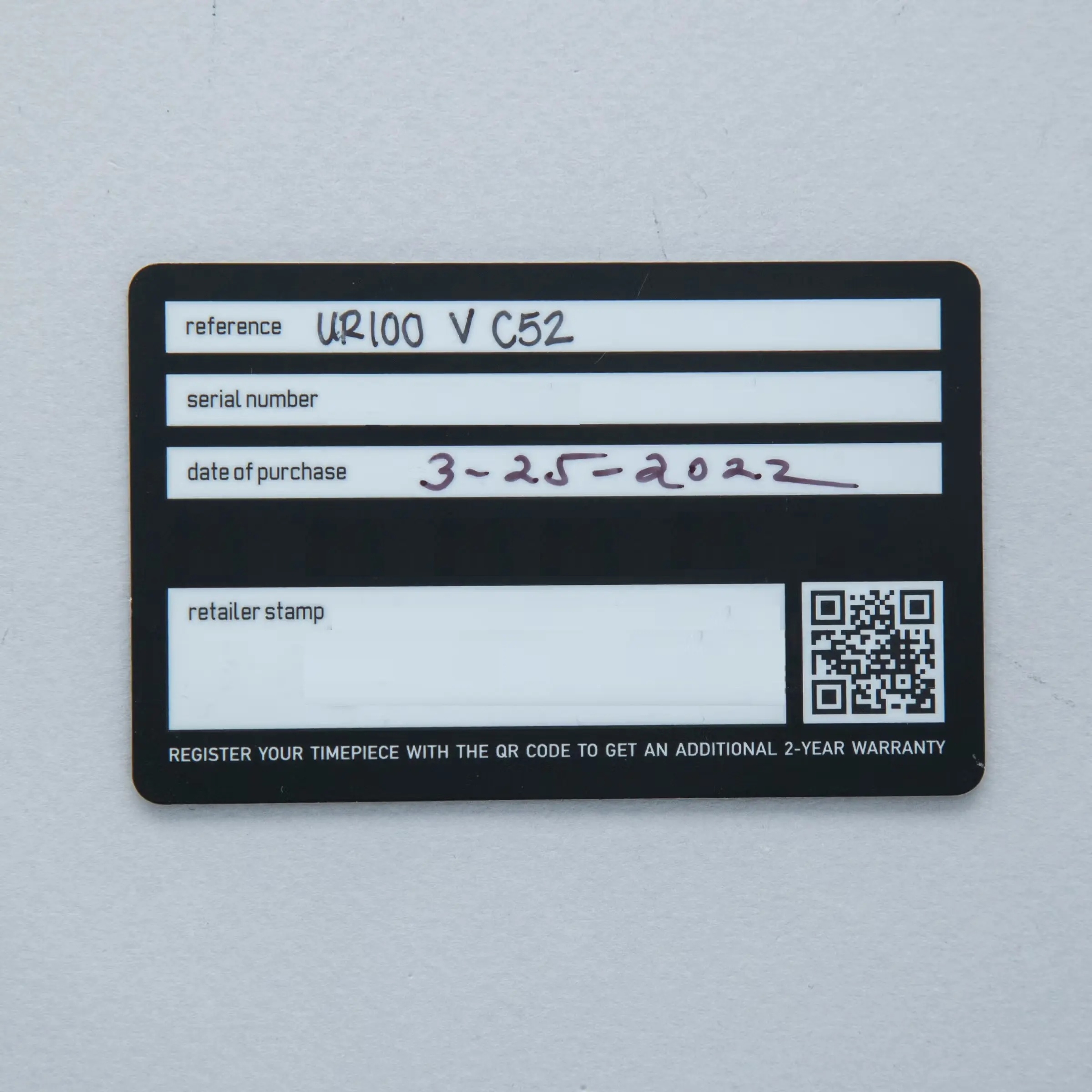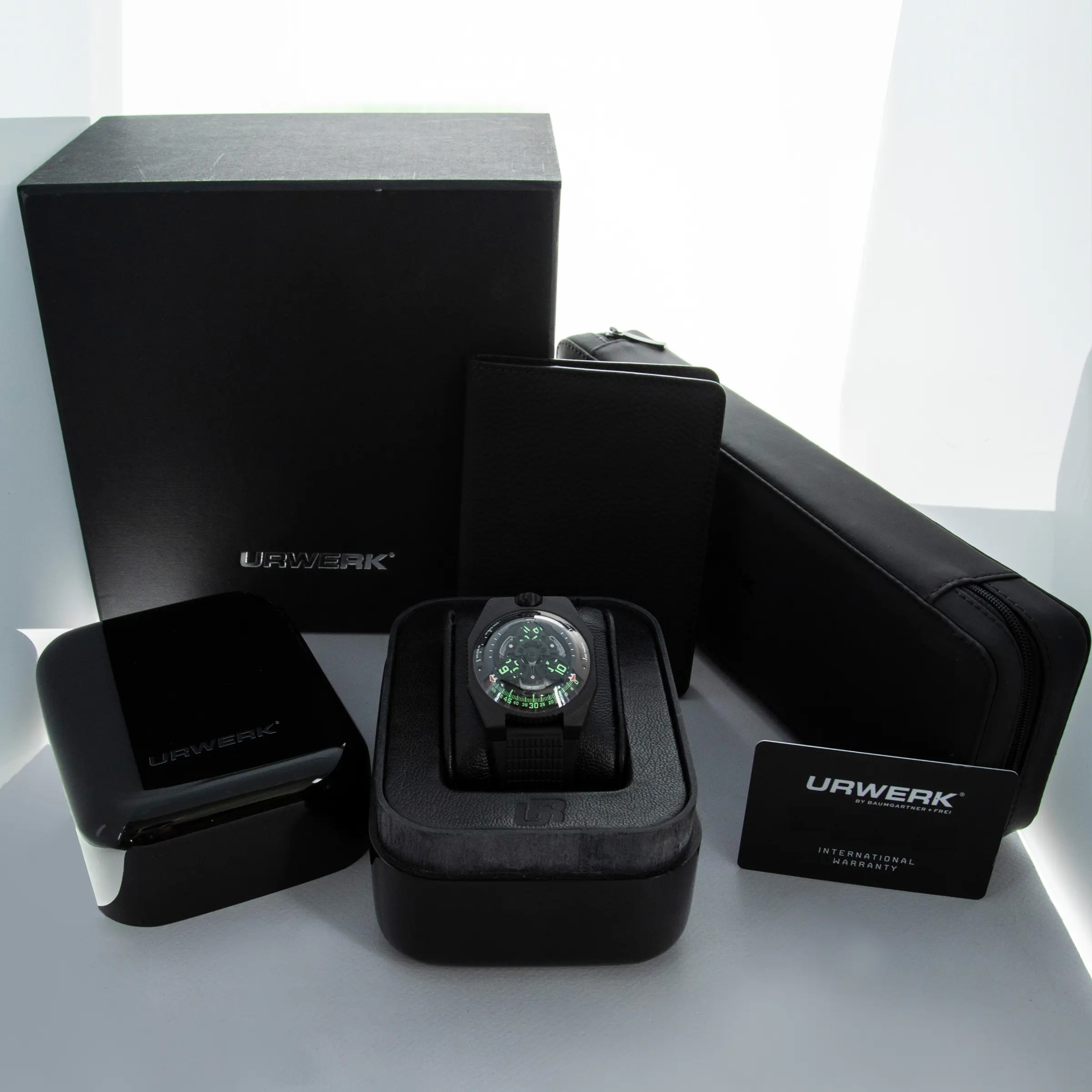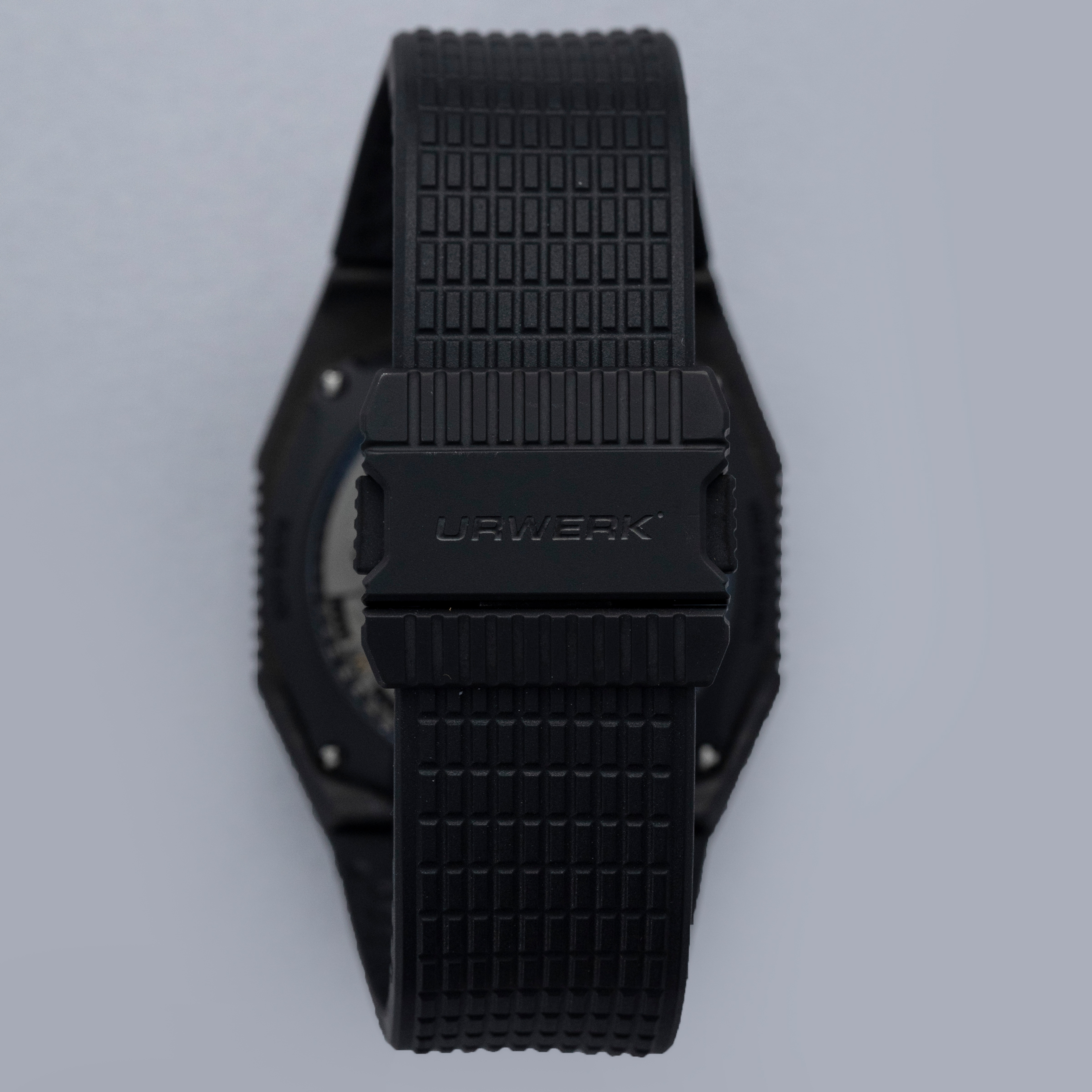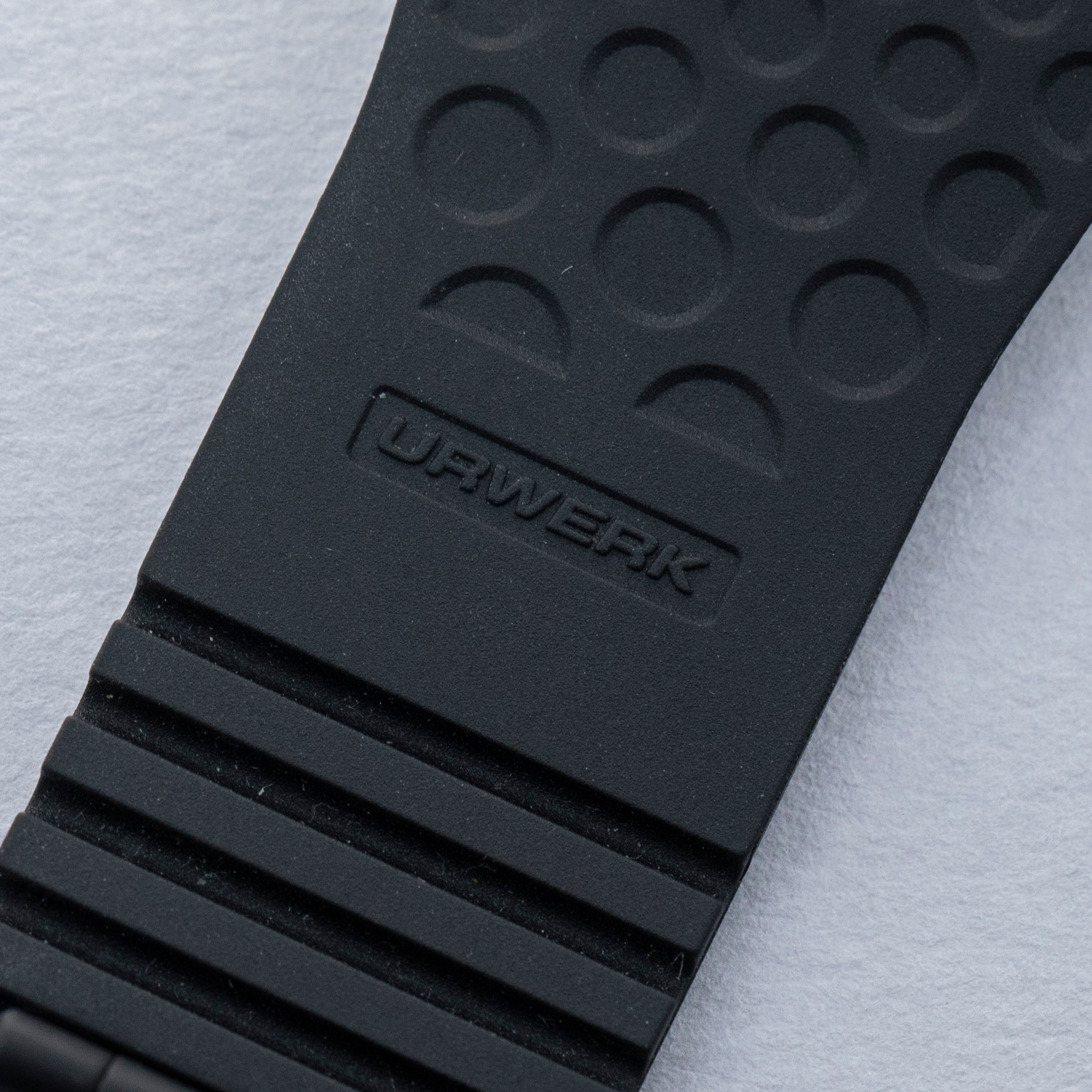 Made of 52 ultra-thin layers of 'carbon thin ply' that are compressed in epoxy polymer resin, the UR-100V C52's blacked-out case includes a marbling specific to carbon fiber along with a matte finish that allows this watch to wear more subtly on the wrist than one might assume at first glance.