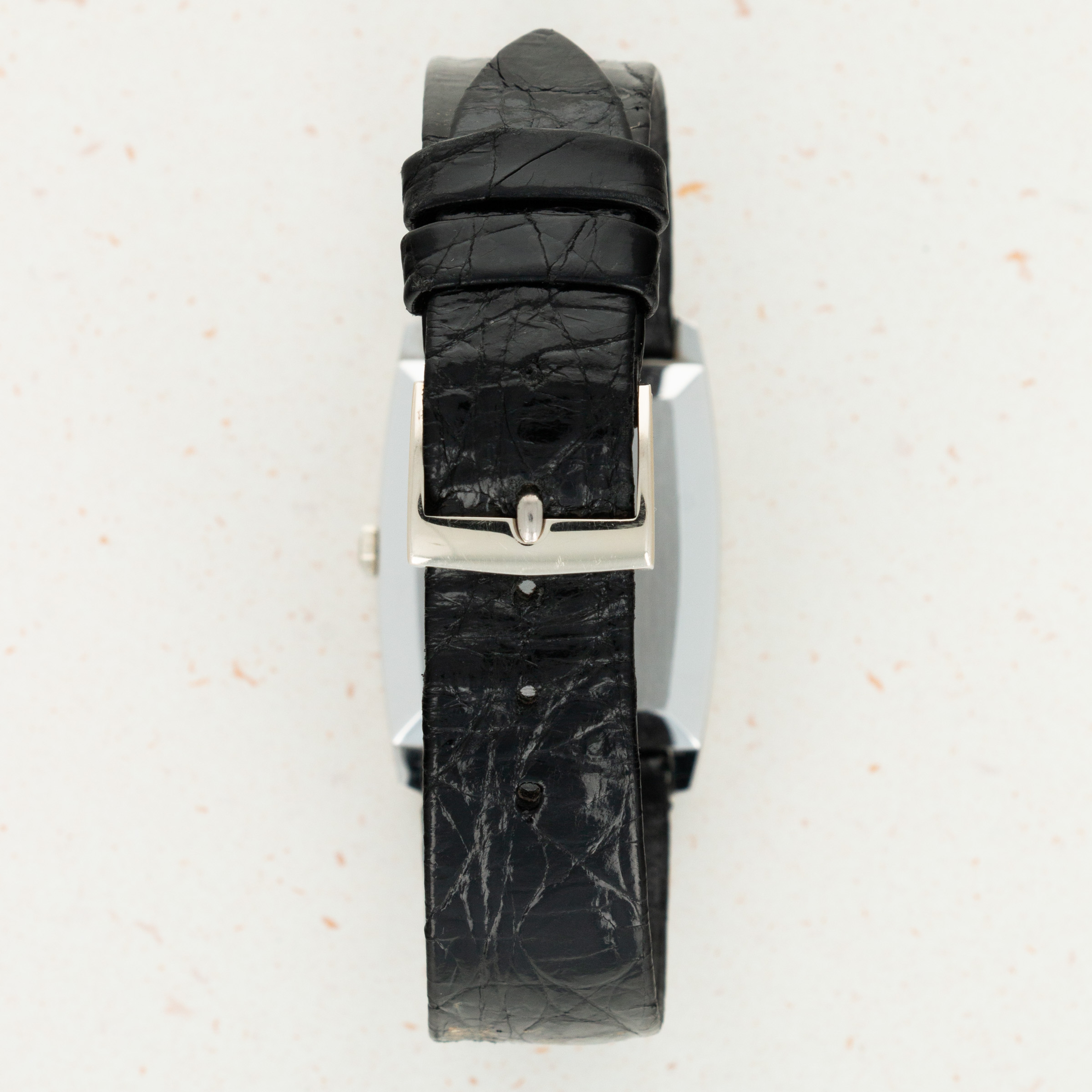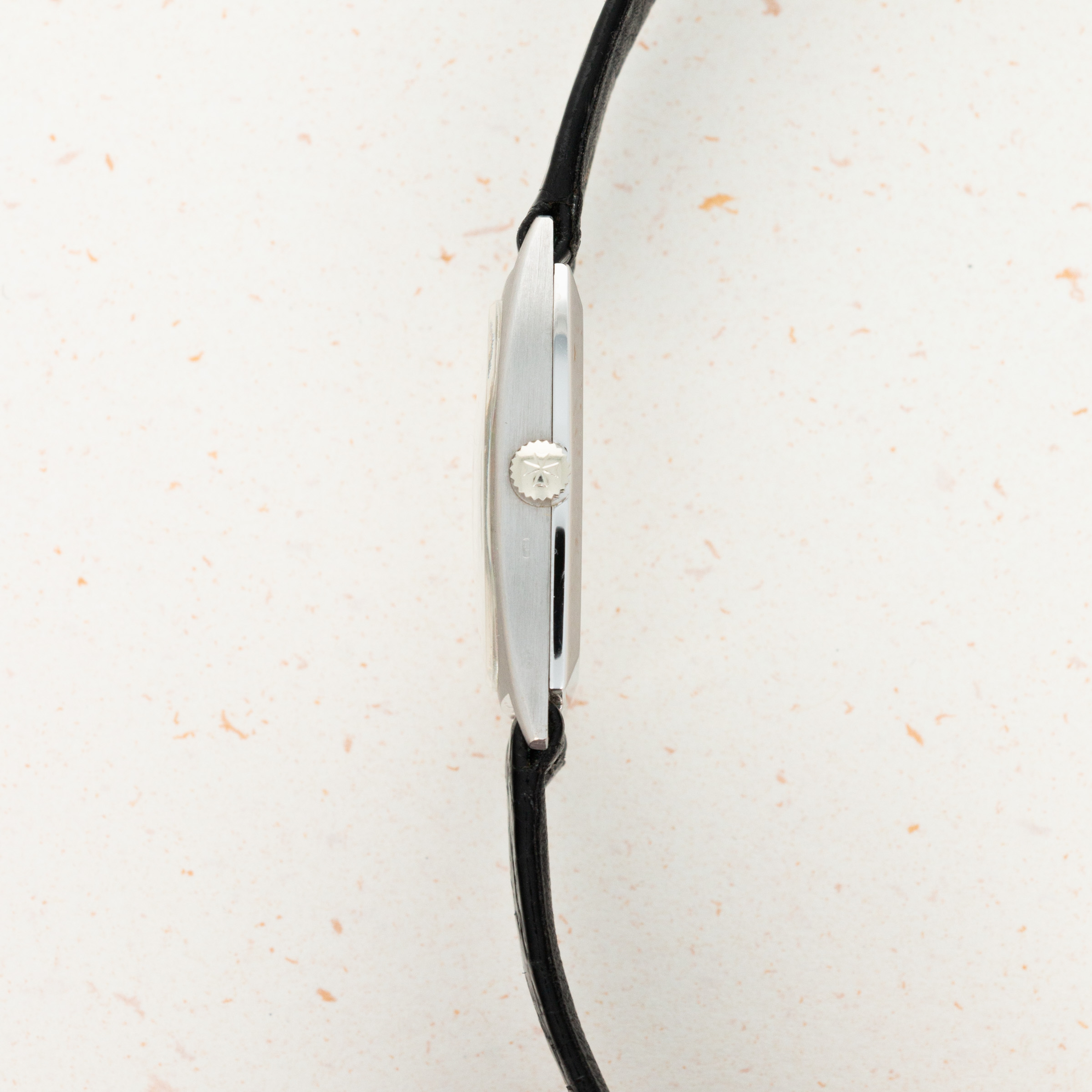 A classic piece of 1960's Vacheron Constantin design, the ref. 7813 features a 25mm wide tonneau-shaped case with short lugs that enable this stunning timepiece to tightly hug the wrist, as was the fashion at the time. Crafted from 18k gold and featuring an unapologetically understated white dial, the ref. 7183 is a remarkably reserved timepiece with the level of sophistication that we have come to expect from Vacheron Constantin. Manually wound and fitted with the Vacheron Constantin cal. K1014 (produced by JLC), the ref. 7813 is an authentic example of vintage mid-century Haute horology as watchmakers focused on creating exceedingly beautiful timepieces instead of the hyper utilitarian watches that we have today.