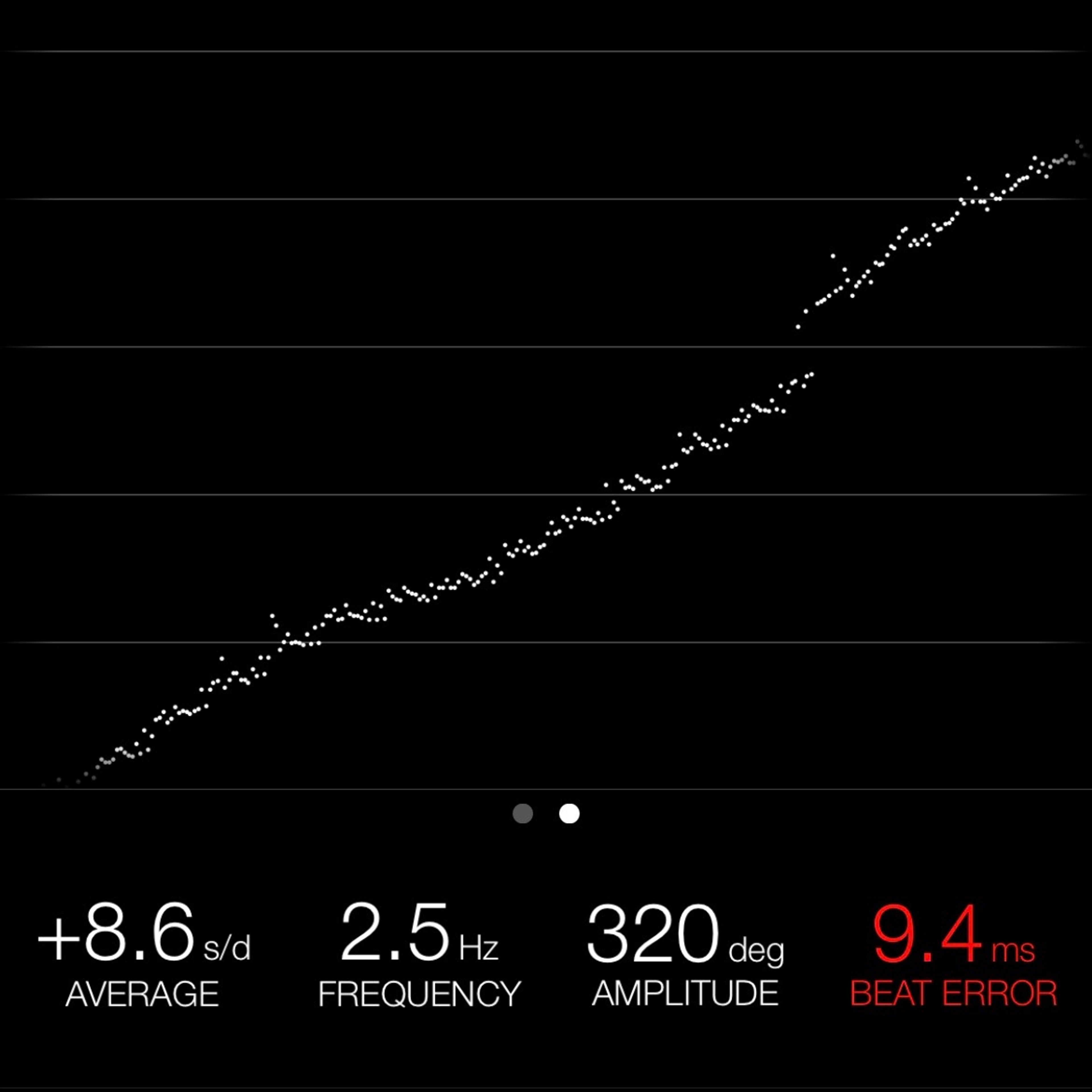 This reading was taken (crown down) with a ONEOF Accuracy Boutique Edition timing machine at time of cataloging. It is provided as a courtesy only, and shall not be construed as a warranty or guarantee of any kind. Please refer to our terms and conditions of sale for more information.