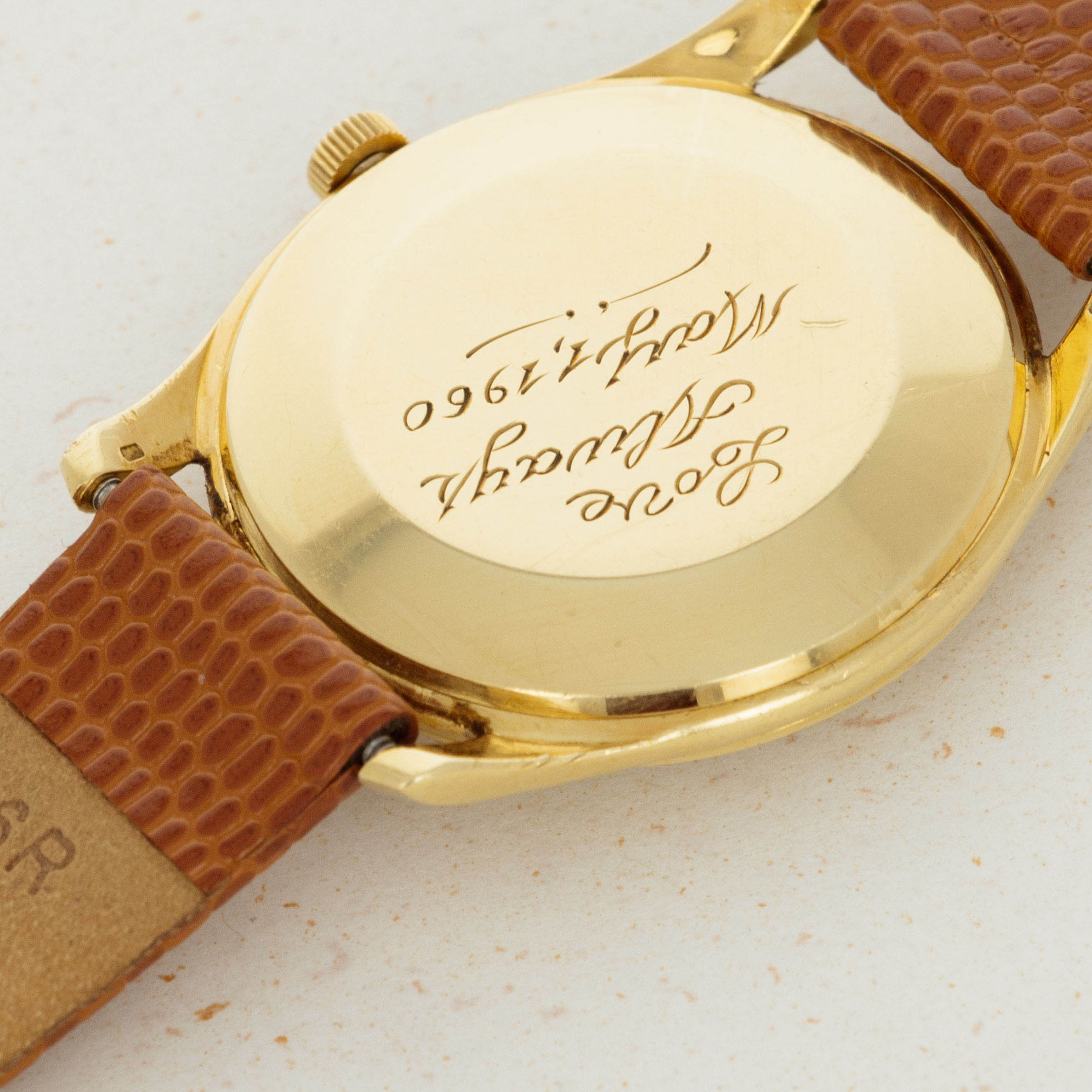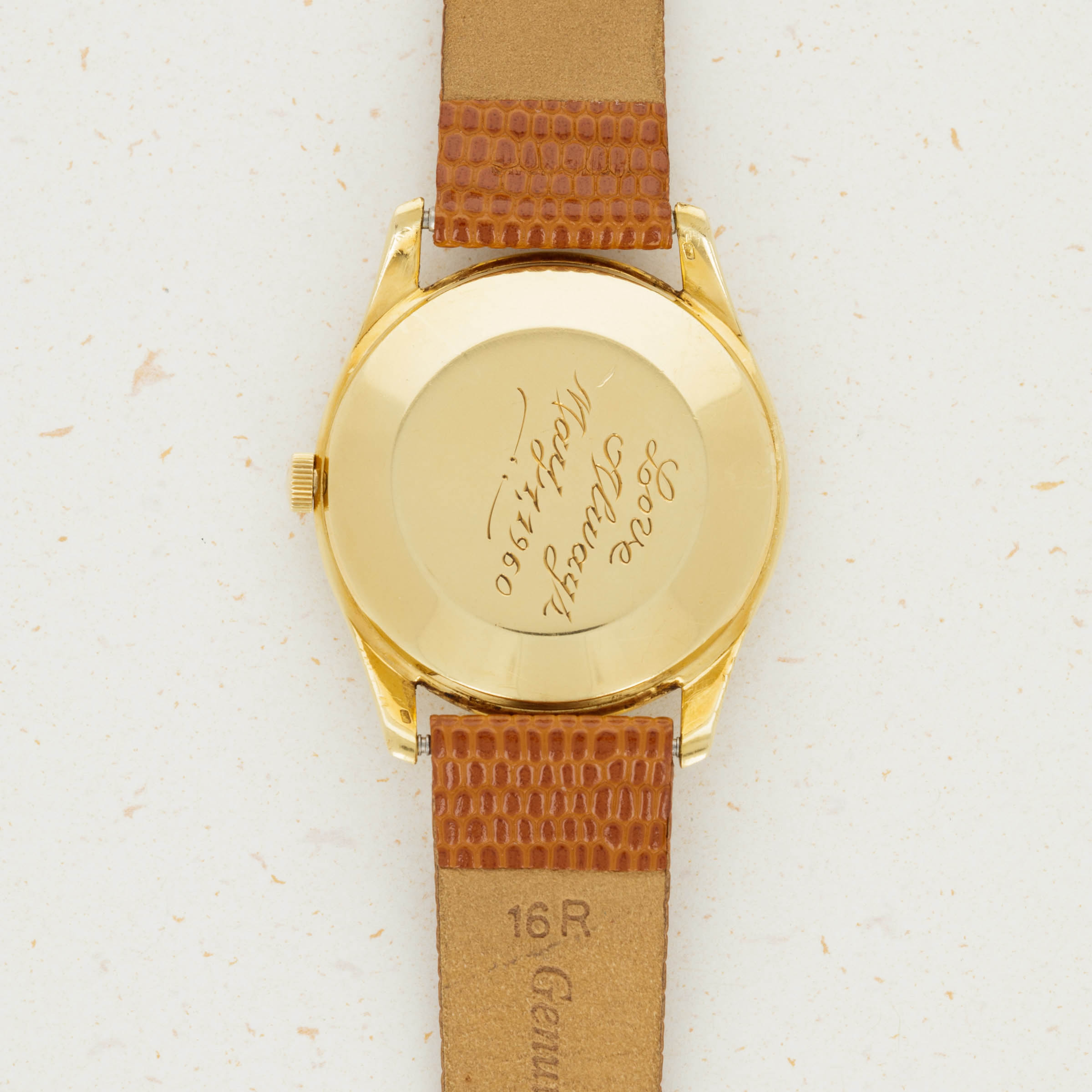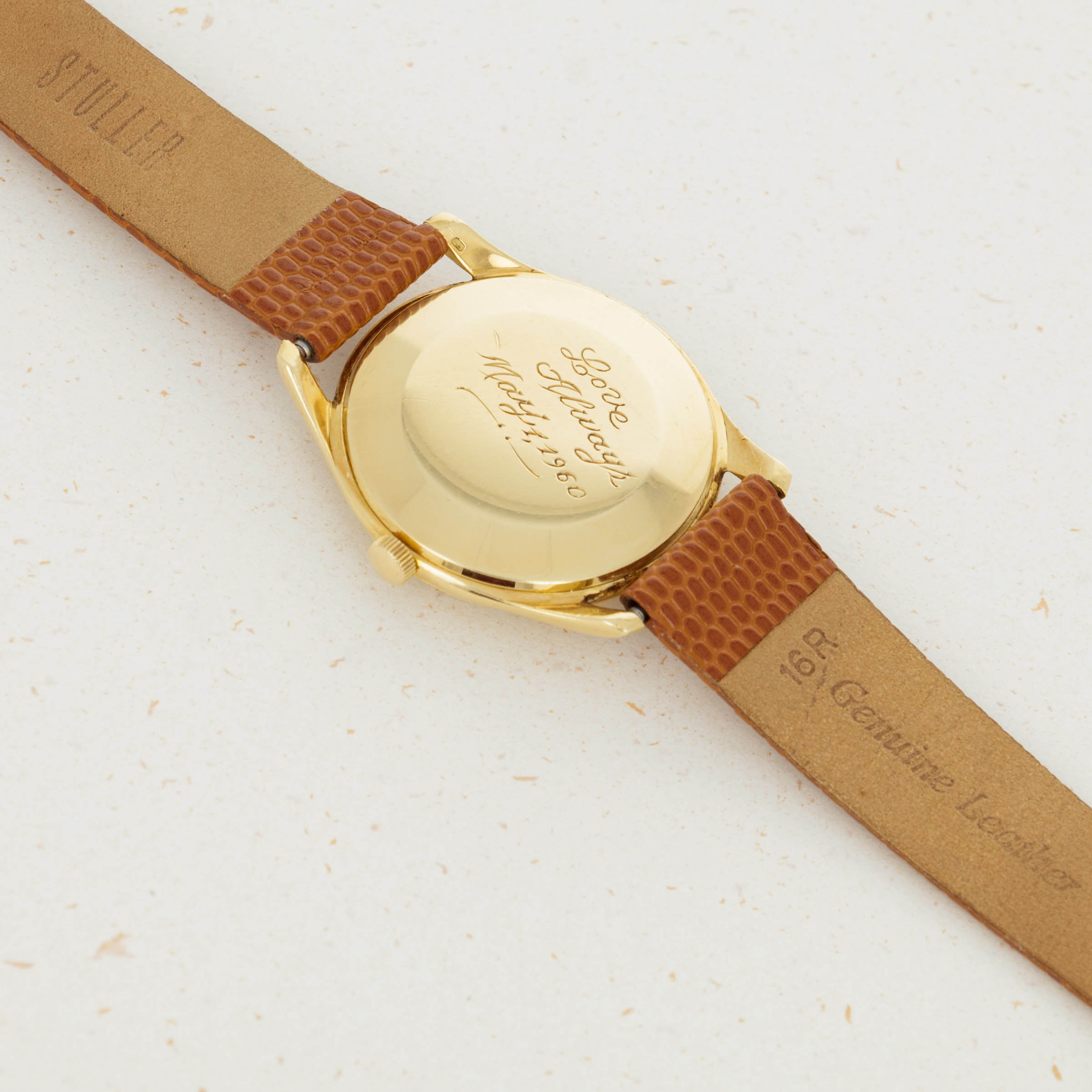 An intensely elegant dress watch with a loving caseback engraving, this ref. 6134 embodies the charm and opulence of mid-century dress watches but with a subtle stylishness thanks to its twisted lugs.