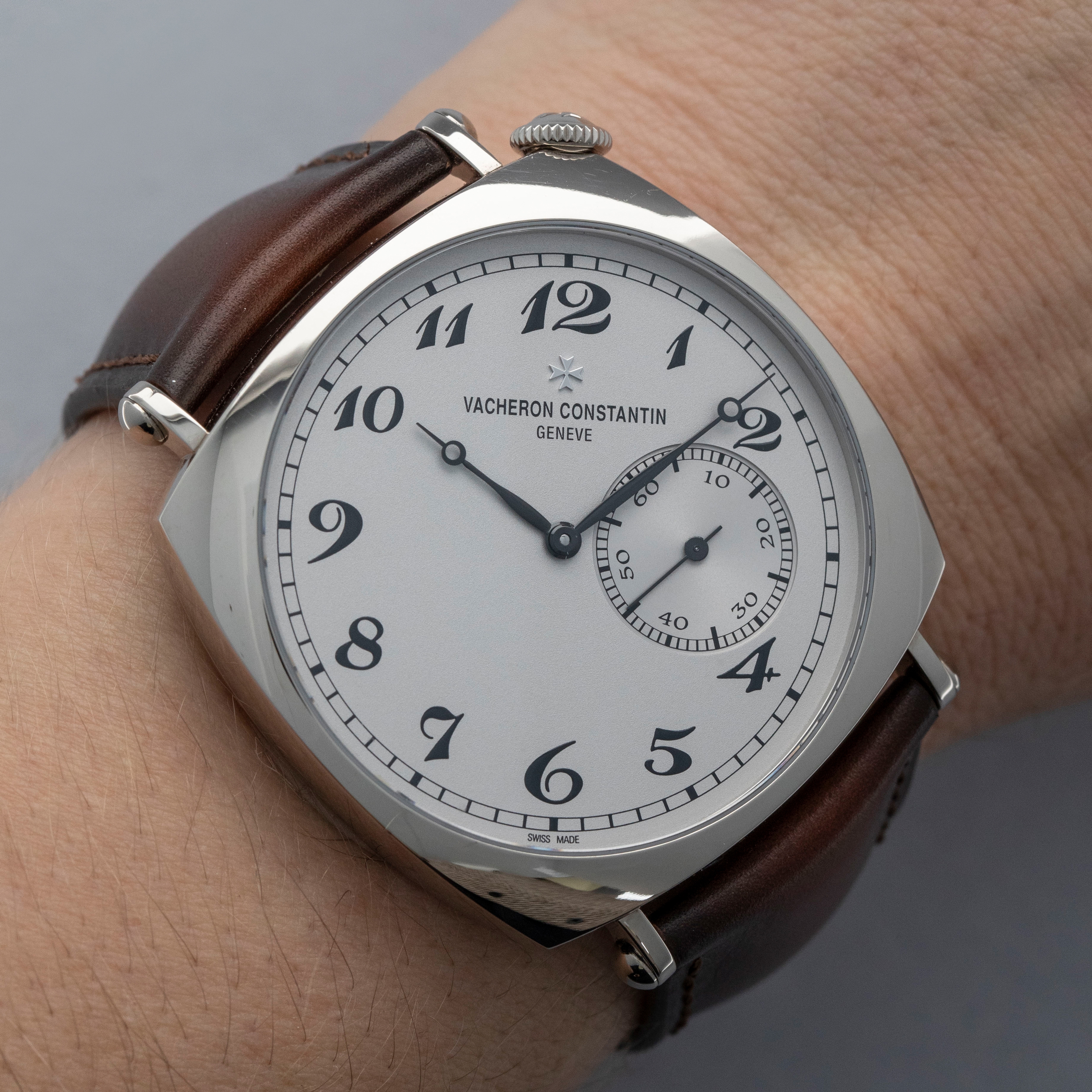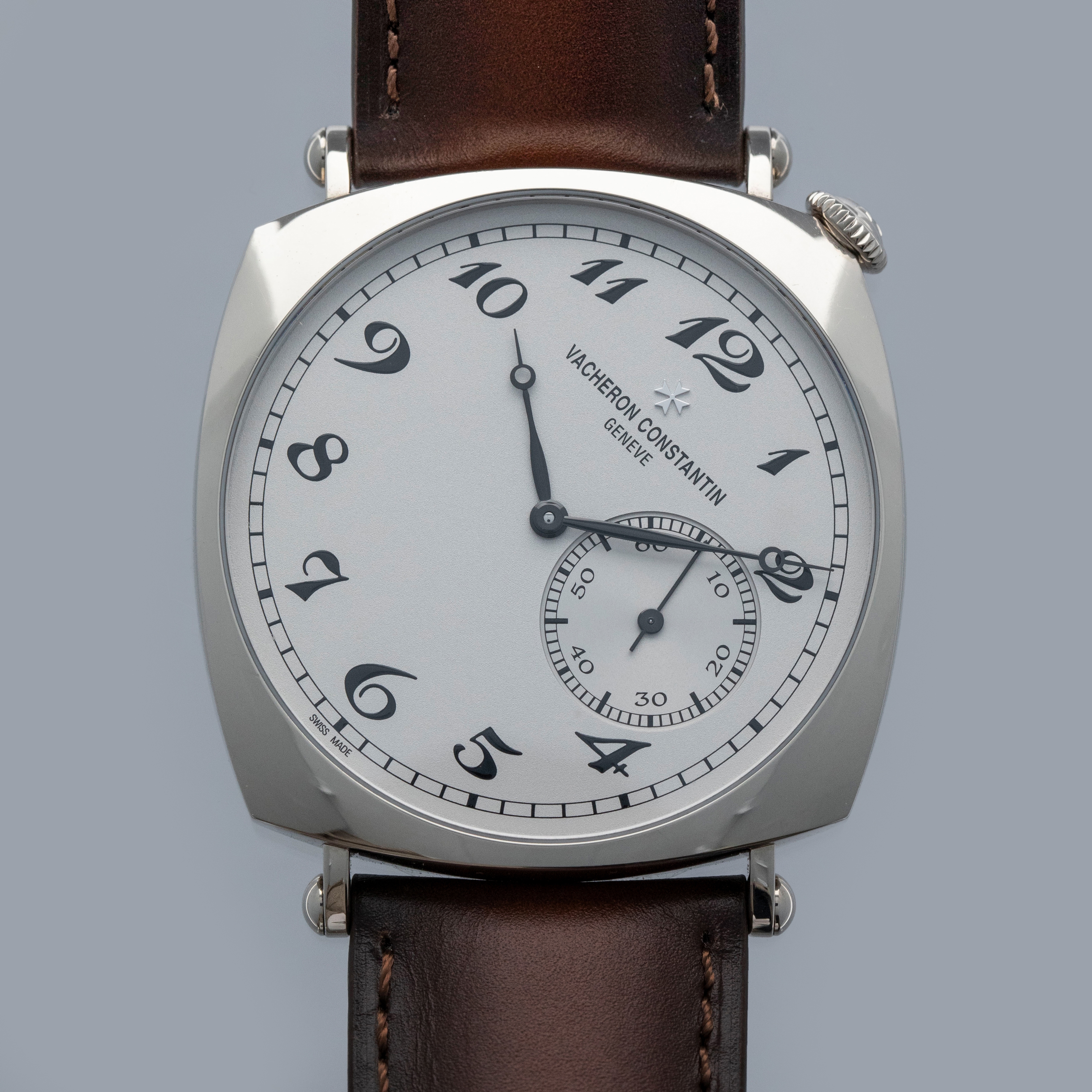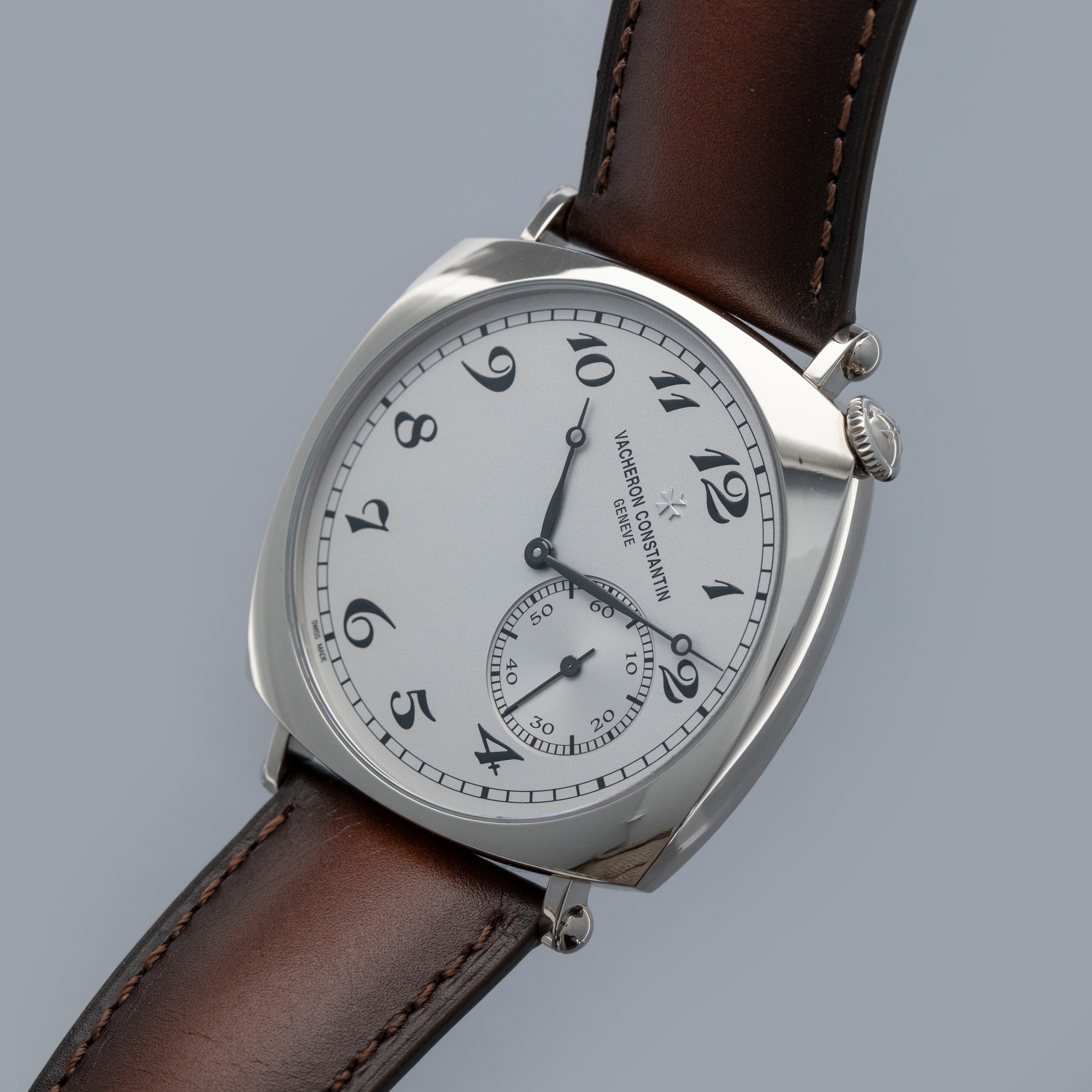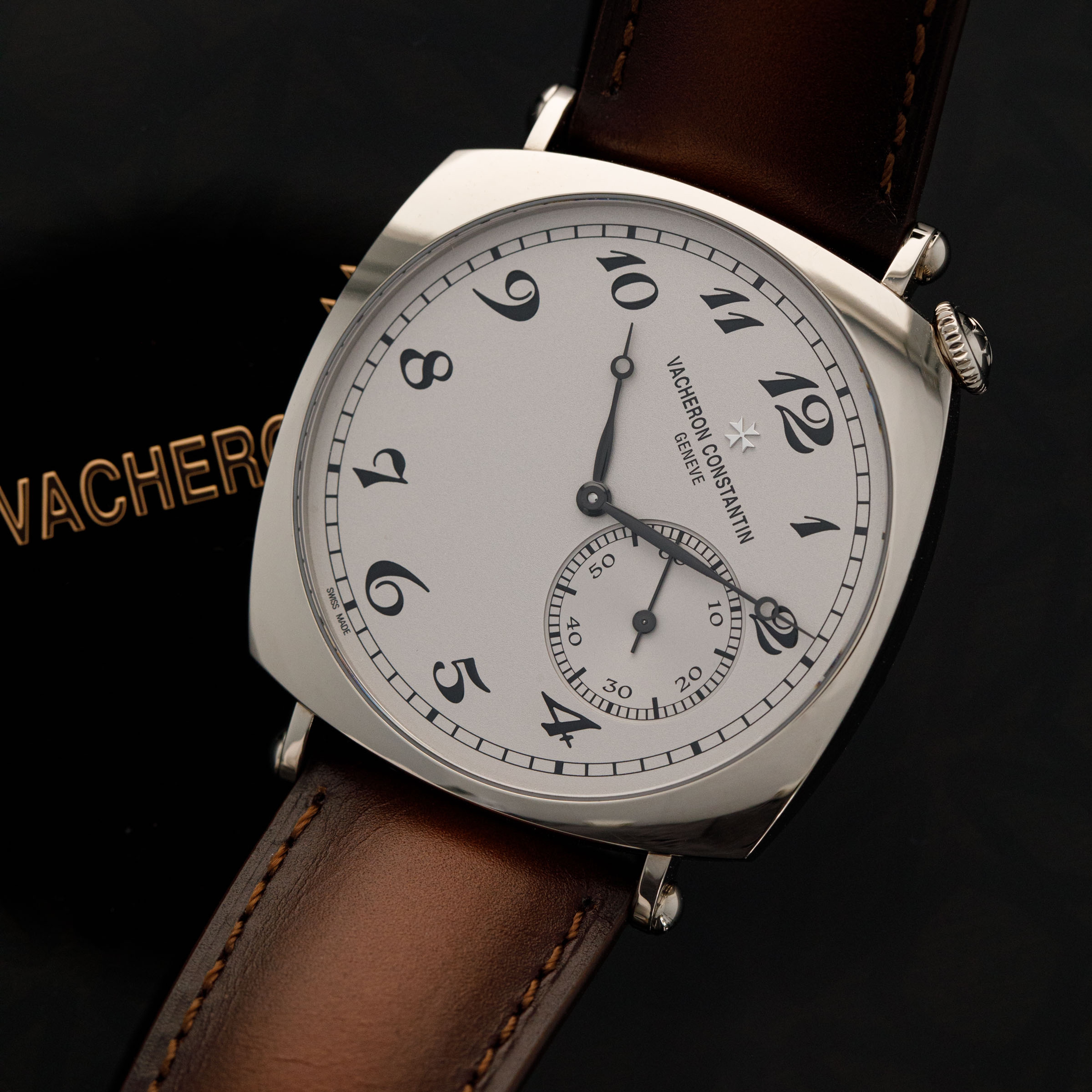 Released in 2009 at SIHH as part of Vacheron Constantin's Historiques collection that itself debuted in 2005, the Historiques American 1921 is a contemporary version of not one, but two of Vacheron’s most iconic watches. As the name suggests, one of these models came from 1921 while the other came two years before it in 1919. Inspired by the roaring 20s and the Art Deco design period of bold geometric shapes, bright colours, and uniquely different designs to those seen in years previous, the Historiques American 1921’s construction takes its cushion shape and silver dial design as inspiration from the design language of the period. Further to that, the Historiques American 1921 also leans on the technological advancements that were being made at the time in the automotive arena, with driving becoming increasingly common. As such, the Historiques American 1921’s dial is rotated 45 degrees clockwise so that it can be easily legible while a driver has their hands outstretched on a steering wheel. Echoing this rotated design, the Historiques American 1921’s winding crown is positioned above 12 o’clock, on the top right corner of its 18kt white gold case. Boxy and shaped like a cushion with almost sharp corners, the case is exactly how it looked on the 1919 and 1921 versions – highlighting the Art Deco period that the watch was initially conceived during.