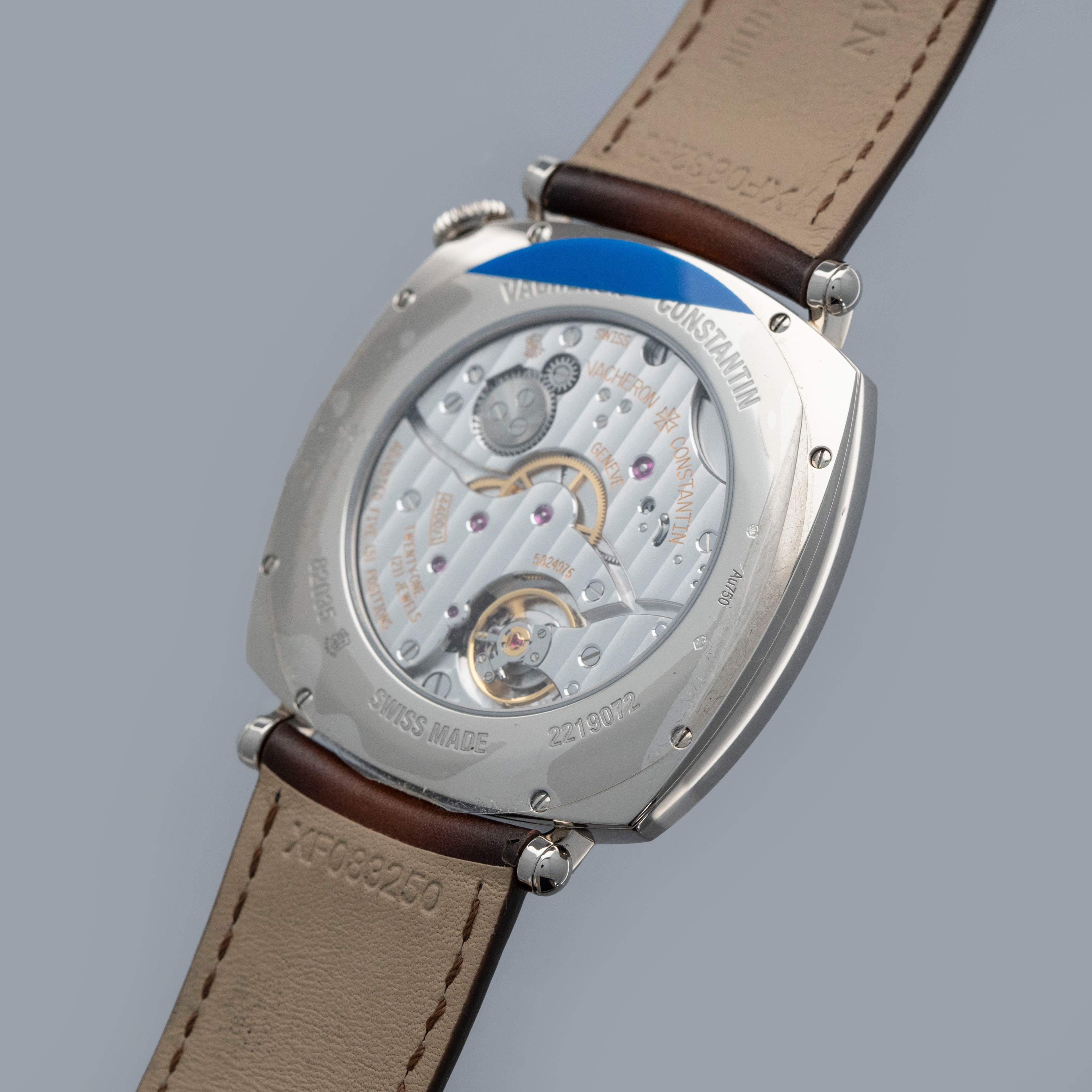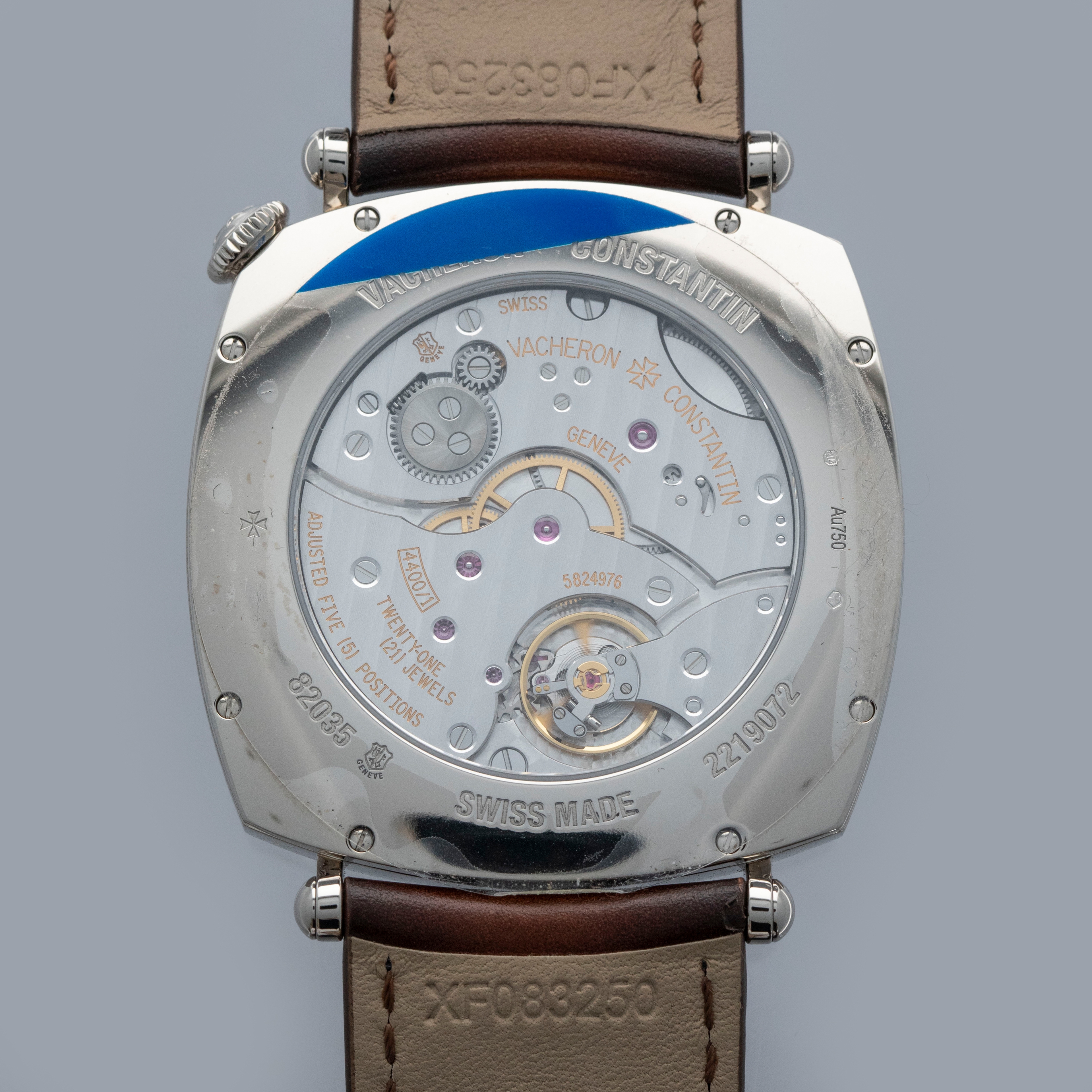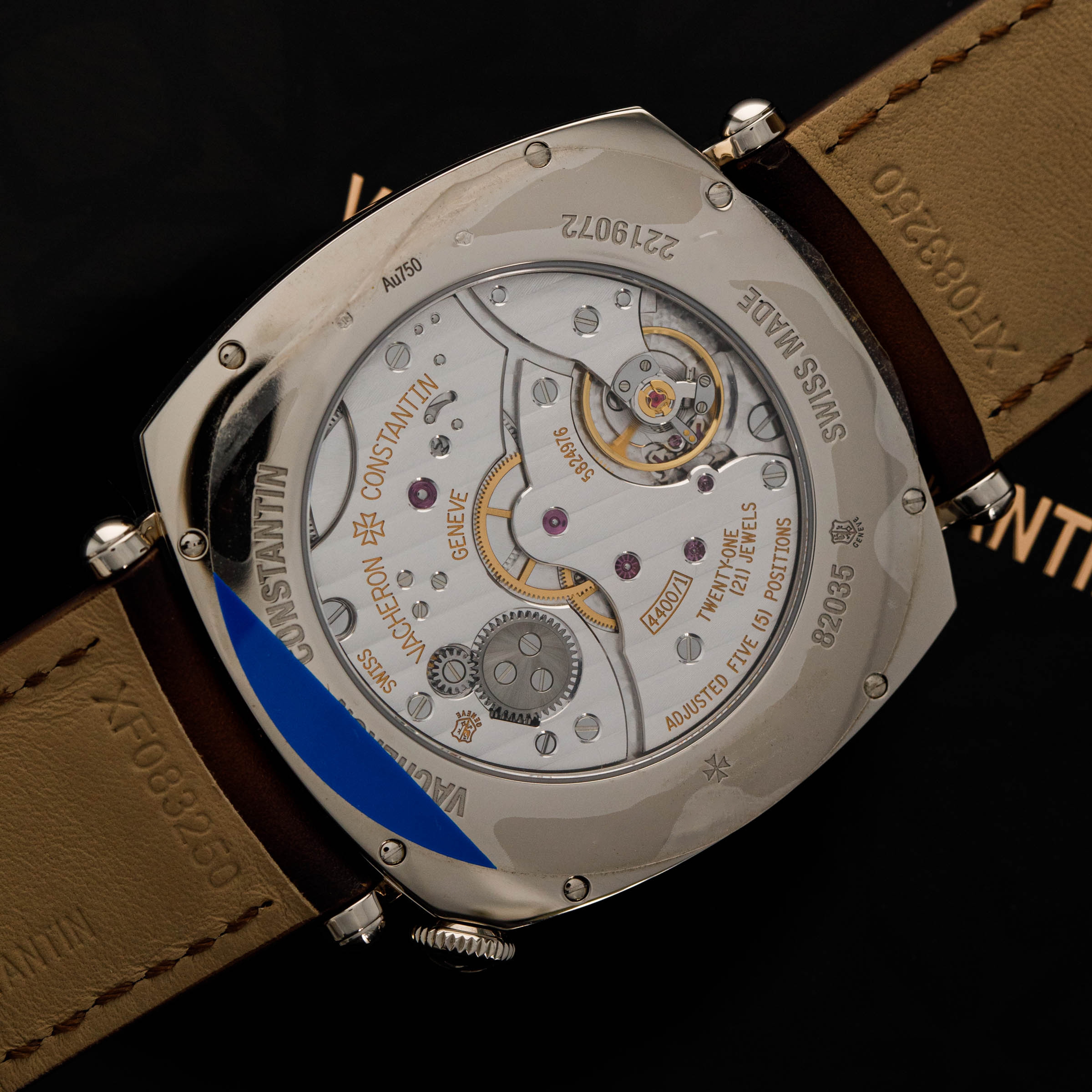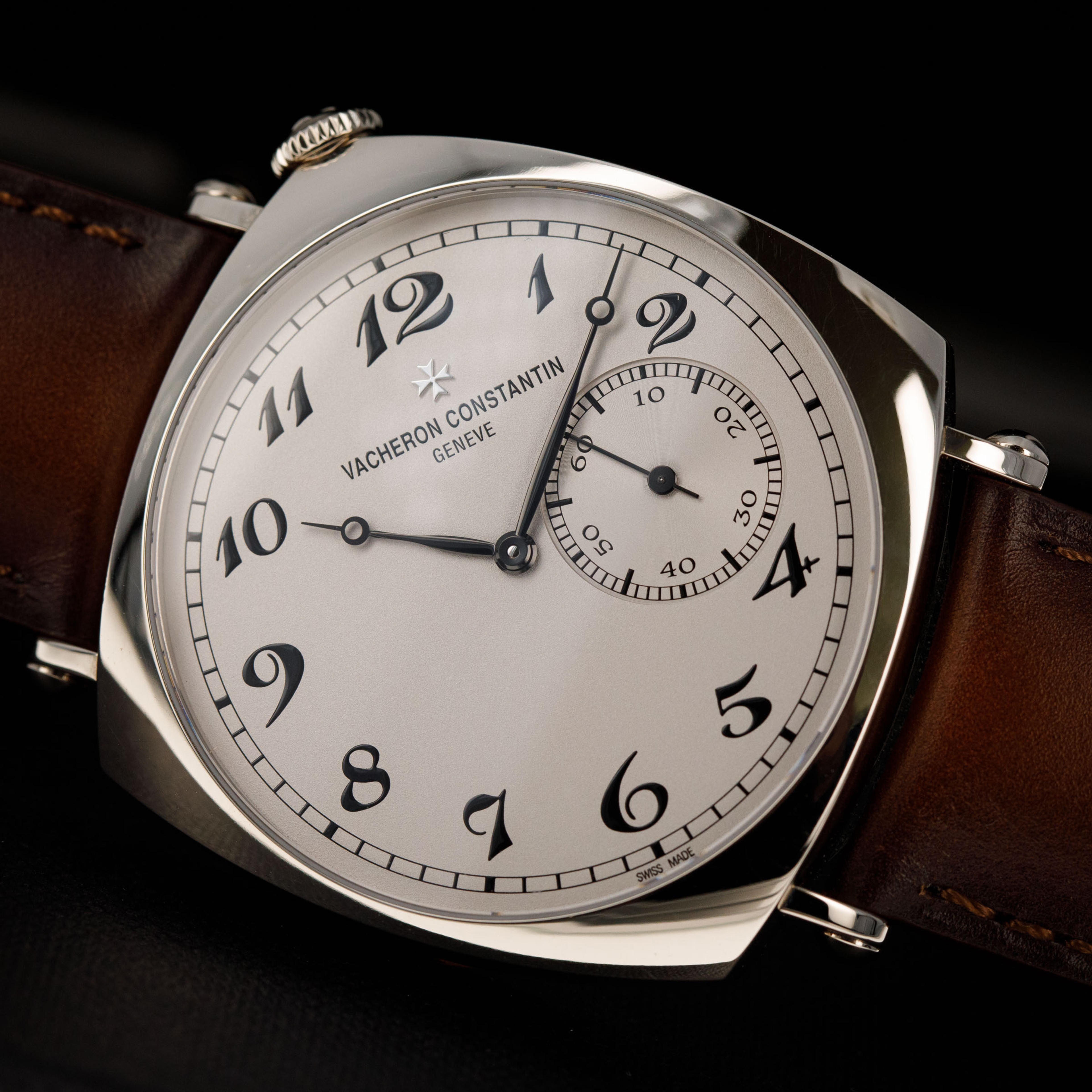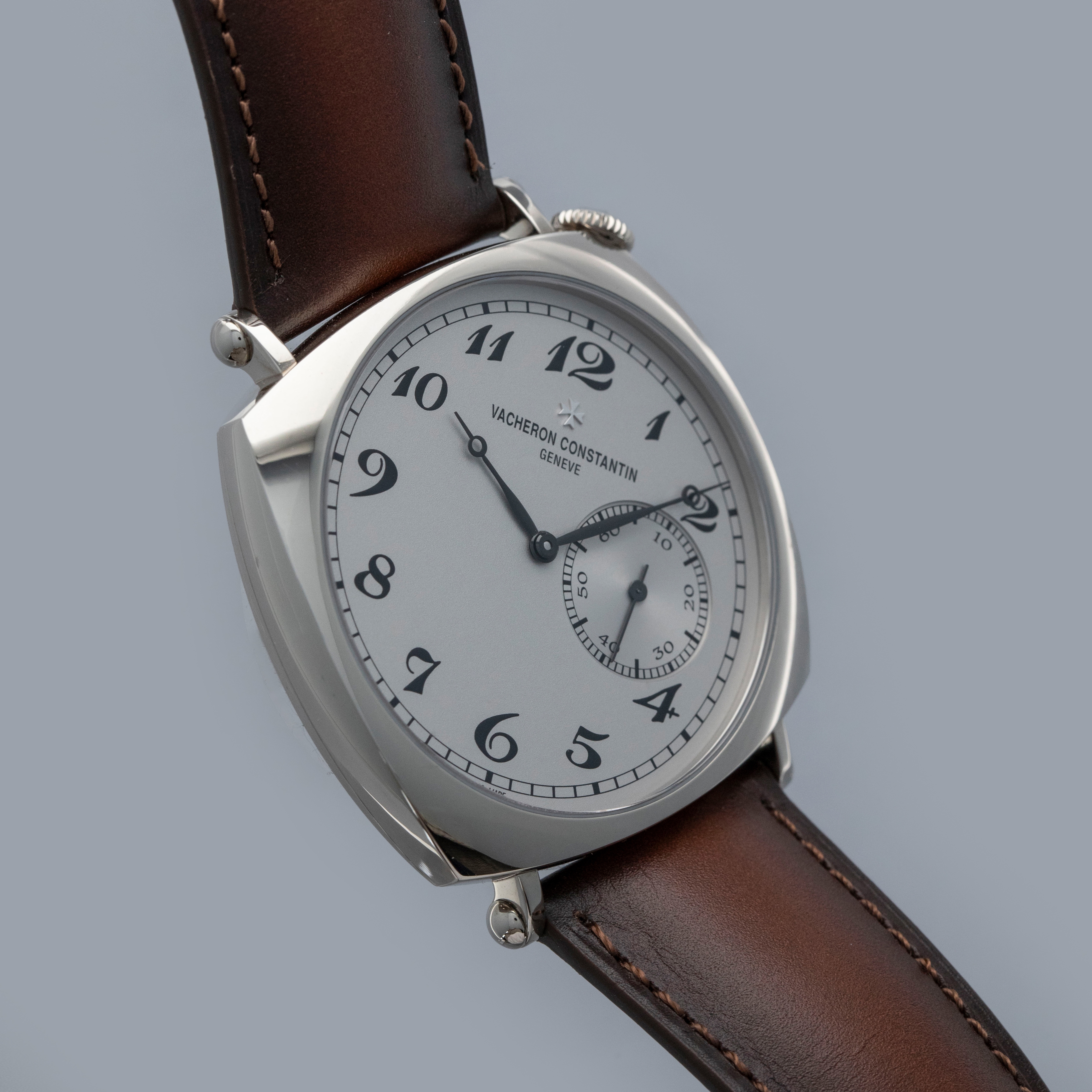 Released in 2009 at SIHH as part of Vacheron Constantin's Historiques collection that itself debuted in 2005, the Historiques American 1921 is a contemporary version of not one, but two of Vacheron’s most iconic watches. As the name suggests, one of these models came from 1921 while the other came two years before it in 1919. Inspired by the roaring 20s and the Art Deco design period of bold geometric shapes, bright colours, and uniquely different designs to those seen in years previous, the Historiques American 1921’s construction takes its cushion shape and silver dial design as inspiration from the design language of the period. Further to that, the Historiques American 1921 also leans on the technological advancements that were being made at the time in the automotive arena, with driving becoming increasingly common. As such, the Historiques American 1921’s dial is rotated 45 degrees clockwise so that it can be easily legible while a driver has their hands outstretched on a steering wheel. Echoing this rotated design, the Historiques American 1921’s winding crown is positioned above 12 o’clock, on the top right corner of its 18kt white gold case. Boxy and shaped like a cushion with almost sharp corners, the case is exactly how it looked on the 1919 and 1921 versions – highlighting the Art Deco period that the watch was initially conceived during.