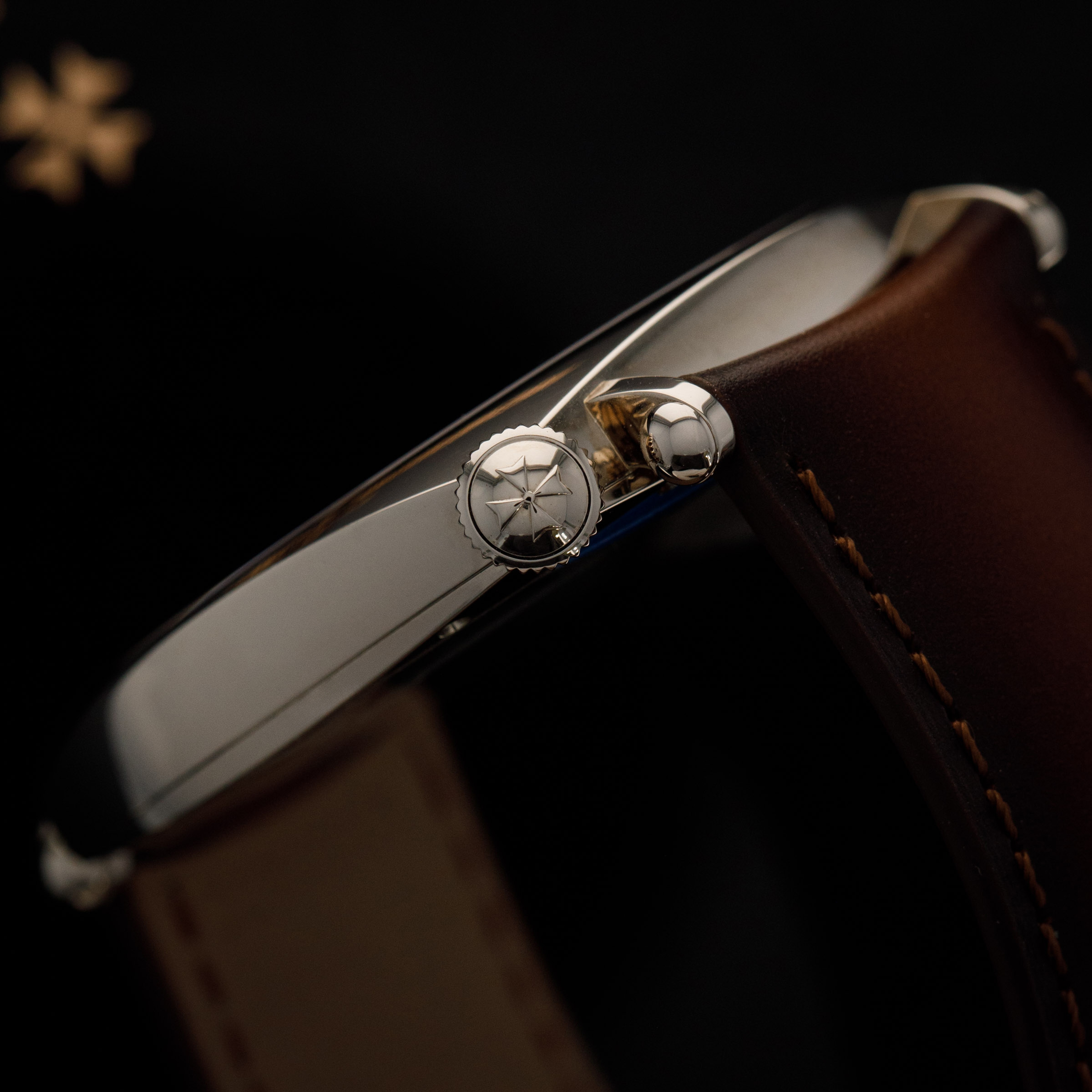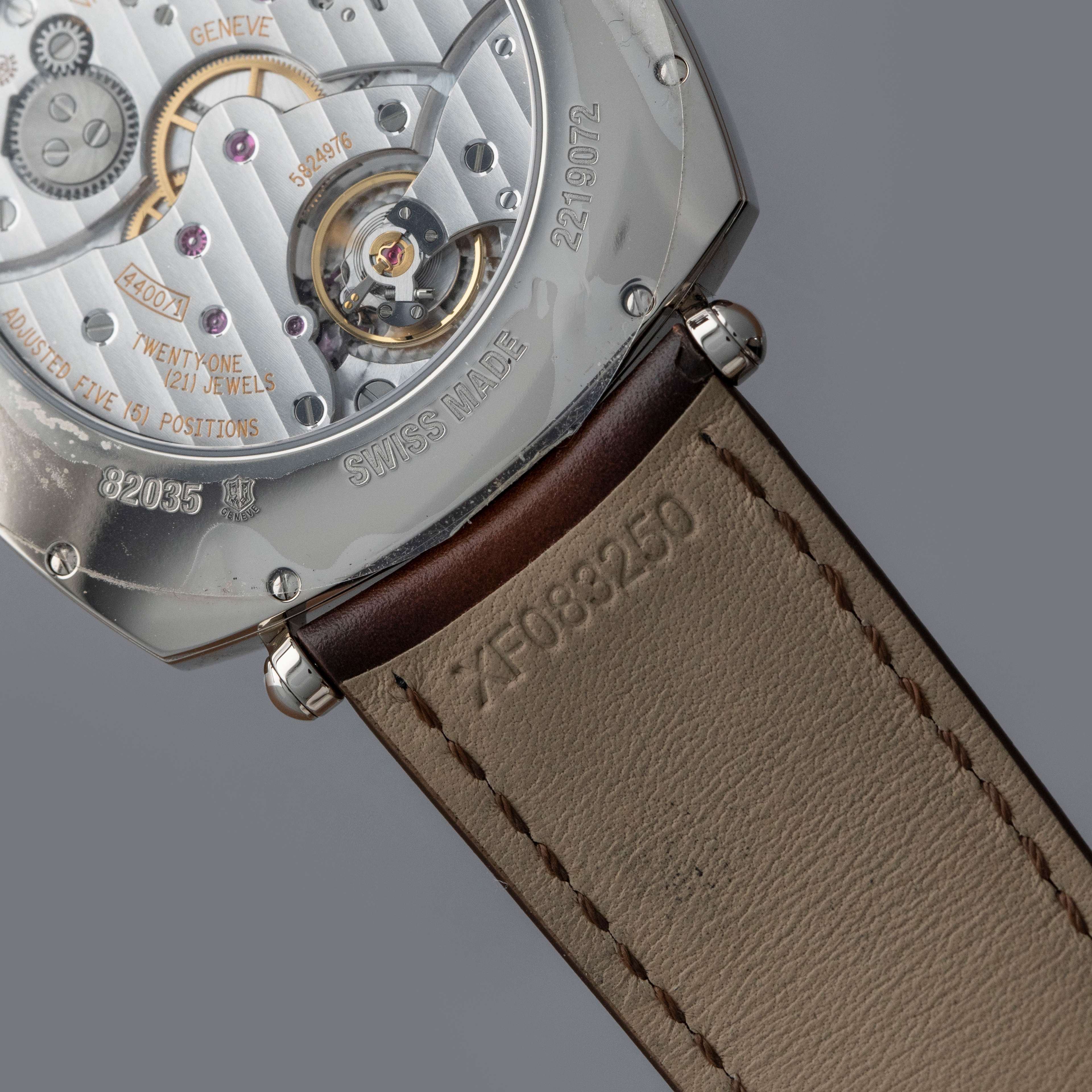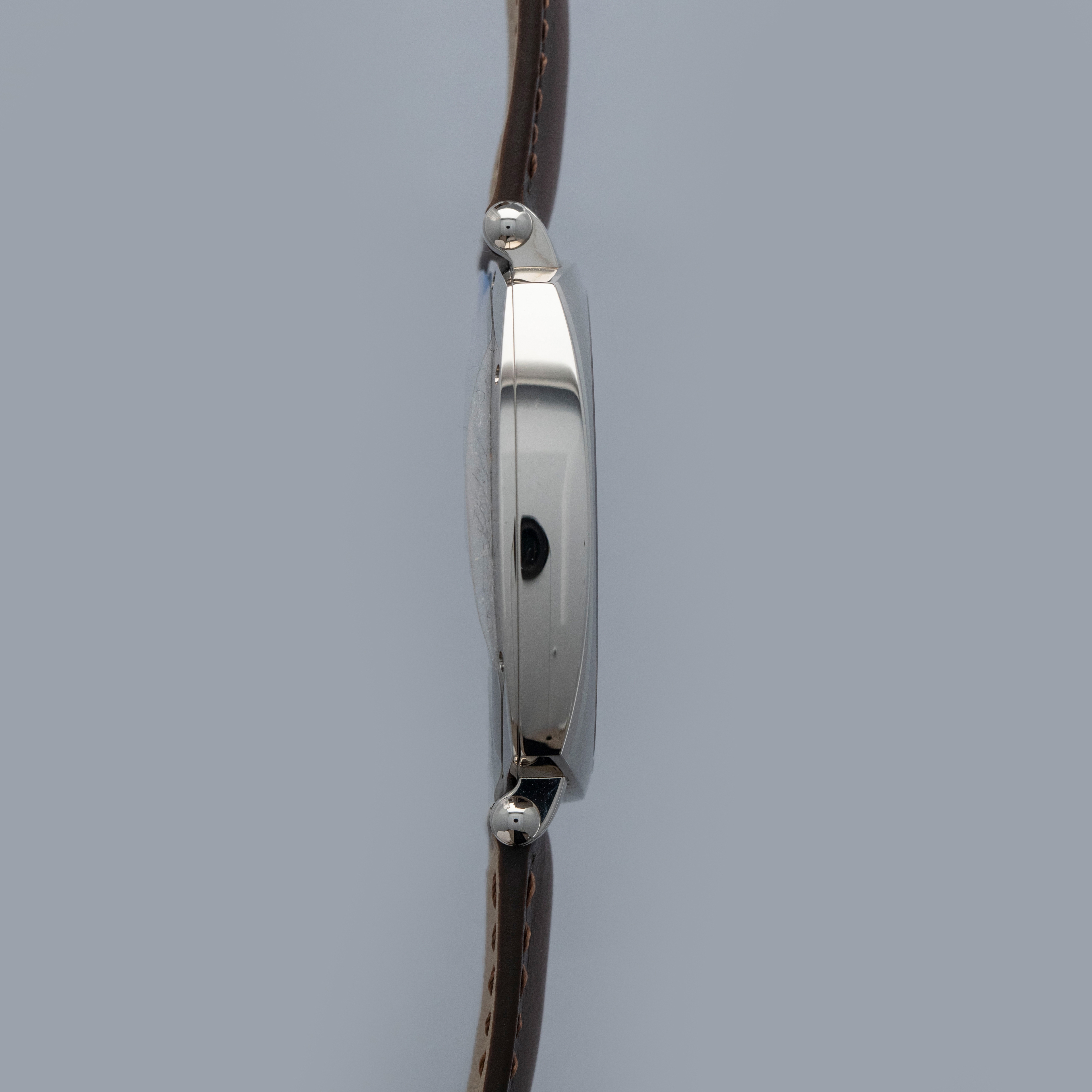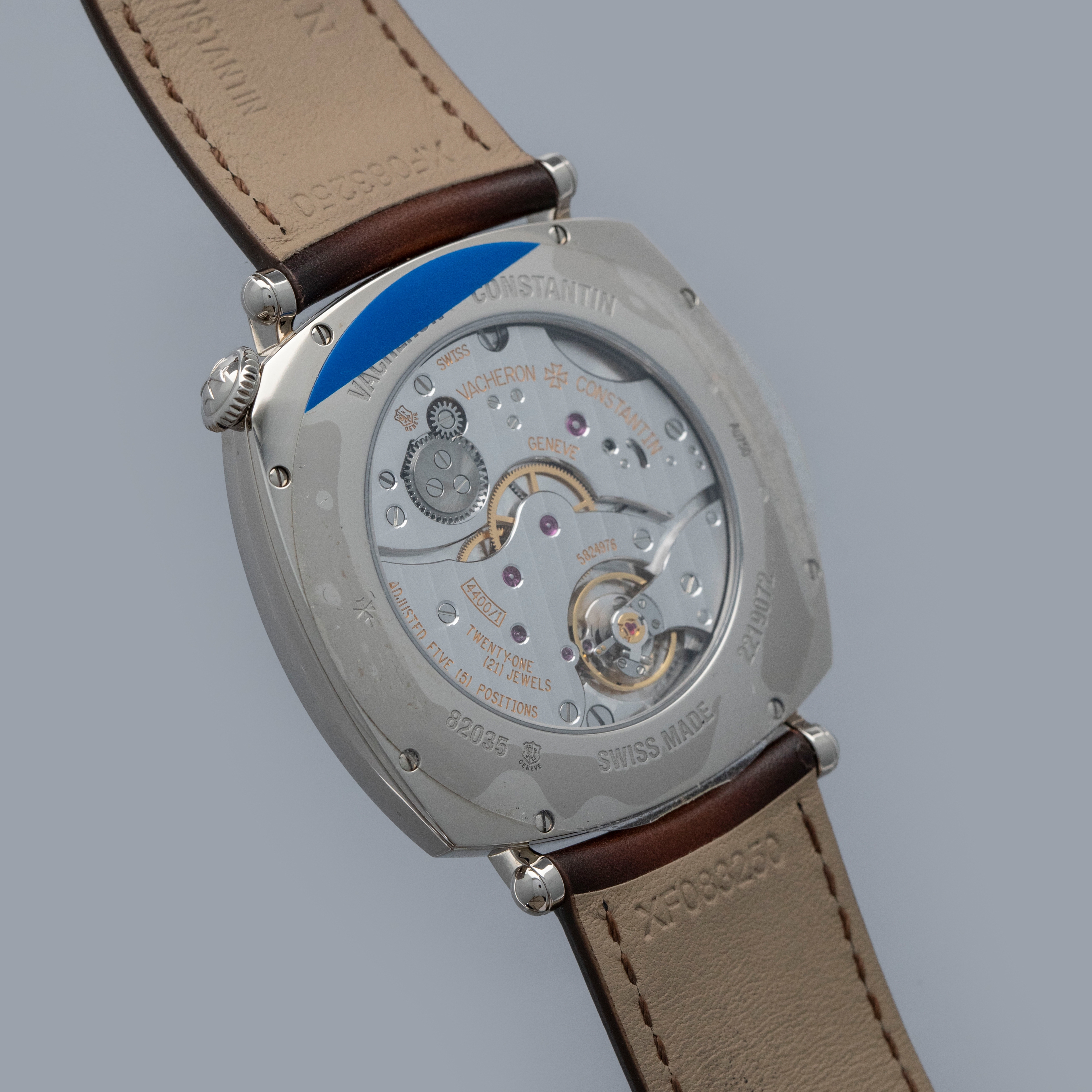 Released in 2009 at SIHH as part of Vacheron Constantin's Historiques collection that itself debuted in 2005, the Historiques American 1921 is a contemporary version of not one, but two of Vacheron’s most iconic watches. As the name suggests, one of these models came from 1921 while the other came two years before it in 1919. Inspired by the roaring 20s and the Art Deco design period of bold geometric shapes, bright colours, and uniquely different designs to those seen in years previous, the Historiques American 1921’s construction takes its cushion shape and silver dial design as inspiration from the design language of the period. Further to that, the Historiques American 1921 also leans on the technological advancements that were being made at the time in the automotive arena, with driving becoming increasingly common. As such, the Historiques American 1921’s dial is rotated 45 degrees clockwise so that it can be easily legible while a driver has their hands outstretched on a steering wheel. Echoing this rotated design, the Historiques American 1921’s winding crown is positioned above 12 o’clock, on the top right corner of its 18kt white gold case. Boxy and shaped like a cushion with almost sharp corners, the case is exactly how it looked on the 1919 and 1921 versions – highlighting the Art Deco period that the watch was initially conceived during.