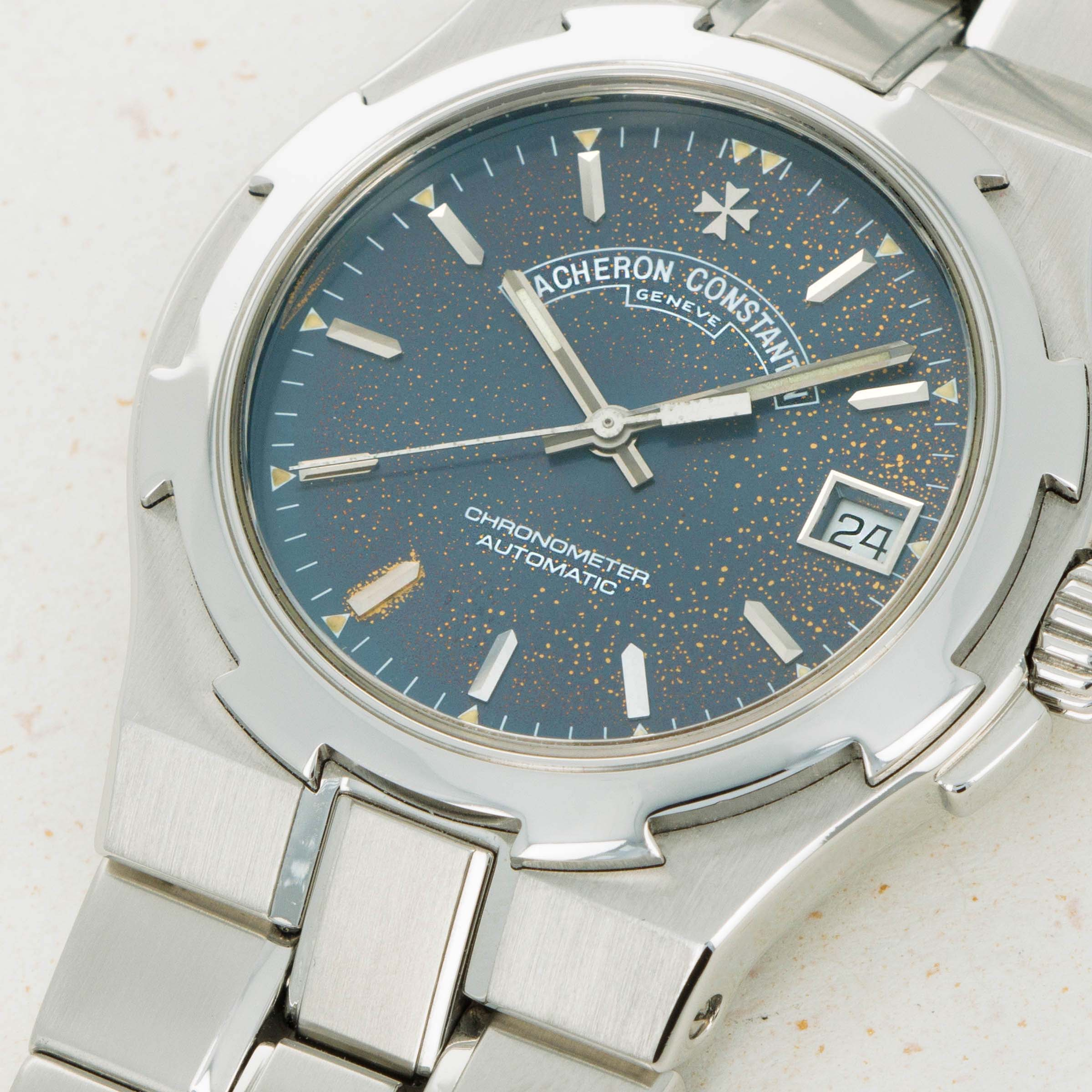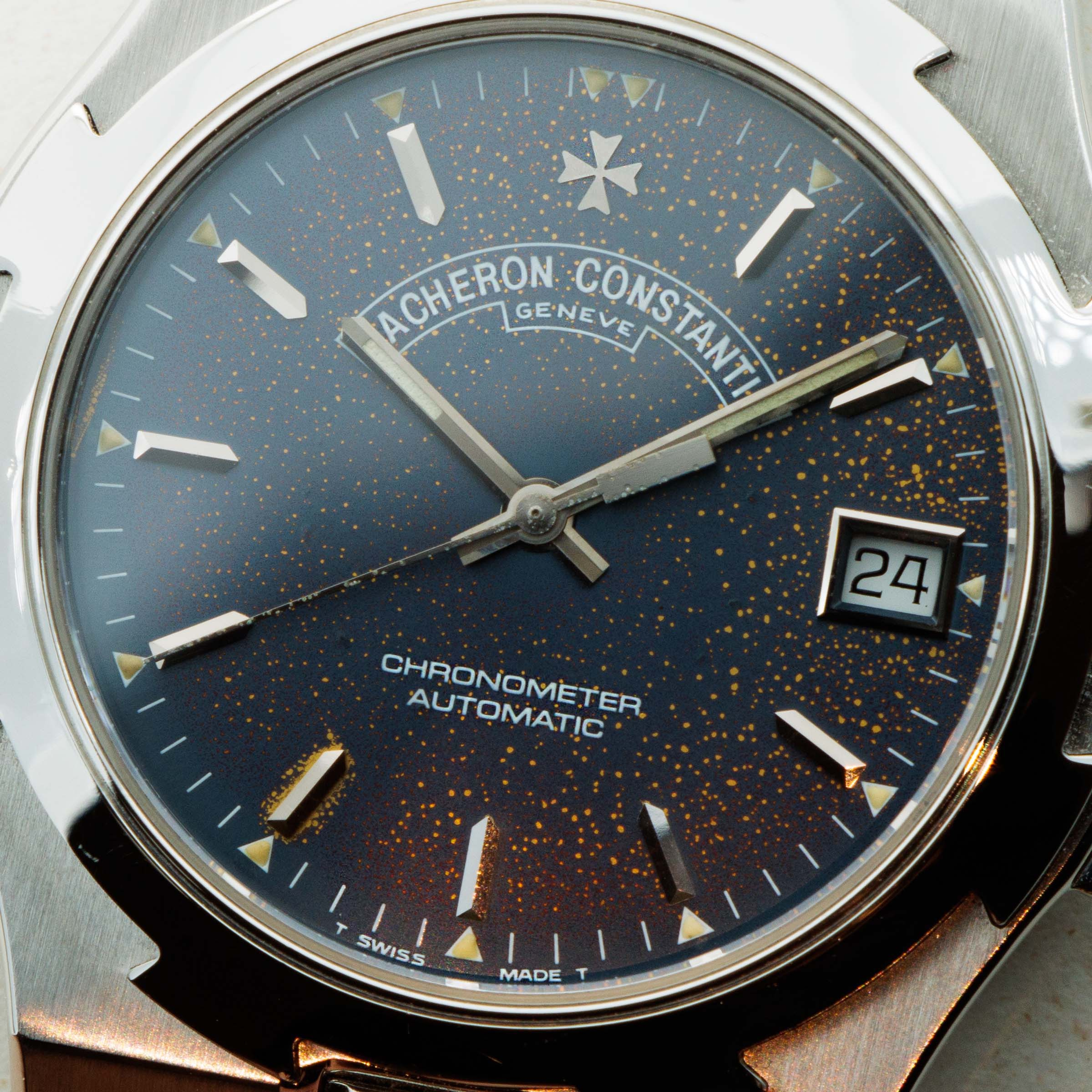 While originally jet black, this example's dial has aged to include specs of tropicalized golden brown patina across its entire surface that are completely unique to this timepiece and give it an aesthetic unlike anything Vacheron had ever intended.