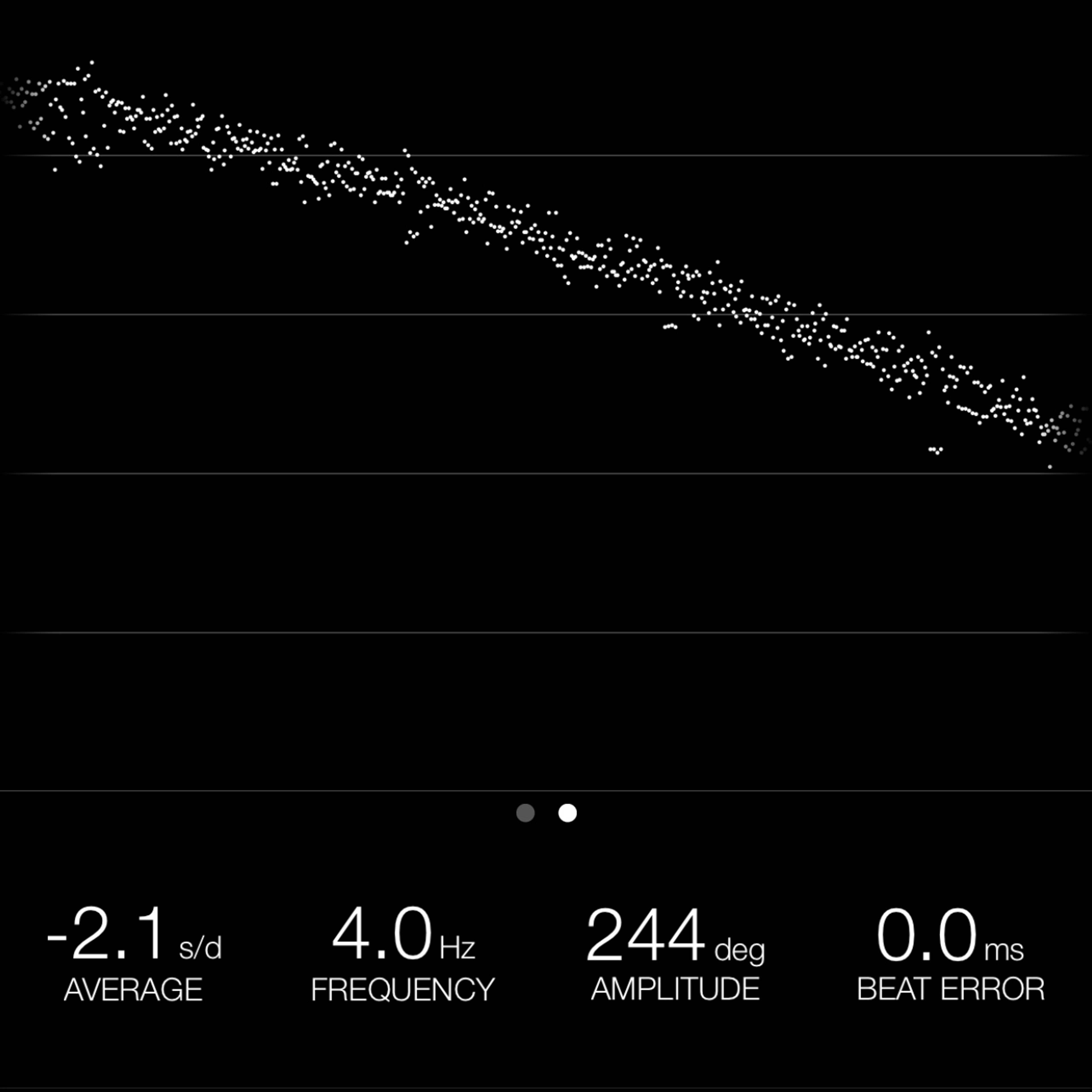 This reading was taken (crown down) with a ONEOF Accuracy Boutique Edition timing machine at time of cataloging. It is provided as a courtesy only, and shall not be construed as a warranty or guarantee of any kind. Please refer to our terms and conditions of sale for more information.
