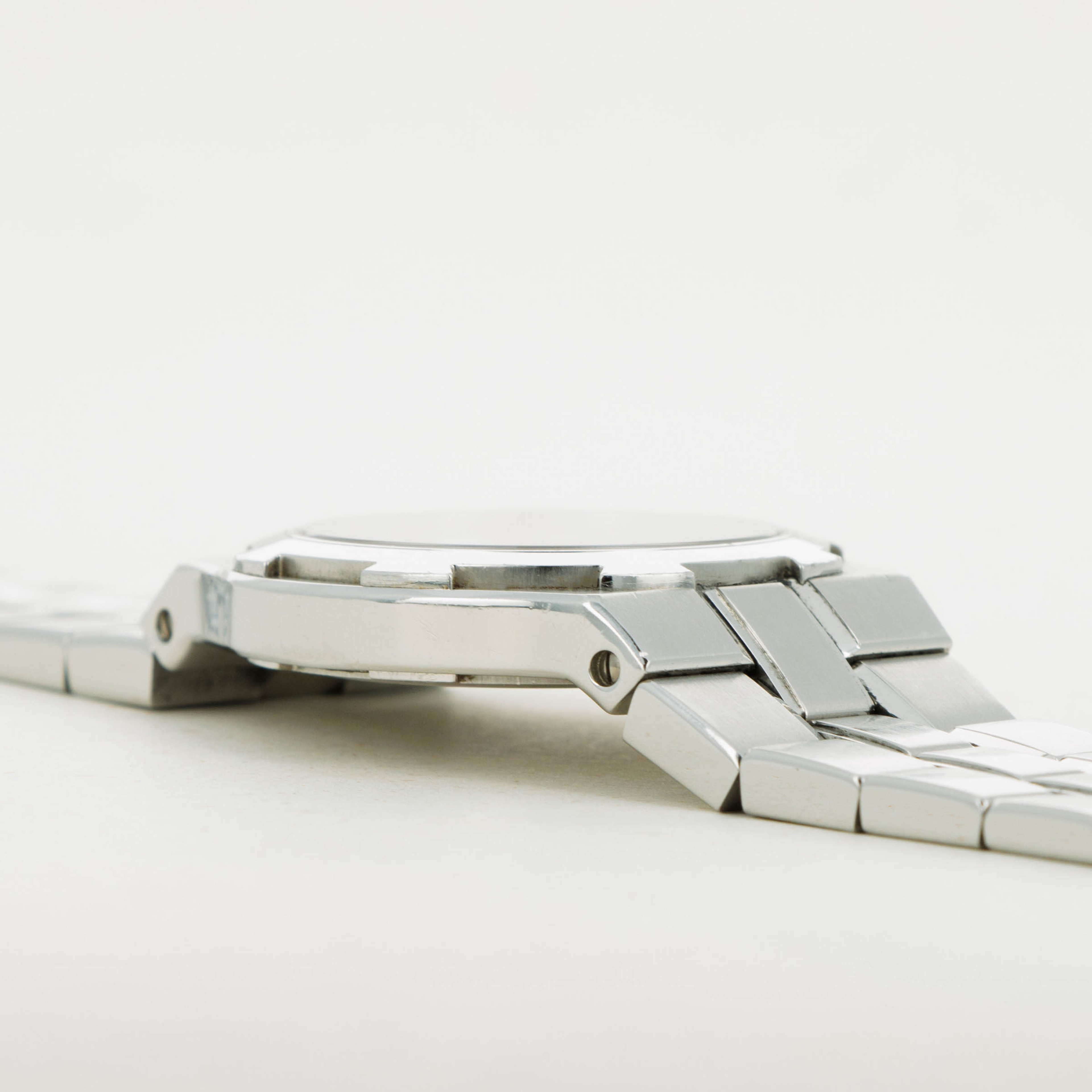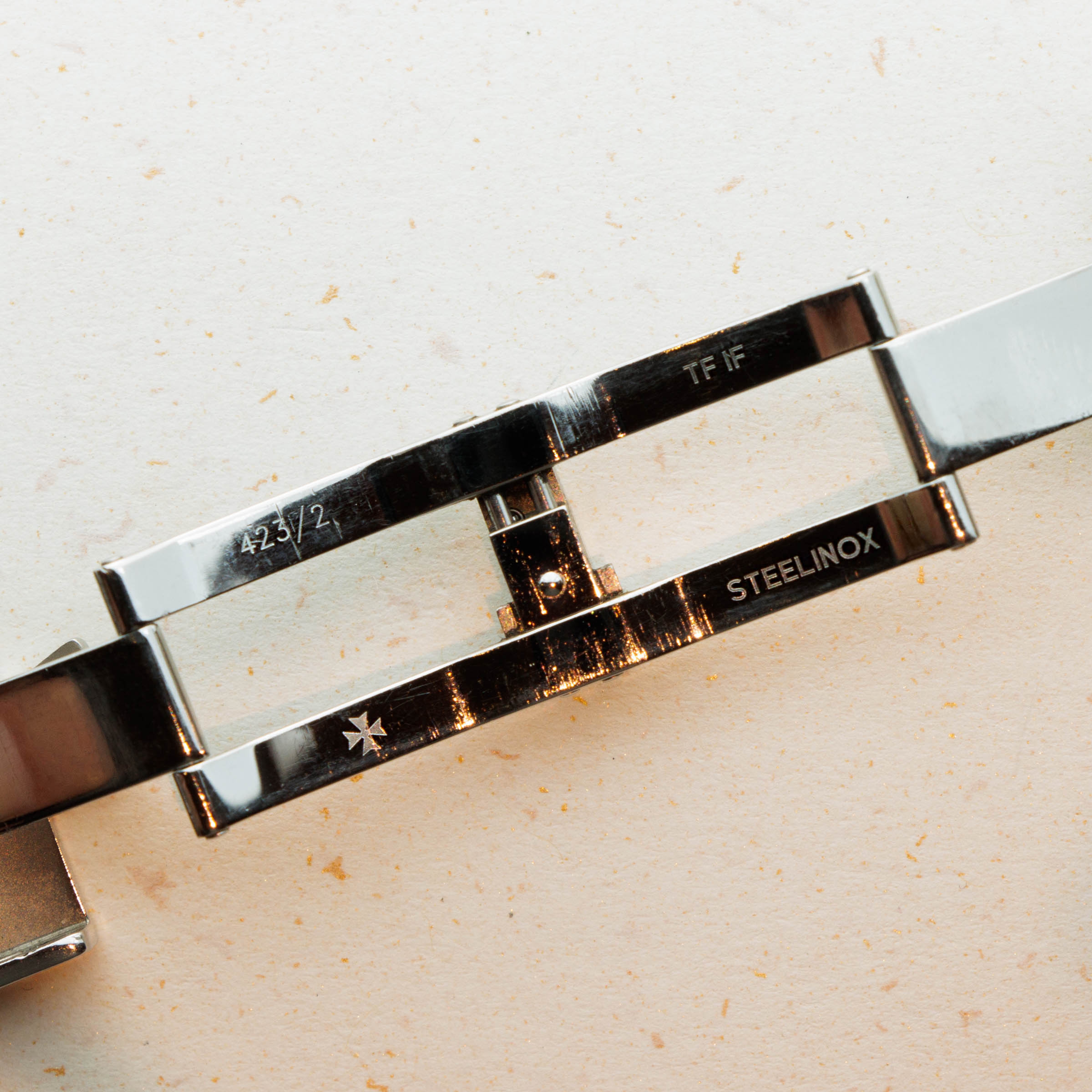 Perhaps the most universally wearable size in all of watchmaking, the ref. 42042's 37mm stainless steel case wears exceptionally well, with its integrated bracelet following the case and flowing around the wrist perfectly. Additionally, this example's white dial combines with its polished bezel, making it look that little bit larger than it actually is.