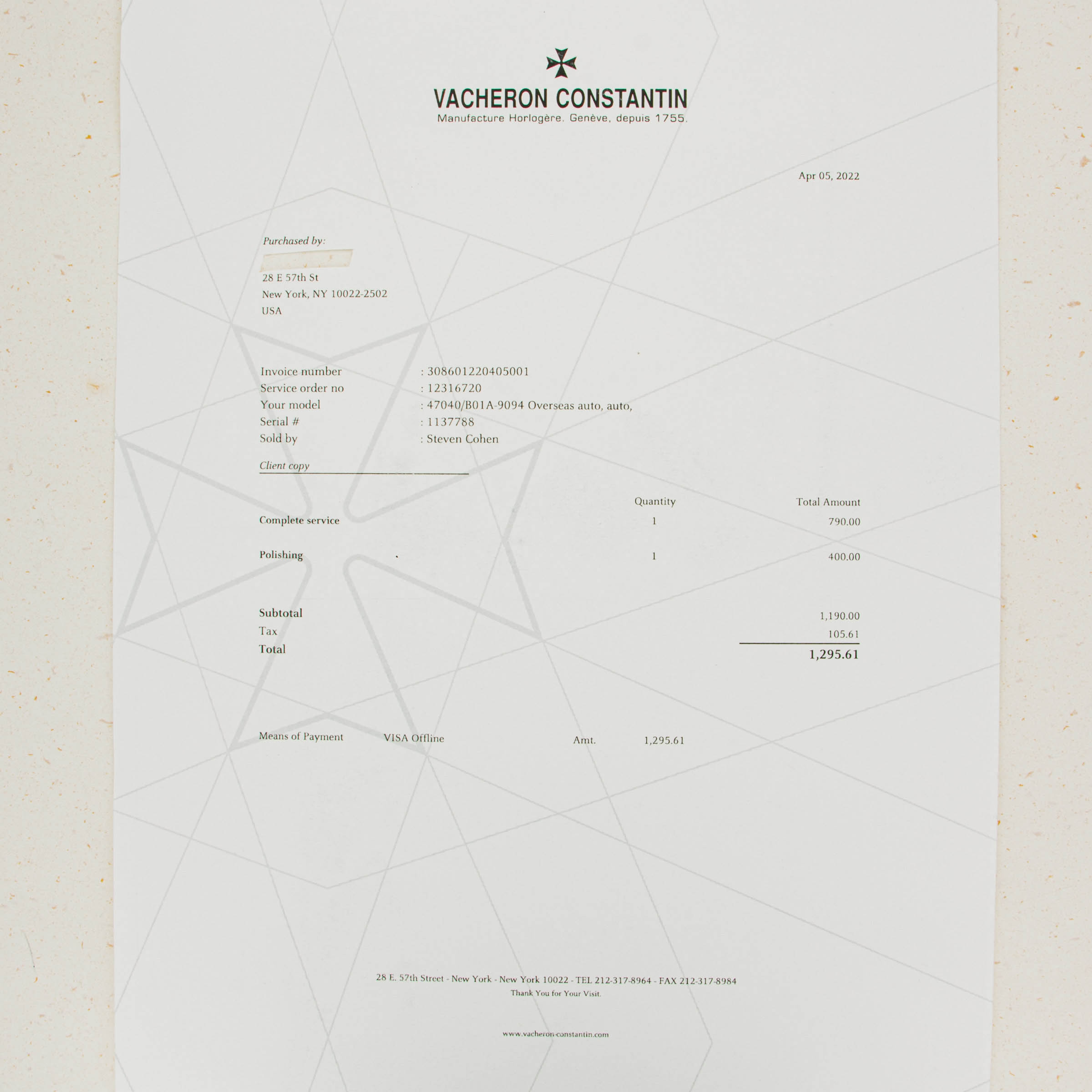 Watch, booklets, 2022-dated Vacheron service invoice and service pouch
