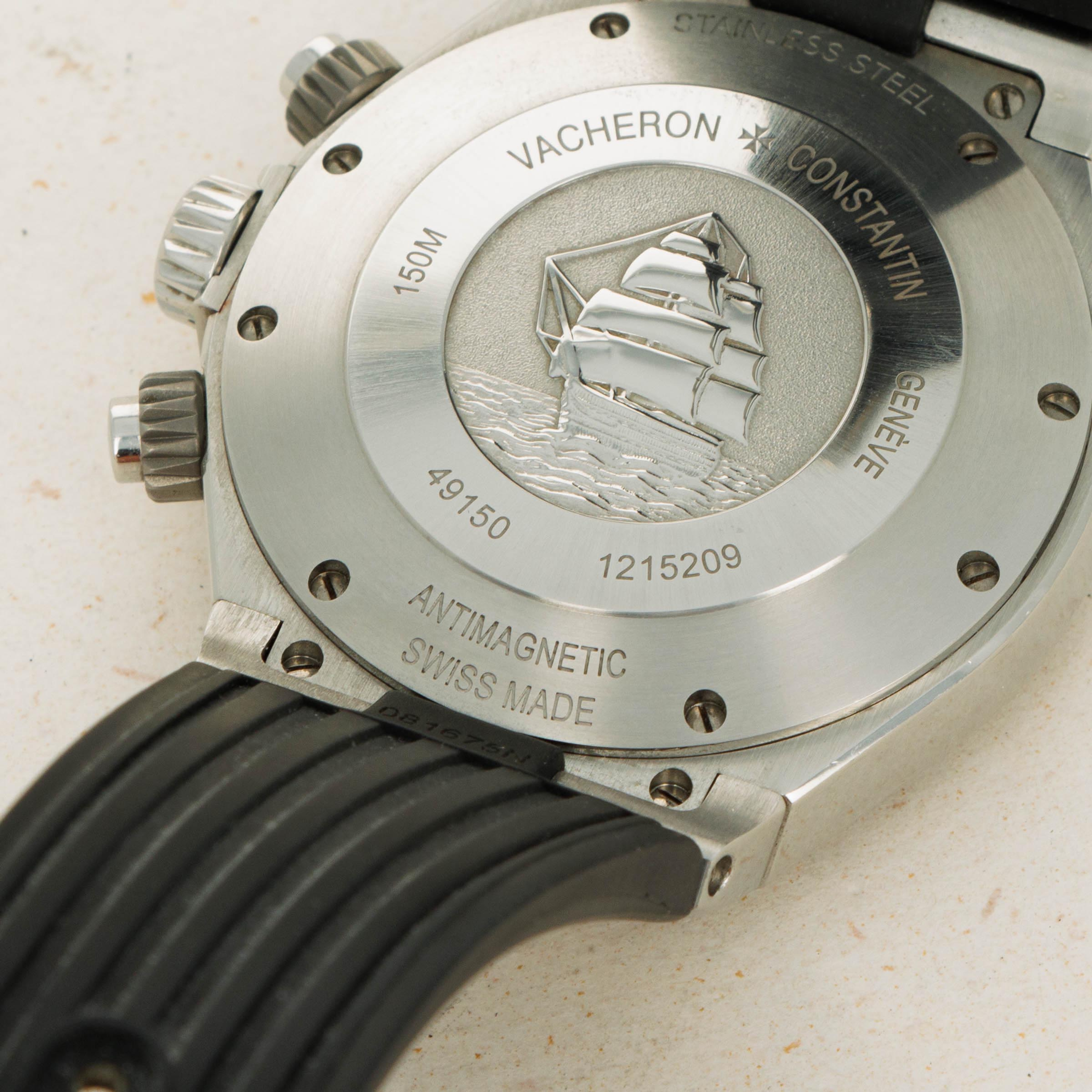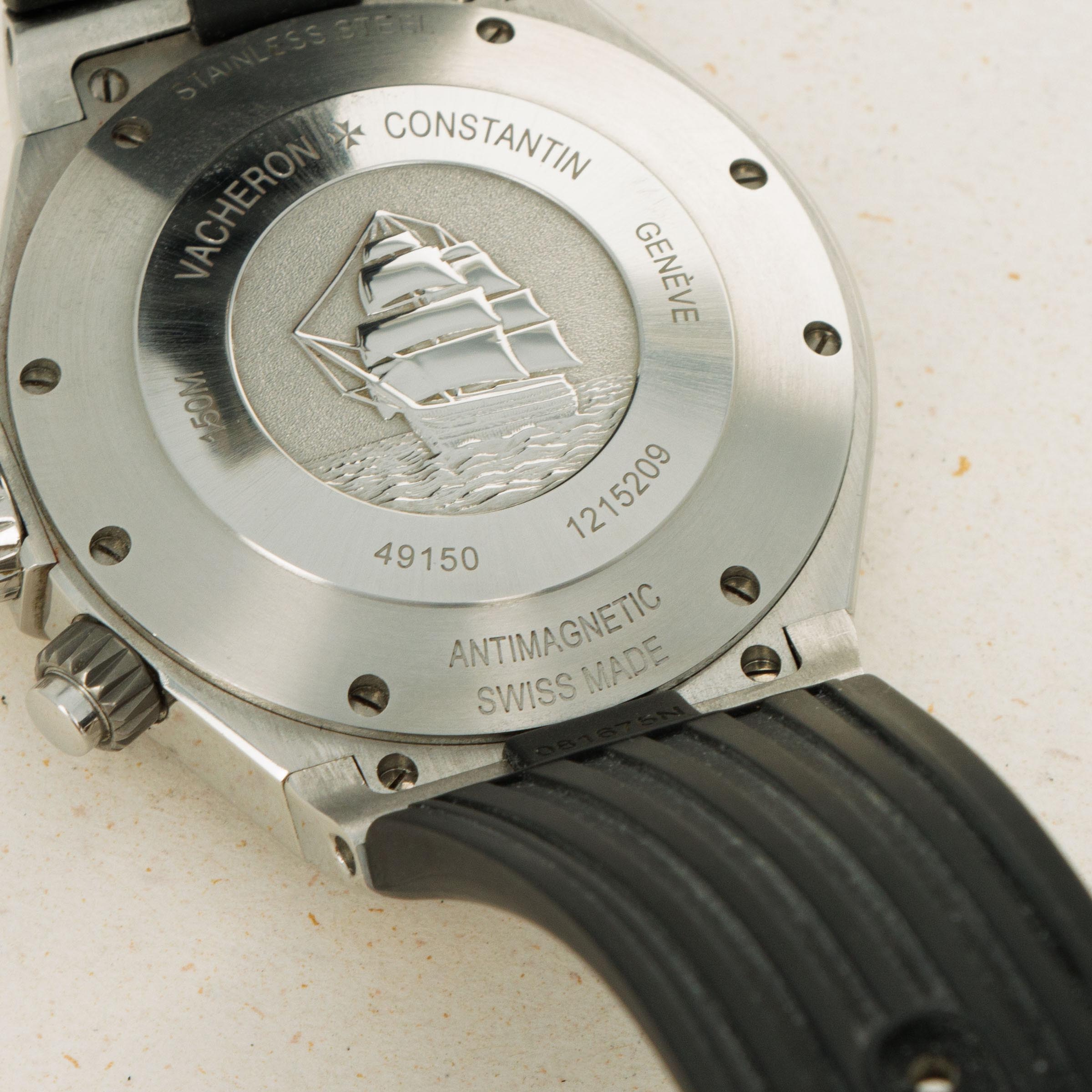 With a symmetrical black dial, the Overseas ref. 49150 features a big date at 12 o'clock alongside a trio of recessed subdials that beautifully build upon the depth that its applied indices, sloped rehaut, and date aperture all provide.