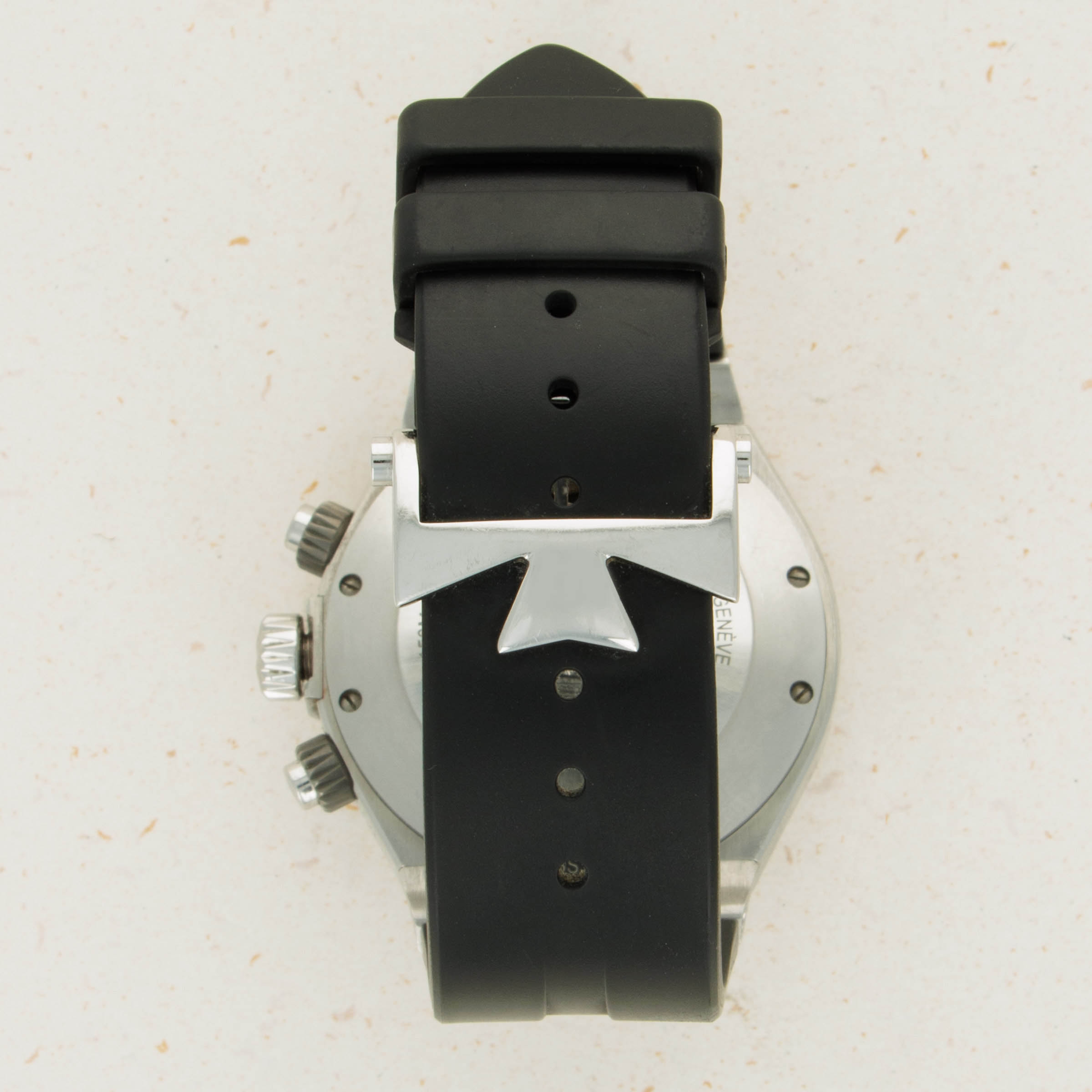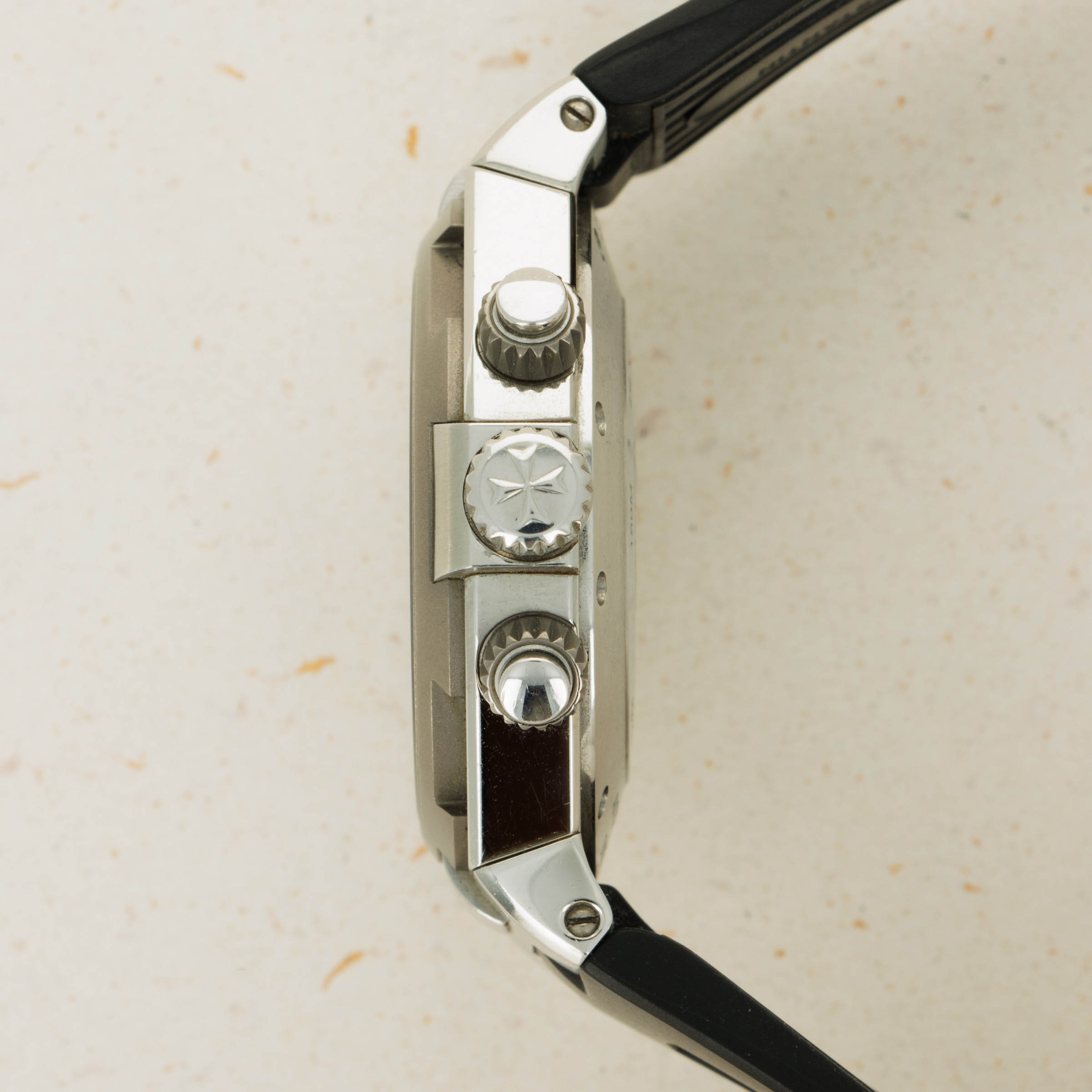 Released in 1996, the Vacheron Constantin Overseas was, in effect, the revival of VC’s previously discontinued sports watch collection, the 222 - released to celebrate VC's 222nd anniversary. As the 222 was VC’s first foray into sports watches, designers Vincent Kaufmann and Dino Modolo sought to build upon that very same aesthetic with the Overseas and create a watch that could “weather any challenge [and] share your horizons”. The first iteration of the Overseas was produced from 1996 until 2004 and came in a tonneau-shaped case with a fluted bezel designed to evoke VC’s emblem, the Maltese cross. However, in 2004, the Overseas was overhauled with an even more modern design, such as a new Maltese-cross inspired bracelet, an updated dial design and a slew of new movements. The watch we have here hails from that second iteration of the Overseas, the Chronograph ref. 49150, with a larger 42mm case, up from the 40mm of the previous generation’s chronograph models, with a beautiful black dial that features an intricate engraved pattern. A robust sports watch designed to look and feel like a true luxury timepiece from a member of the Holy Trinity, the Overseas has finally begun to attract the plaudits it deserves and examples like this are a collector’s dream.