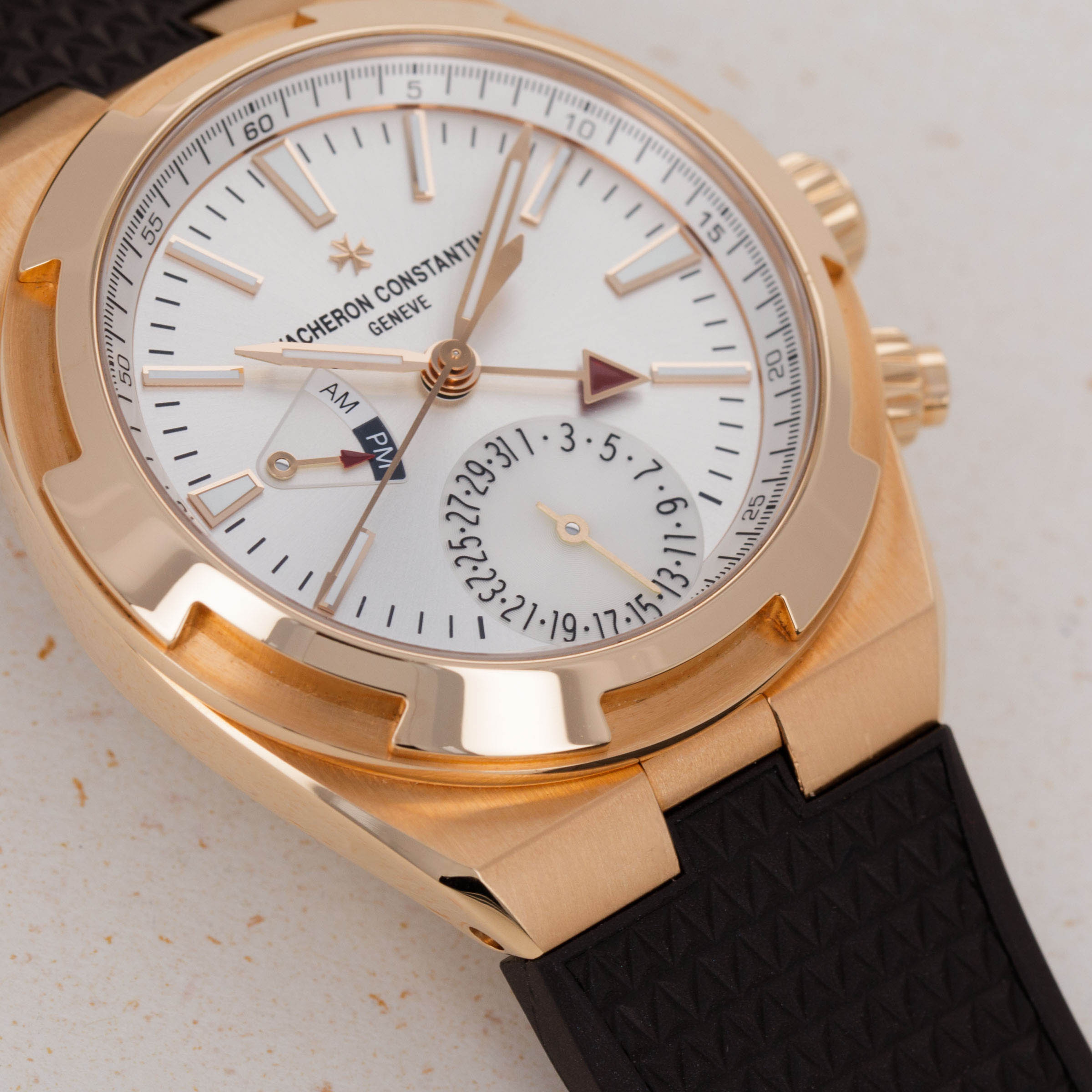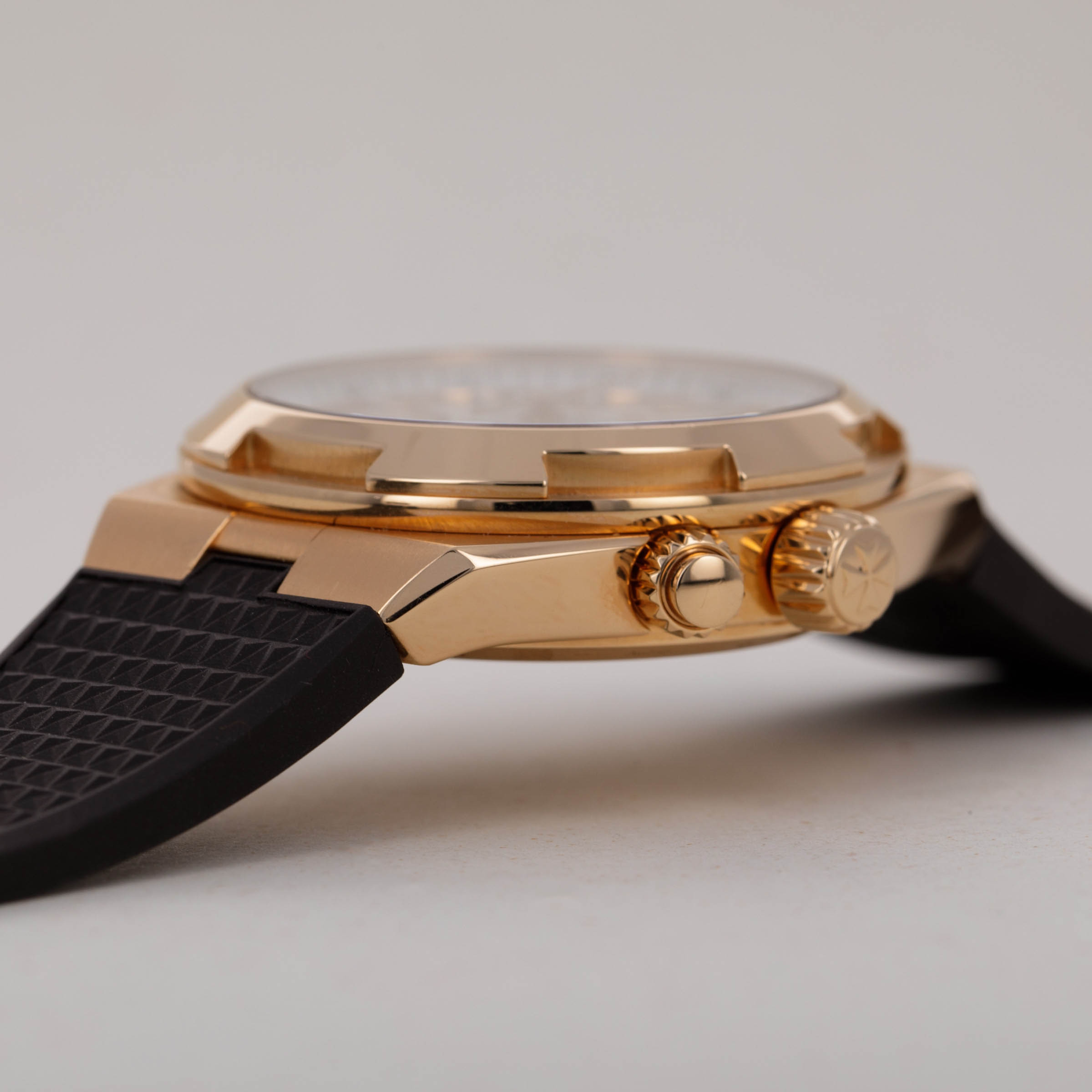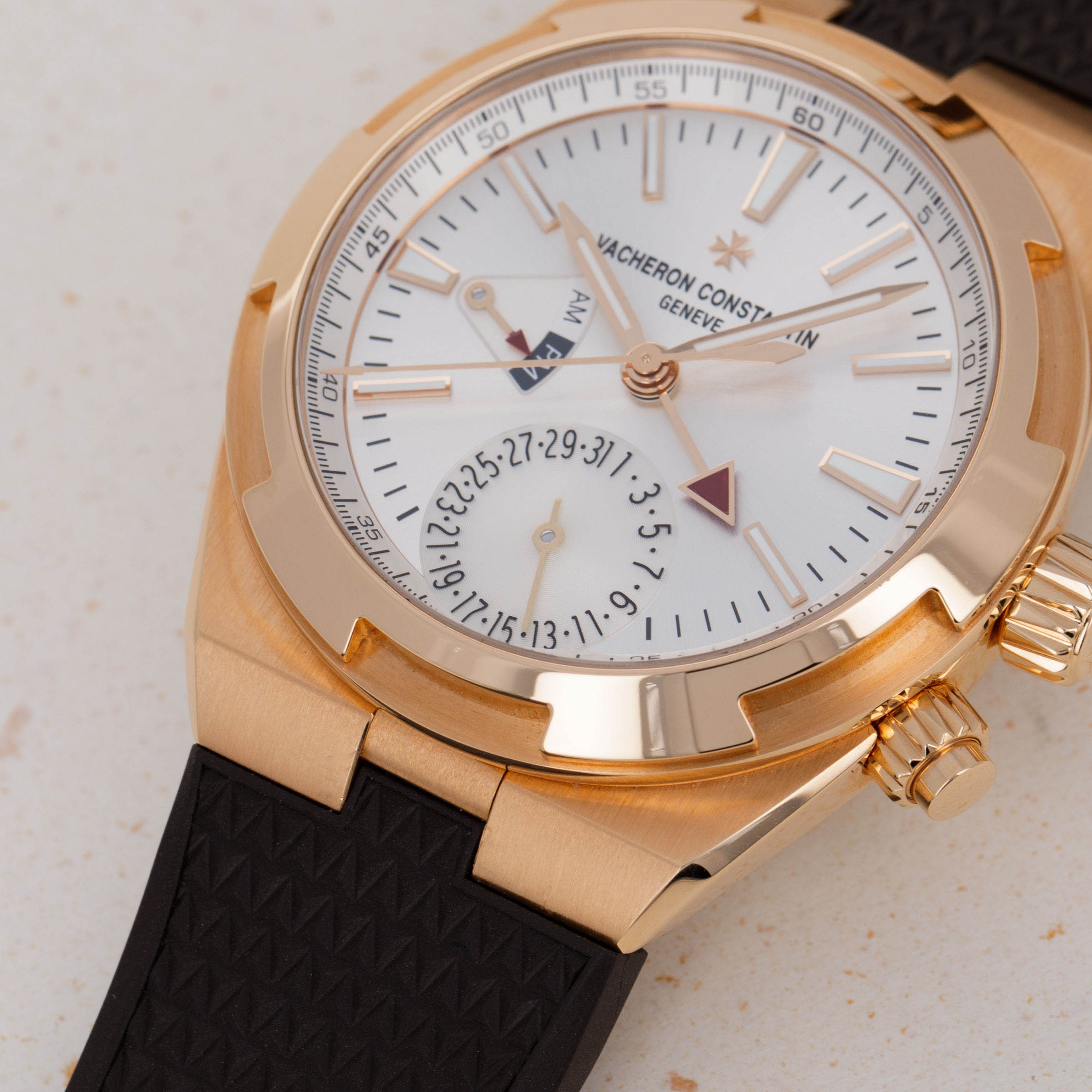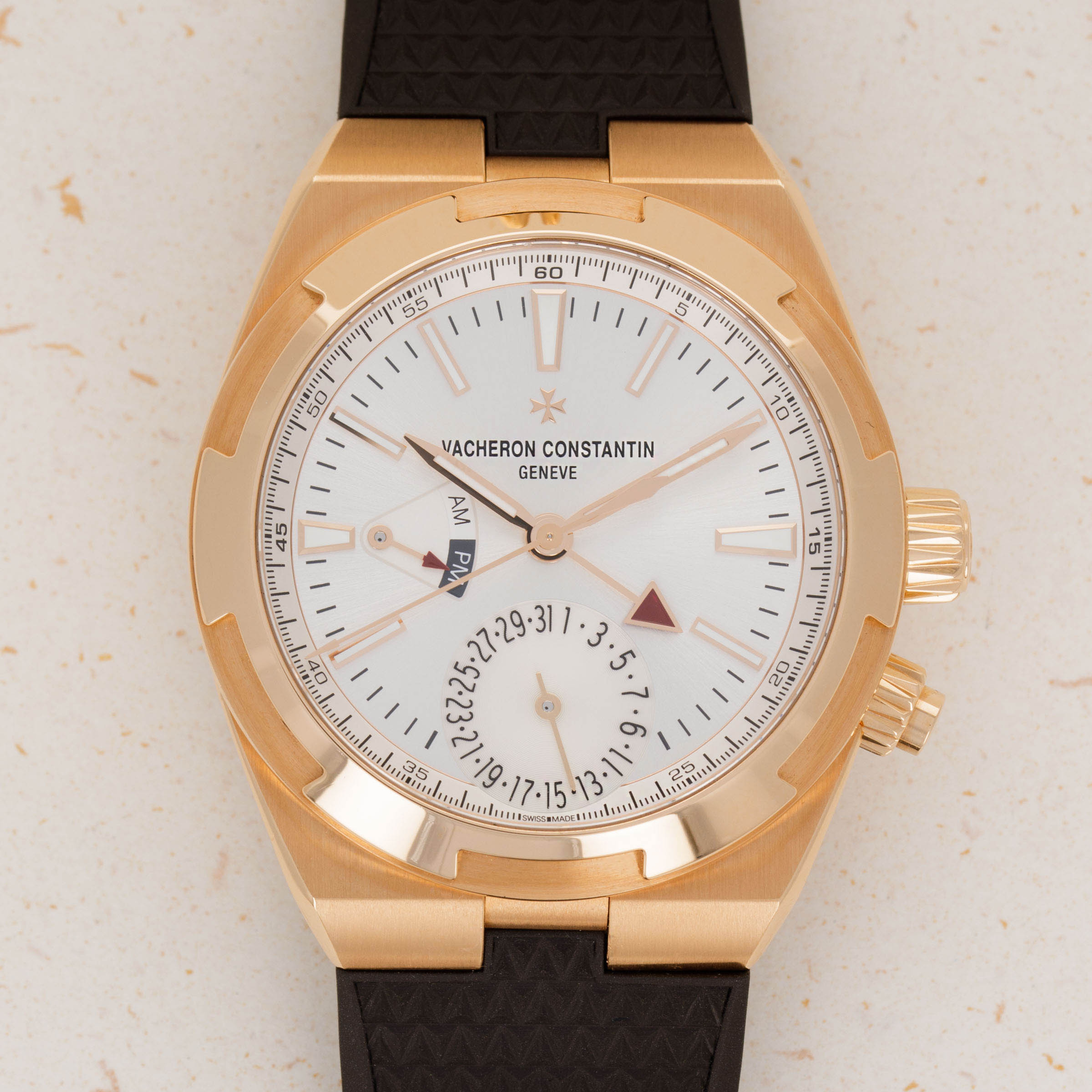 Debuting in 2016, the latest generation Overseas model has modernized the collection's aesthetics, upgraded its construction and improved Vacheron Constantin's flagship sports model in leaps and bounds. Drawing its inspiration from Vacheron's older 222 collection from 1977, the Overseas features a polished Maltese cross-inspired bezel and Maltese cross-inspired bracelet links that call back to the watchmaker's iconic logo. Furthermore, with 120m of water resistance, an incredible quick release system for changing between straps and bracelets and stunningly well-executed dials, an Overseas is a great all-around addition to any collection as wearability, utility and beauty have all been prioritized above all else. With Vacheron's incredible craftsmanship on display, too, the 3rd generation Overseas is a marvellous timepiece that is only beginning to gain the traction within the market that it deserves. Offered here we have the Overseas Dual-Time ref. 7900V in 18kt rose gold with a stunning silver dial offered on a brown rubber strap that can be quickly changed at the push of a button. Released in 2017, it added upon the Overseas’ credentials as an impressive sports watch with its heightened functionality through its dual-time display and its luxurious construction through its 18kt rose gold case. A perfect combination of utility and luxury, this Overseas has it all.